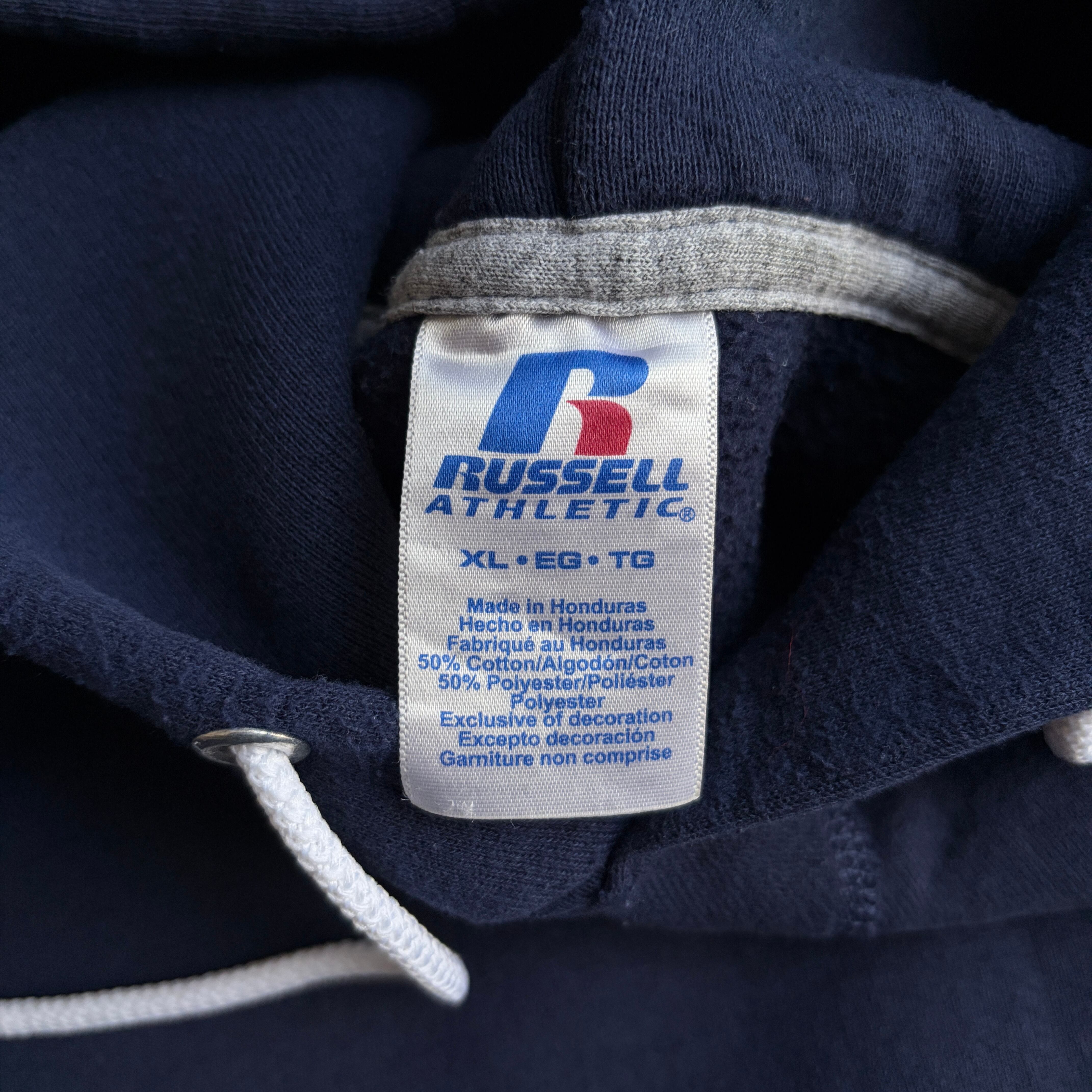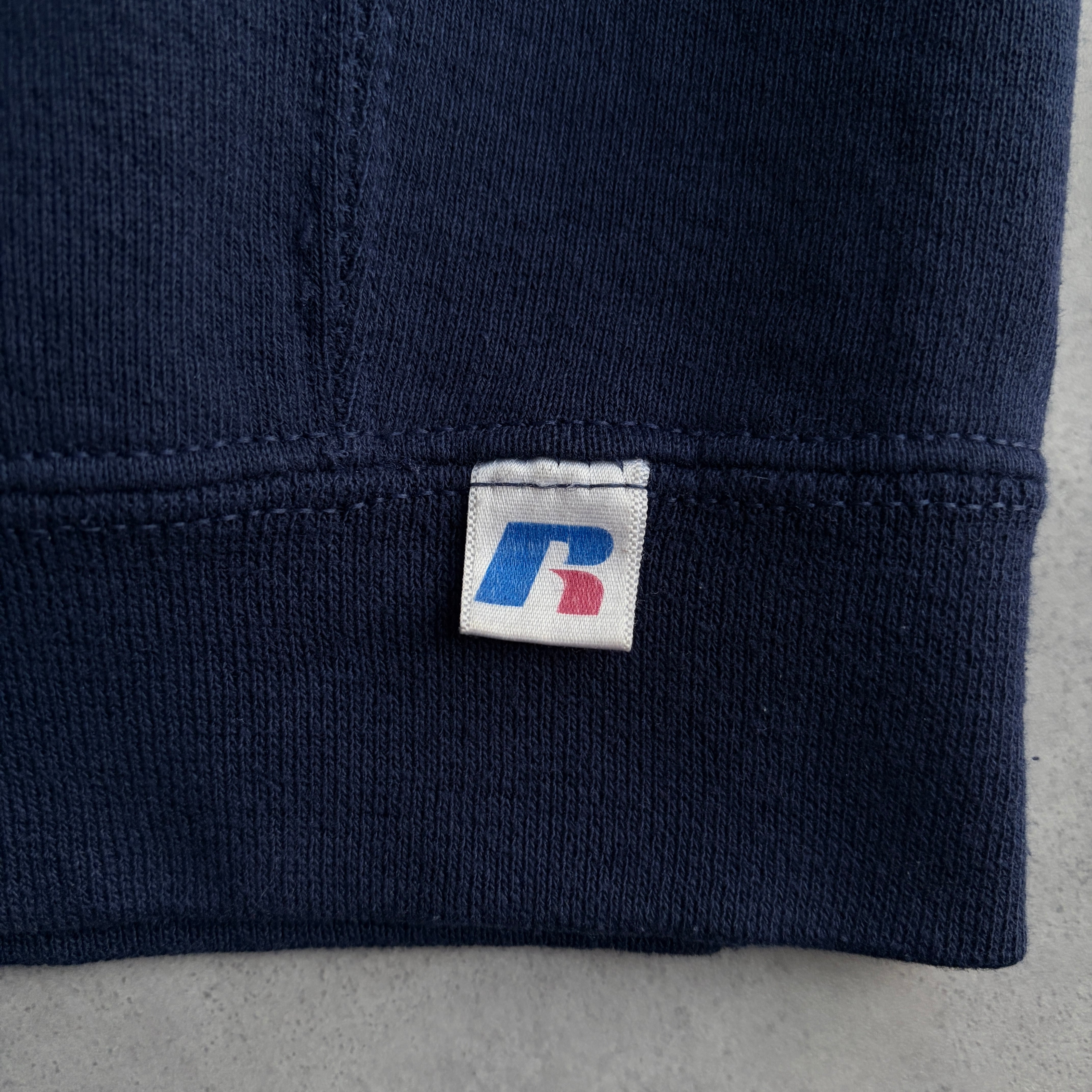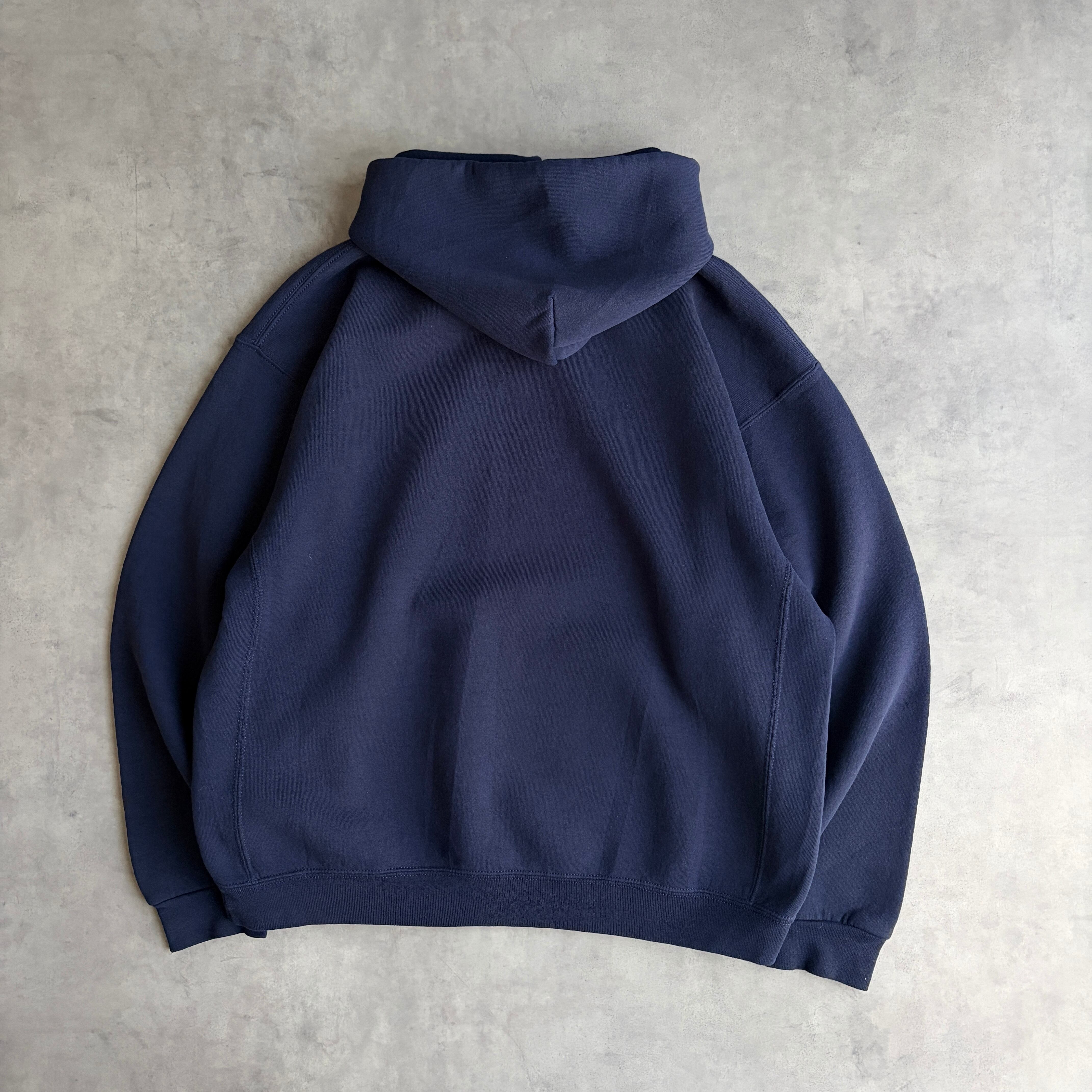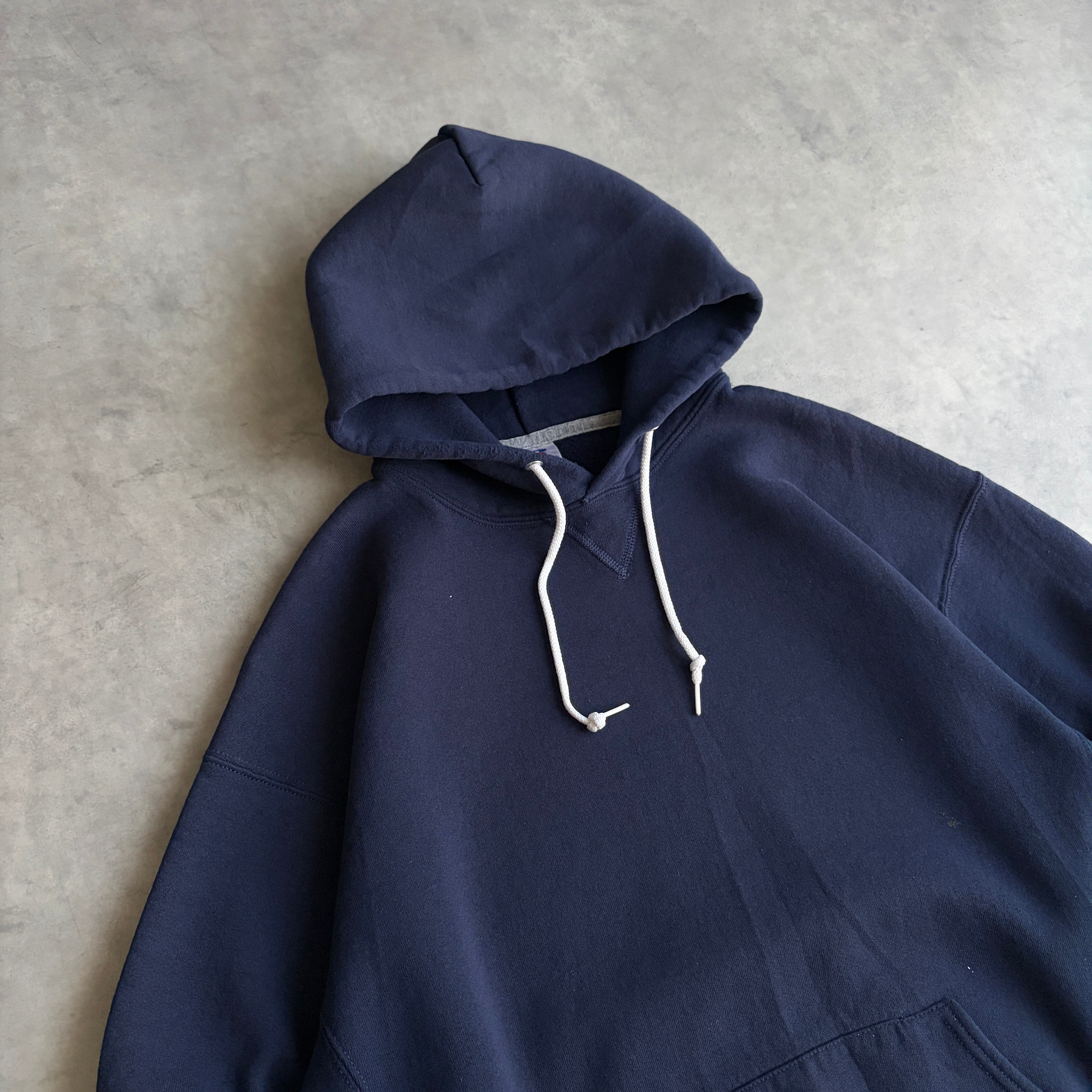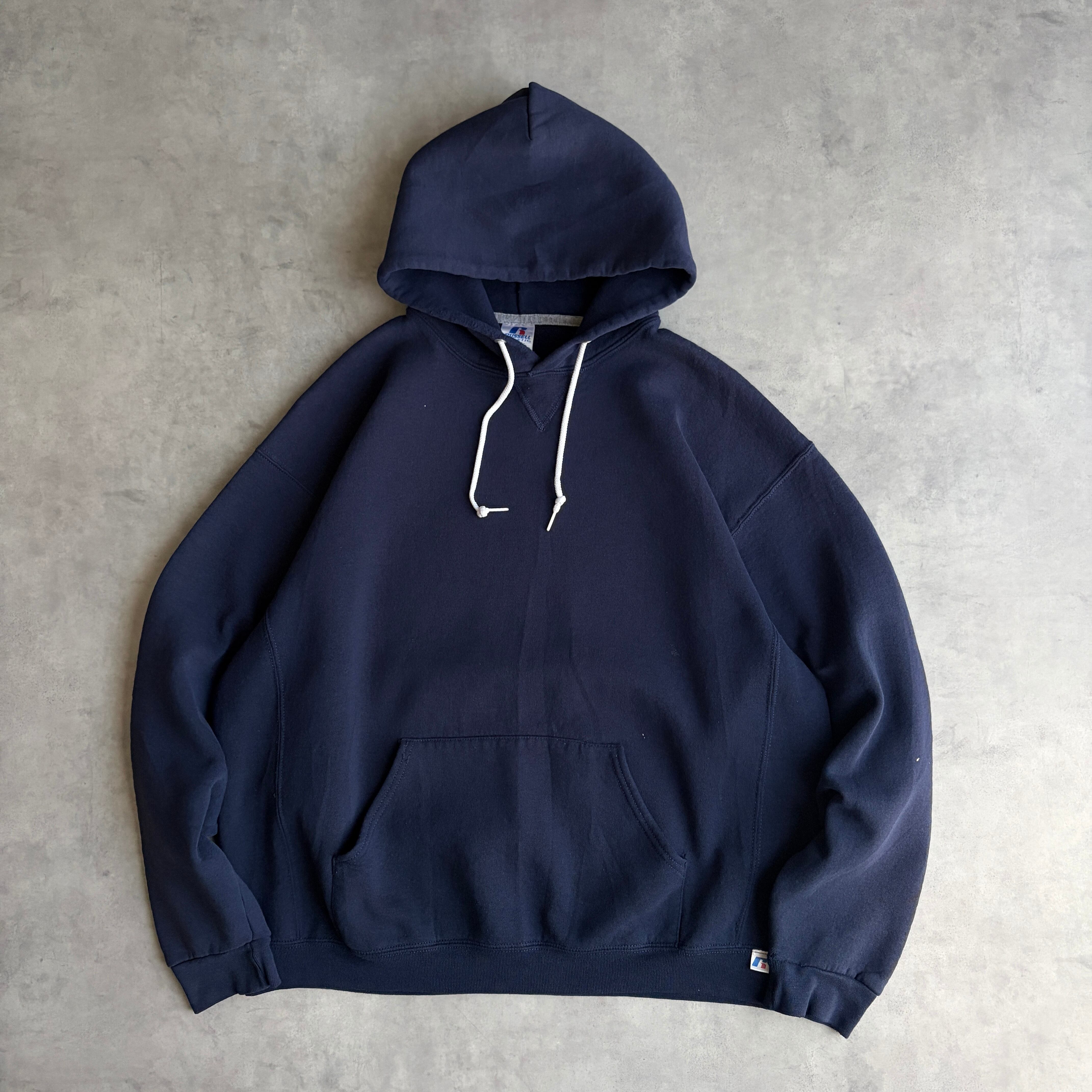 00s〜/RUSSELL ATHLETIC/ラッセルアスレチック/プルオーバーパーカー/前Vガゼット/無地/ソリッド/ノームコア/プレーン/ブランク/ロゴタブ/ネイビー/紺