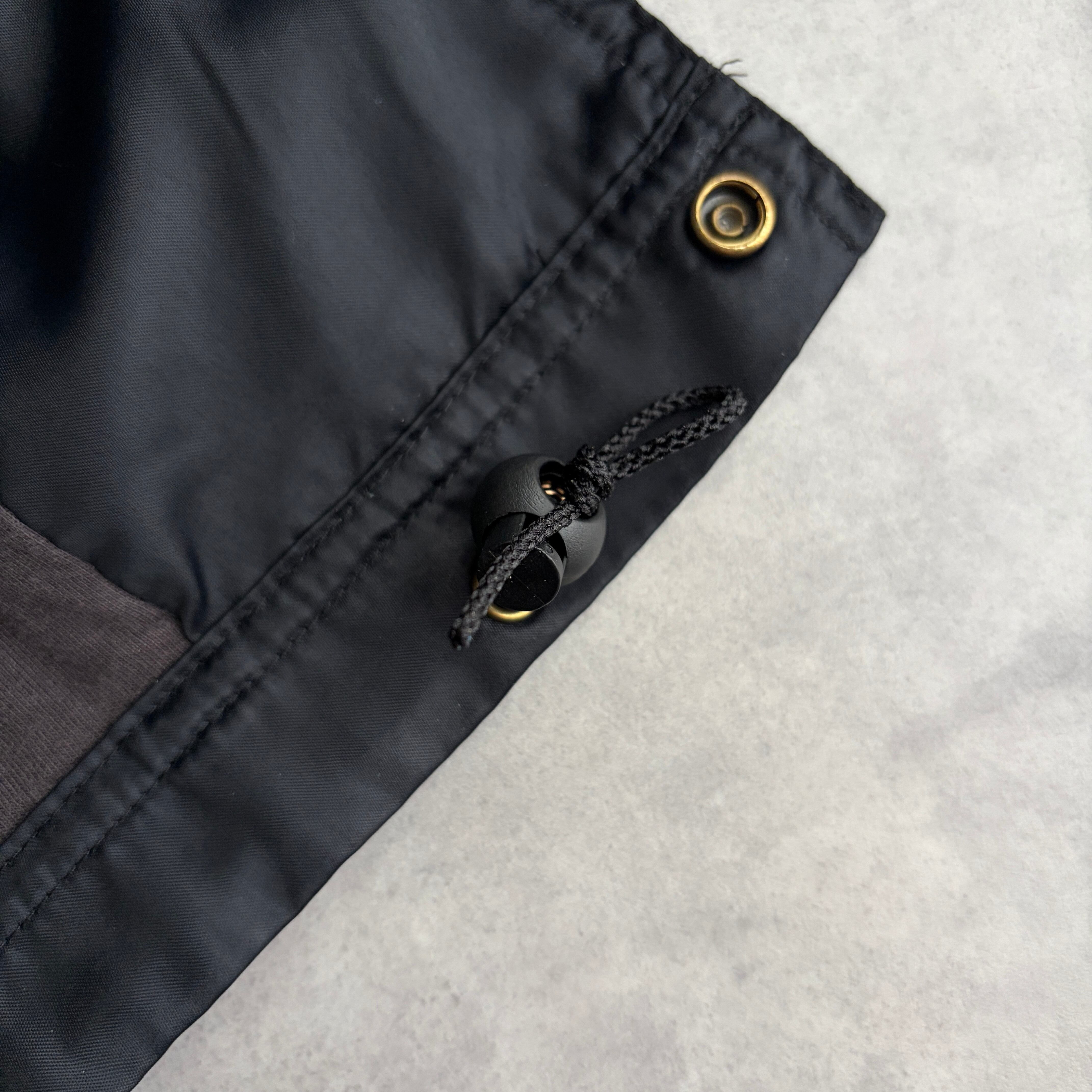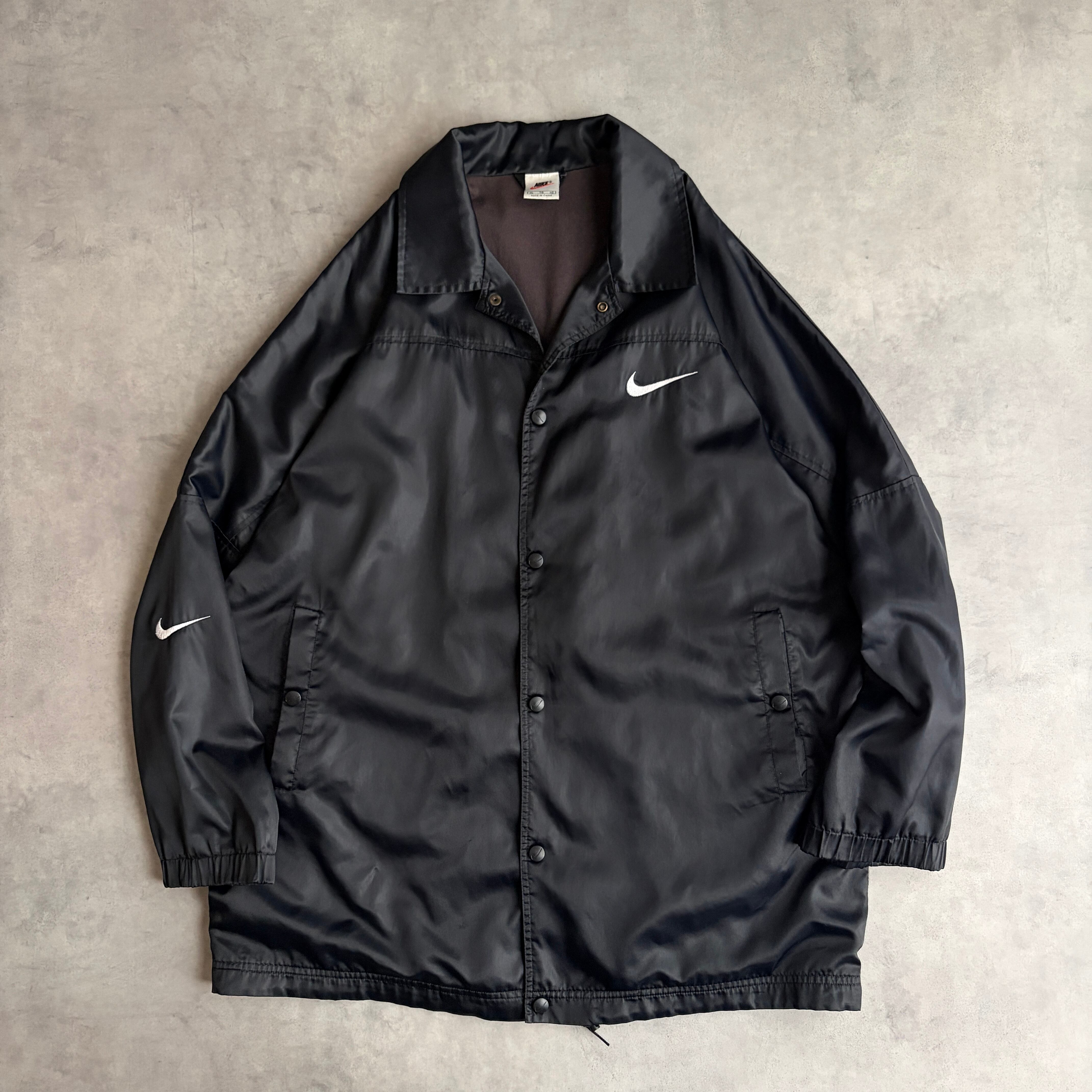 00s/NIKE/ナイキ/コーチジャケット/ナイロン/スナップボタン/スウッシュロゴ刺繍/裾ドローコード/裏地コットン/ブラック/黒