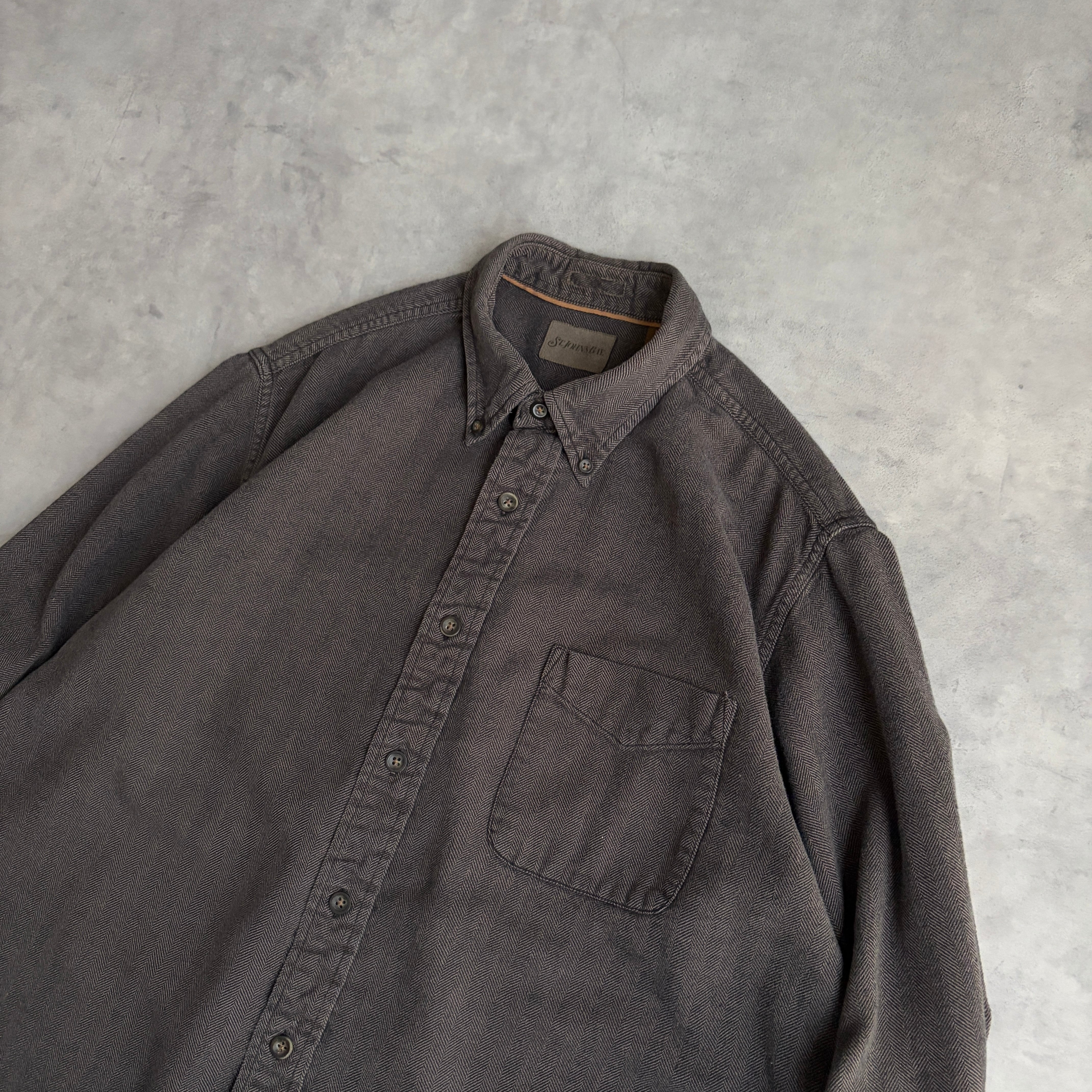 ブラックとブラウンのヘリンボーン生地で落ち着いた雰囲気のネルシャツ。