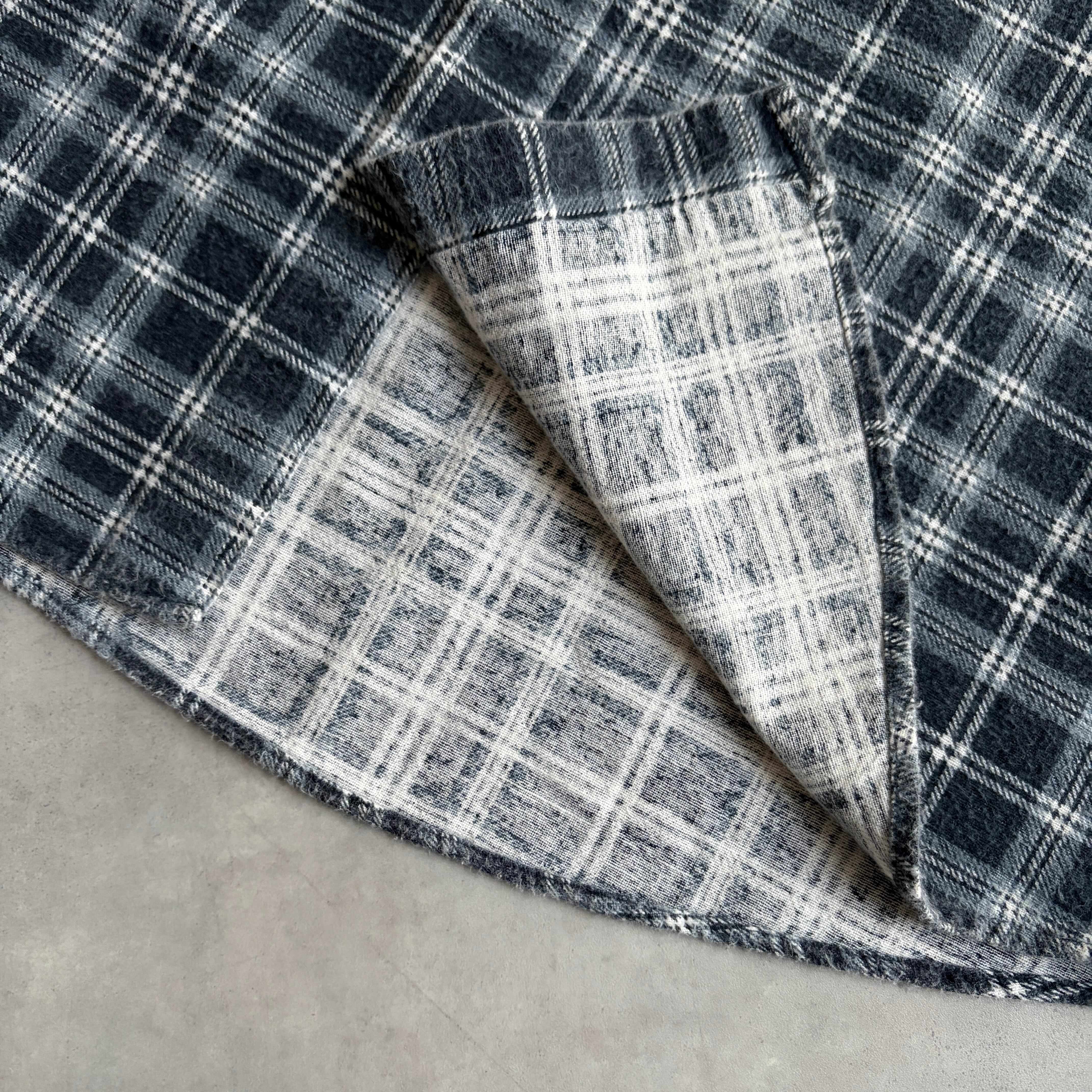 ネイビーベースチェックのプリネル生地、全体的に毛羽立ちがありますが、この起毛感もいいですね。