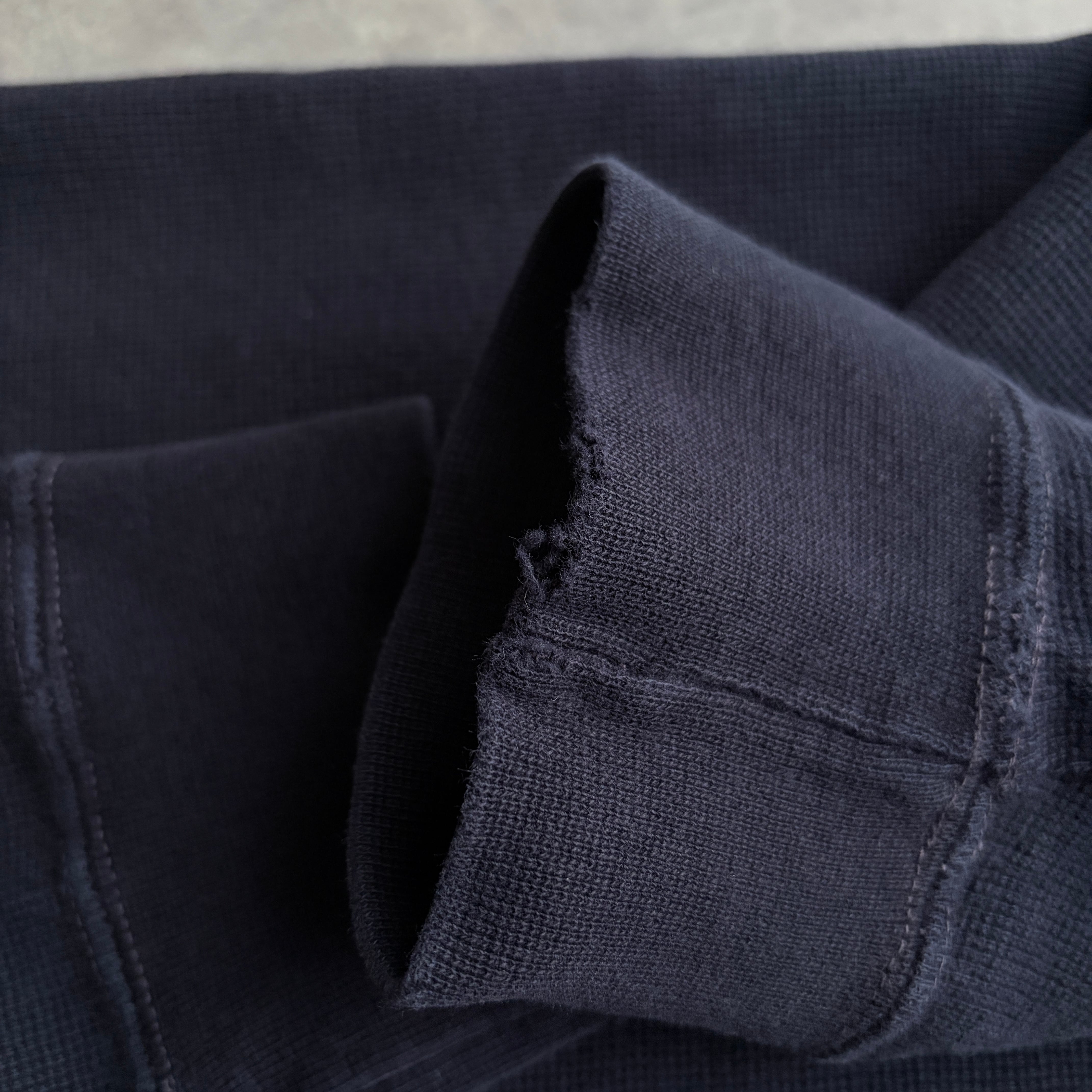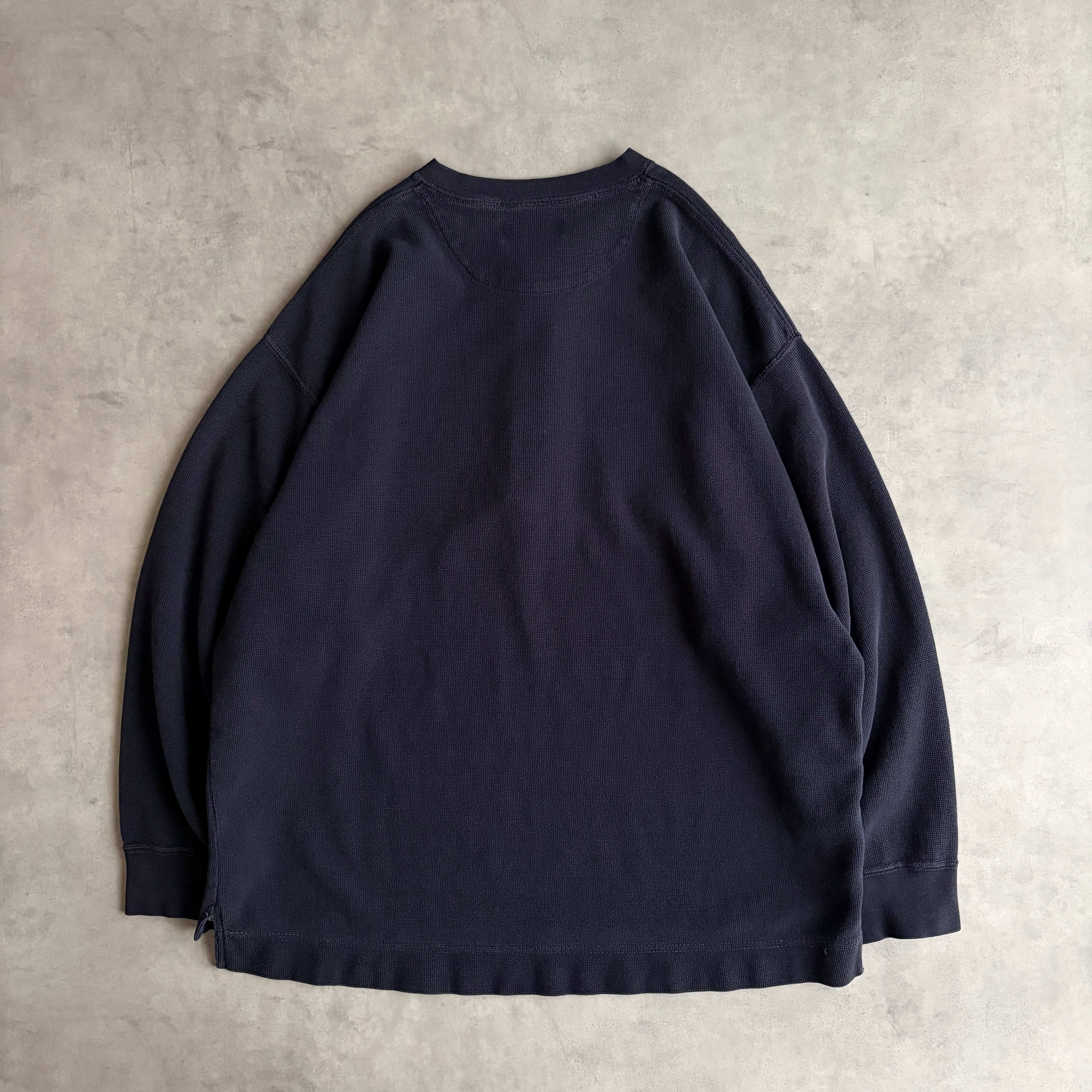 しっかりとした質感のワッフルサーマル生地に身幅広間でゆったりとしたアイテム。