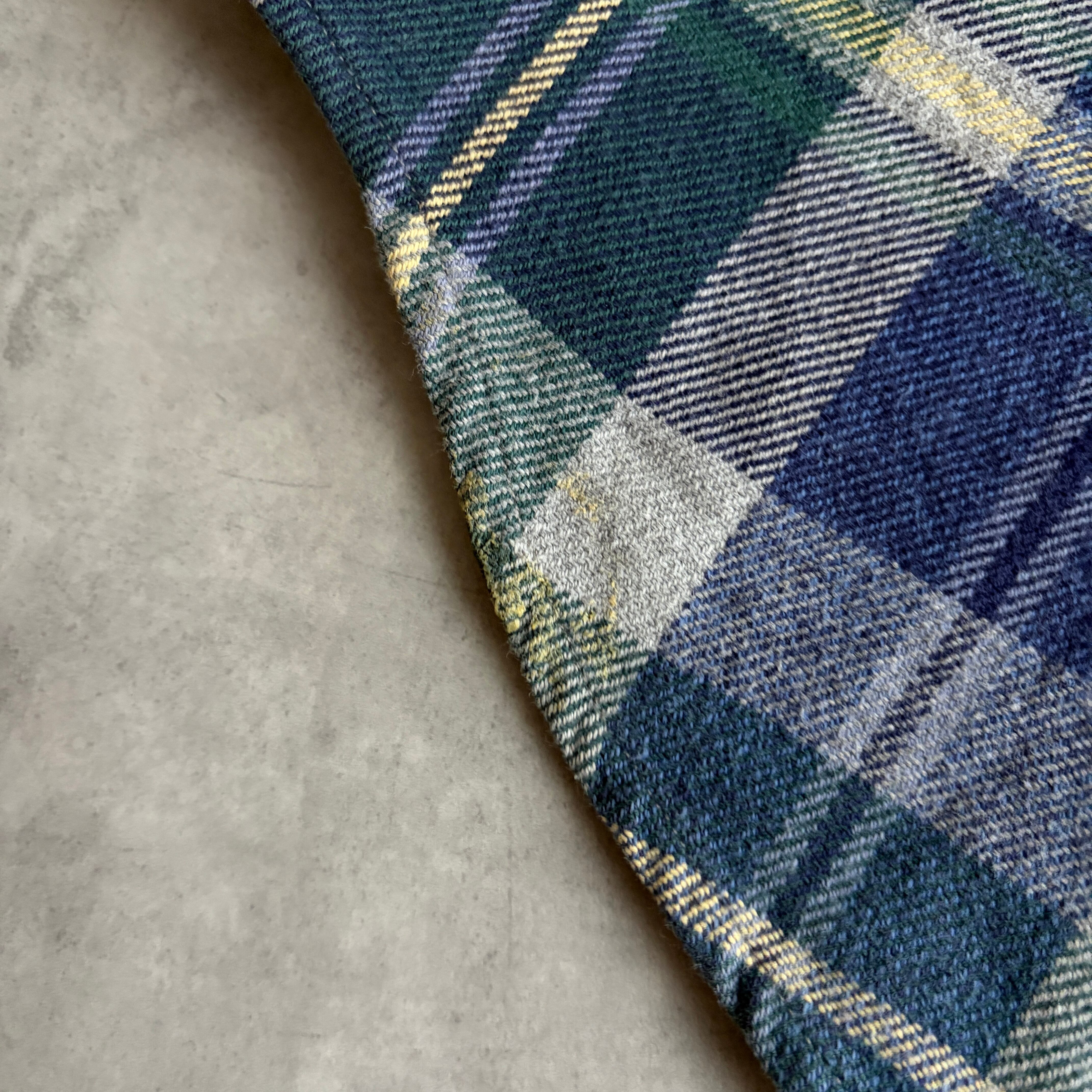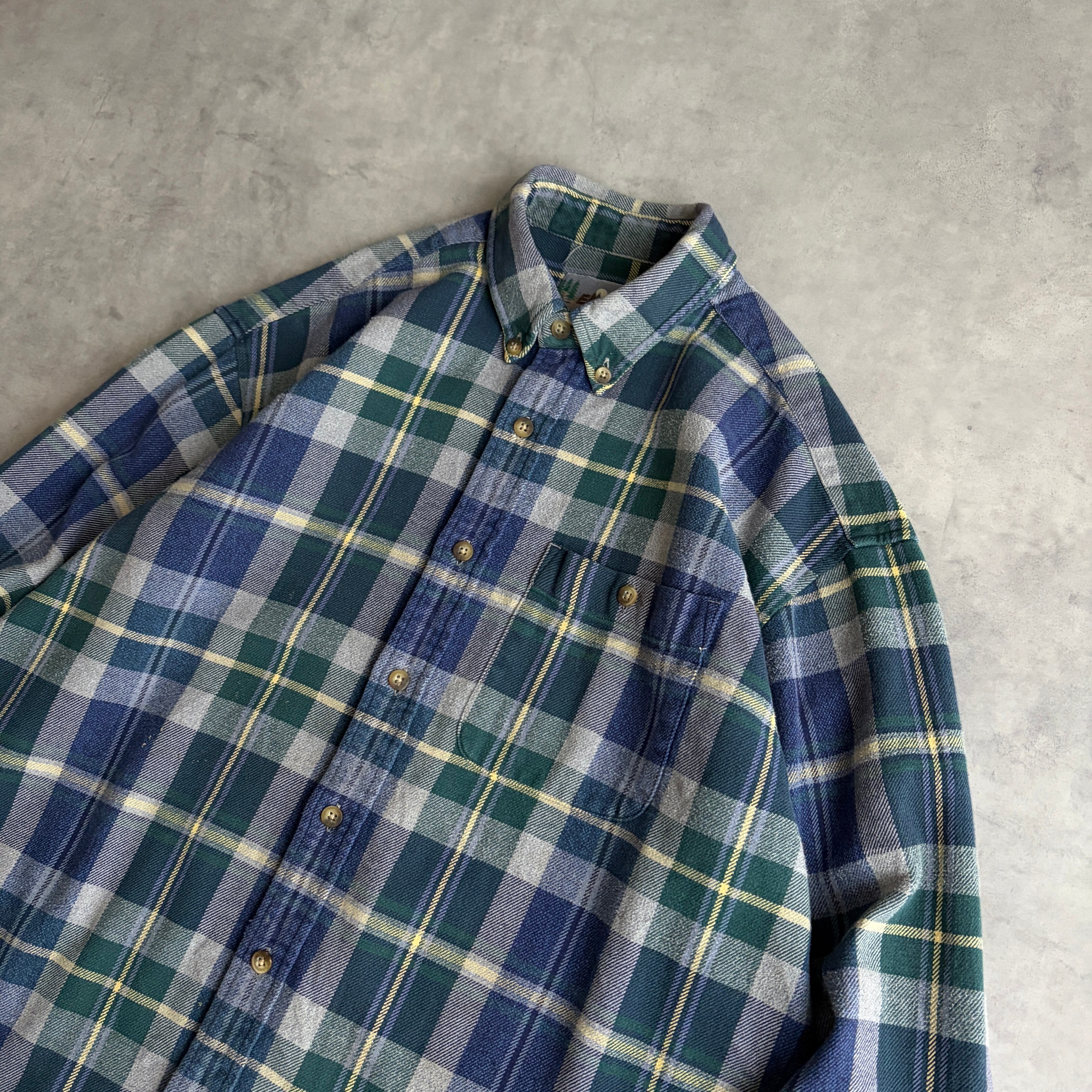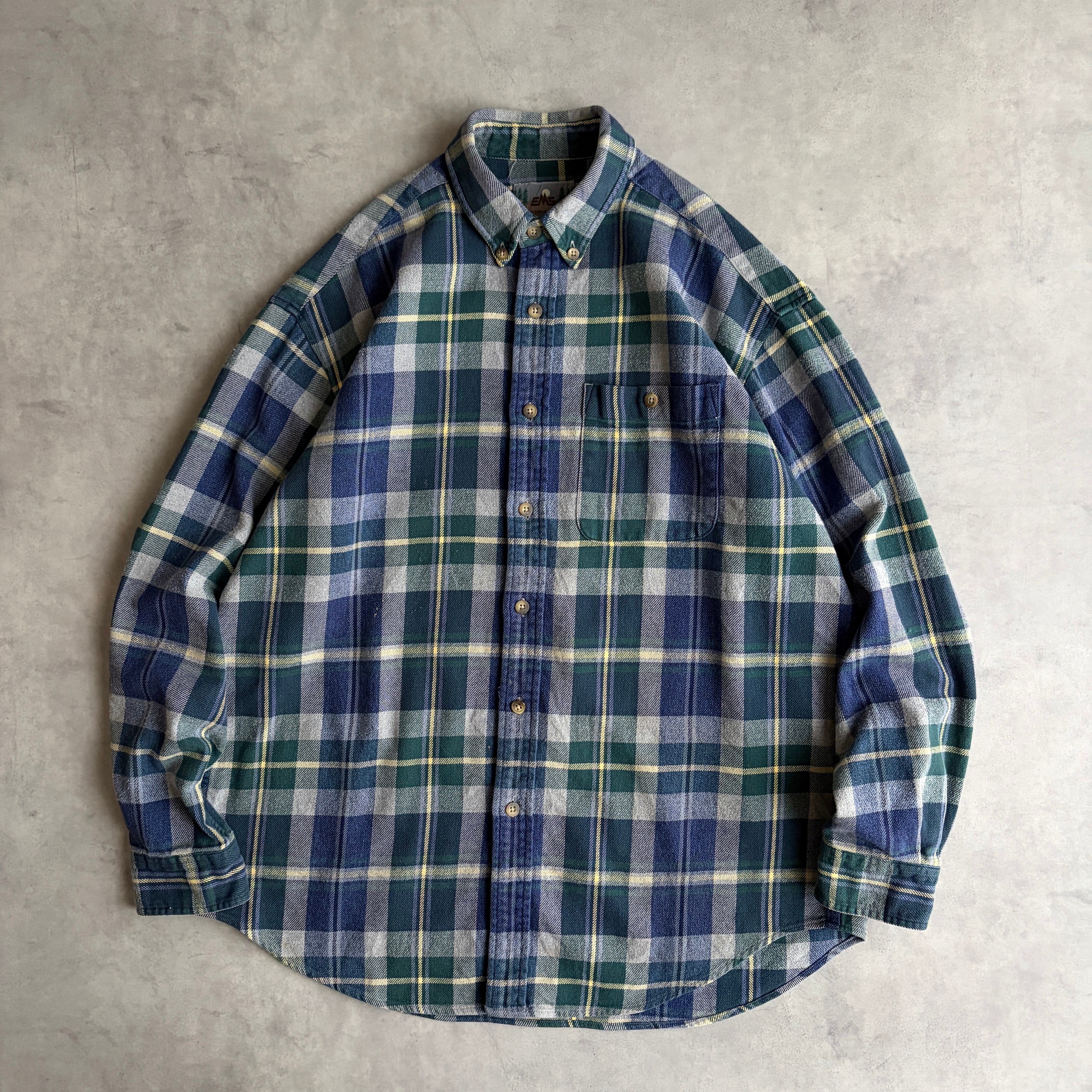 90s/EMS/ヘビーネルシャツ/長袖/フランネル/BD/ボタンダウン/チェック/格子柄/肉厚/ネイビー系