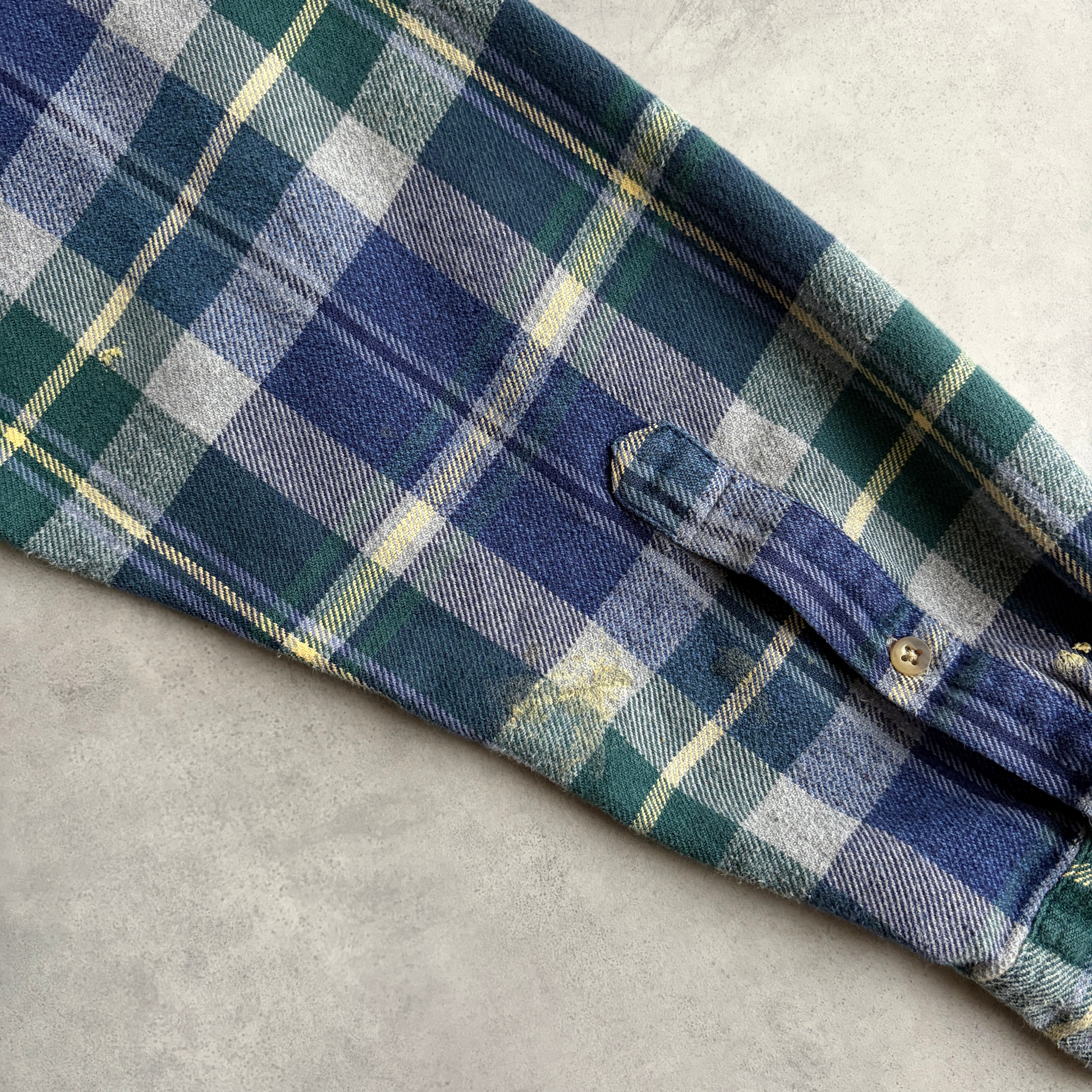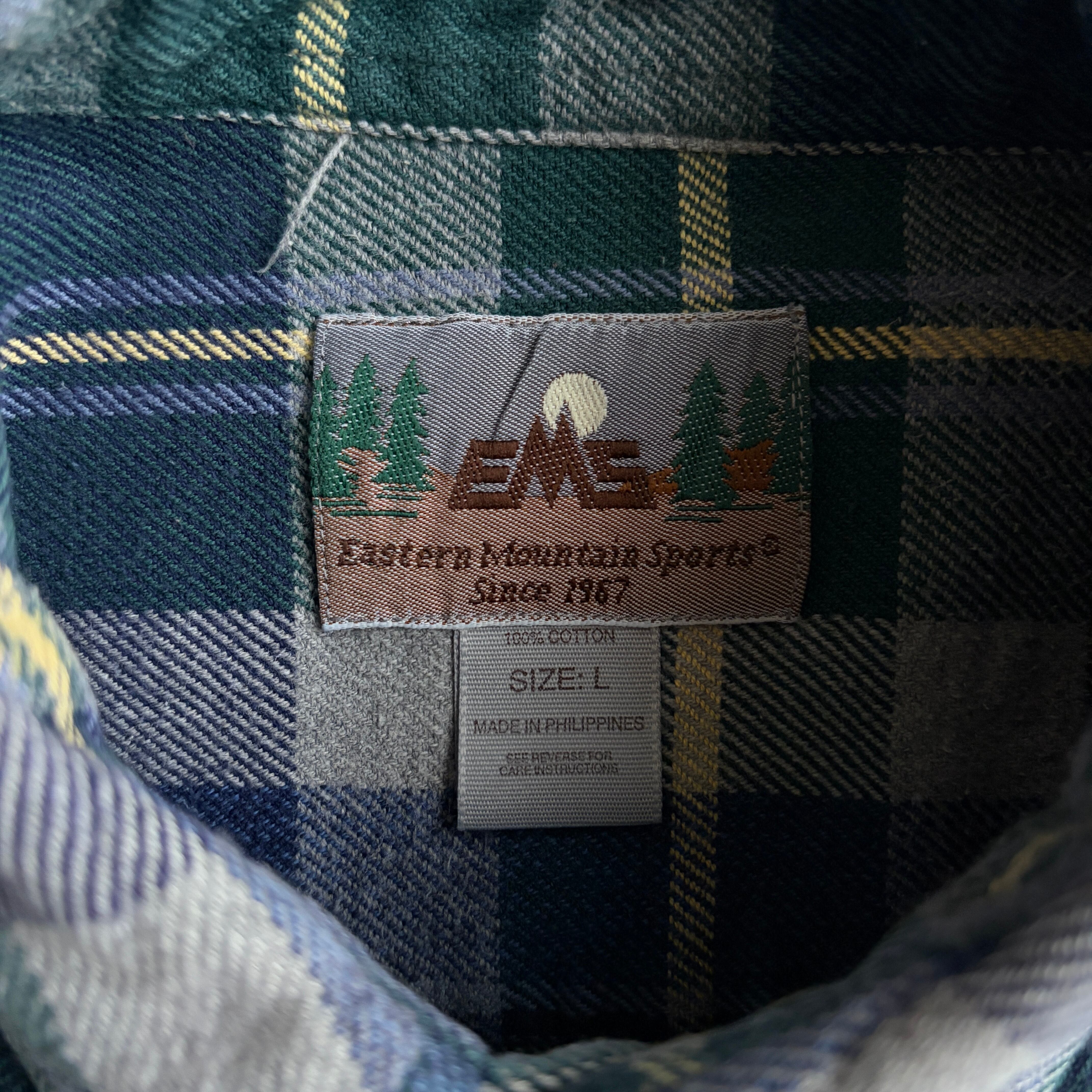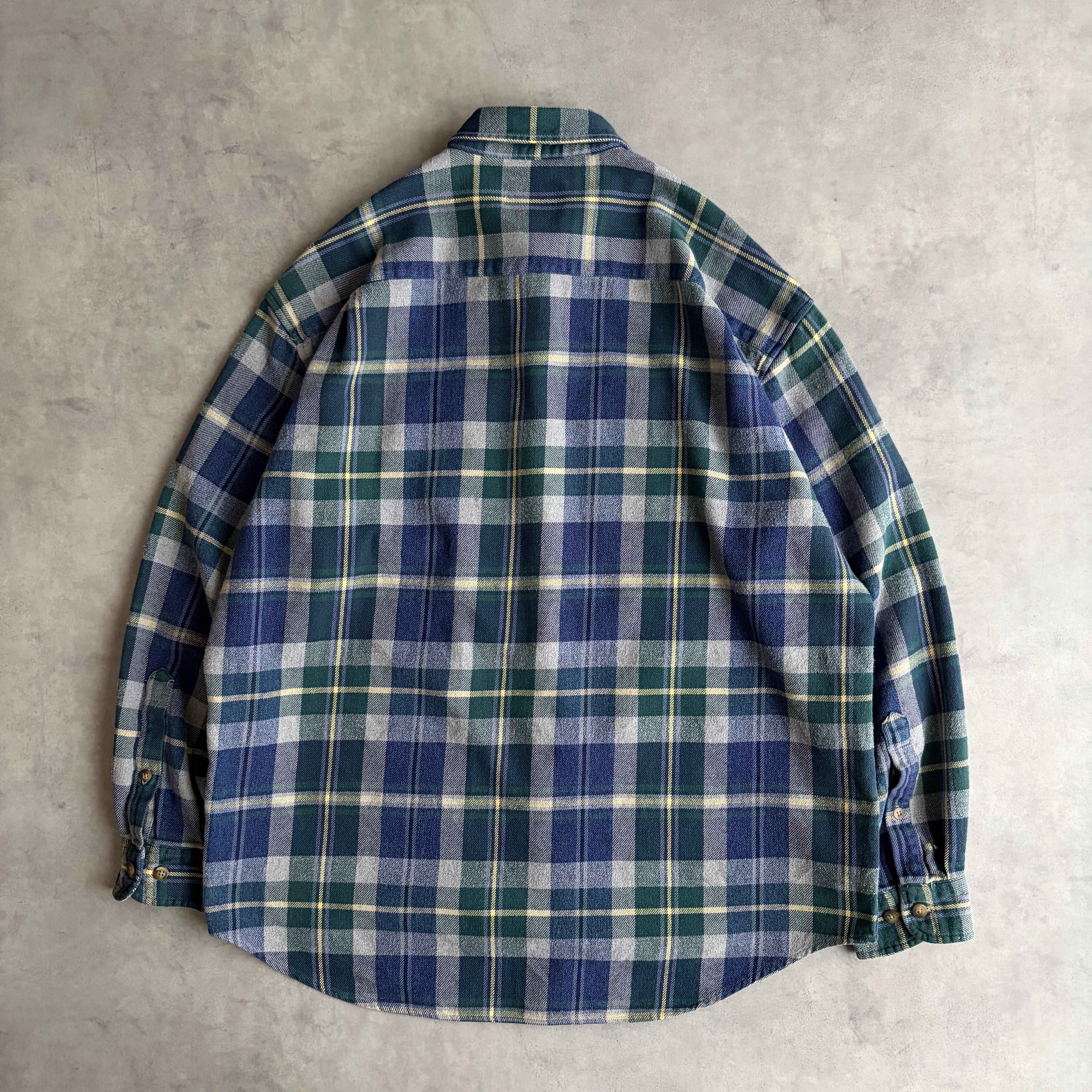 90s/EMS/ヘビーネルシャツ/長袖/フランネル/BD/ボタンダウン/チェック/格子柄/肉厚/ネイビー系