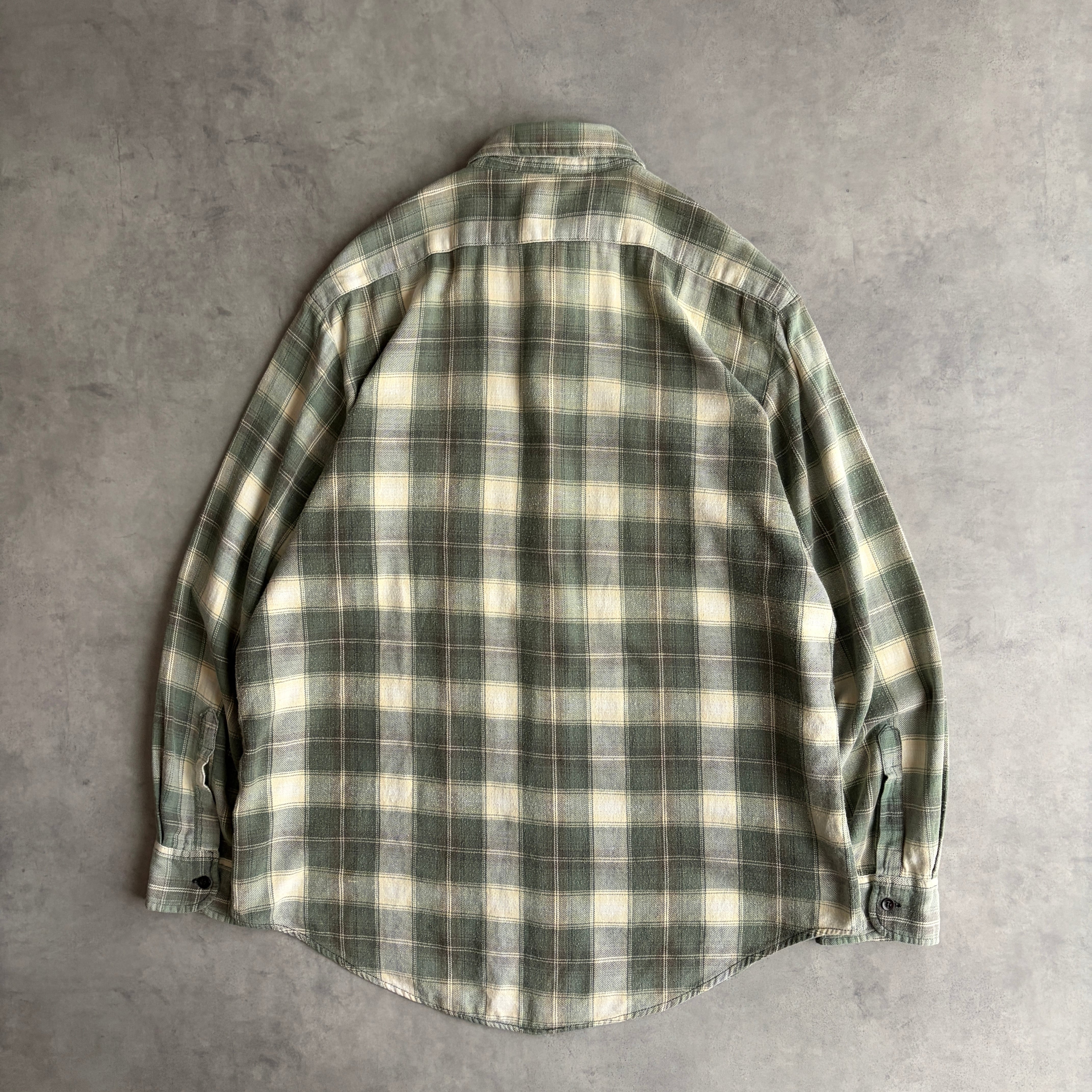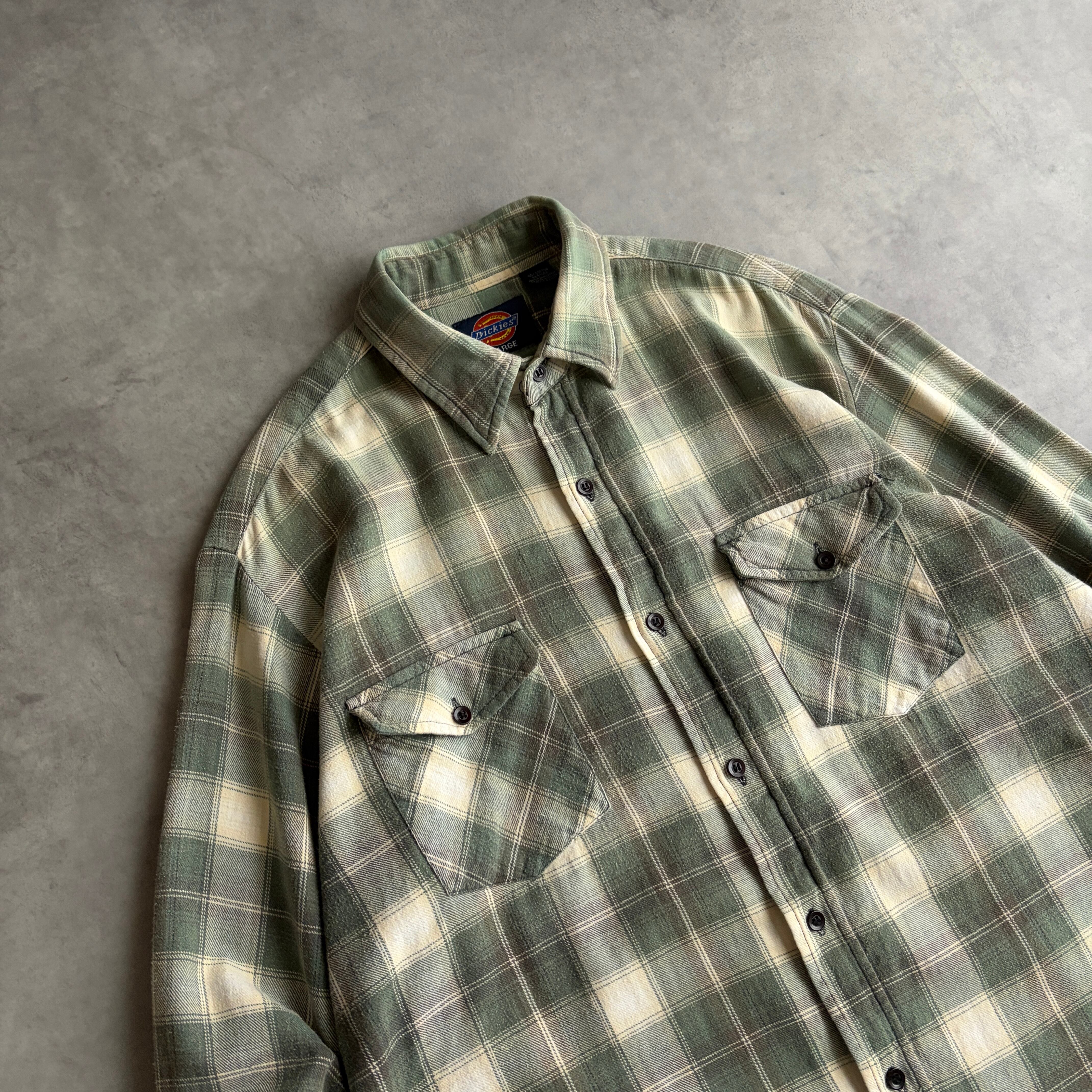 70s〜80s/Dickies/ディッキーズ/フランネルシャツ/長袖/フラップポケット/チェック/格子柄/スプリングカラー/春色/グリーン