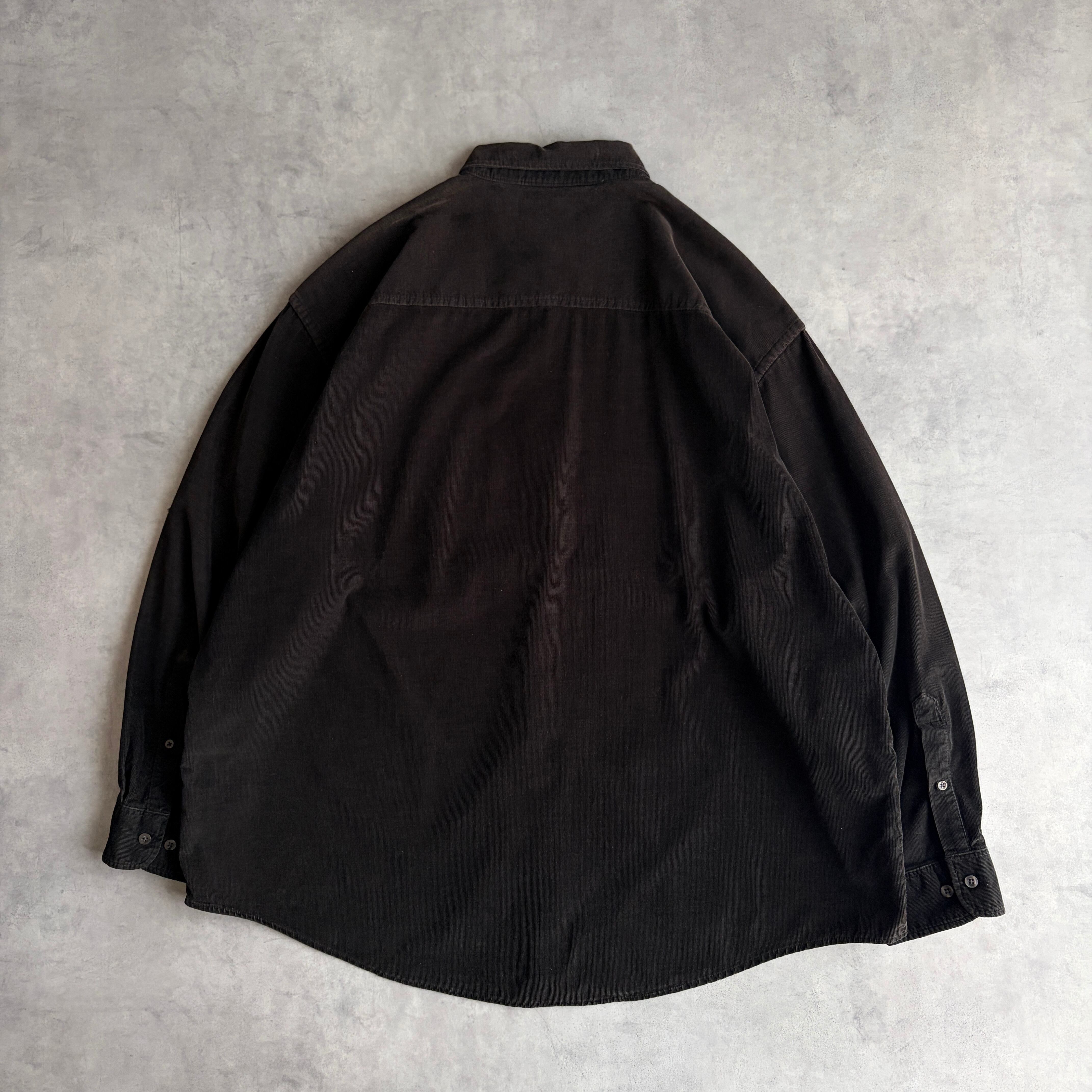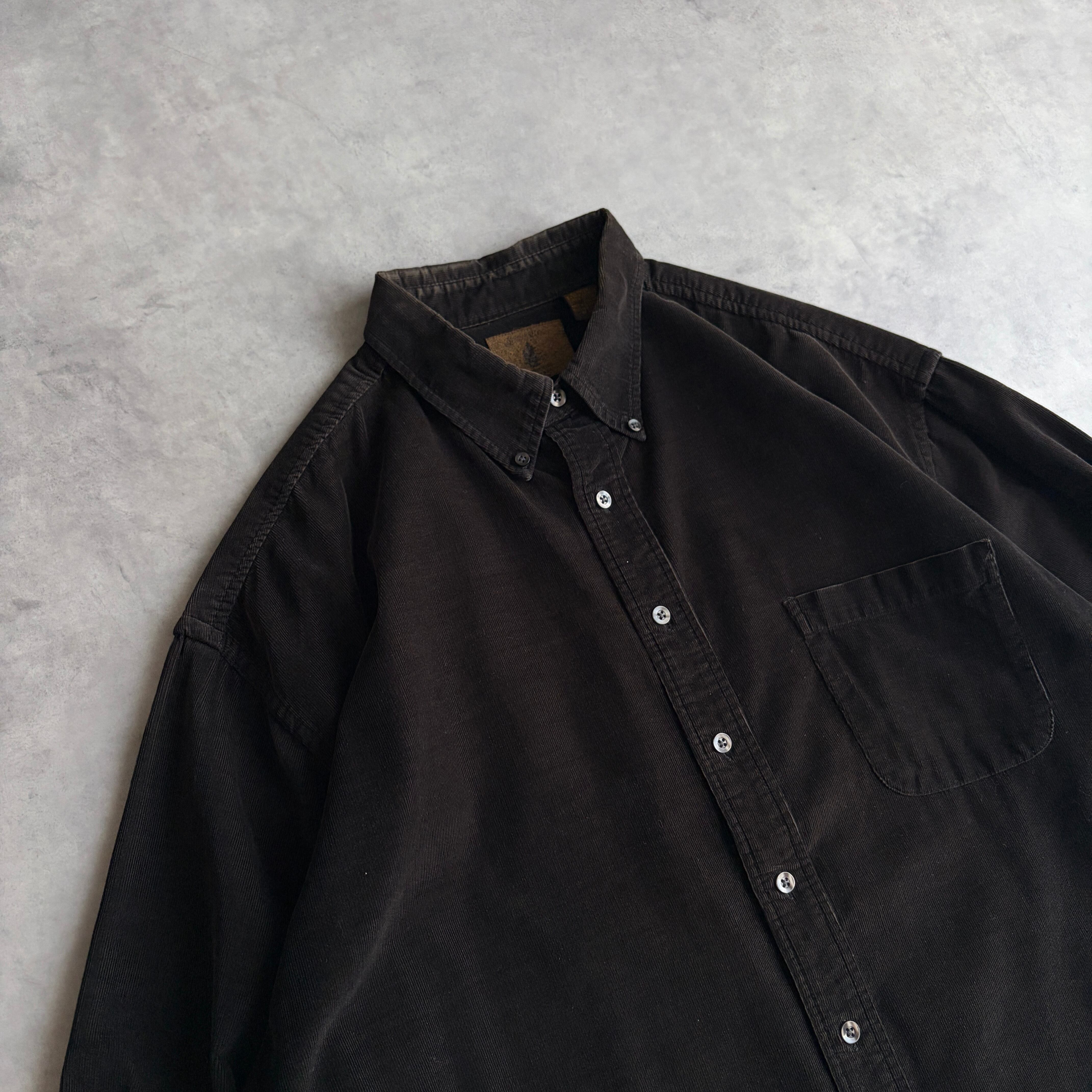 90s/ST JOHN'S BAY/セントジョンズベイ/BDシャツ/ボタンダウン/コーデュロイ/コーズ/細畝/無地/単色/ソリッド/ブラック/黒