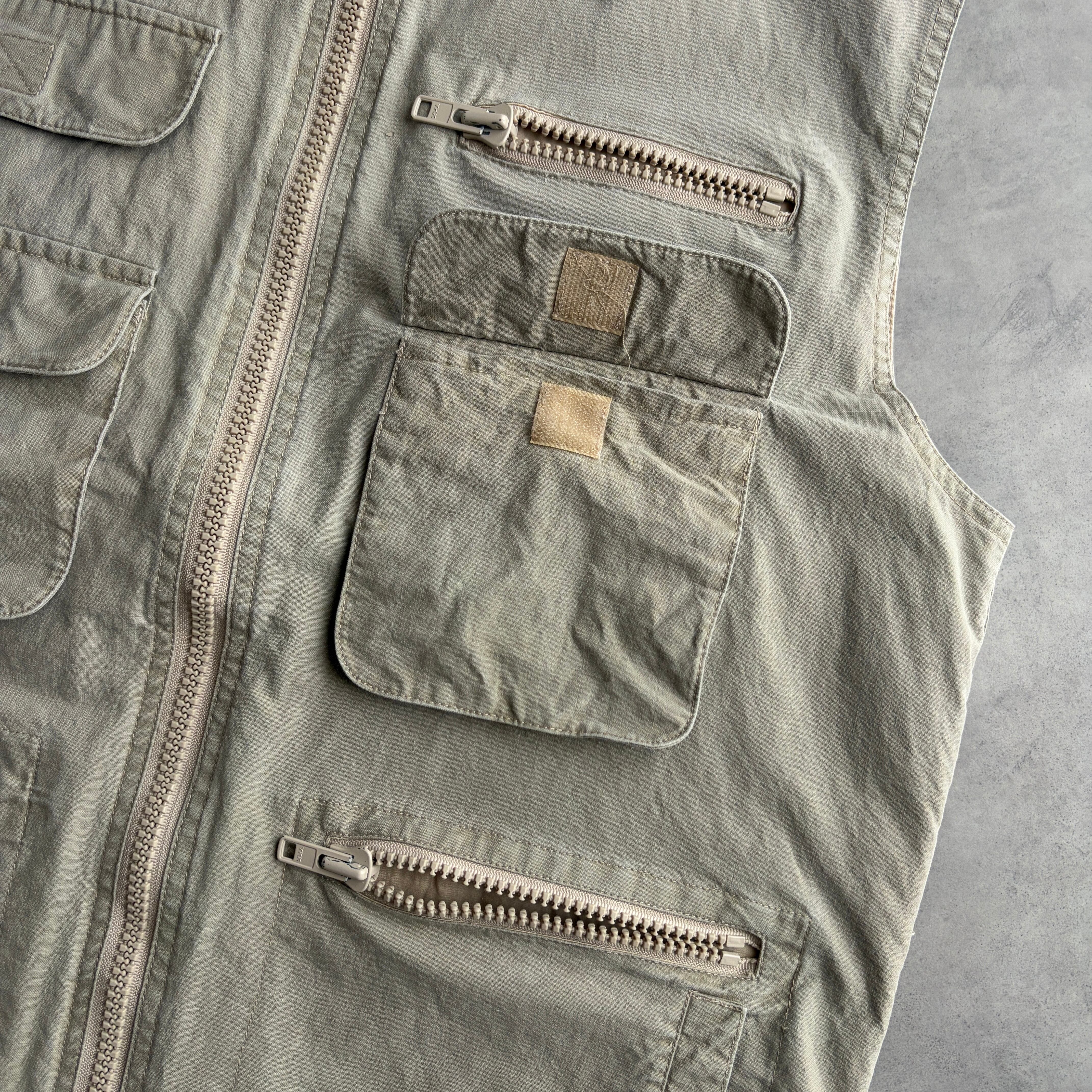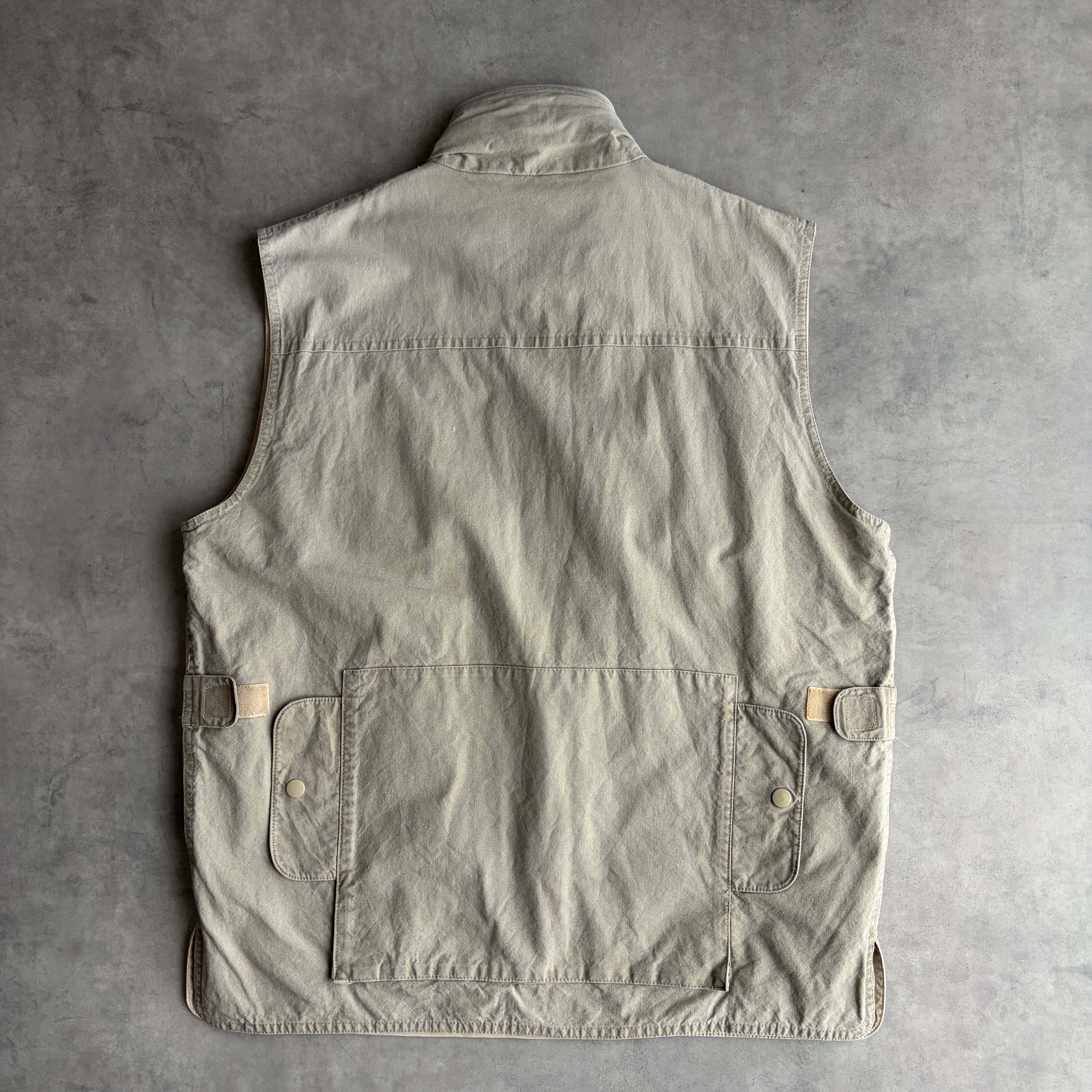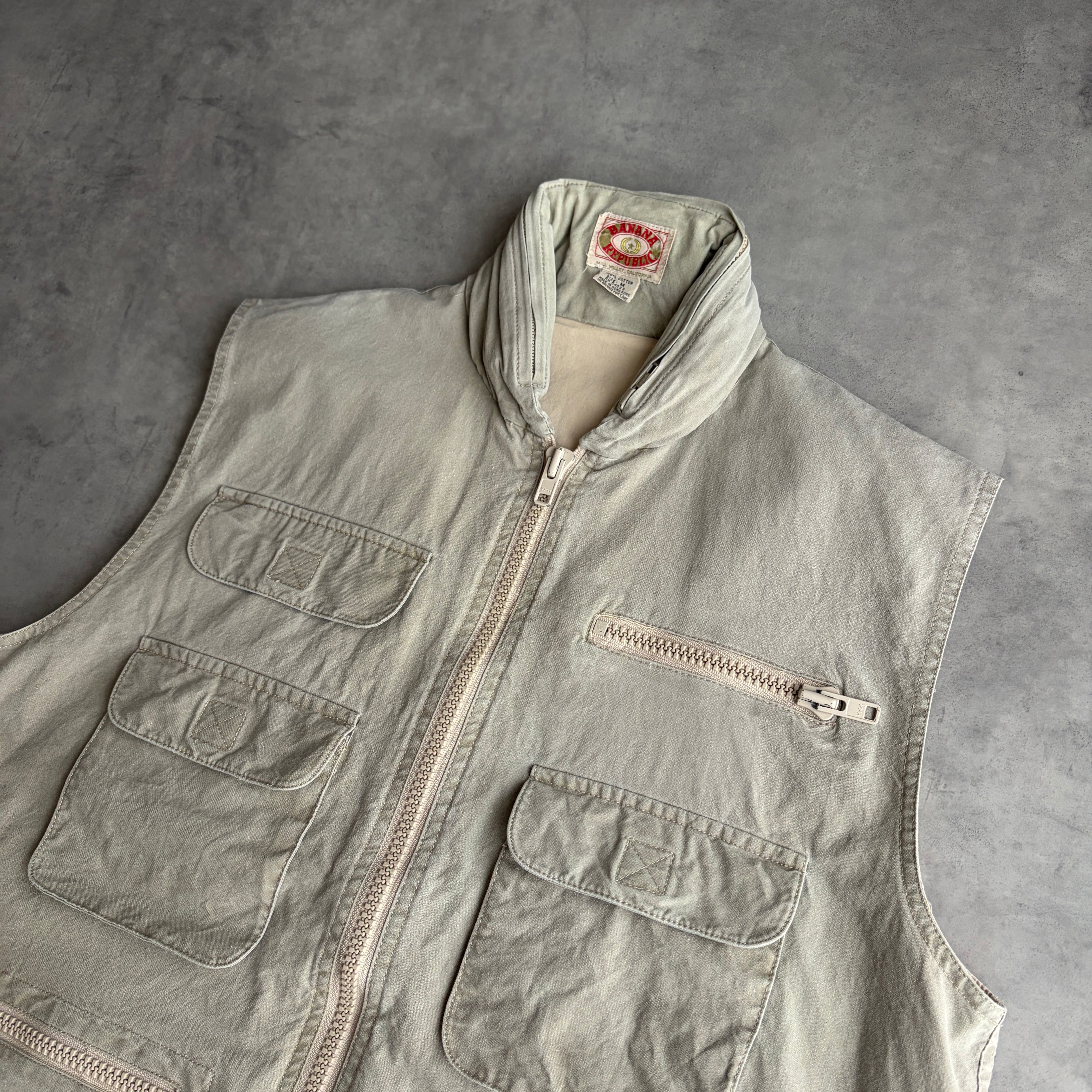 80s/BANANA REPUBLIC/バナナリパブリック/ハンティングベスト/フィッシング/マルチポケット/フード収納/初期タグ/グレーベージュ