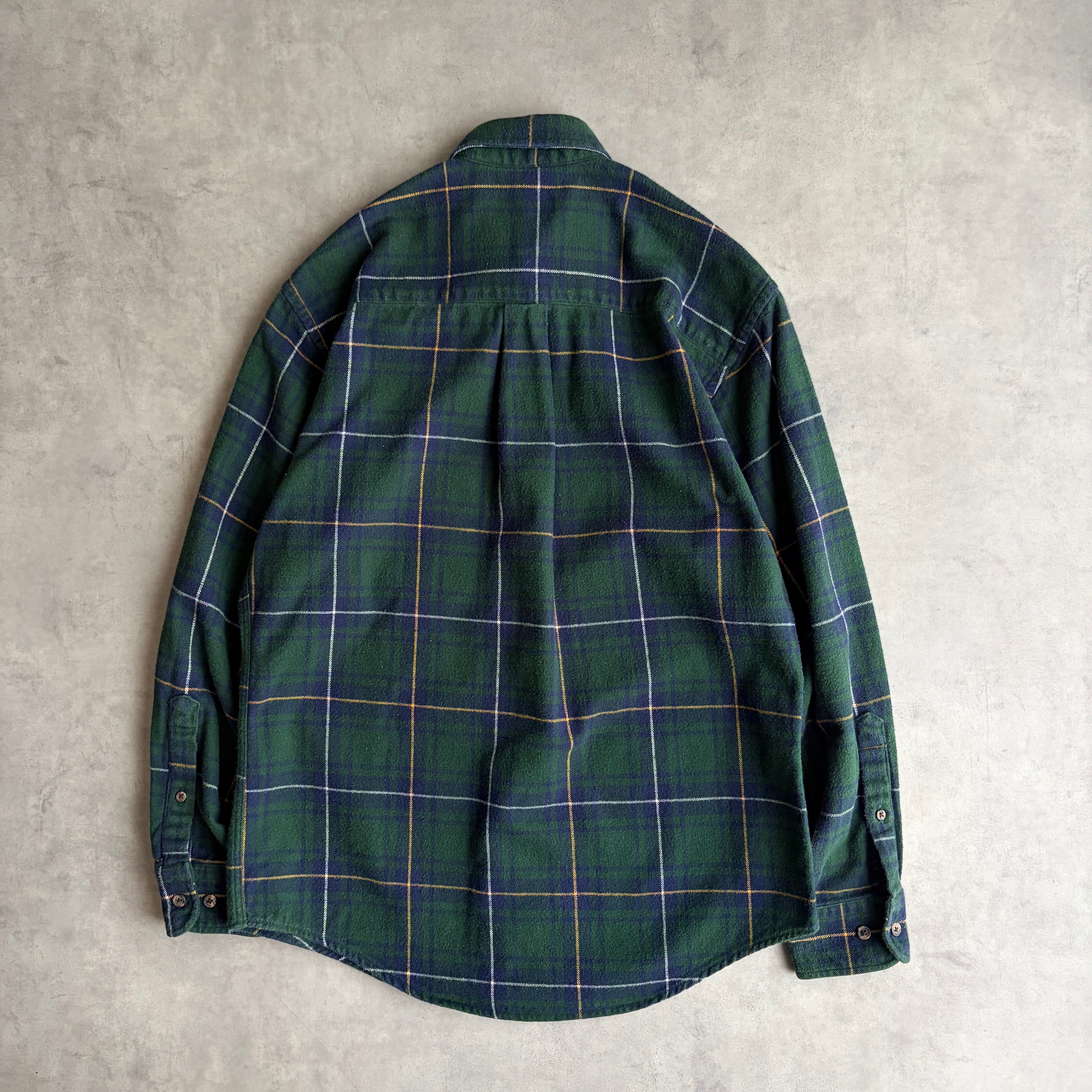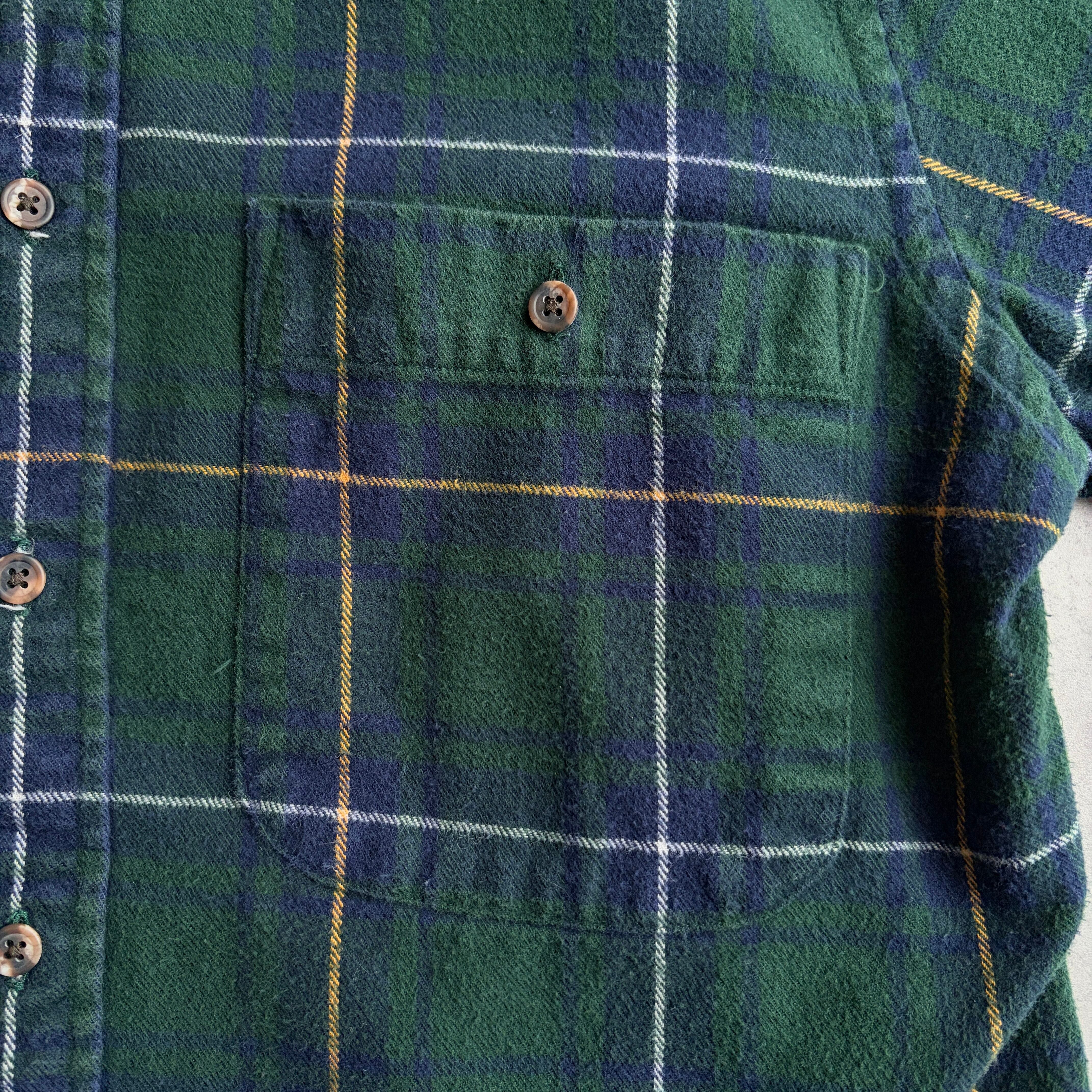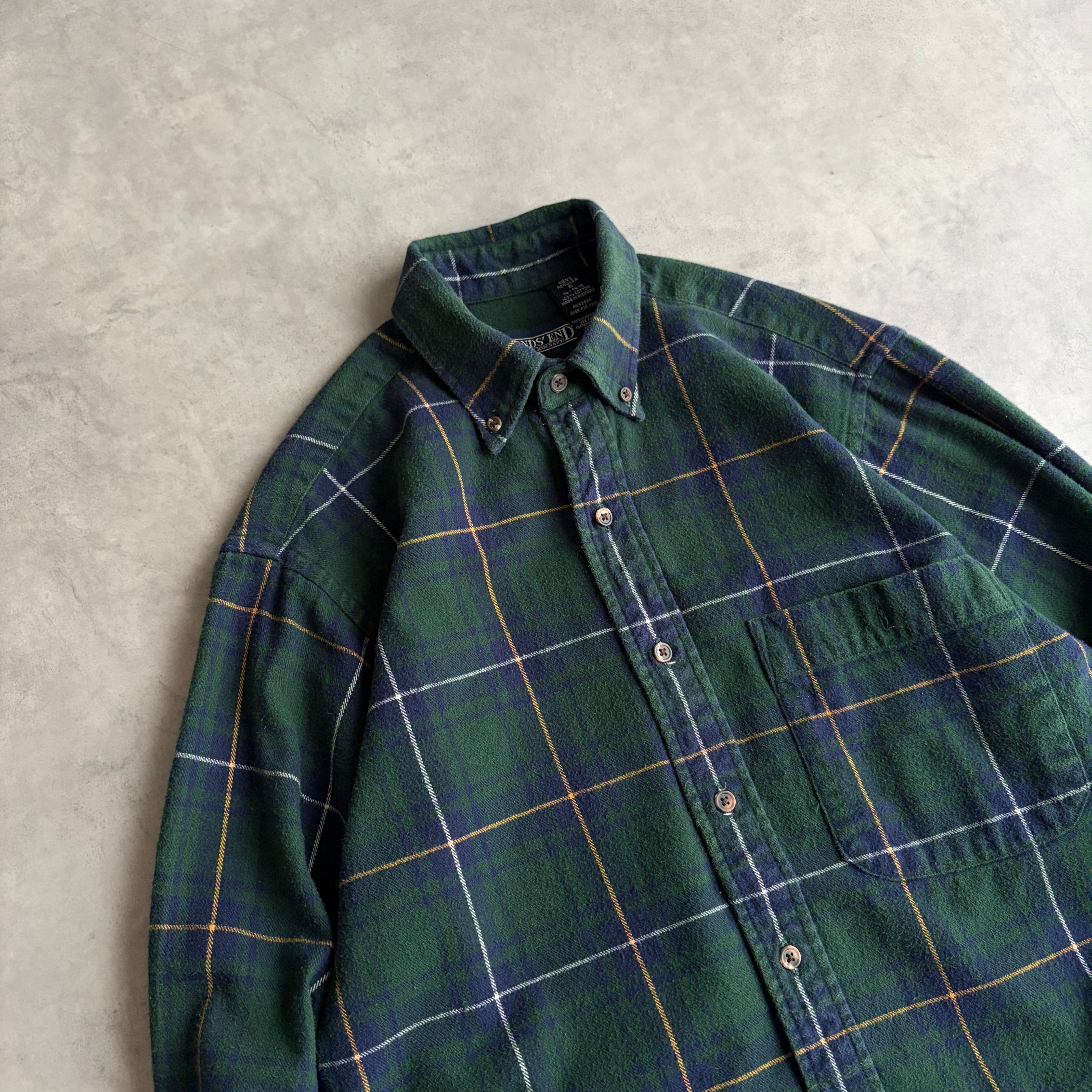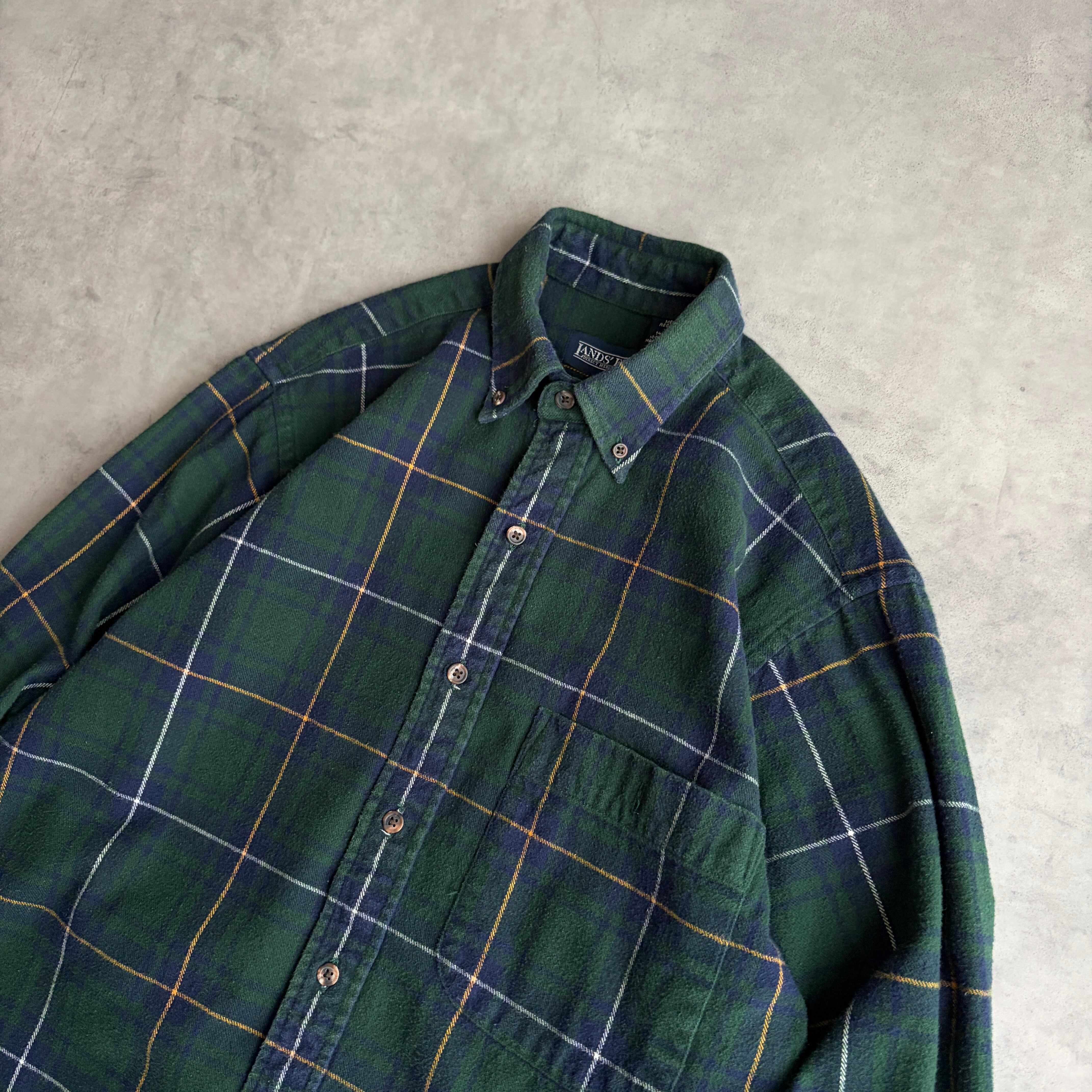 90s/LANDS'END/ランズエンド/フランネルシャツ/BD/ボタンダウン/ブラックウォッチ/タータンチェック/ウィンドウペン/グリーン/緑