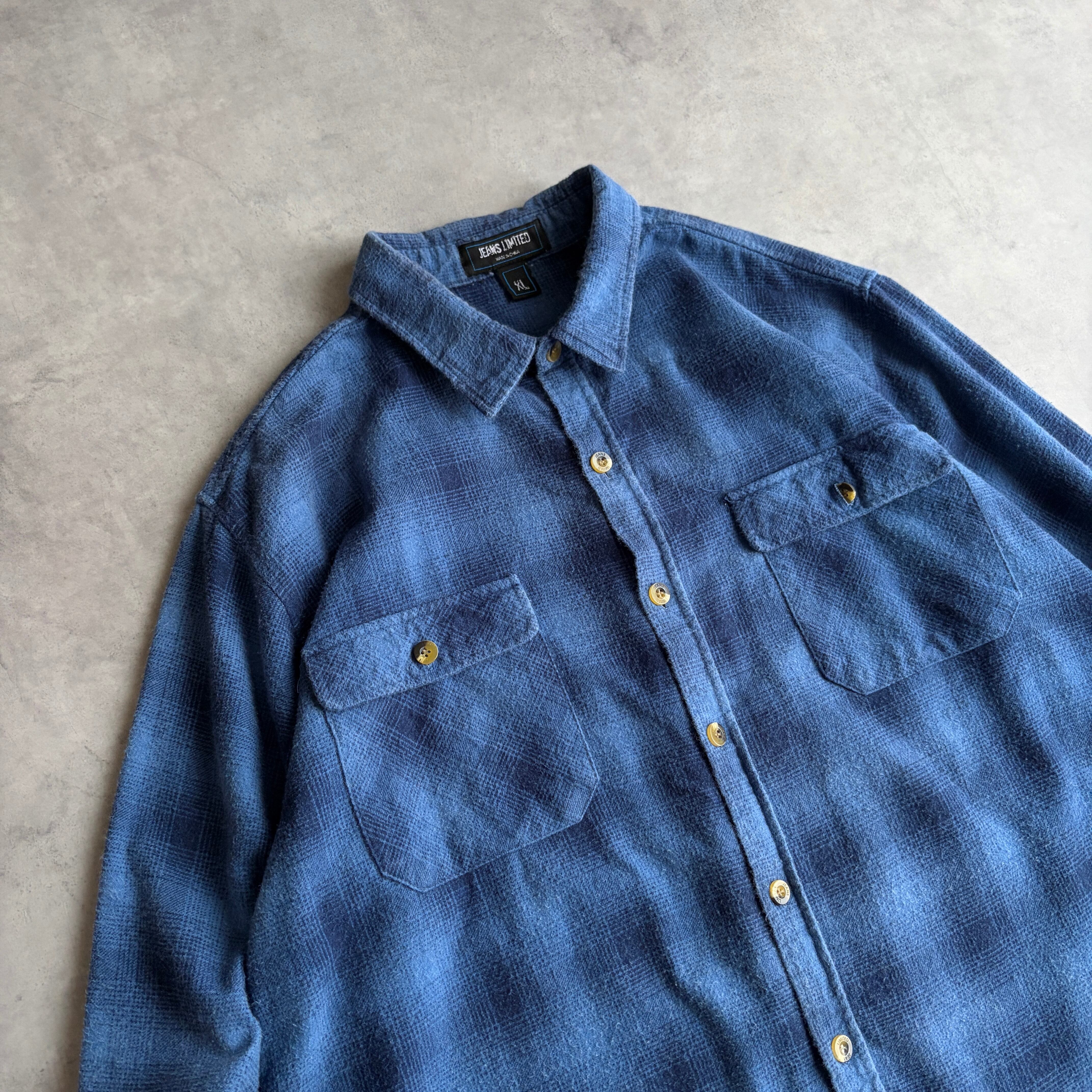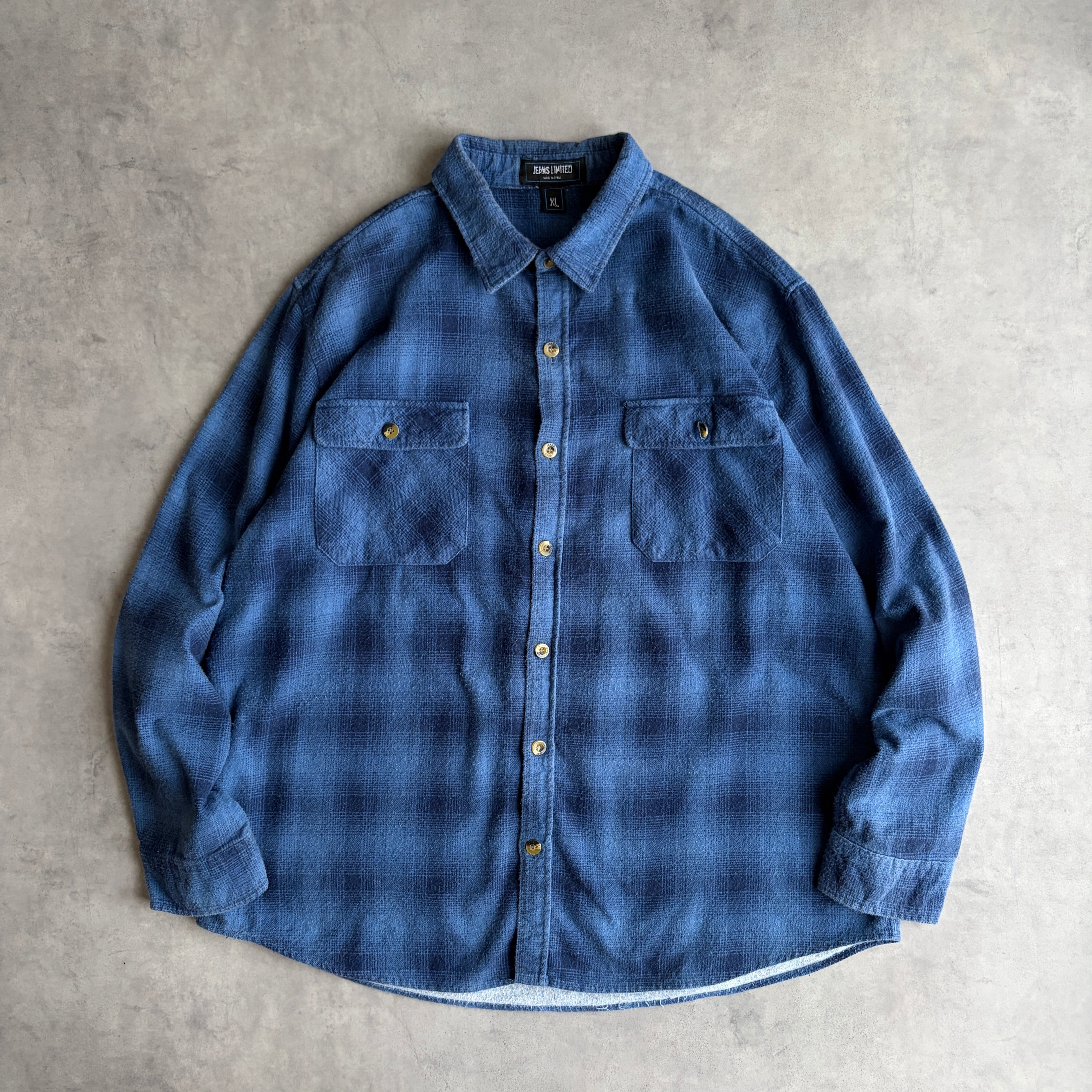 90s〜00s/JEAMS LIMITED/プリントネルシャツ/フランネル生地/オンブレチェック/格子柄/グランジ/ブルー/青