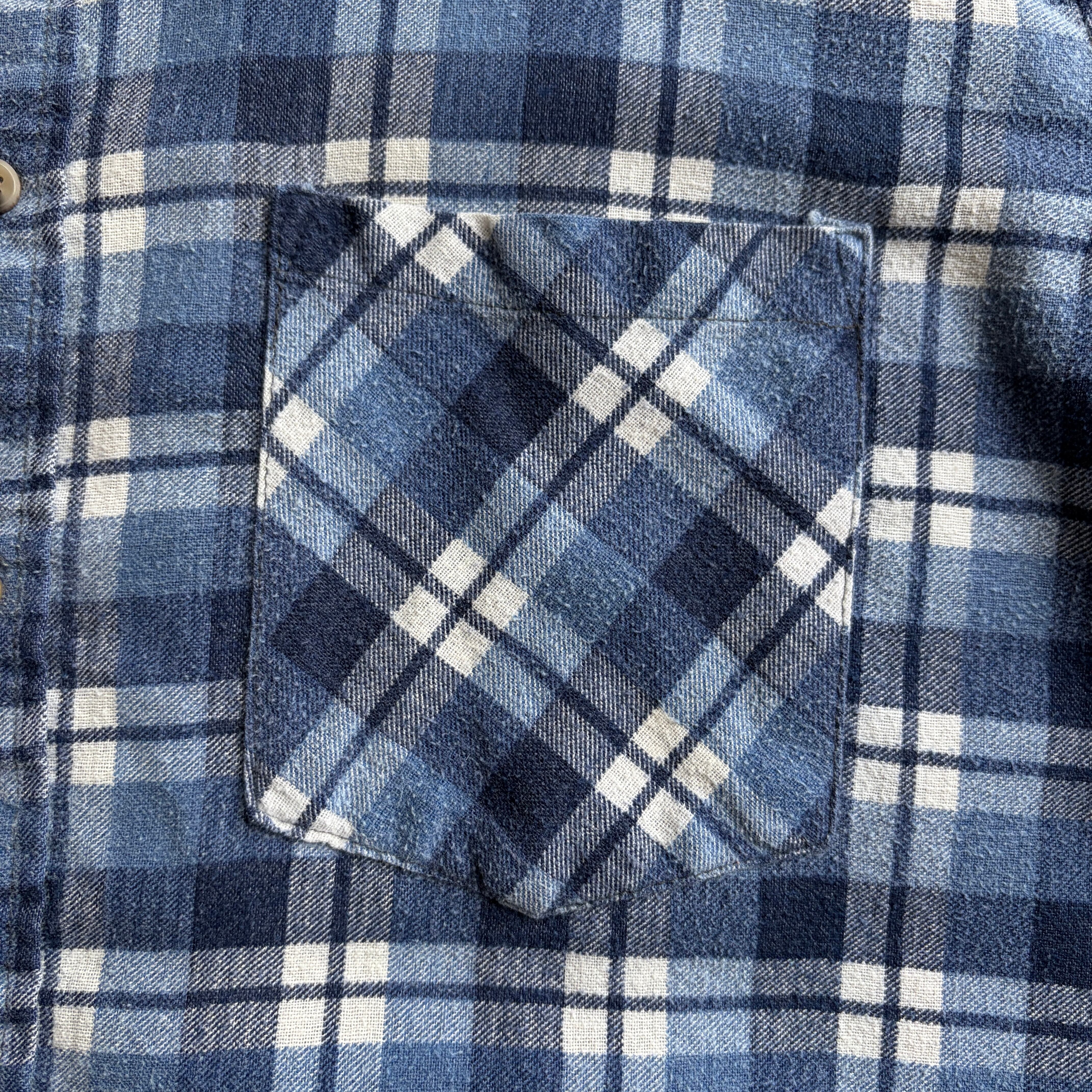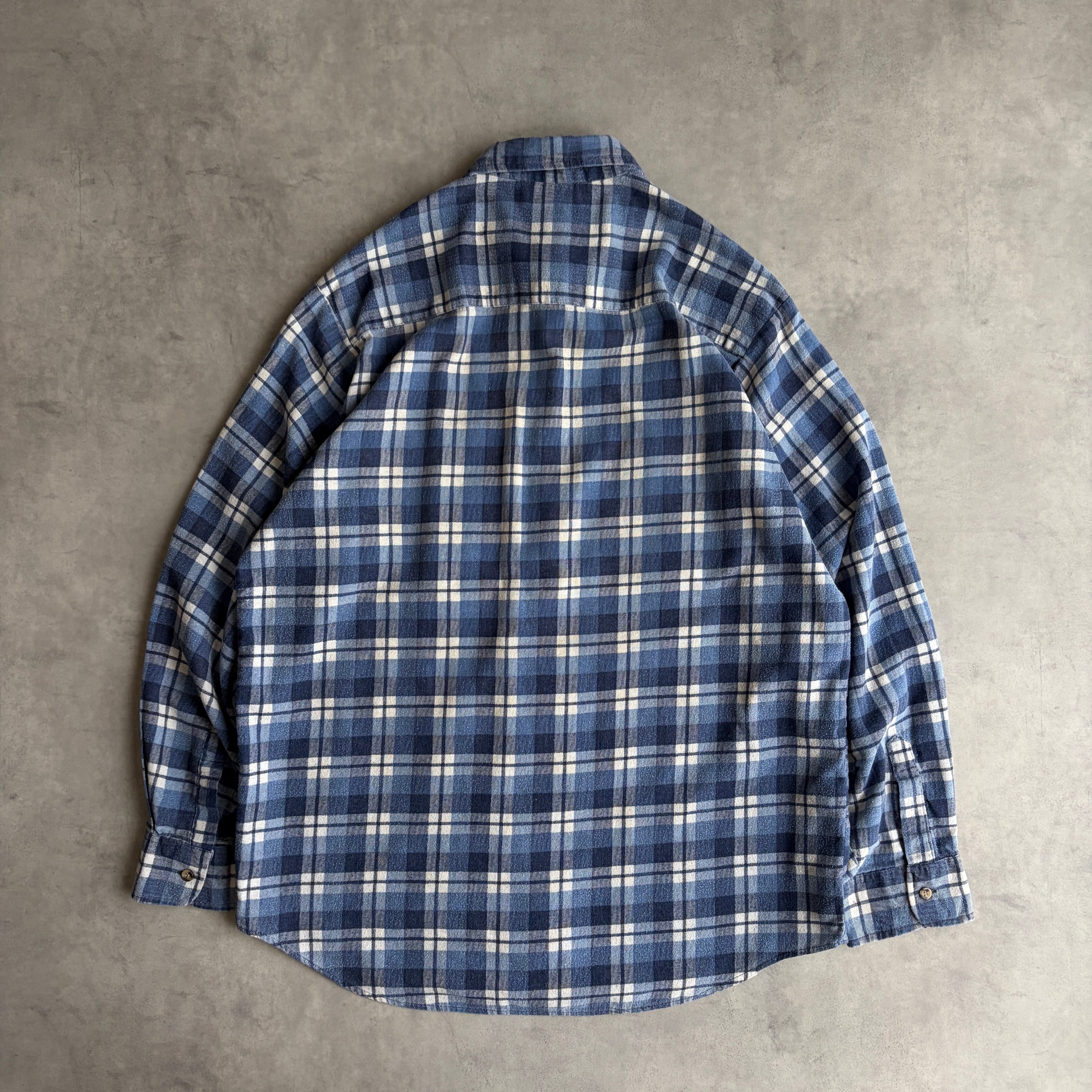 80s/Trails End/プリントネルシャツ/フランネル生地/レギュラーカラー/ギンガムチェック/小格子柄/ブルー/青