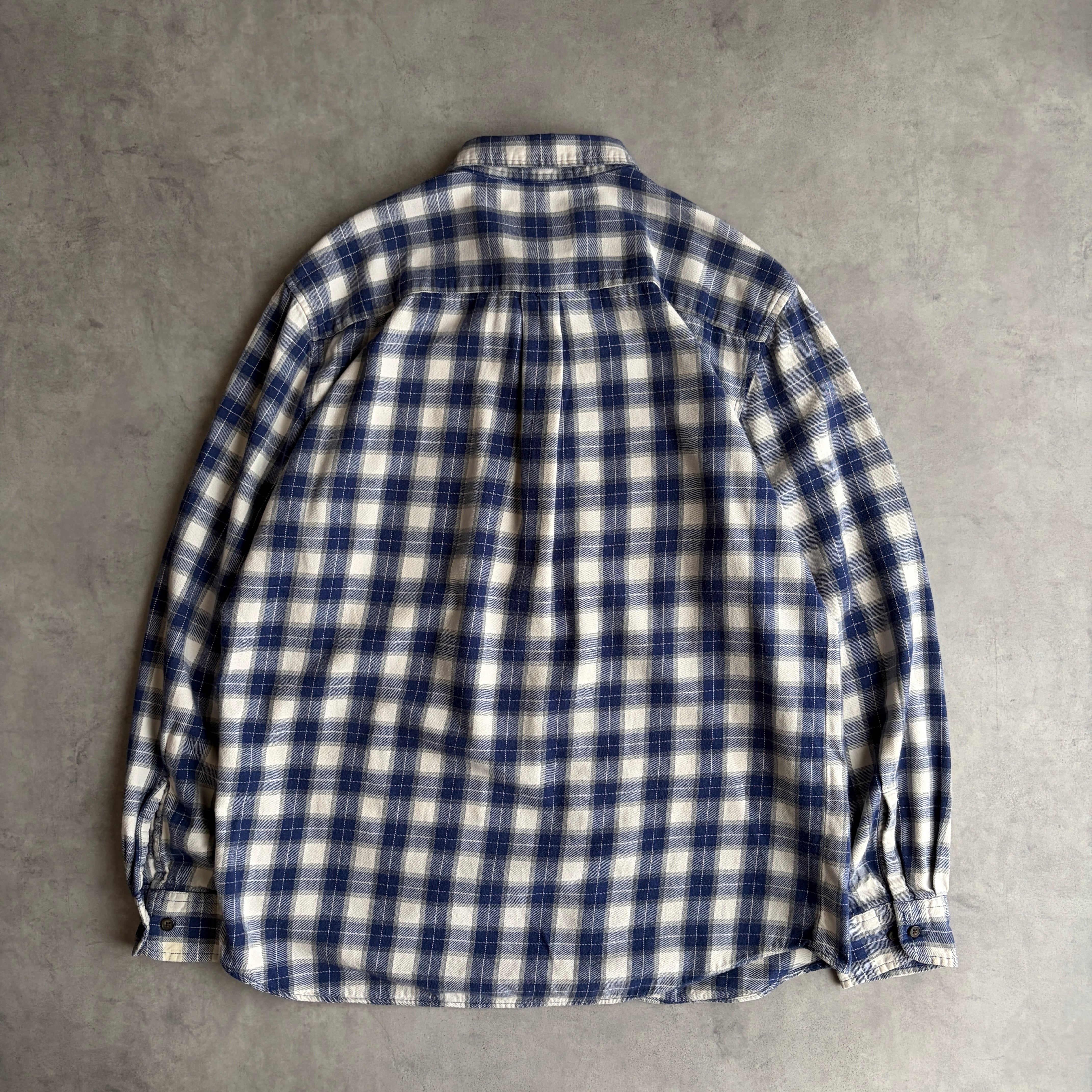 ST JOHN'S BAY/セントジョンズベイ/フランネルシャツ/BD/ボタンダウン/小格子柄/チェック/ブルー/青