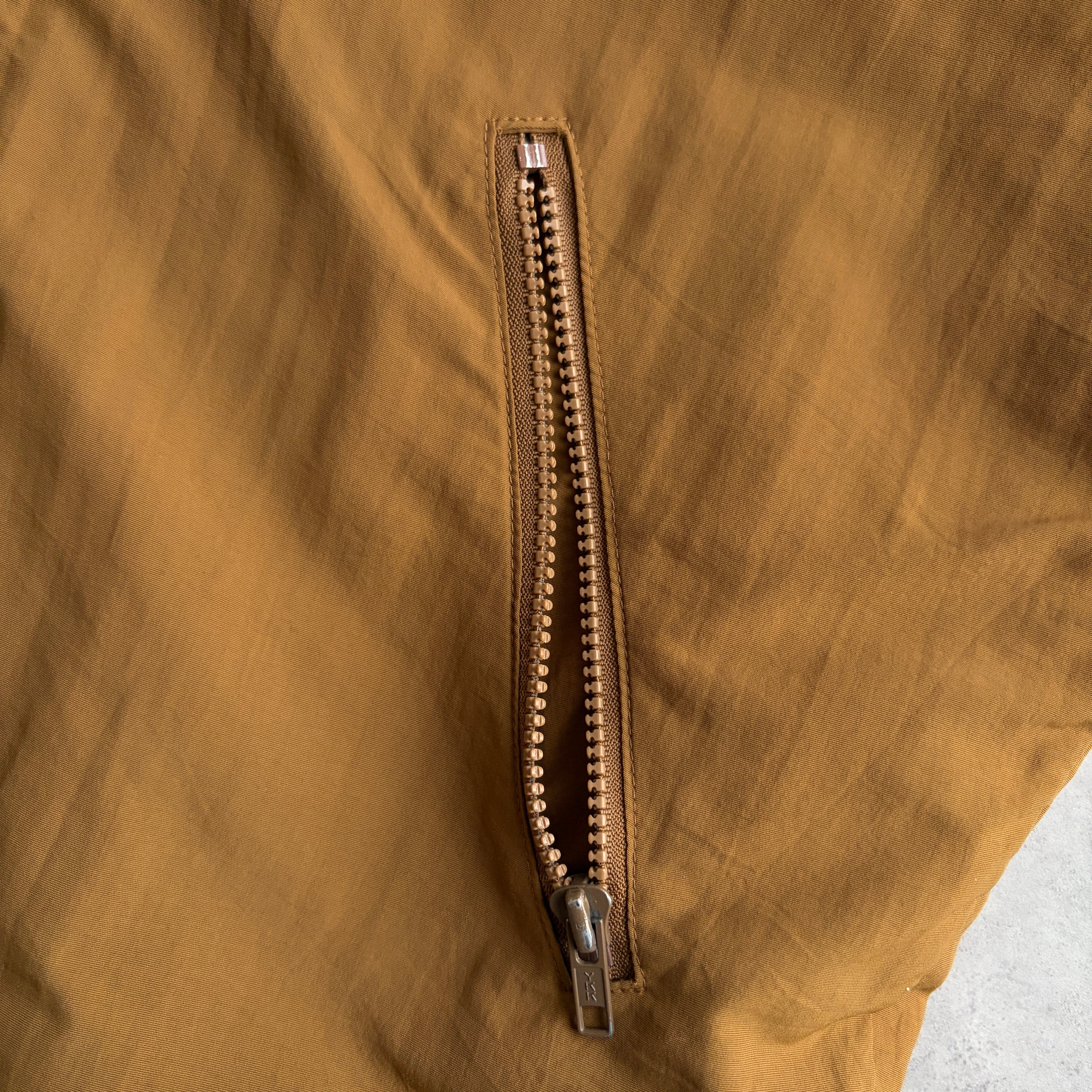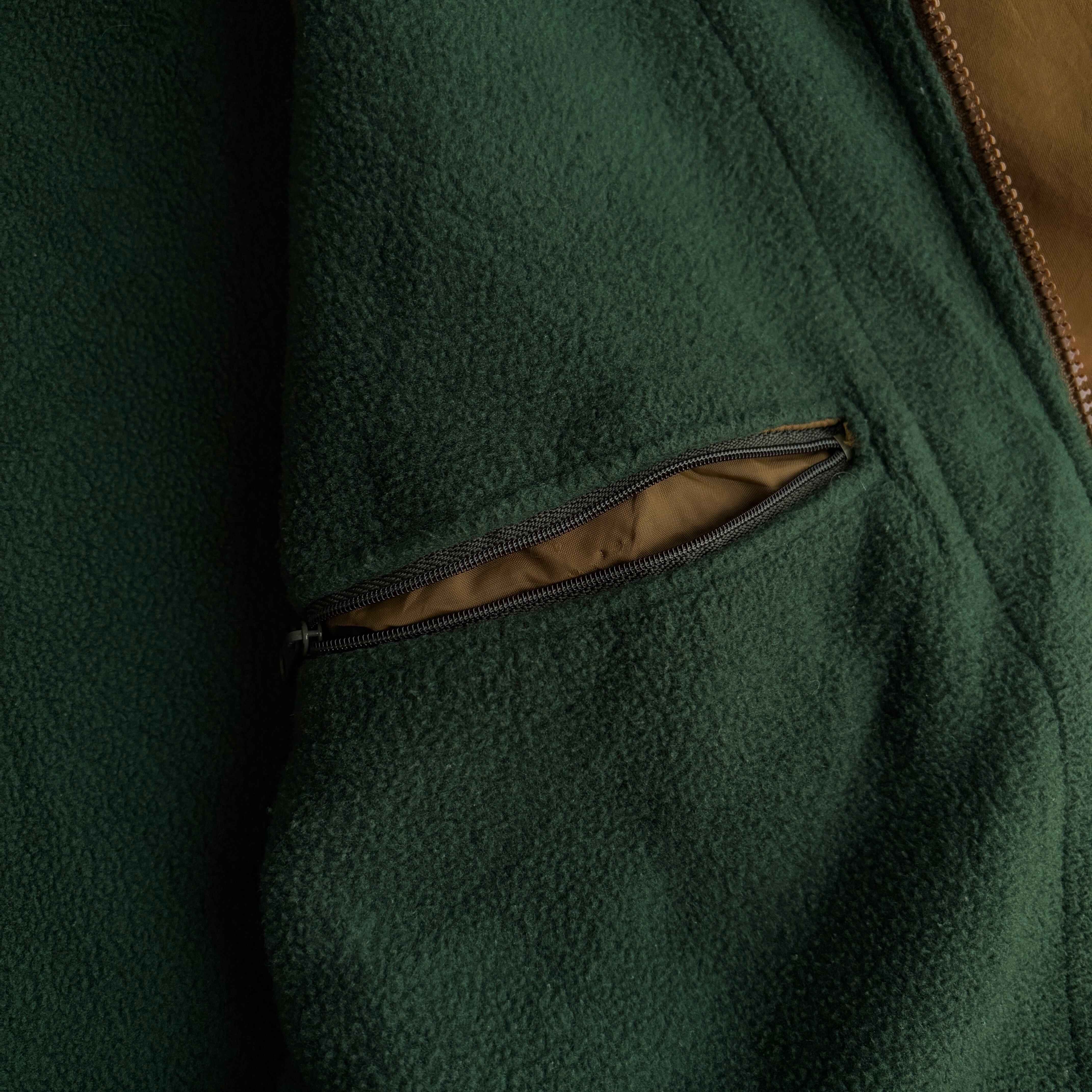 スモールボックスロゴに首まで守ってくれるスタンドカラー、短丈ながらも身幅もあり、外はナイロン裏地はフリース(POLARTEC)で寒い冬にはもってこいのアイテムです。