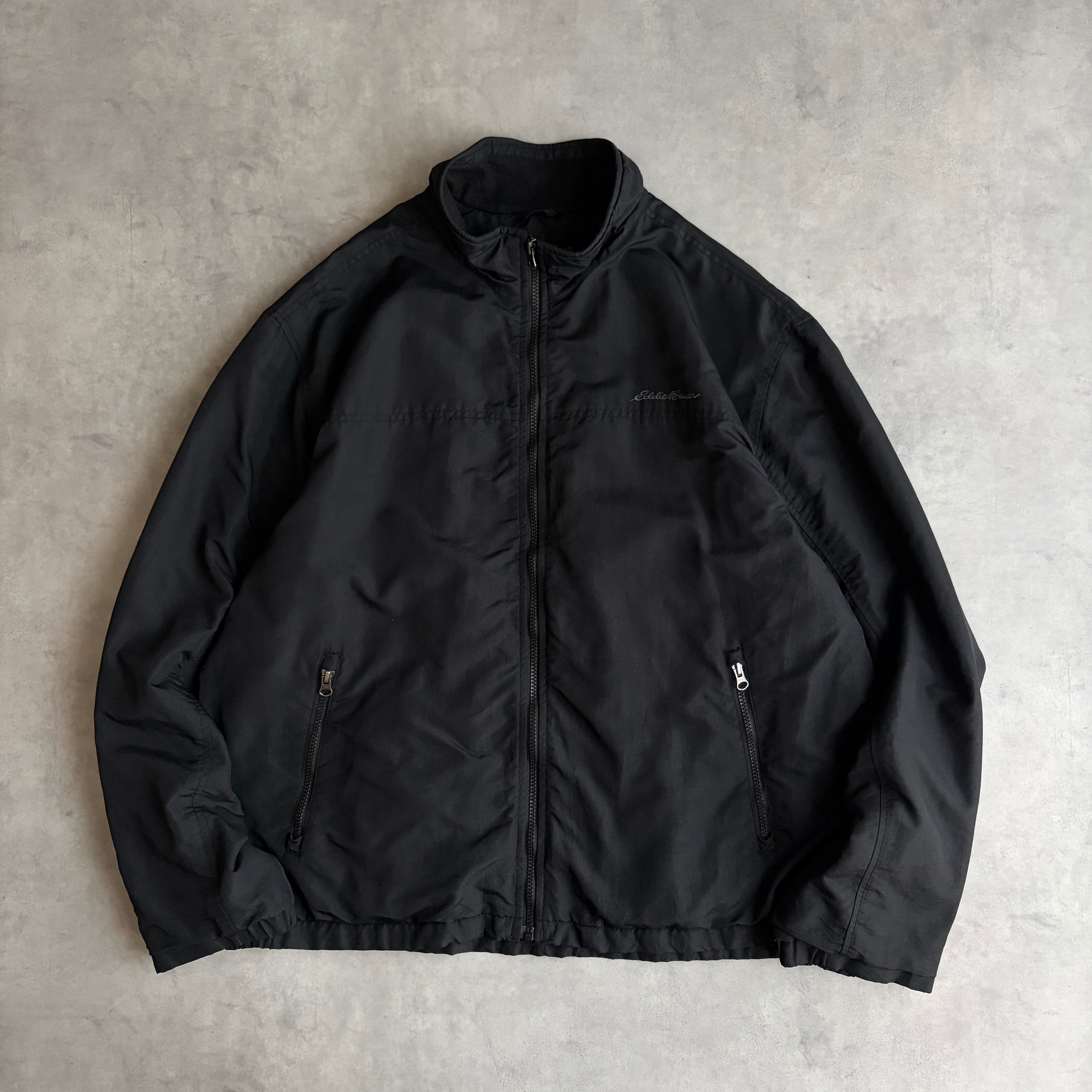 00s/Eddie Bauer/エディーバウアー/シェルドジャケット/裏フリース/スタンドカラー/立ち襟/ロゴ刺繍/ワンポイント/ソリッド/ノームコア/ブラック/黒