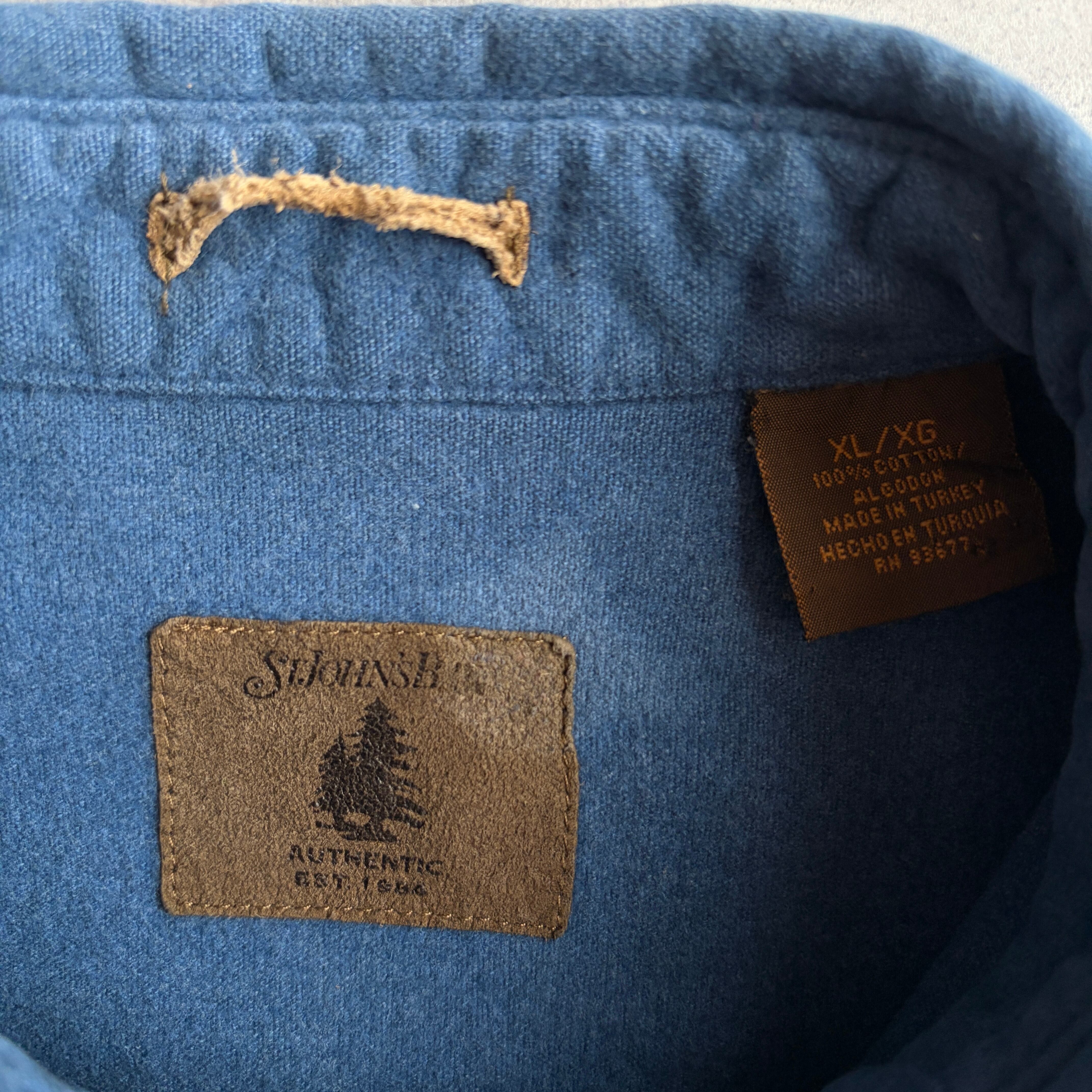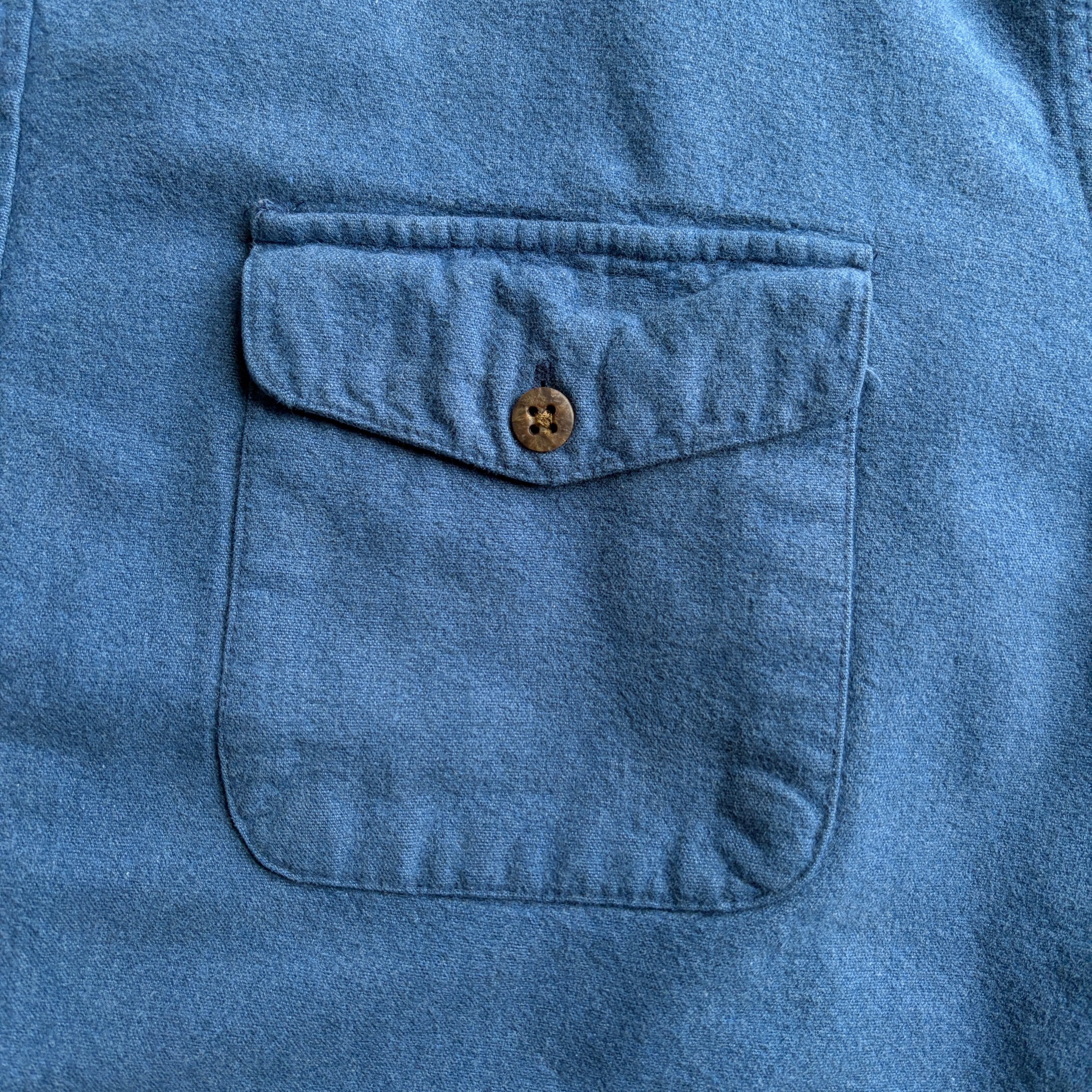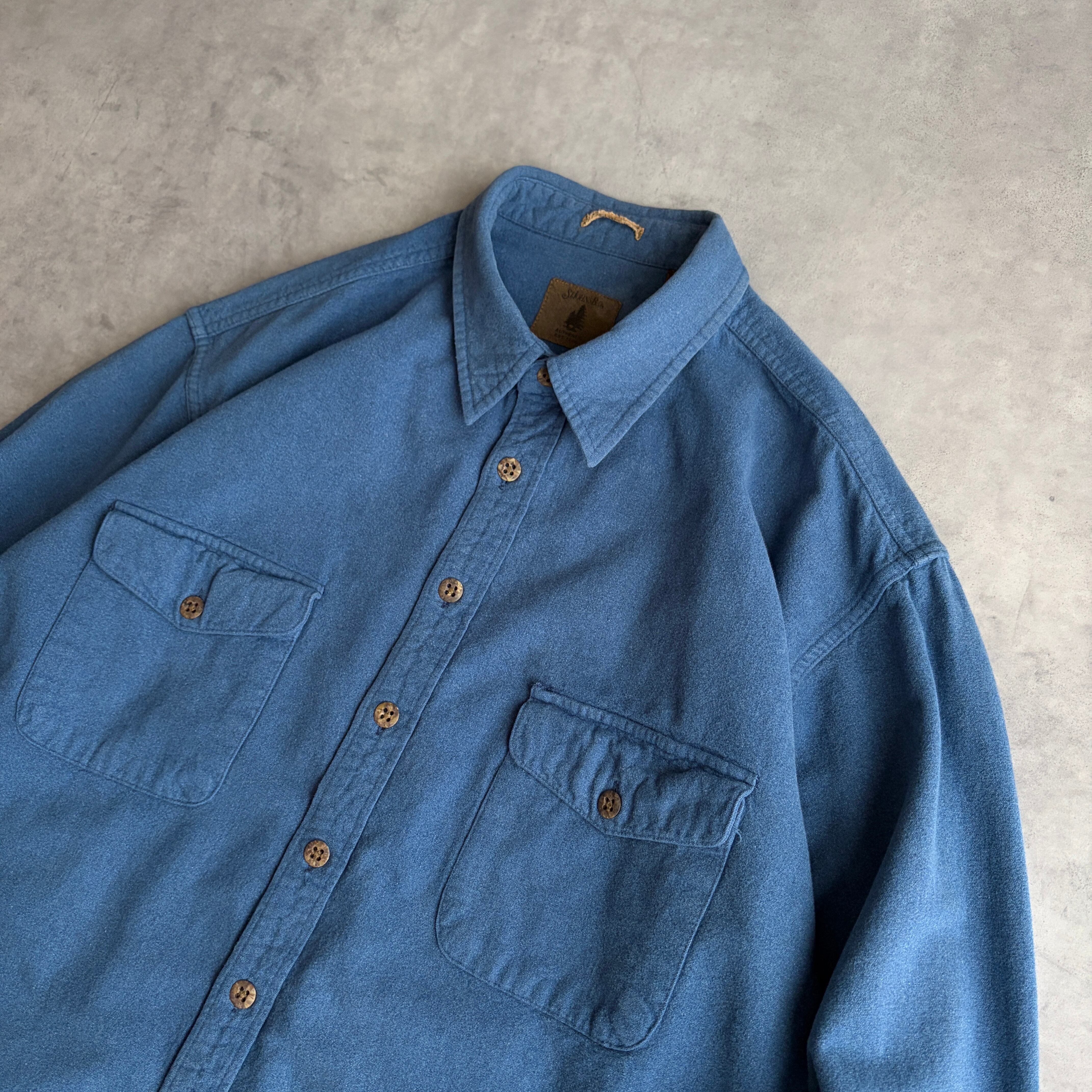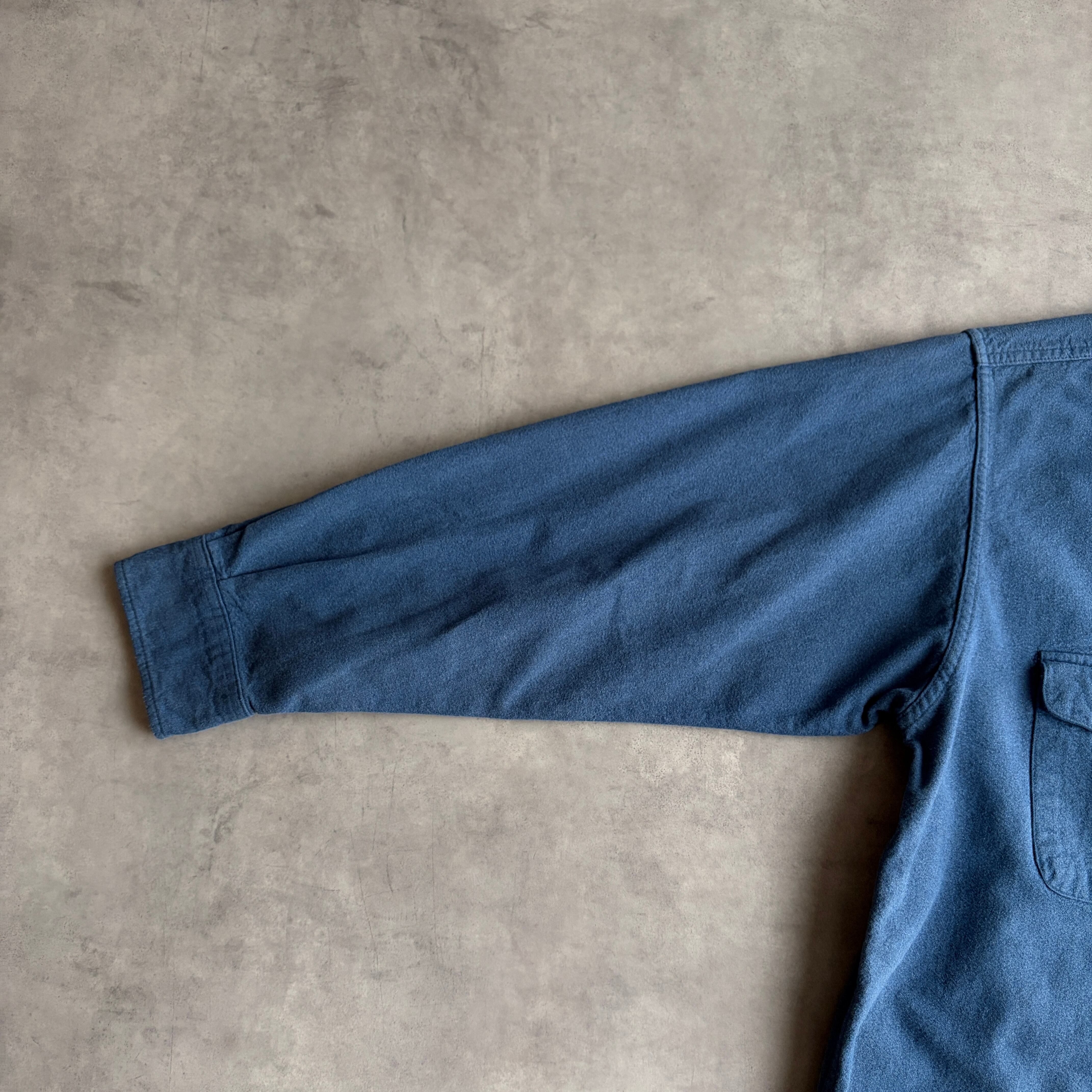 90s/ST JOHN'S BAY/セントジョンズベイ/CHAMOIS CLOTH/シャモアクロス/ヘビーネルシャツ/フランネル生地/フラップポケット/無地/ソリッド/ノームコア/ブルー/青