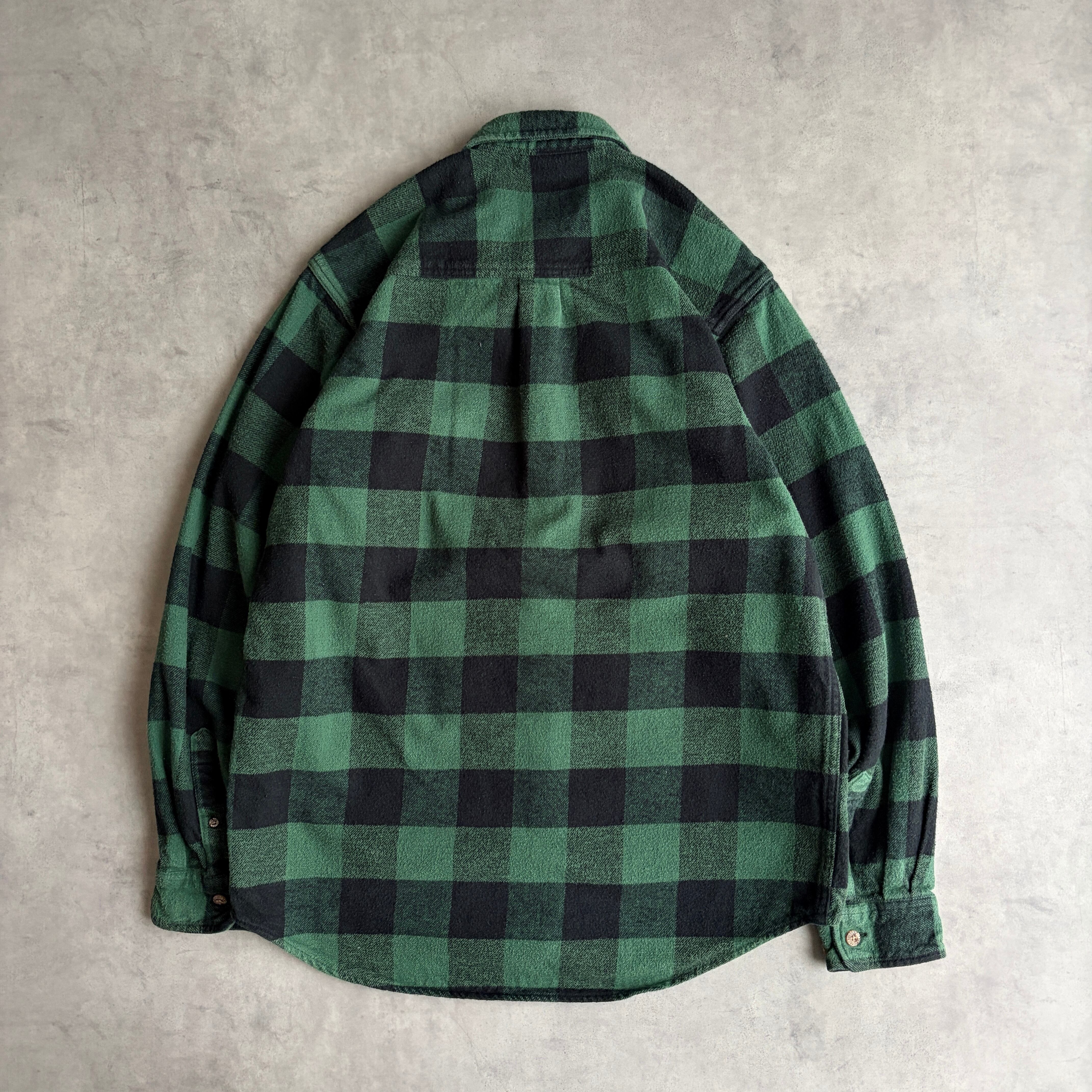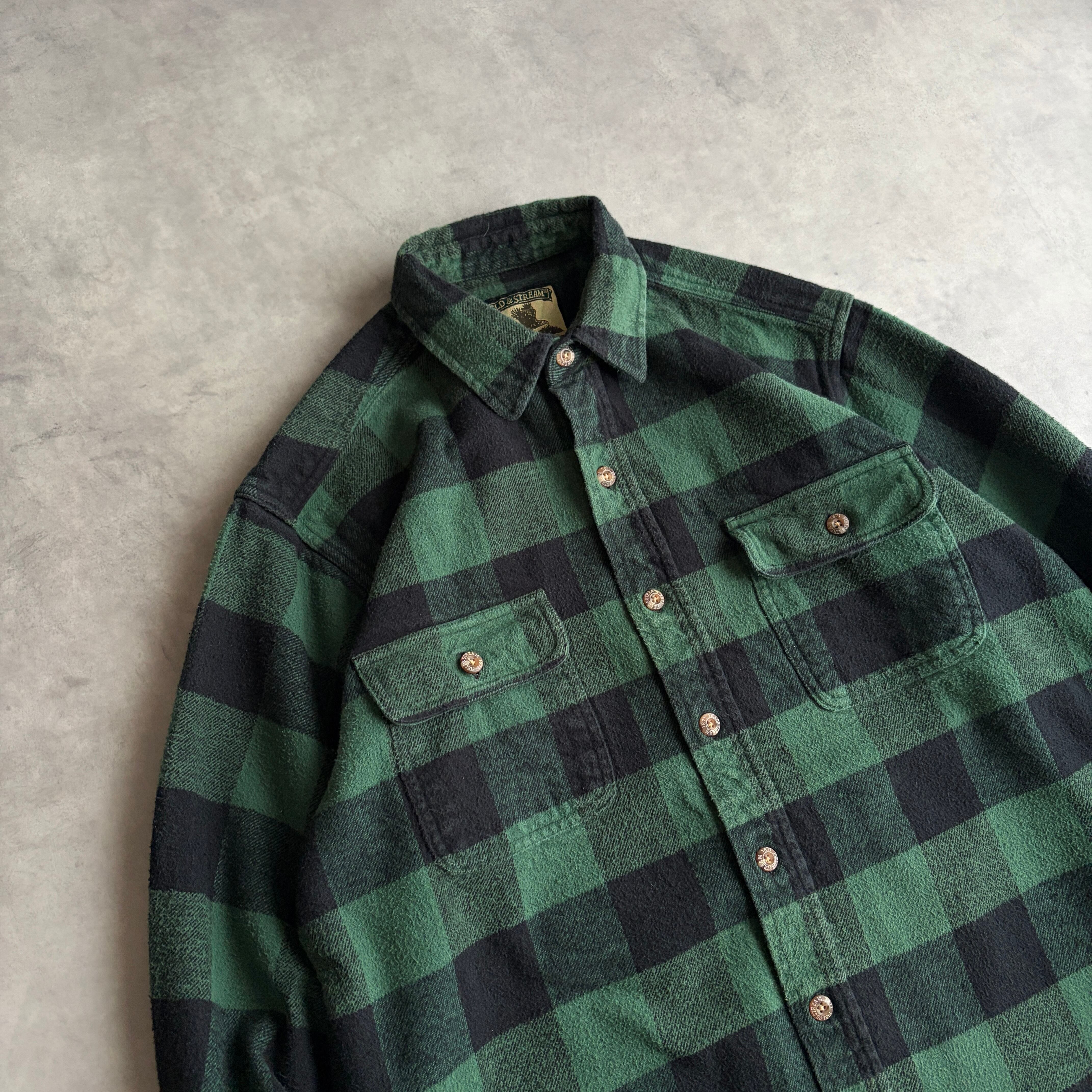 00s/FIELD&STREAM/ヘビーネルシャツ/フランネル生地/肉厚/バッファローチェック/ブロック/格子柄/グリーン×ブラック/緑×黒