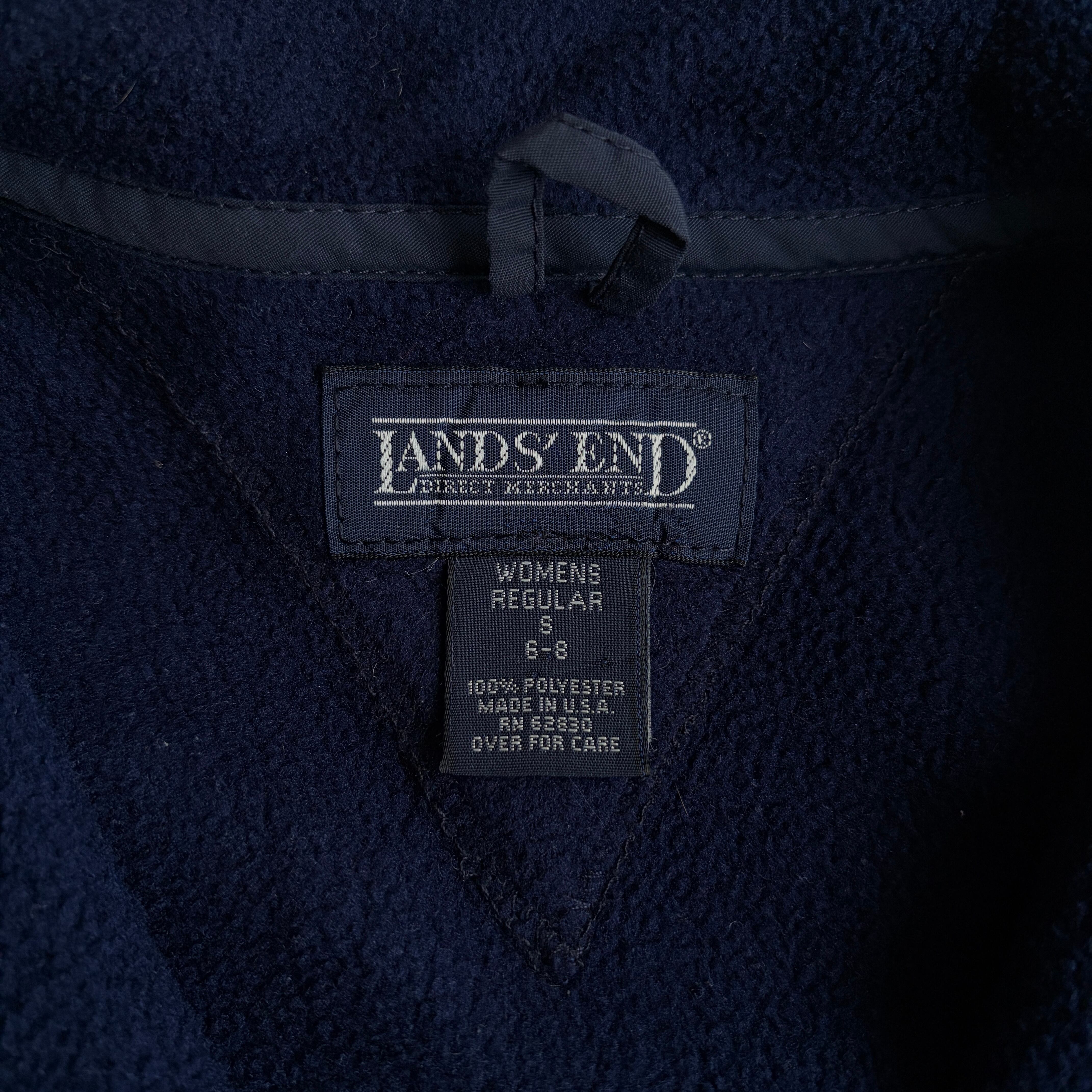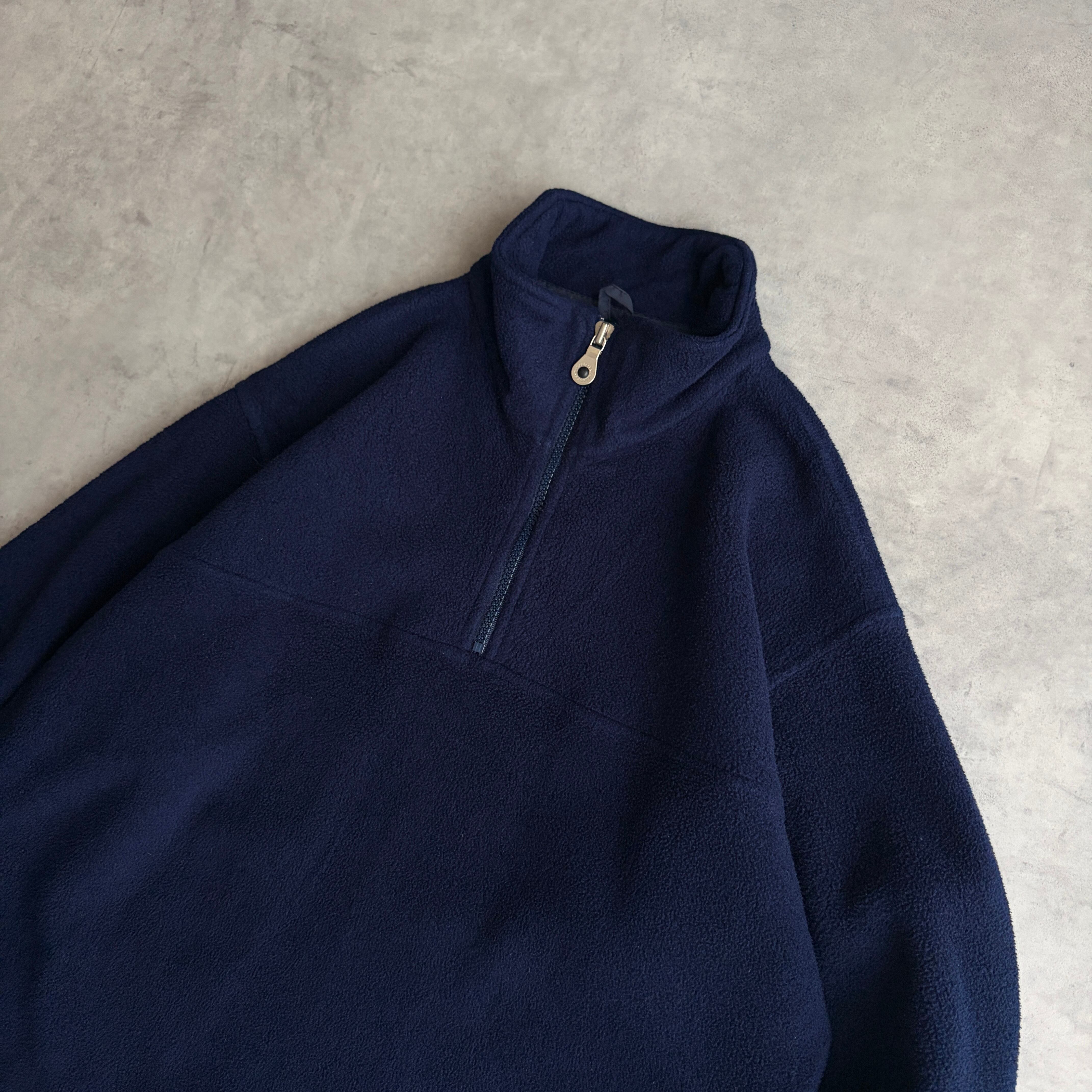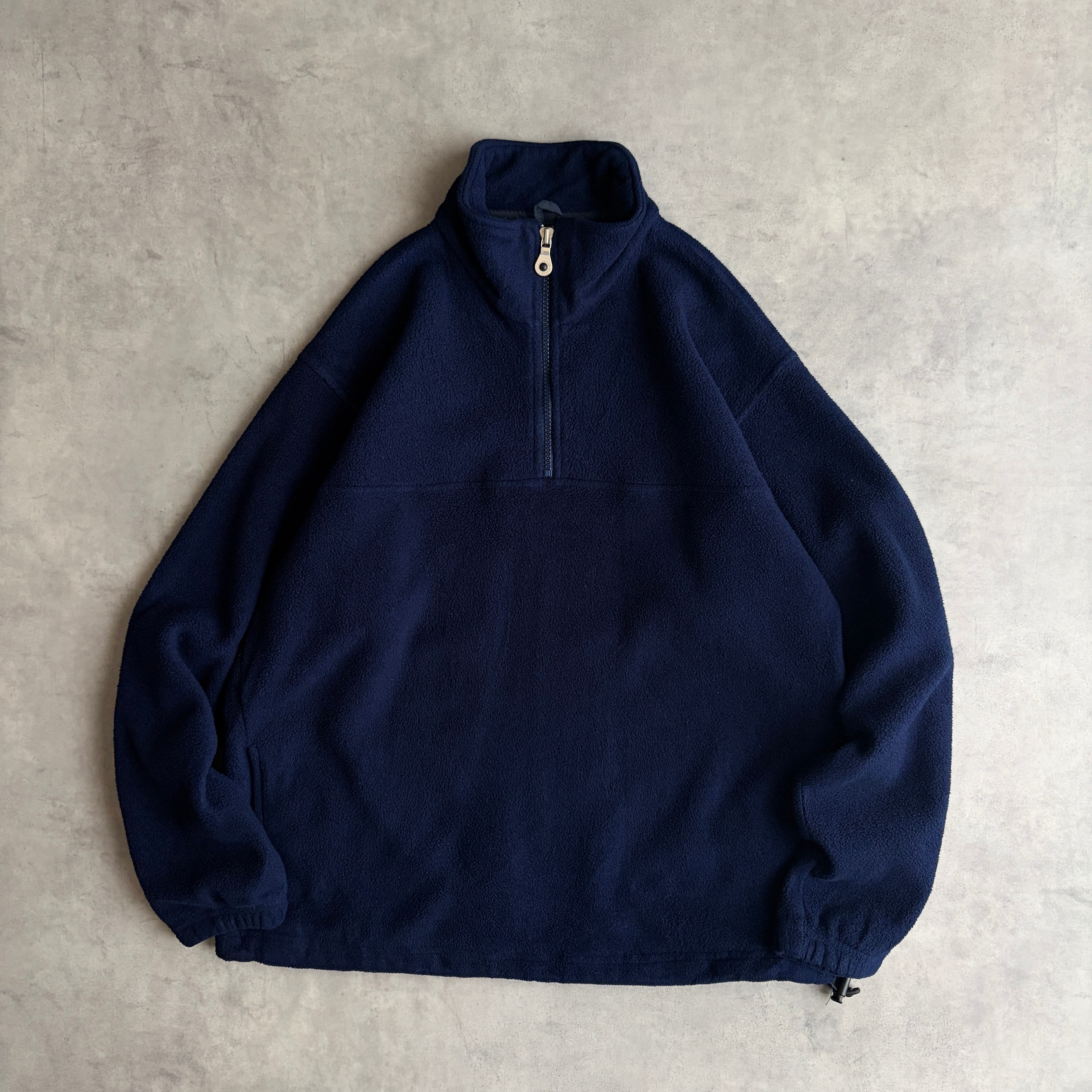 90s/LANDS'END/ランズエンド/ハーフジップフリース/プルオーバー/スタンドカラー /立ち襟/USA製/アメリカ製/裾ドローコード/ノームコア/ソリッド/ロゴ刻印/ネイビー/紺