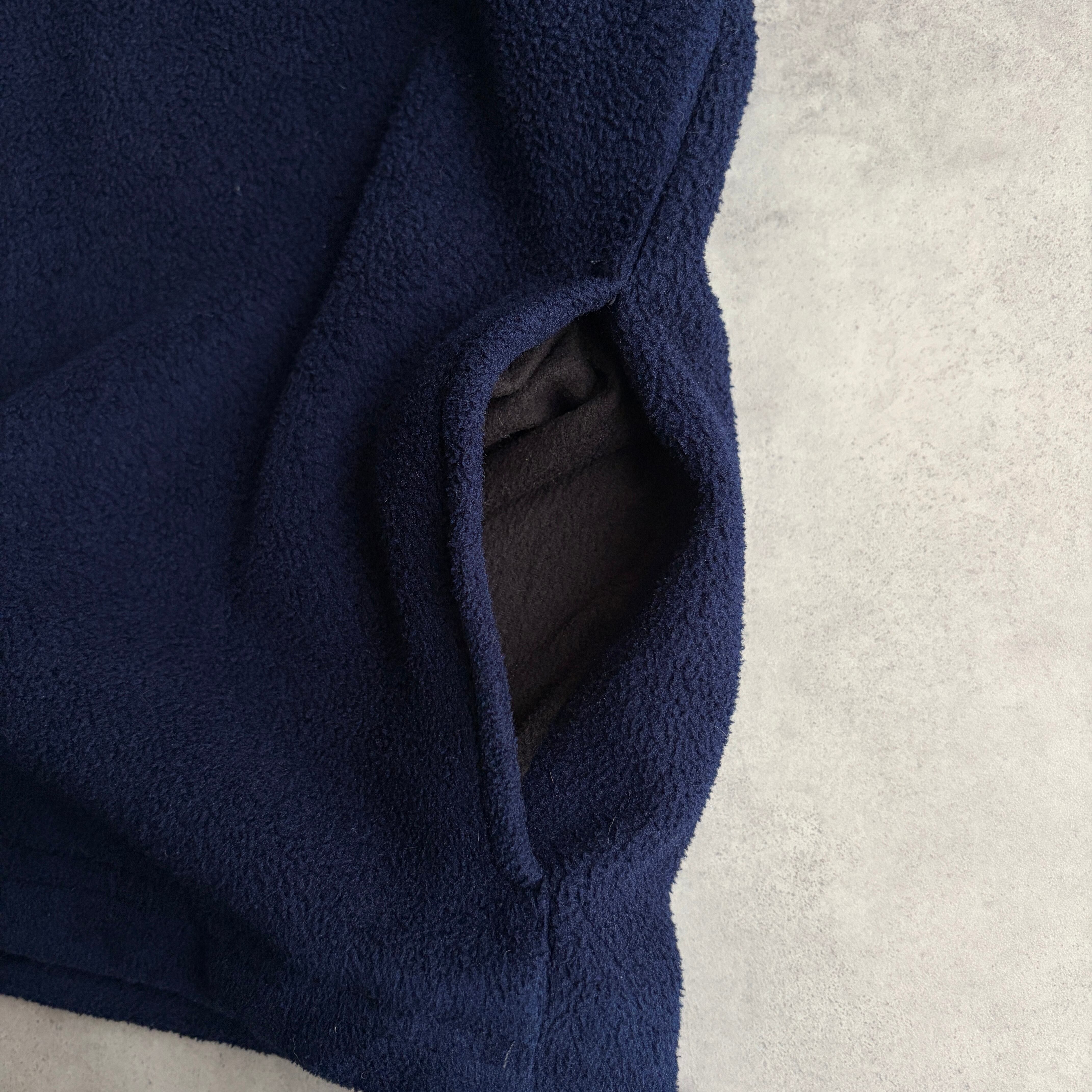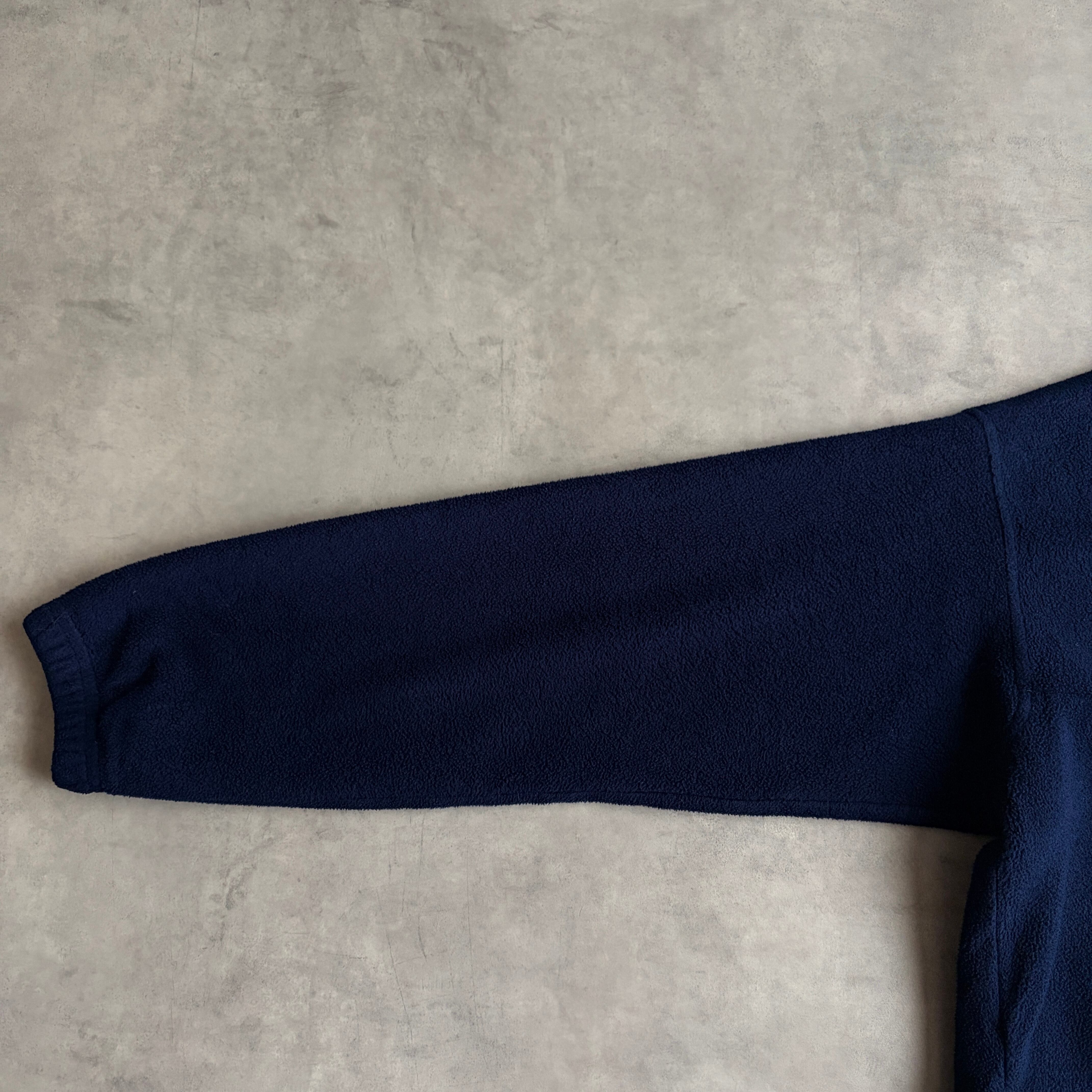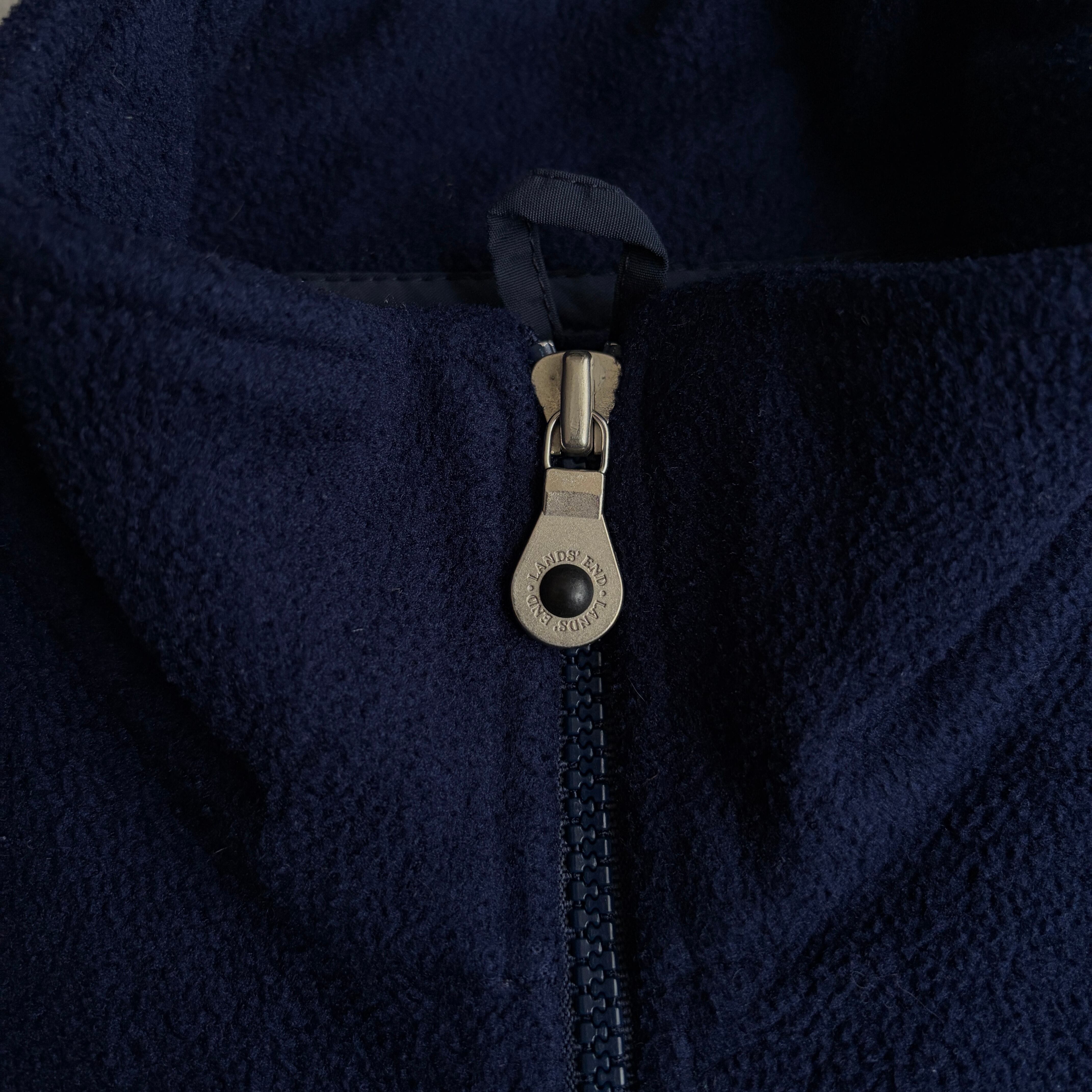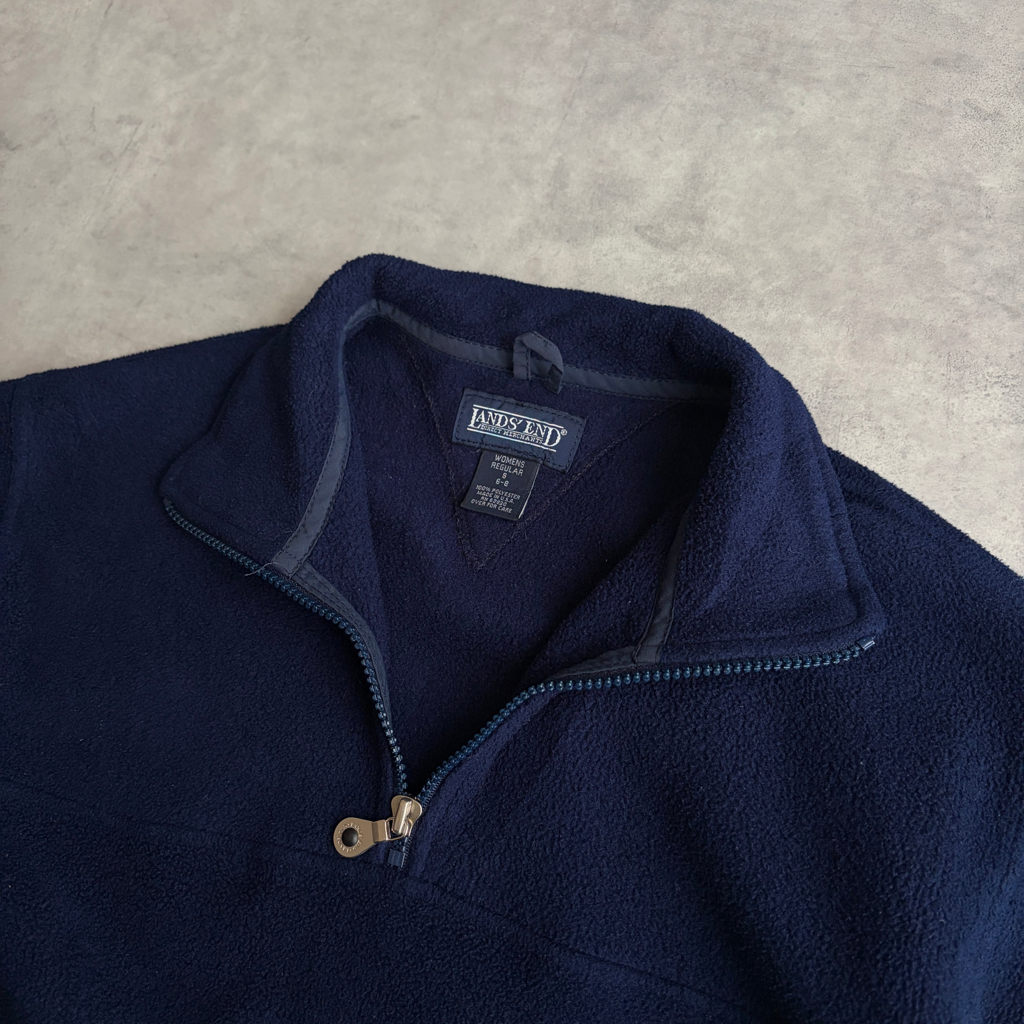 90s/LANDS'END/ランズエンド/ハーフジップフリース/プルオーバー/スタンドカラー /立ち襟/USA製/アメリカ製/裾ドローコード/ノームコア/ソリッド/ロゴ刻印/ネイビー/紺