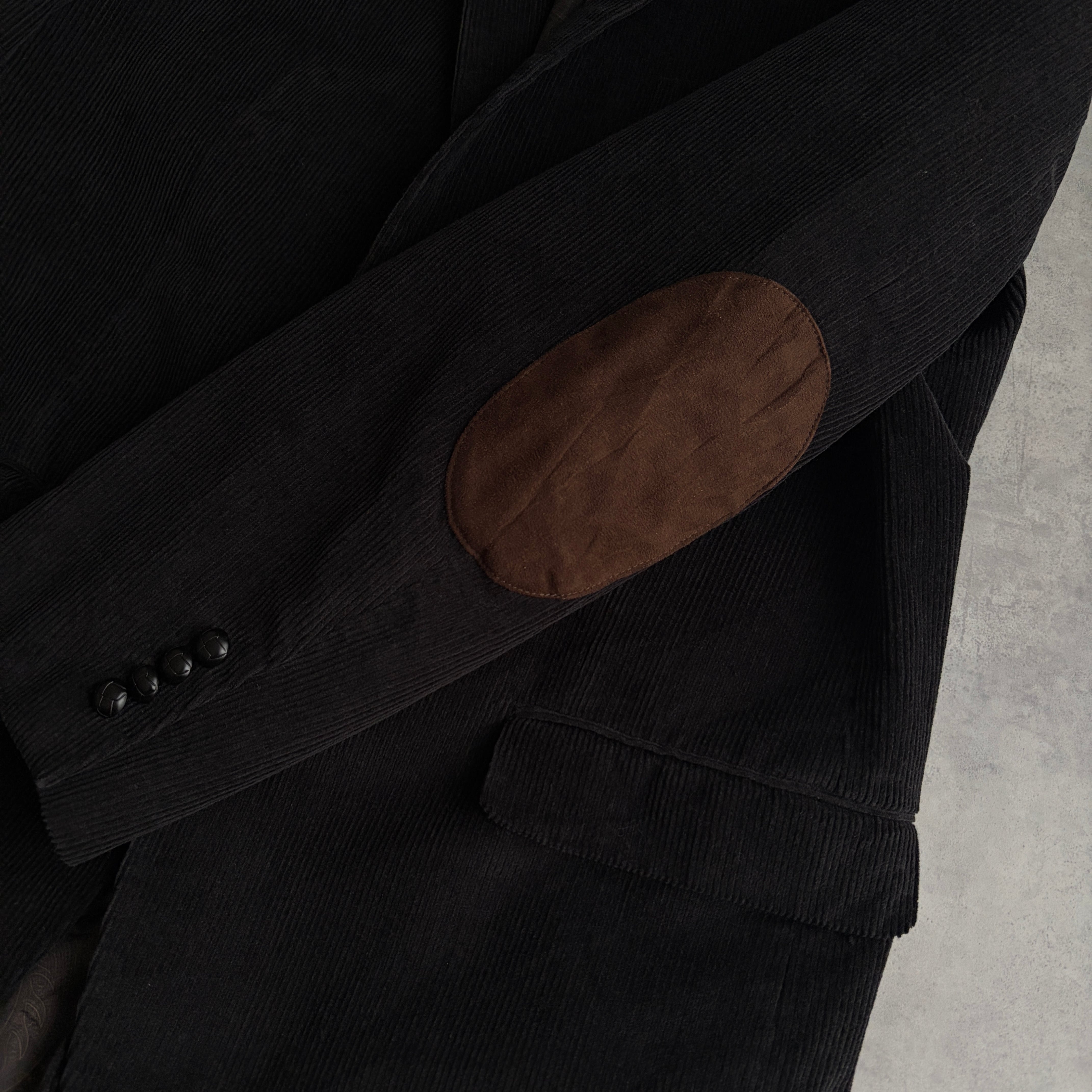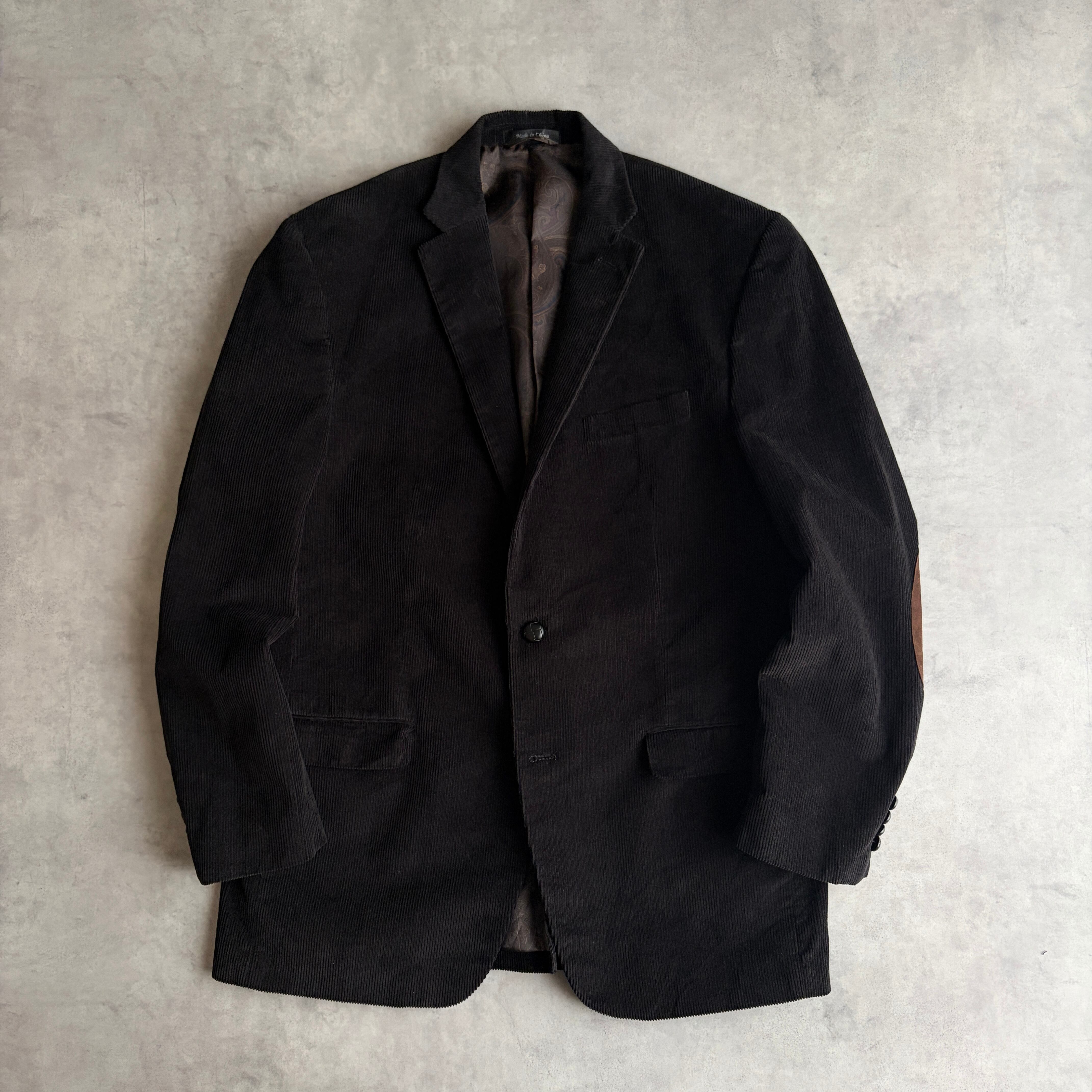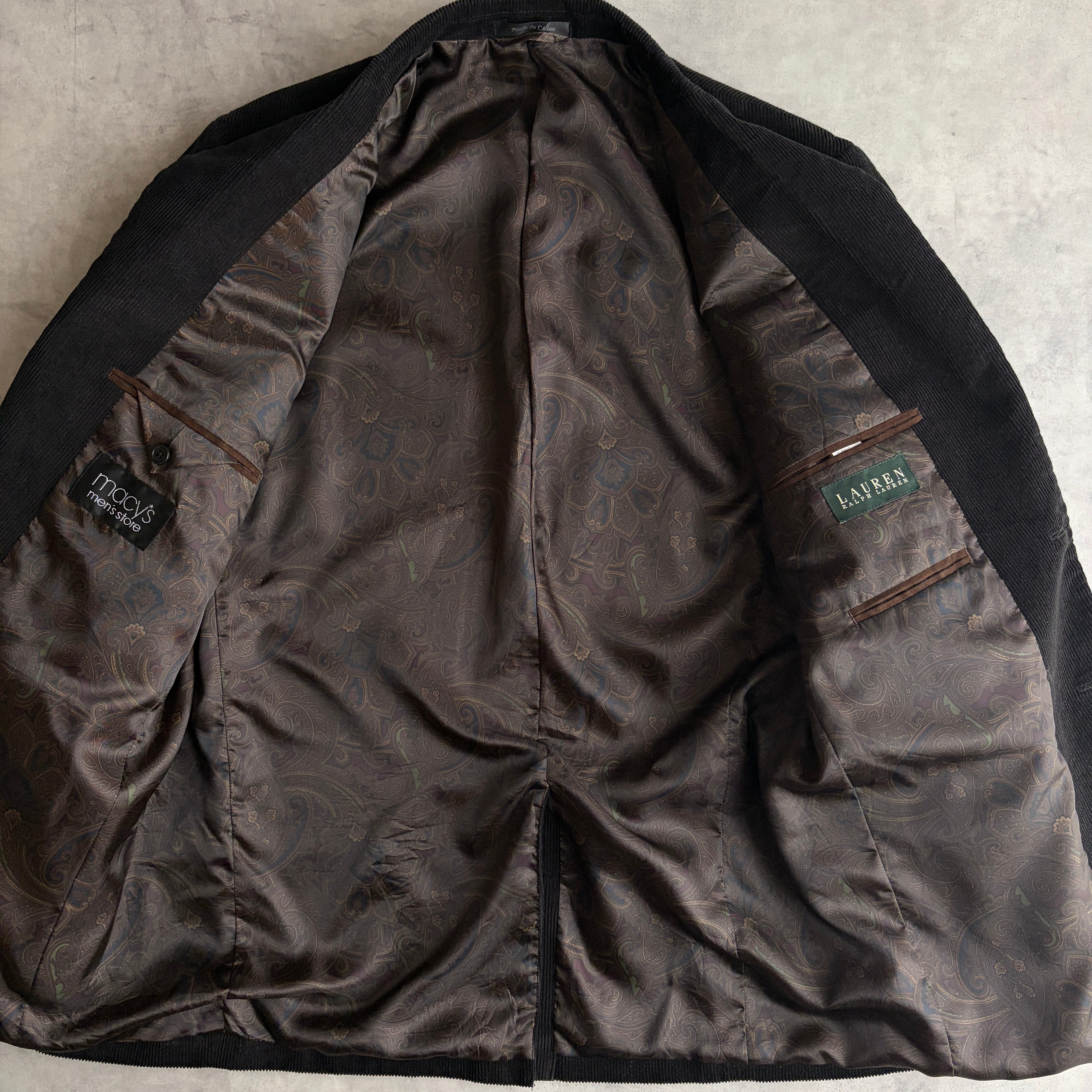 LAUREN RALPH LAUREN×macy's/ローレンラルフローレン/テーラードジャケット/コーデュロイ/コーズ/エルボーパッチ/ペイズリー柄/襟裏スエード/くるみボタン/ブラック/黒
