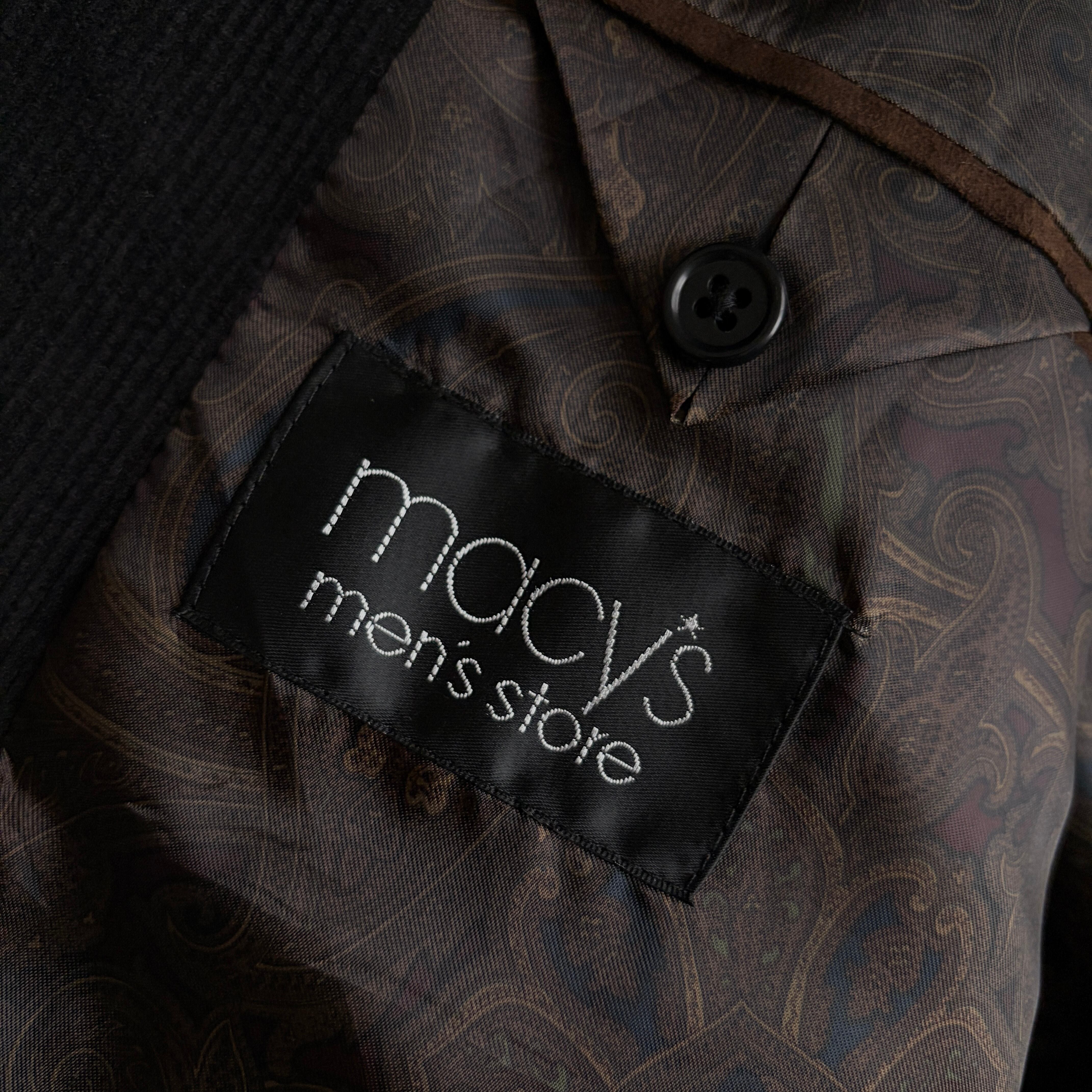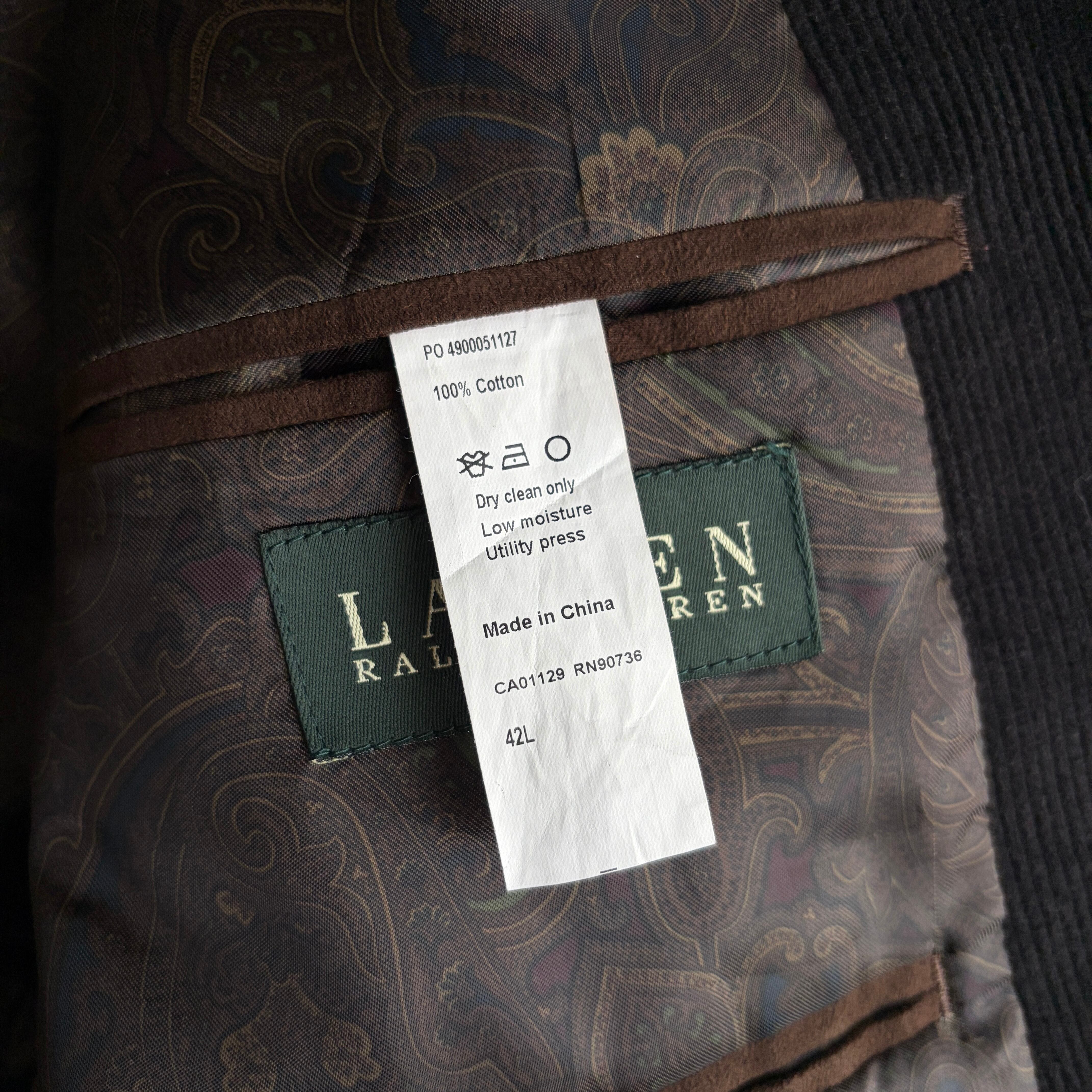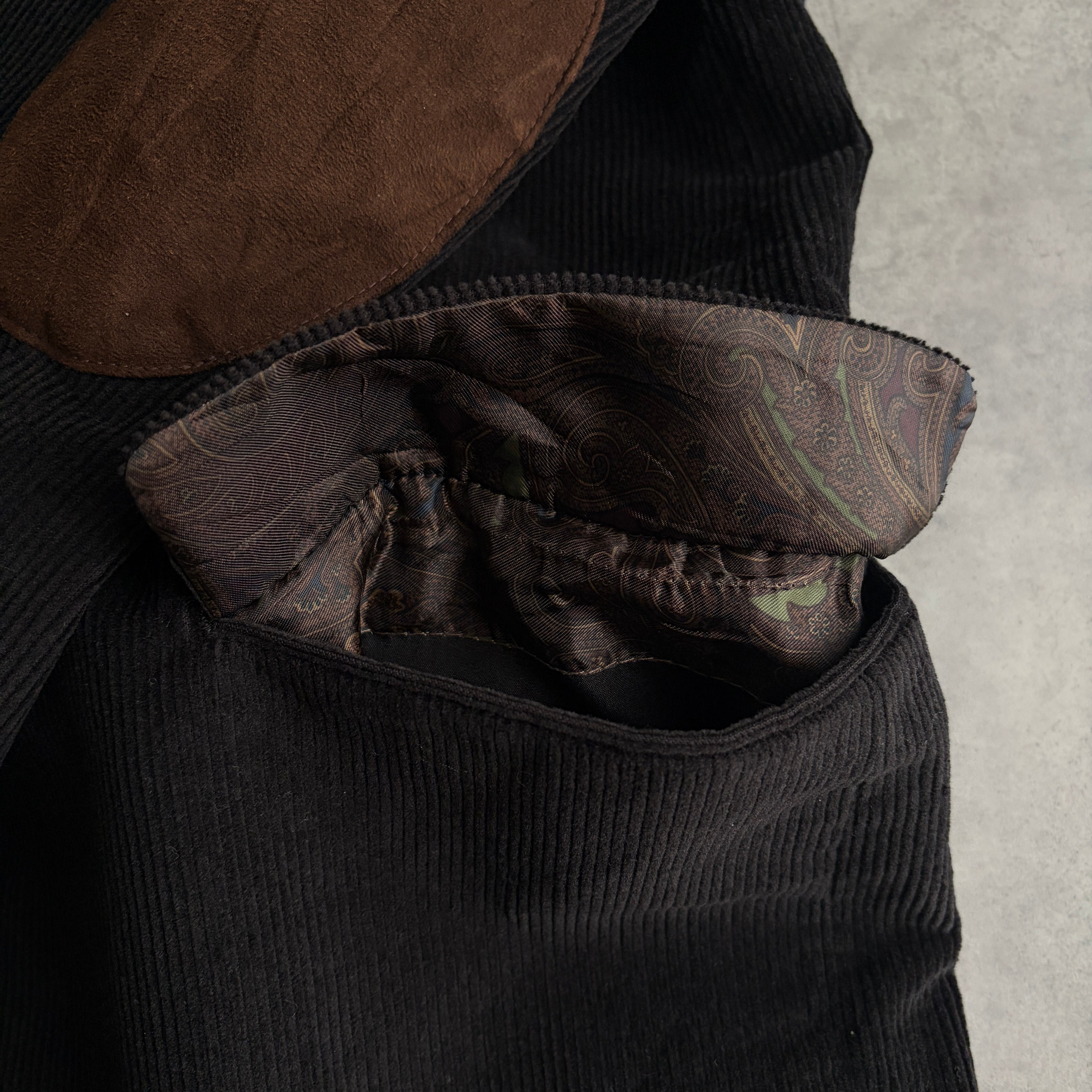 LAUREN RALPH LAUREN×macy's/ローレンラルフローレン/テーラードジャケット/コーデュロイ/コーズ/エルボーパッチ/ペイズリー柄/襟裏スエード/くるみボタン/ブラック/黒