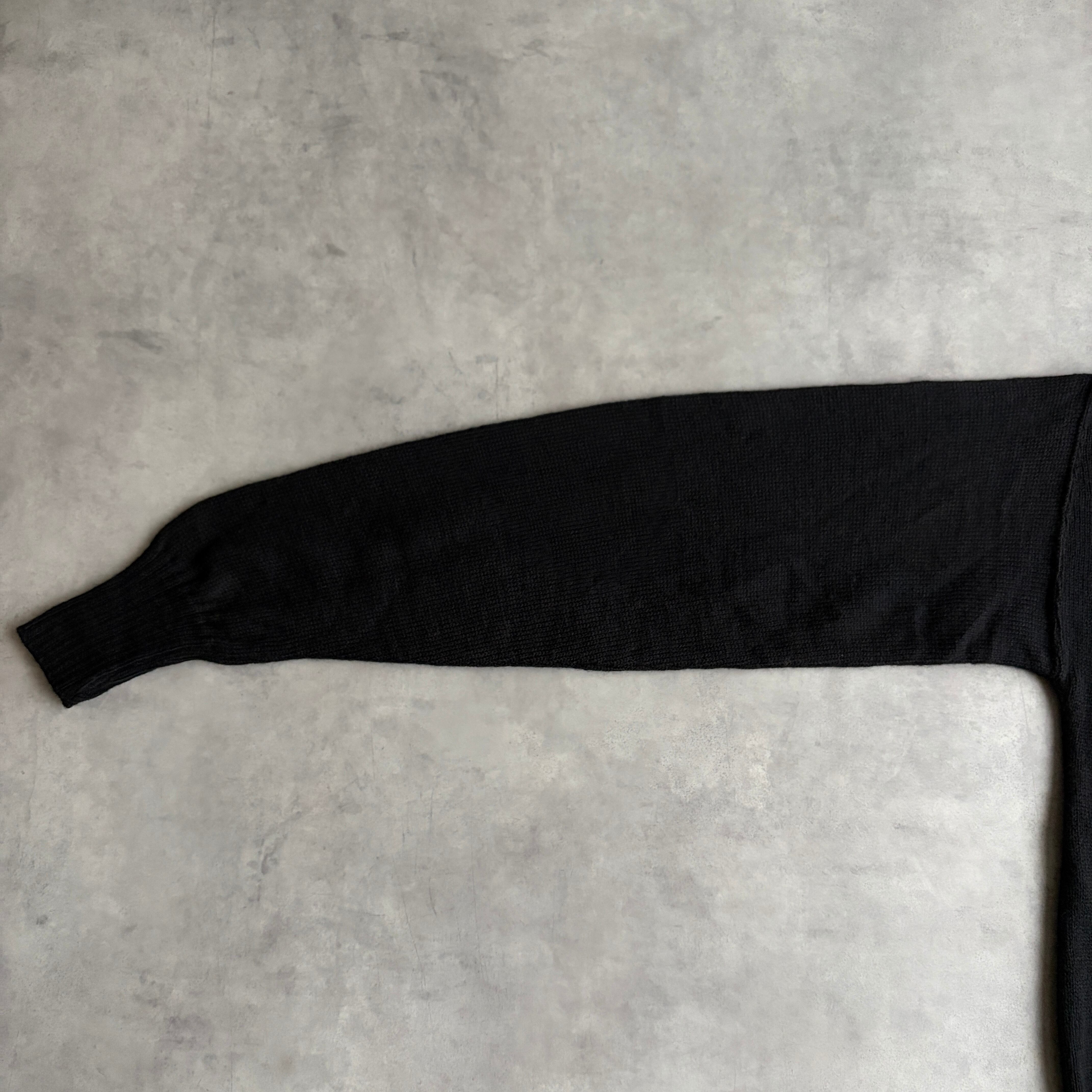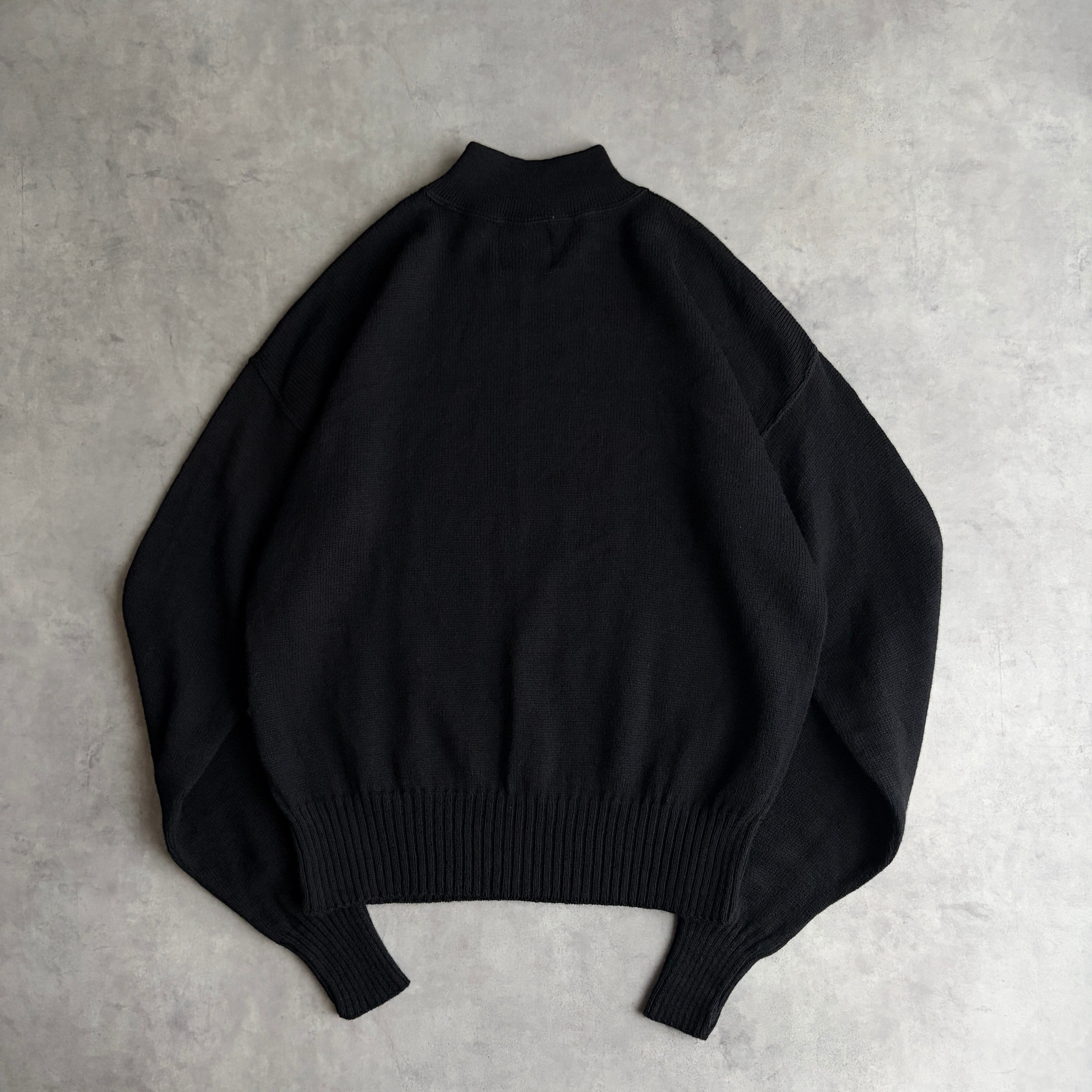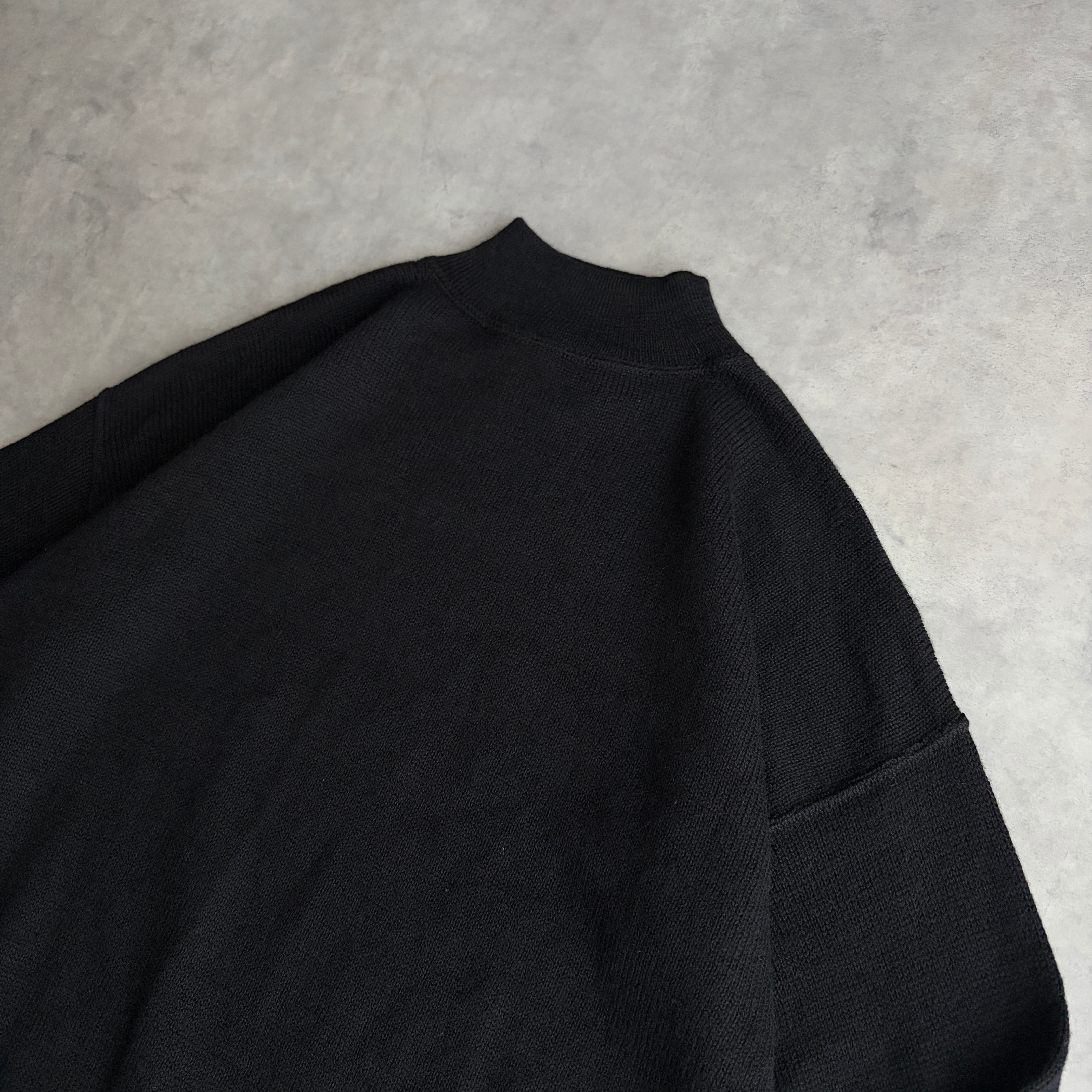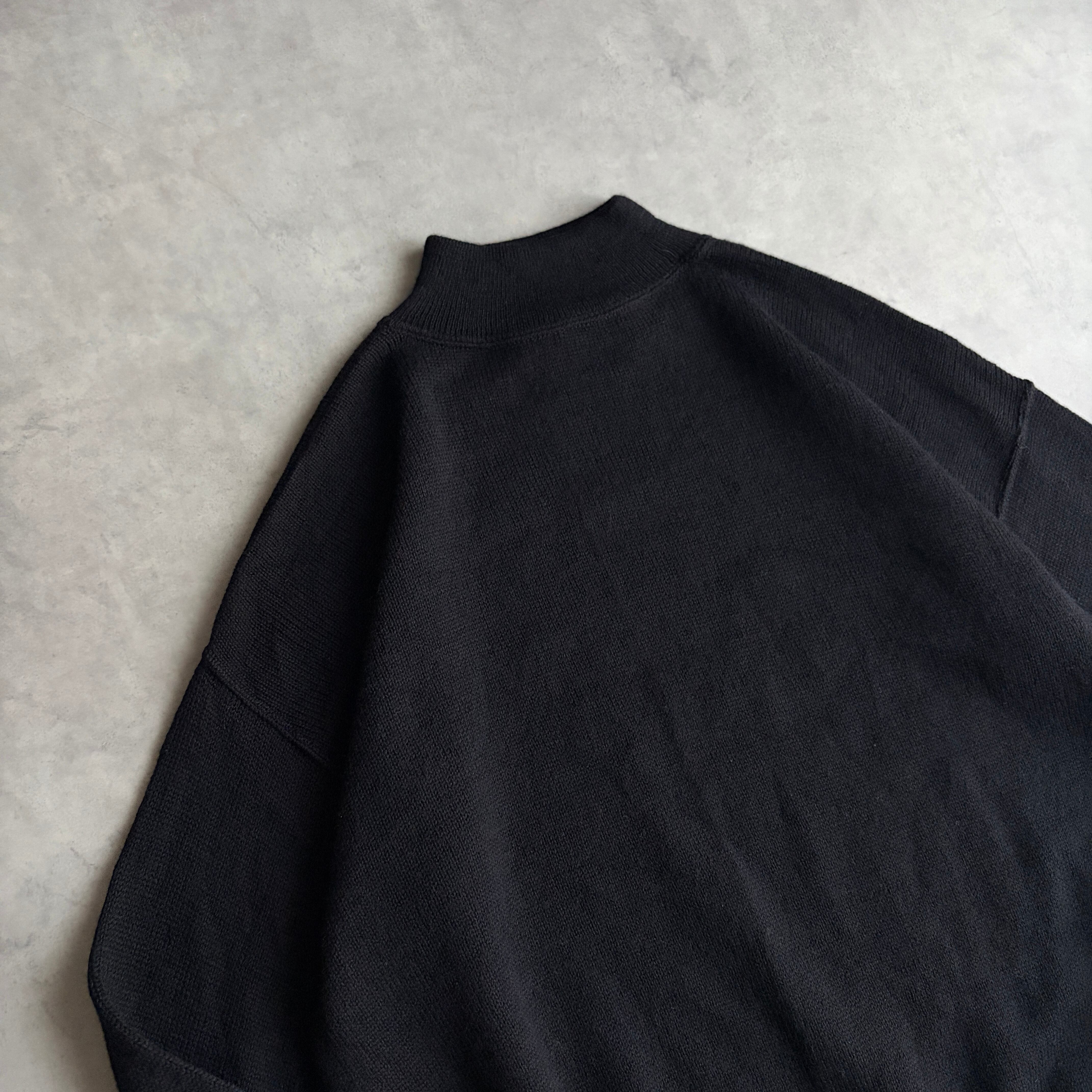 ブラックカラーにモックネック、ドロップショルダー、短丈。