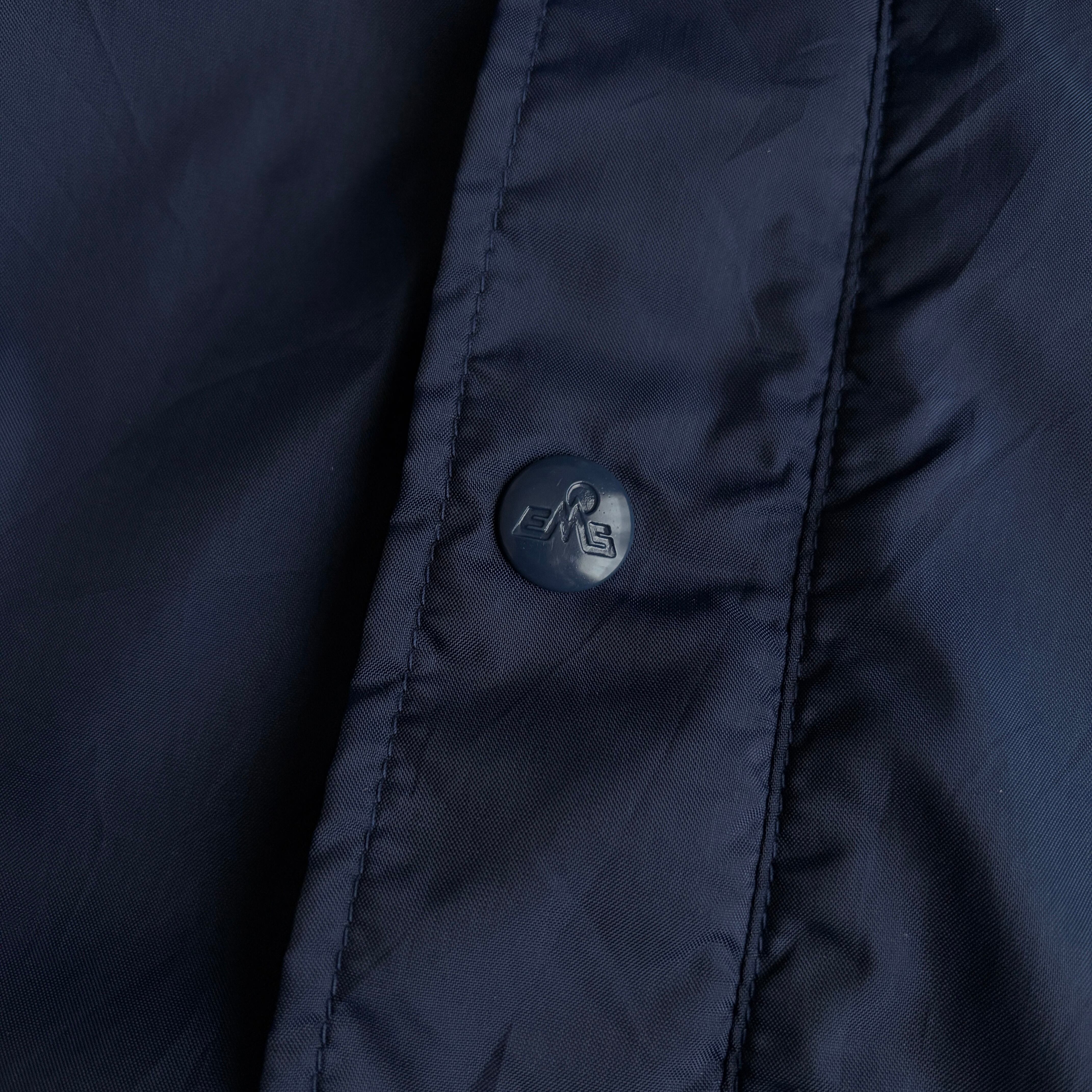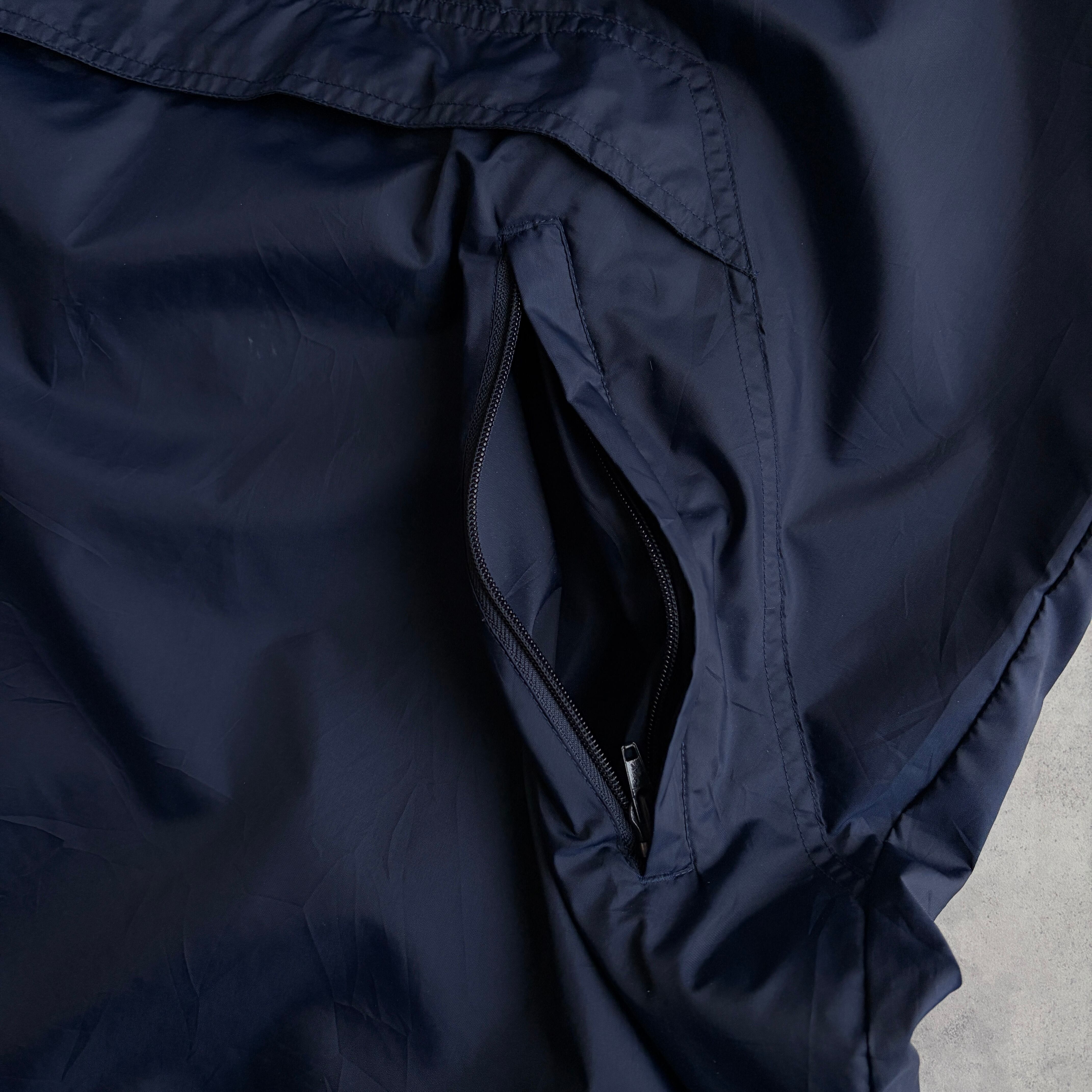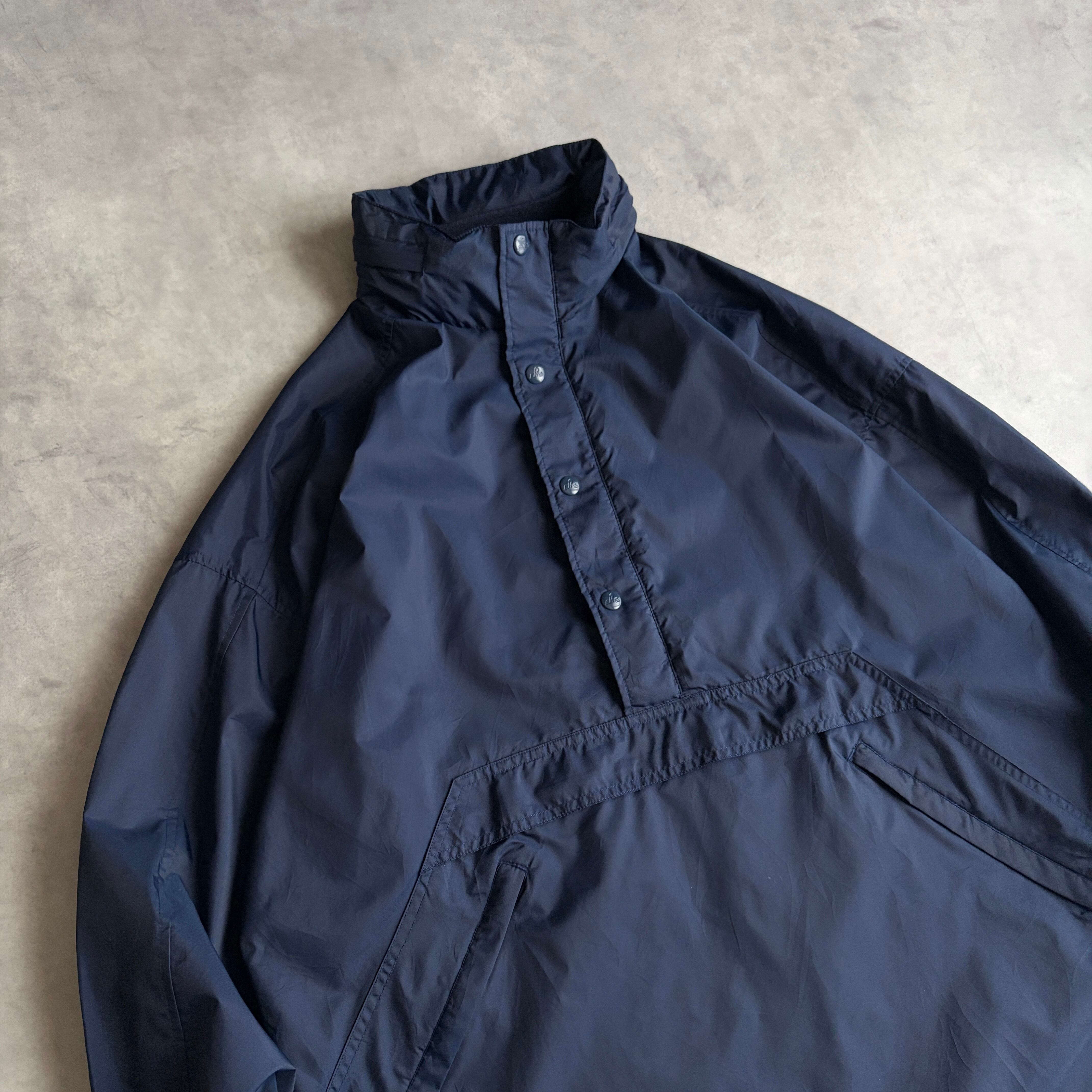 90s/EMS/アノラックジャケット/パッカブル/フード収納/ナイロンジャケット/ハーフジップ/ロゴ刻印ボタン/プルオーバー/裏メッシュ/カンガルーポケット/裾ドローコード/ネイビー/紺