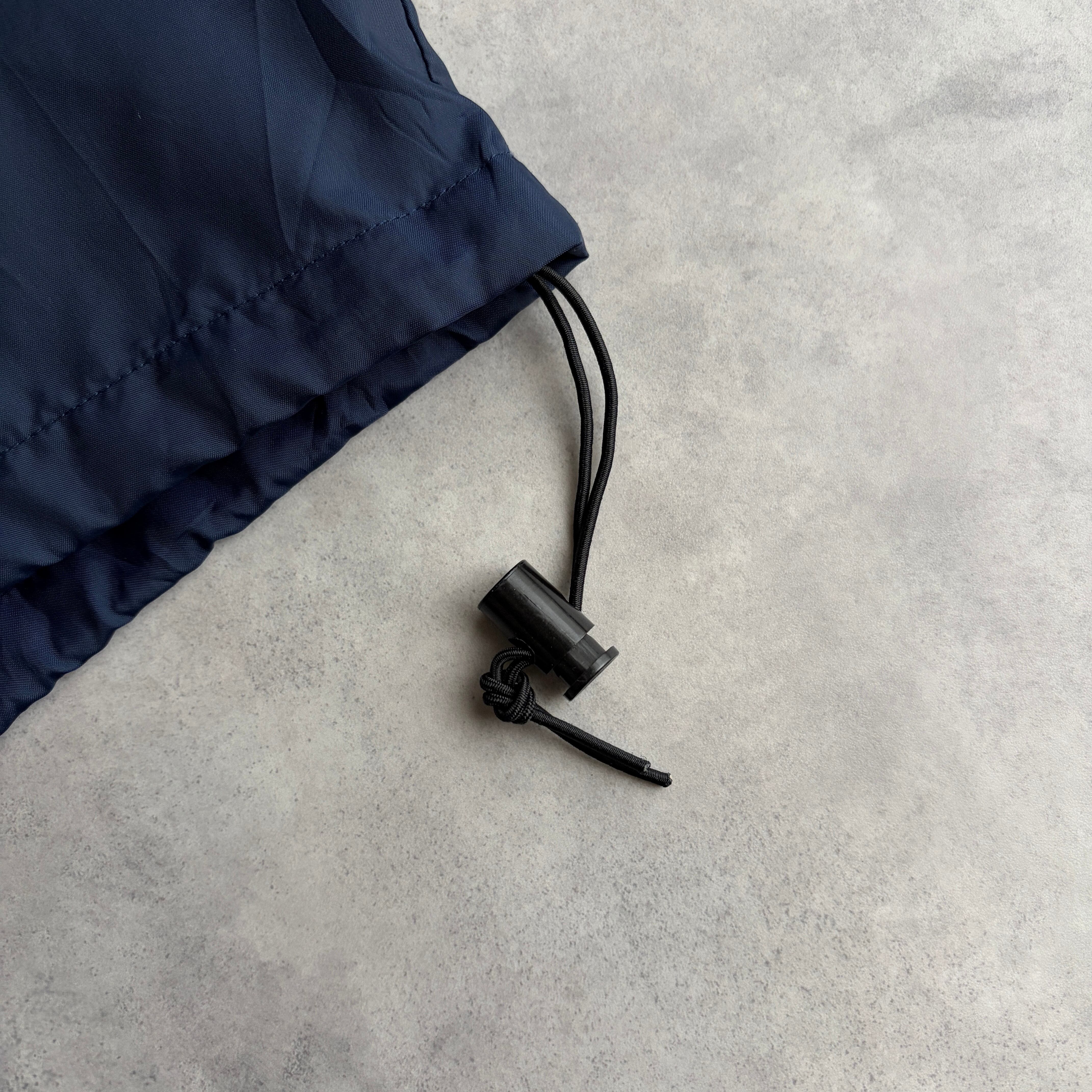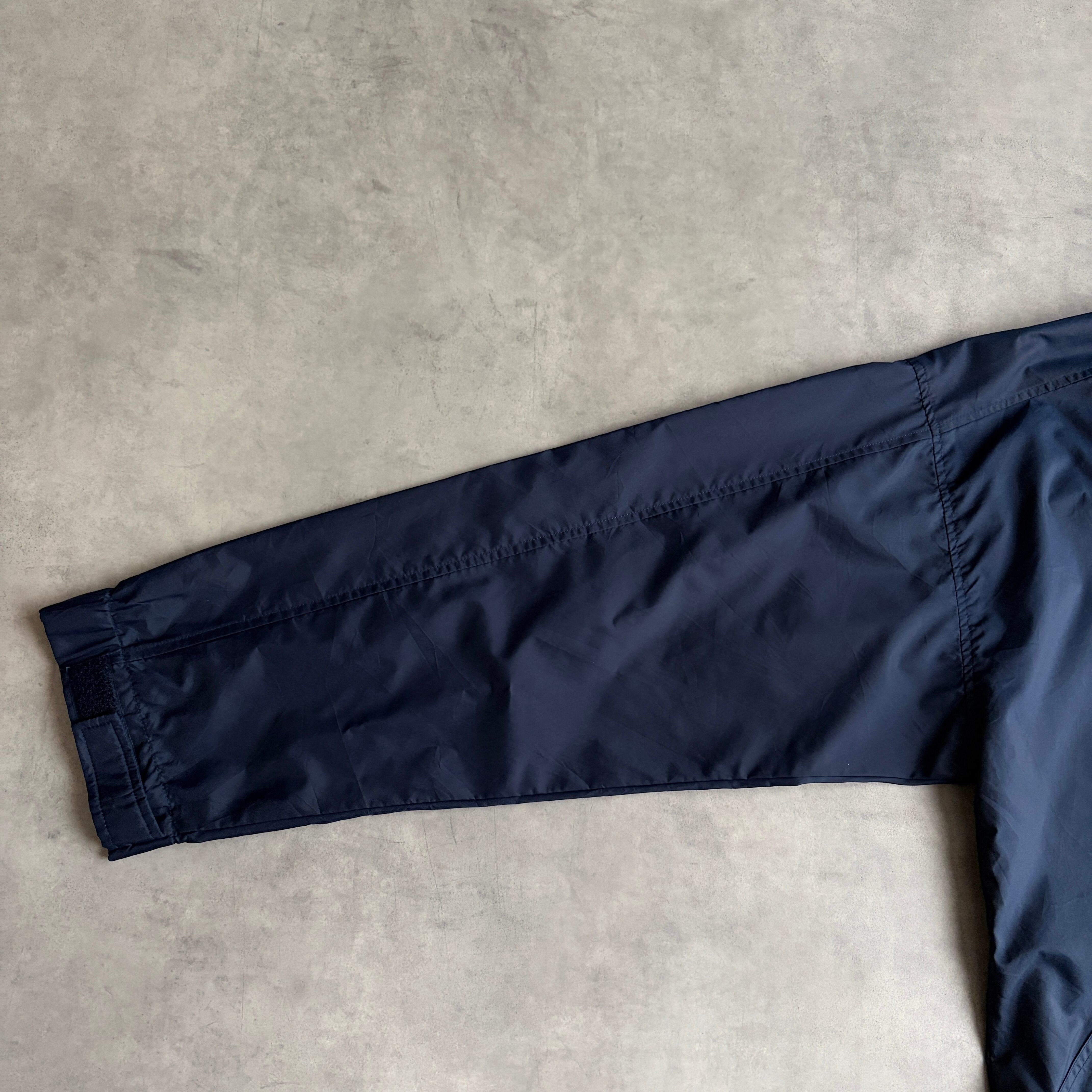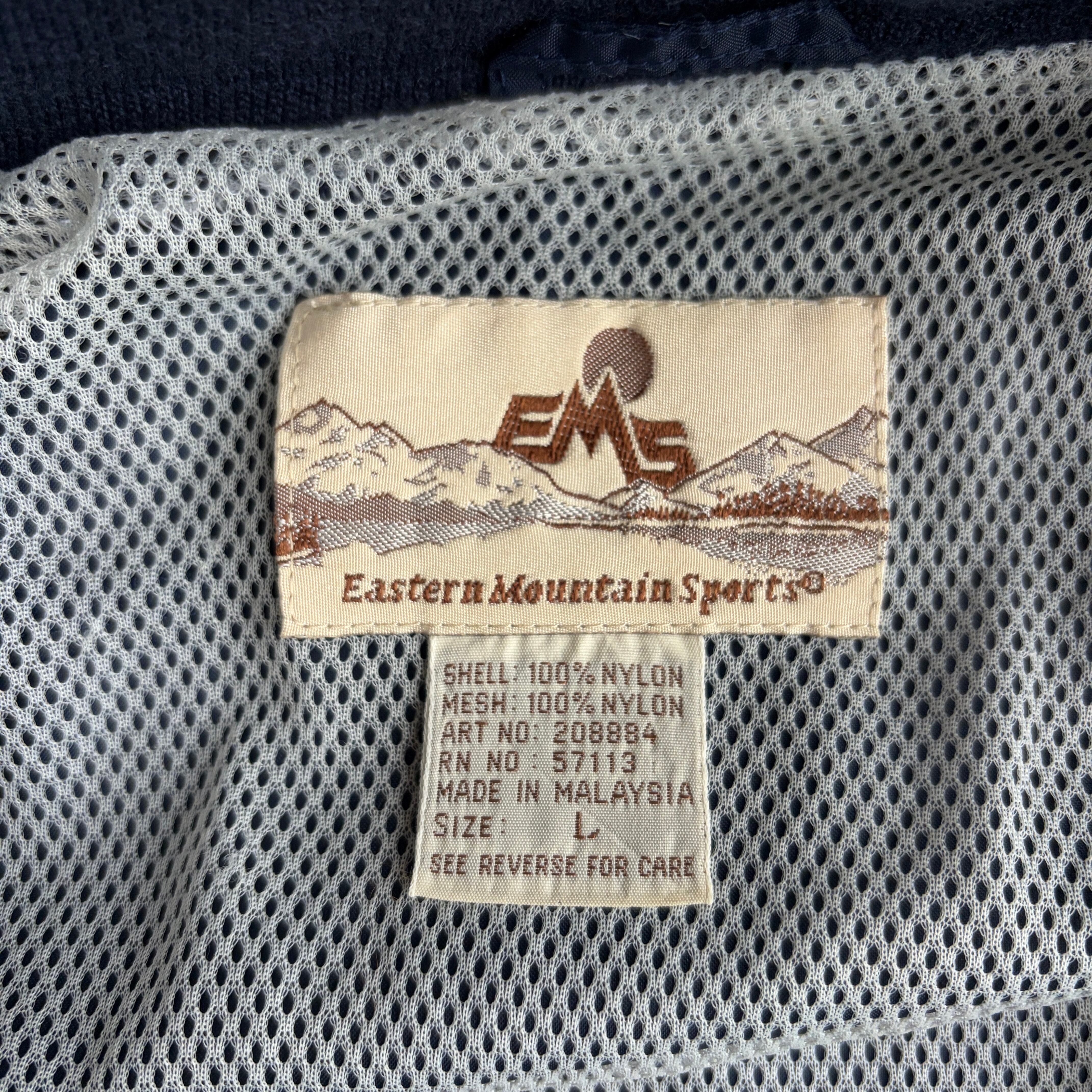 90s/EMS/アノラックジャケット/パッカブル/フード収納/ナイロンジャケット/ハーフジップ/ロゴ刻印ボタン/プルオーバー/裏メッシュ/カンガルーポケット/裾ドローコード/ネイビー/紺