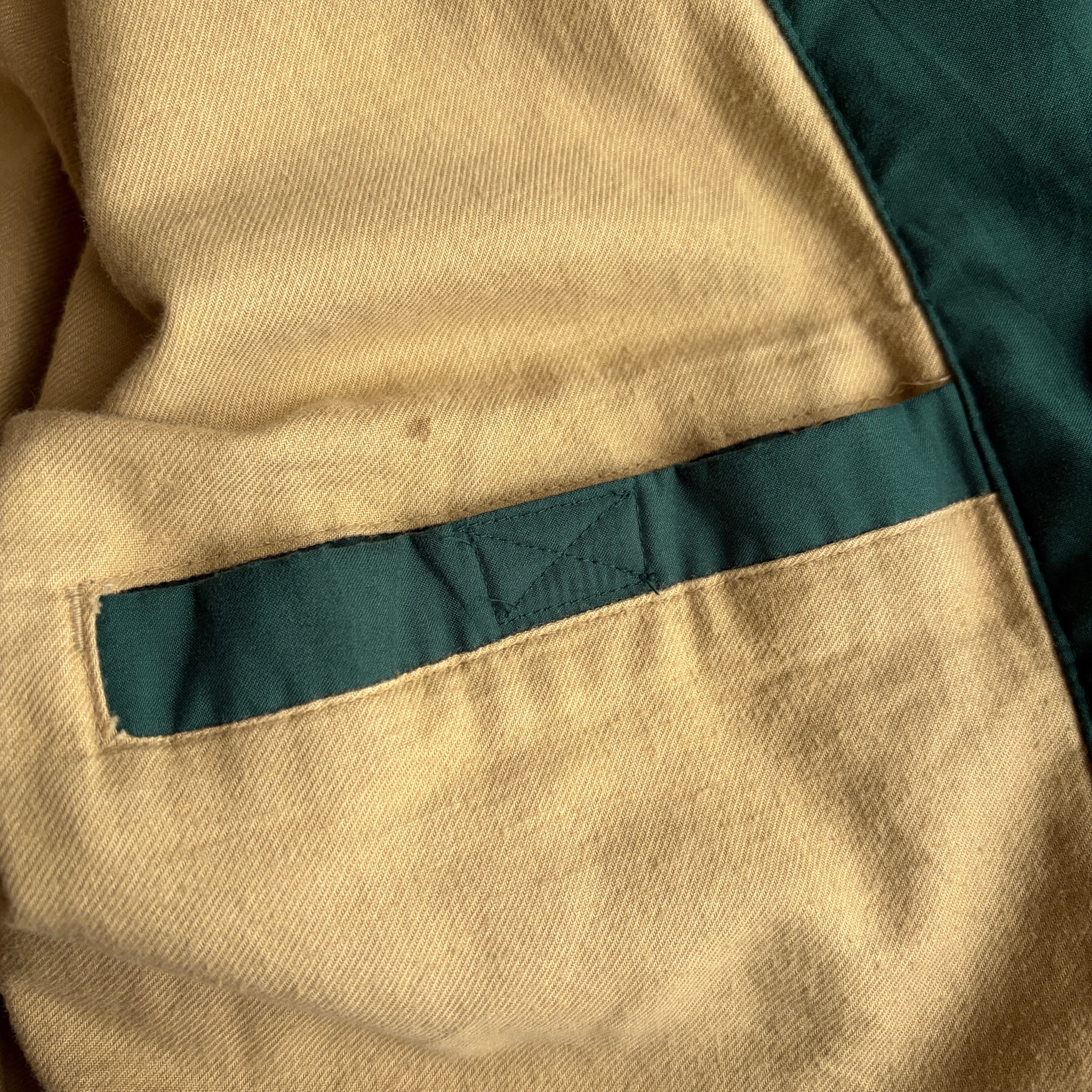 シンプルなアイテムで裏地コットン、襟レザーで渋いアイテム。