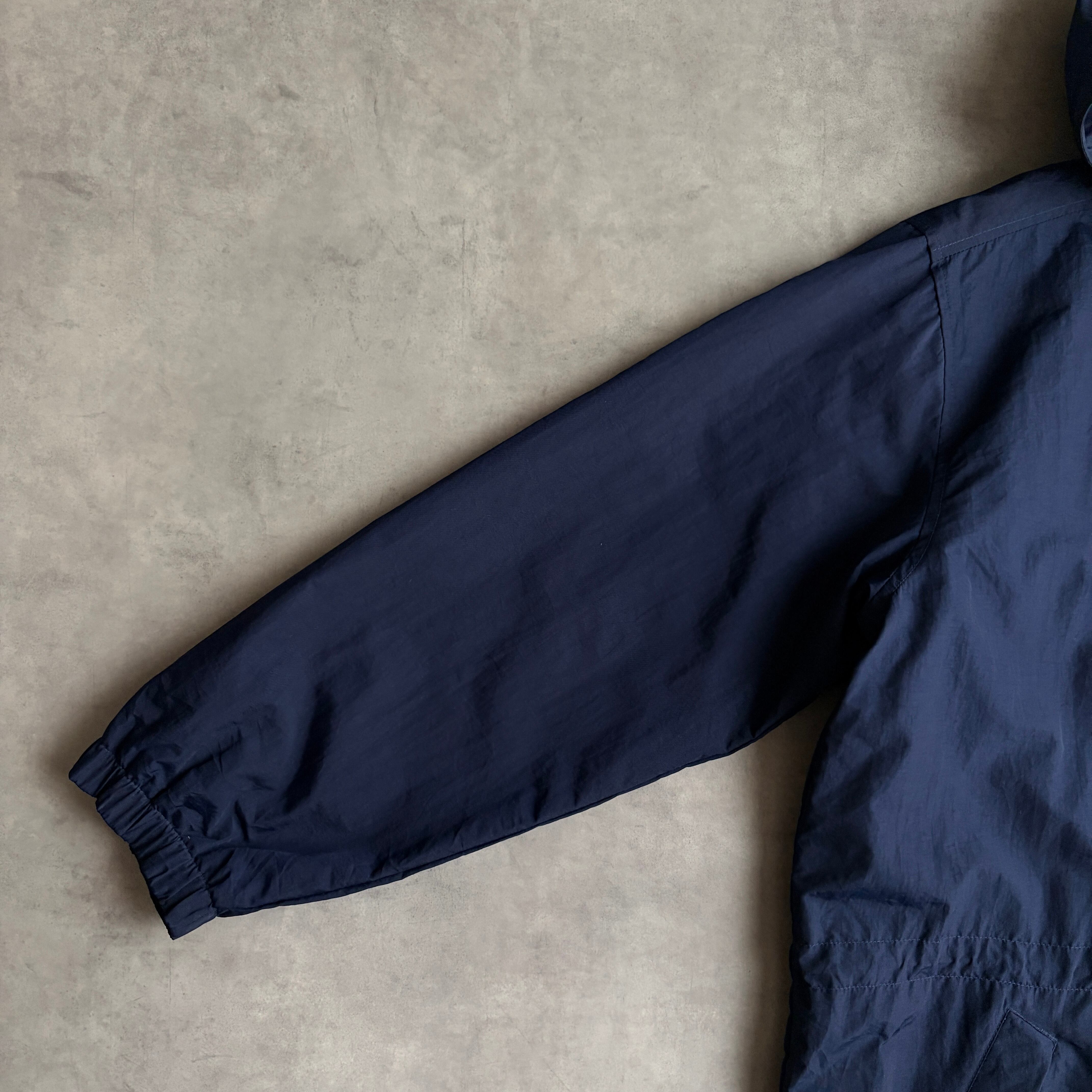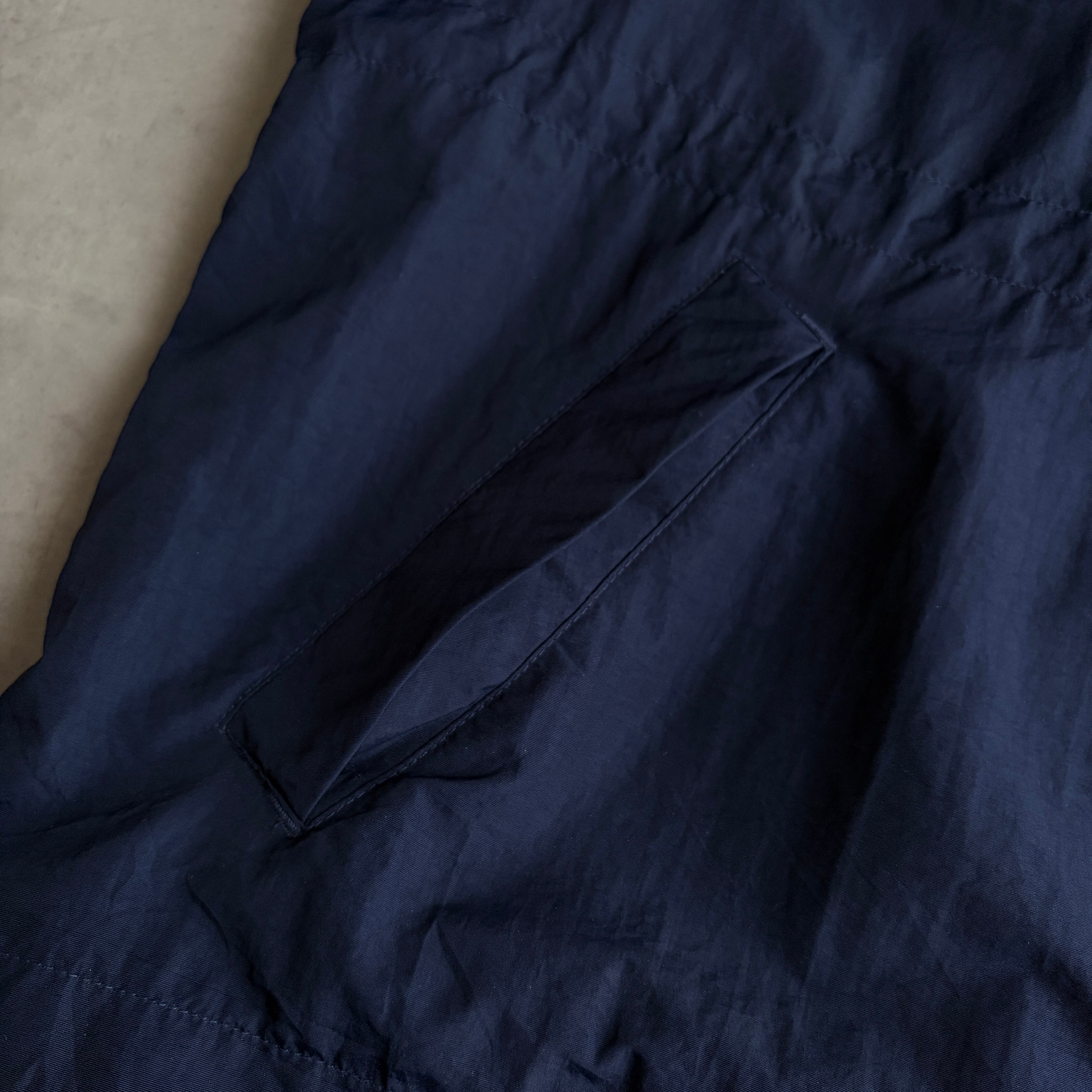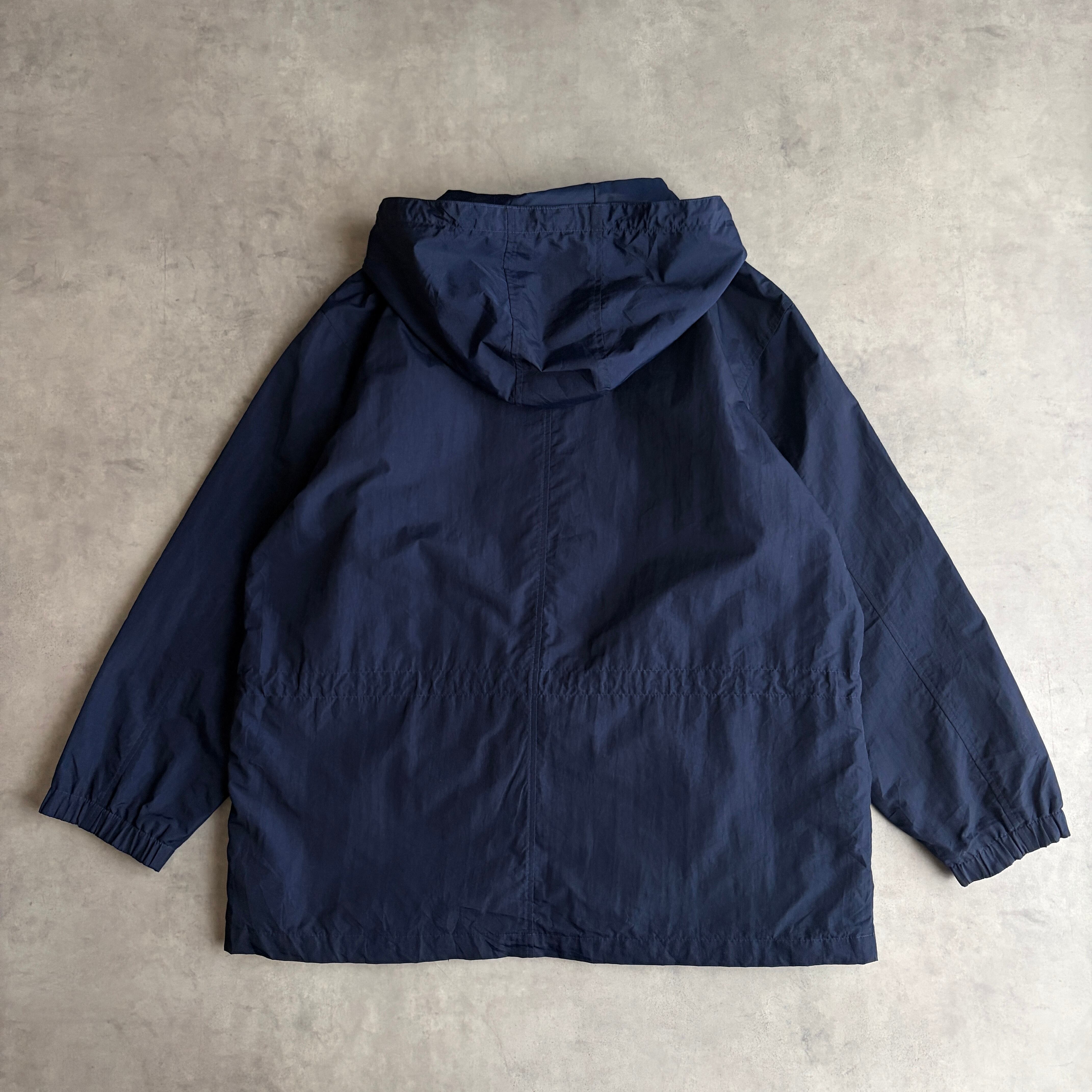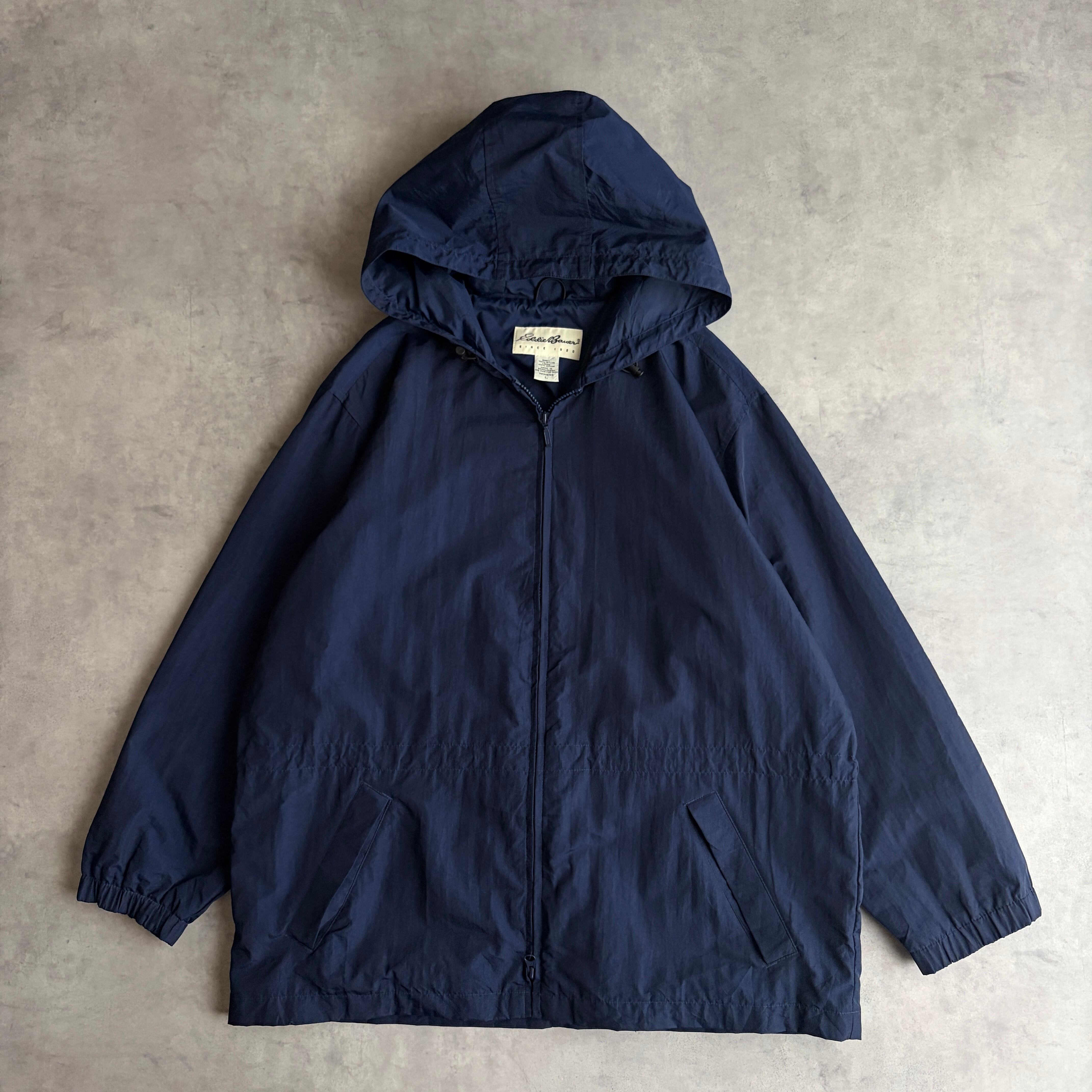 90s/Eddie Bauer/エディーバウアー/ナイロンジャケット/マウンテンパーカー/ダブルジップ/腰ドローコード/ソリッド/ノームコア/ミドル丈/ネイビー/紺