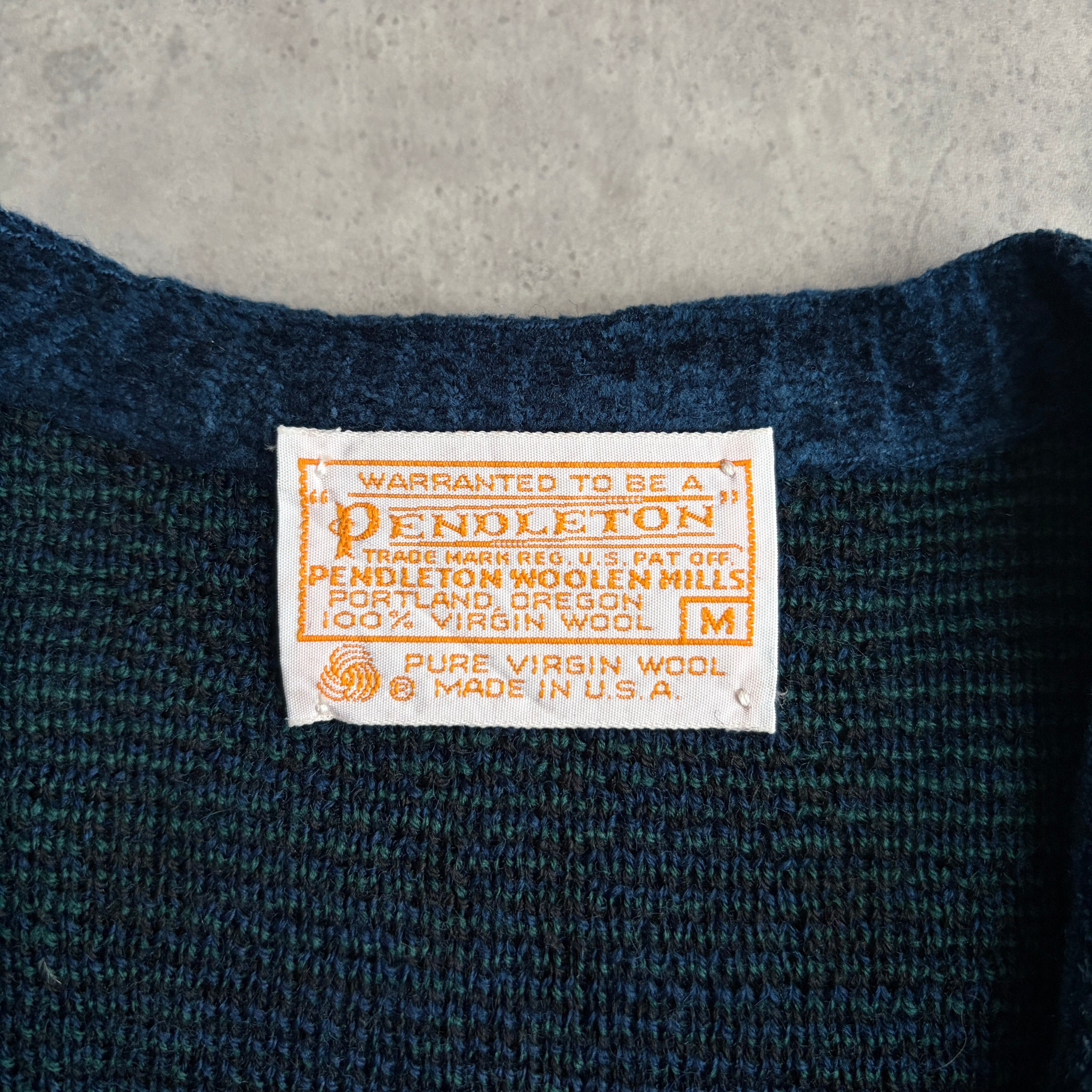 70s〜80s/PENDLETON/ペンドルトン/ウールカーディガン/Made in USA/アメリカ製/ダブルボタン仕様/タータンチェック/ブラックウォッチ/リブベロア
