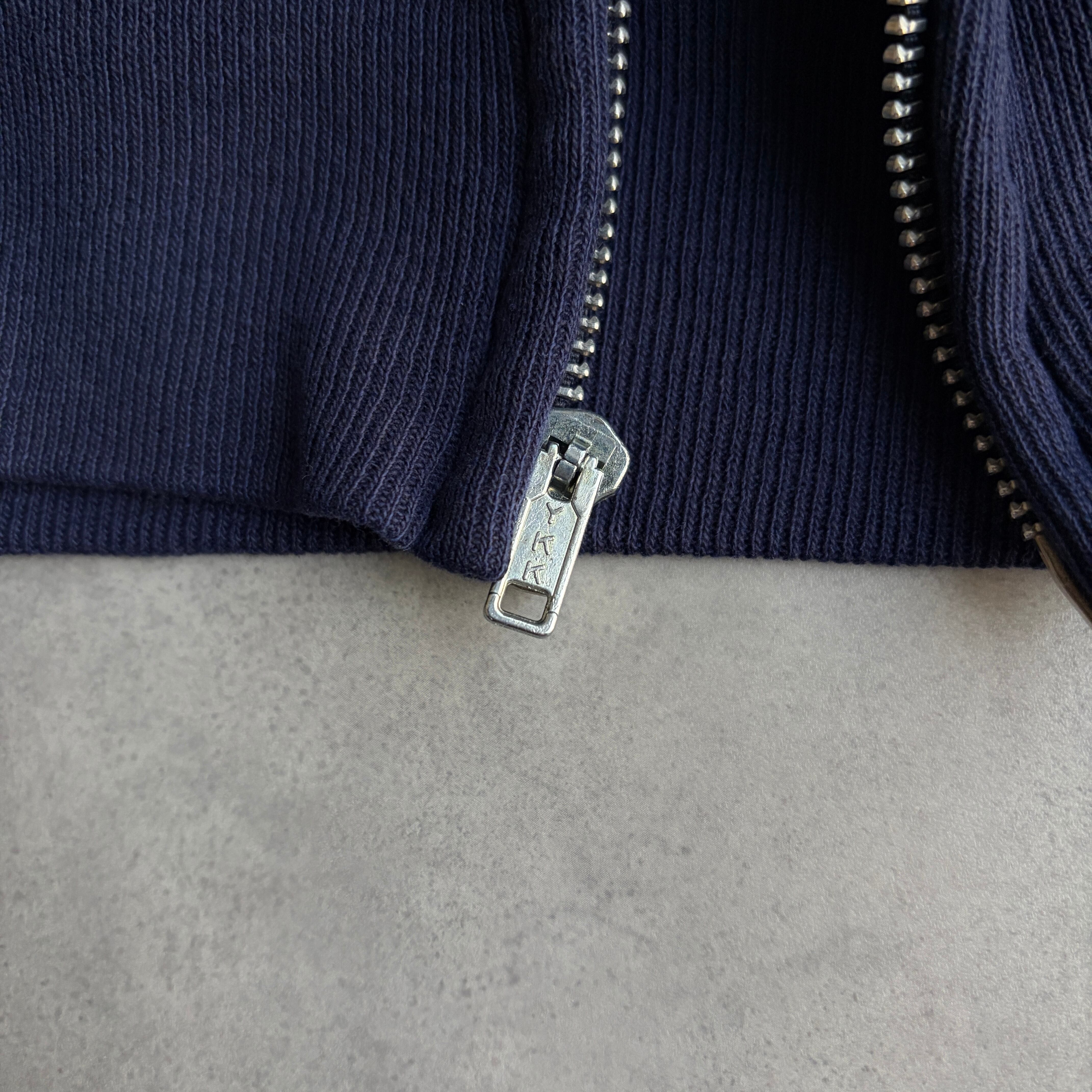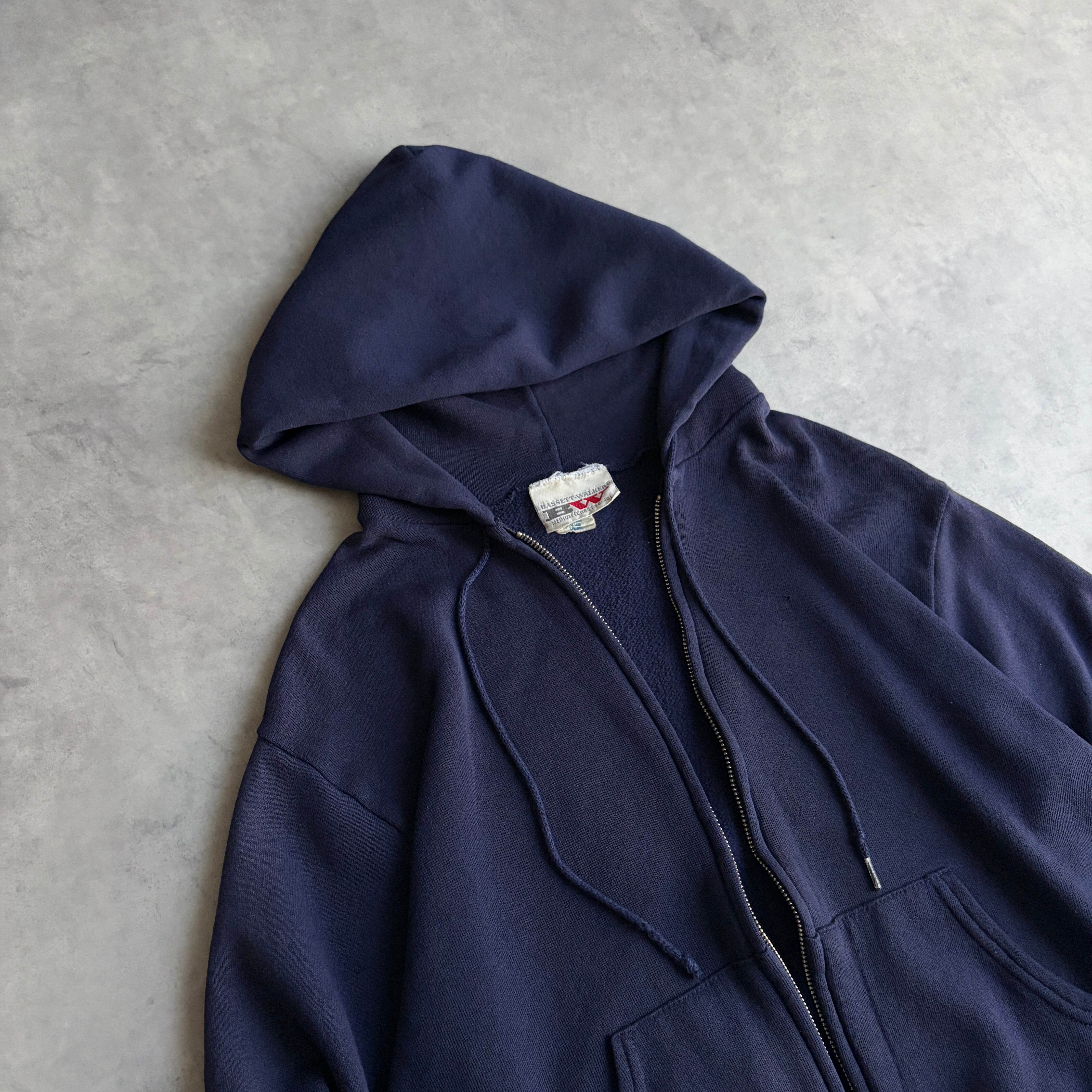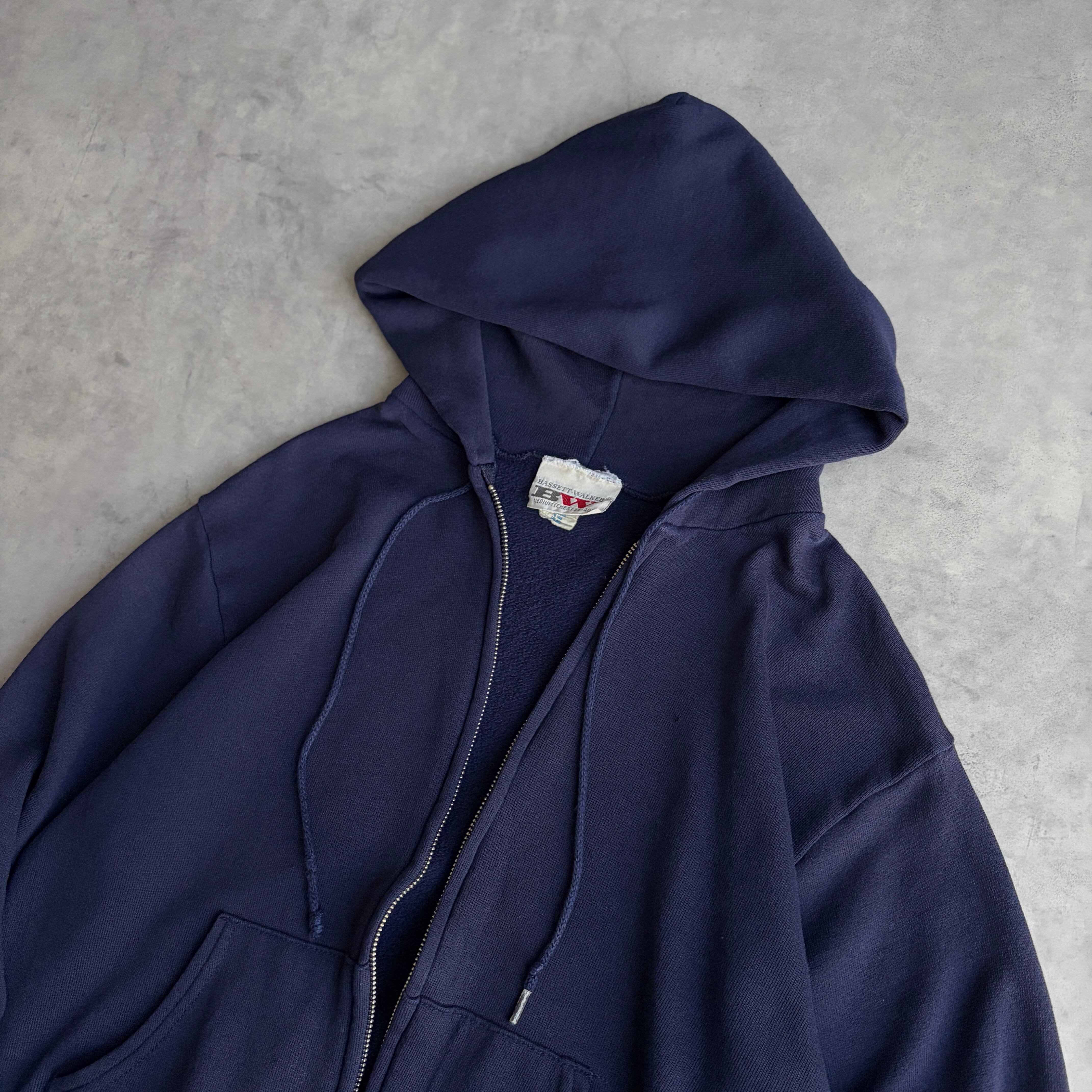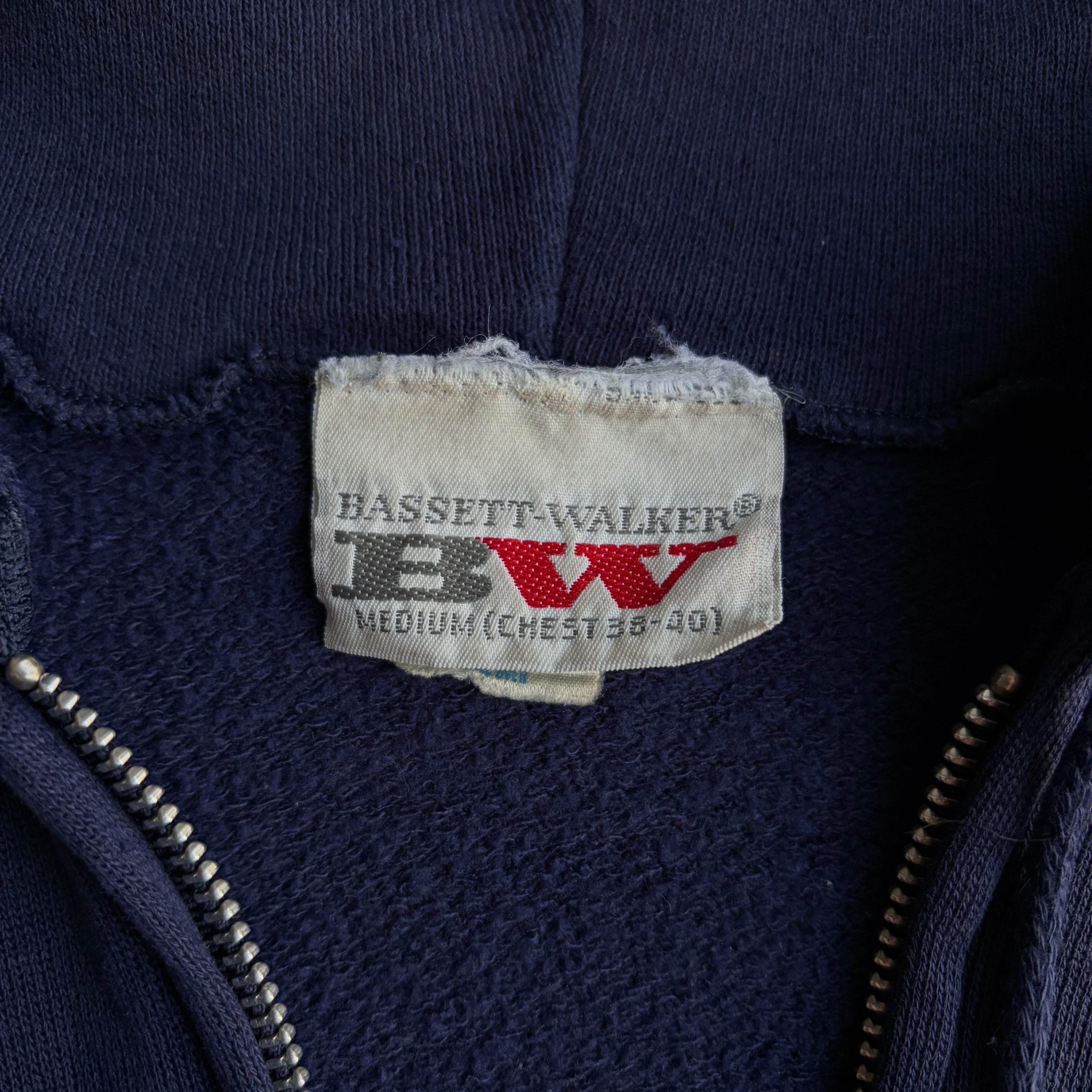 70s/BASSETT-WALKER/フルジップパーカー/USA製/アメリカ製/片爪ジッパー/YKK/ジップアップ/短丈/無地/ソリッド/ノームコア/グランジ/プレーン/ブランク/ フェードネイビー/紺