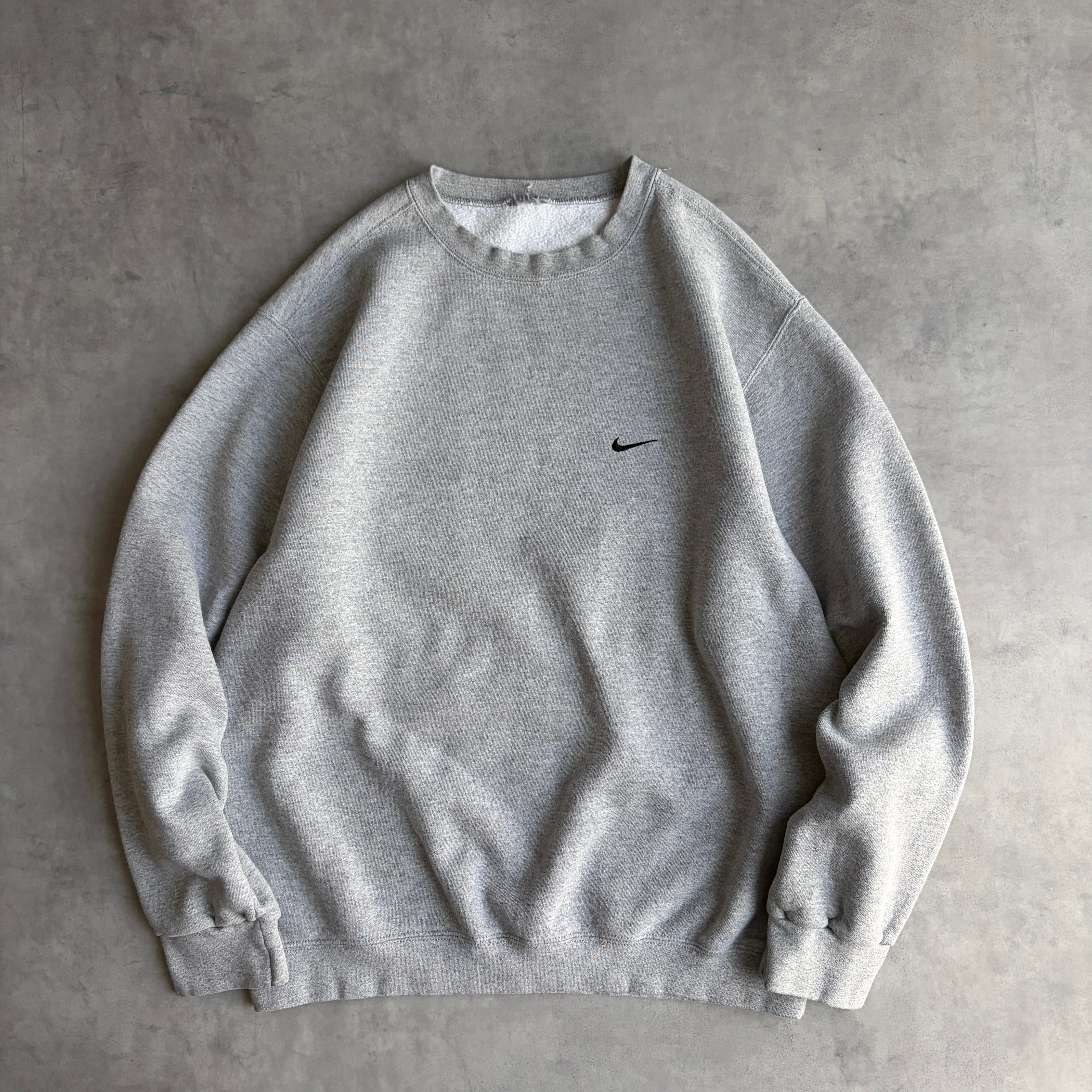 00s/NIKE/ナイキ/スウェット/スウッシュロゴ刺繍/ワンポイント/ソリッド/ノームコア/杢グレー/jmaple