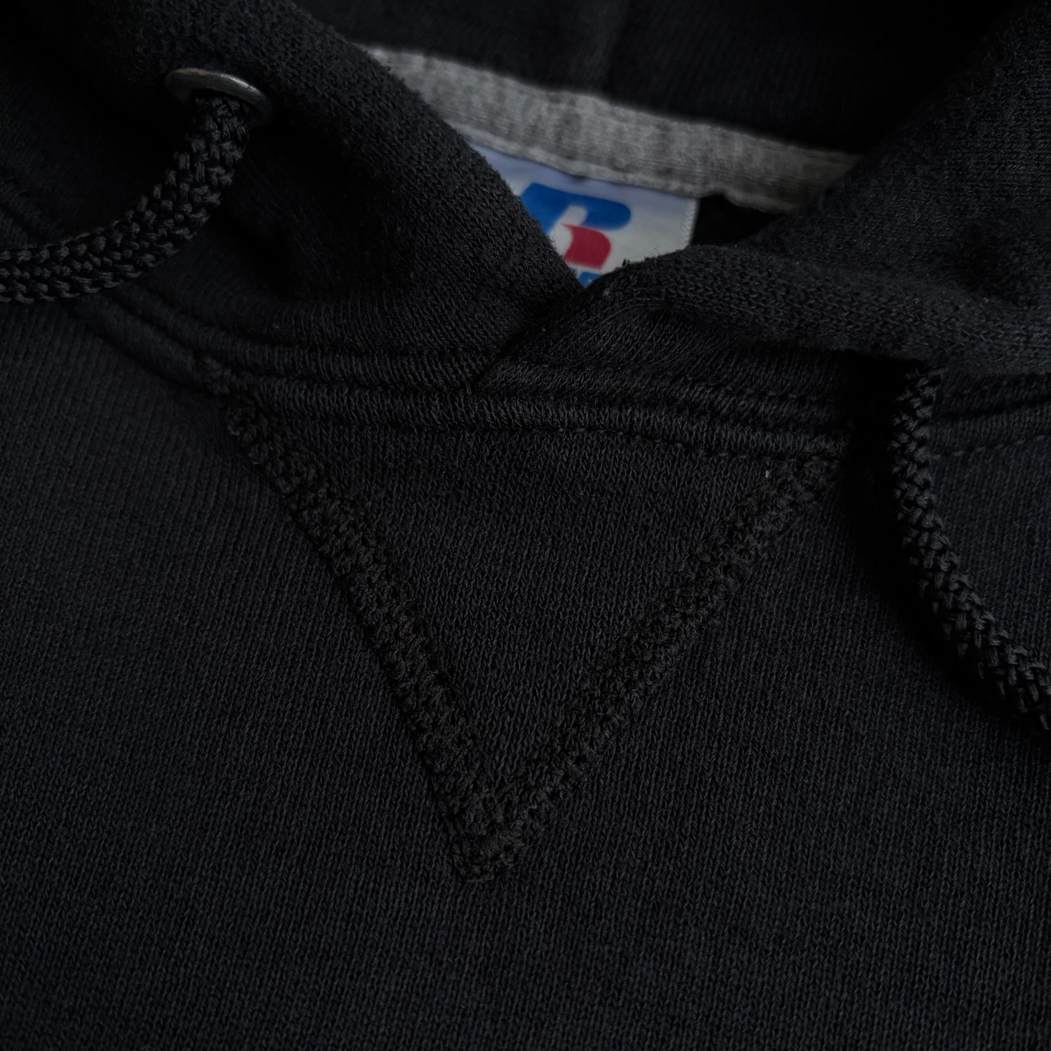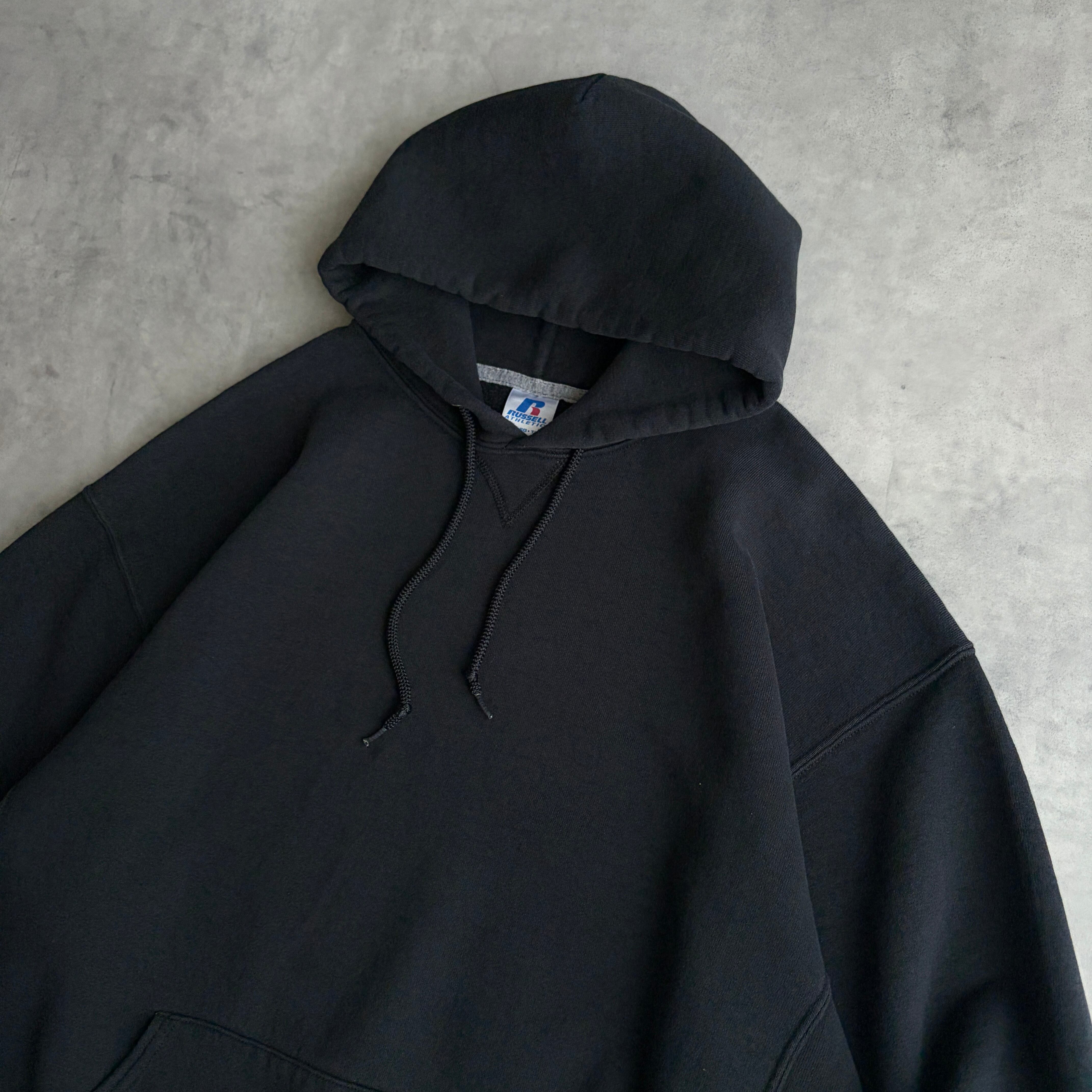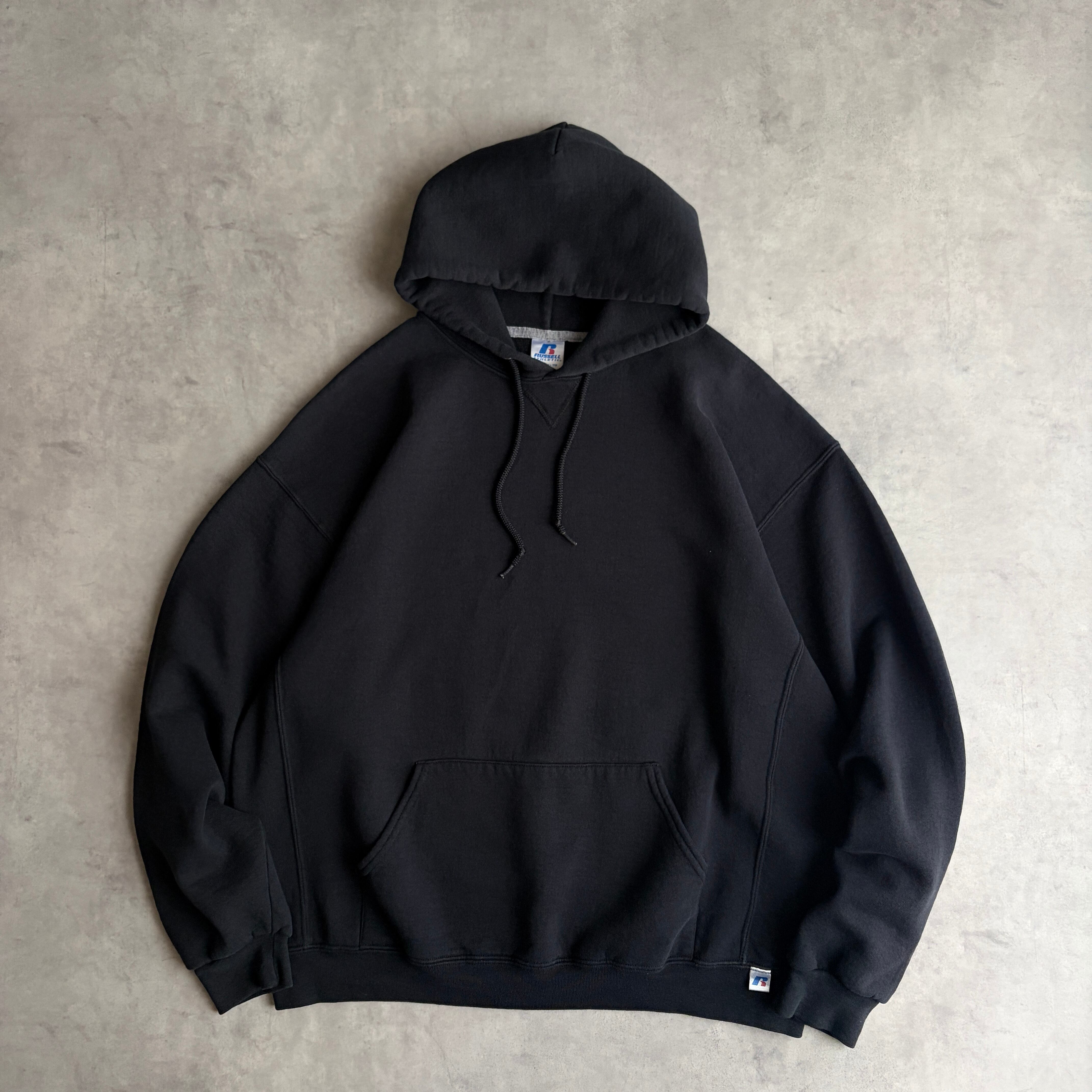 00s〜/RUSSELL ATHLETIC/ラッセルアスレチック/プルオーバーパーカー/前Vガゼット/無地/ソリッド/ノームコア/プレーン/ブランク/ロゴタブ/ブラック/黒