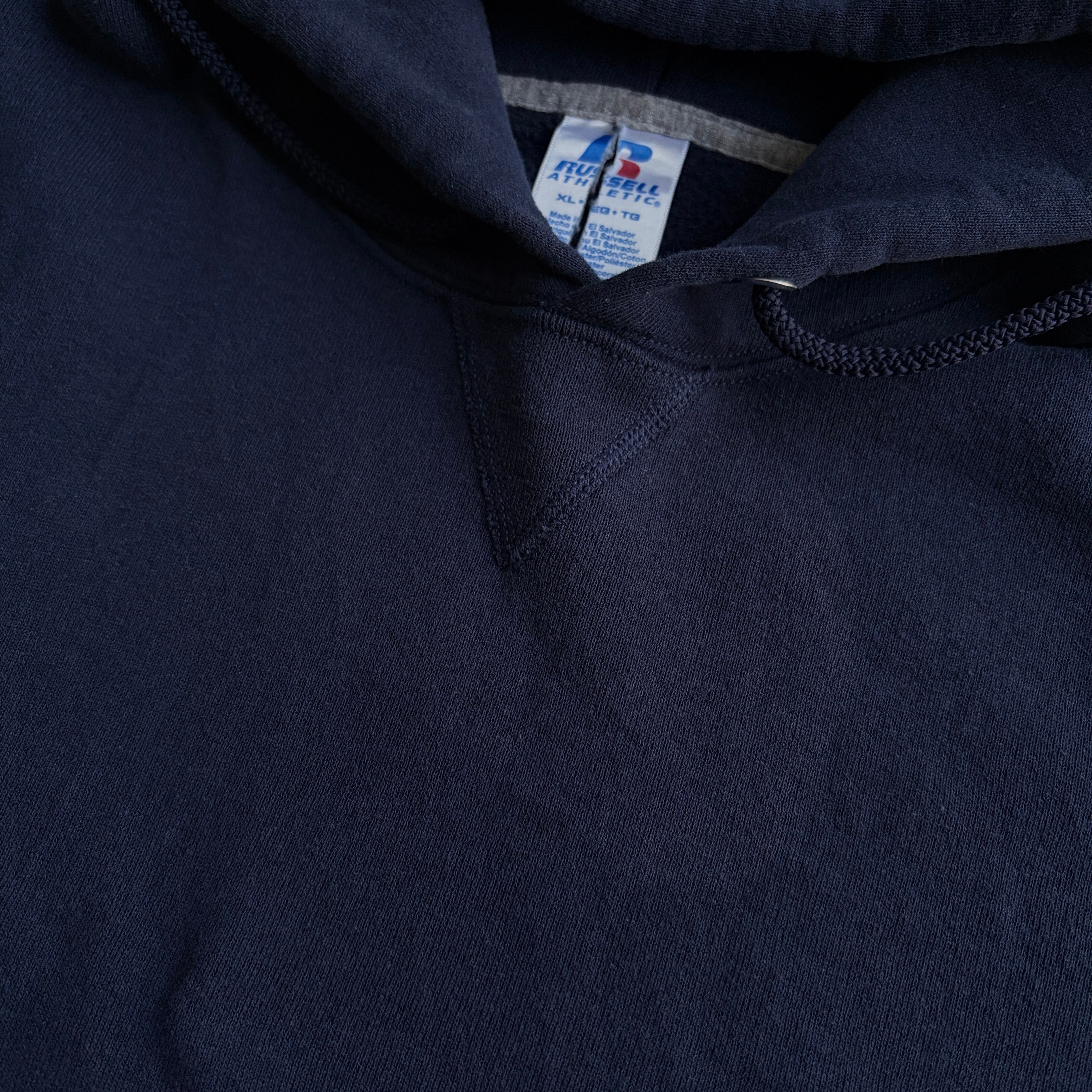 00s〜/RUSSELL ATHLETIC/ラッセルアスレチック/プルオーバーパーカー/前Vガゼット/無地/ソリッド/ノームコア/プレーン/ブランク/ロゴタブ/ネイビー/紺