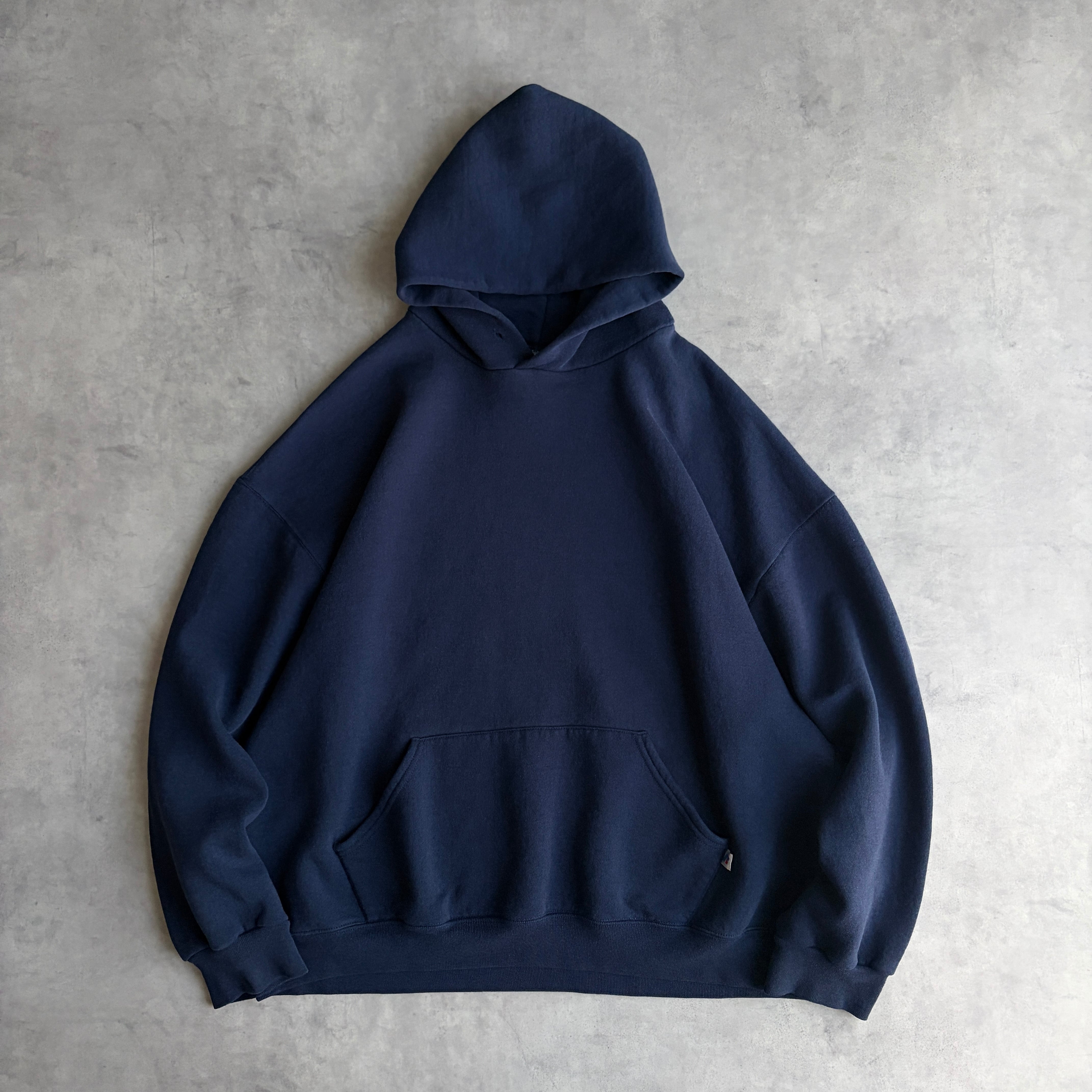 00s〜/RUSSELL ATHLETIC/ラッセルアスレチック/プルオーバーパーカー/無地/ソリッド/ノームコア/プレーン/ブランク/ロゴタブ/ネイビー/紺