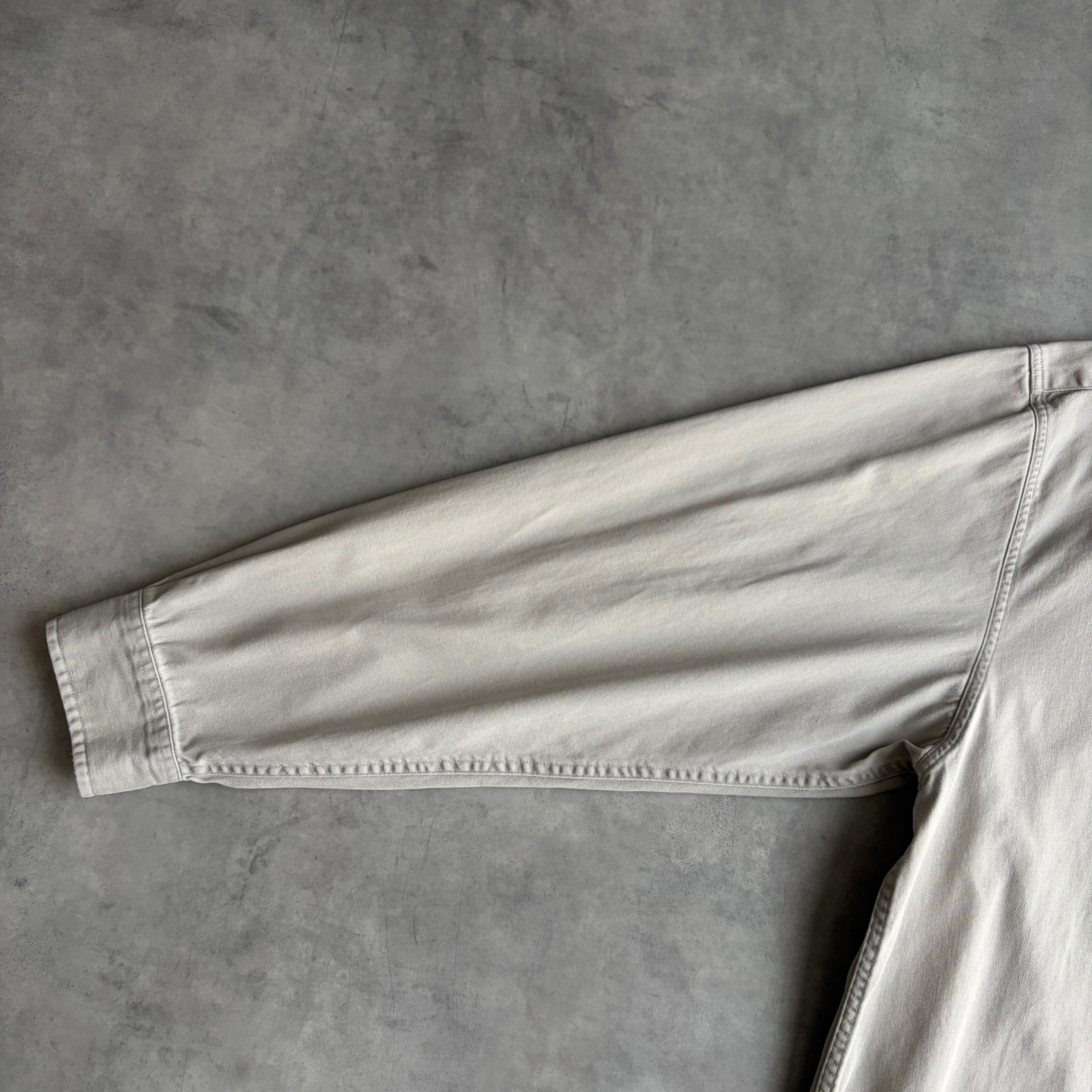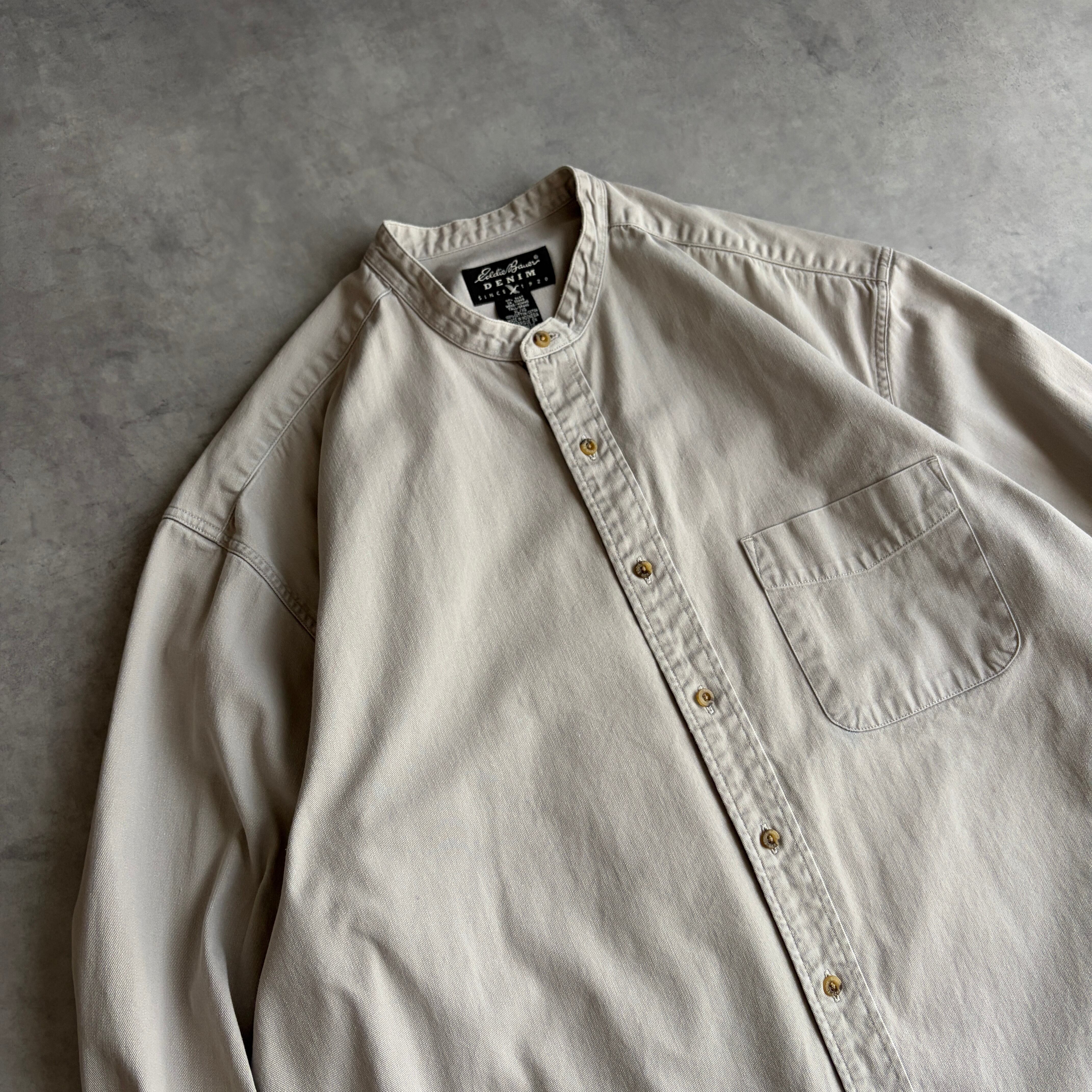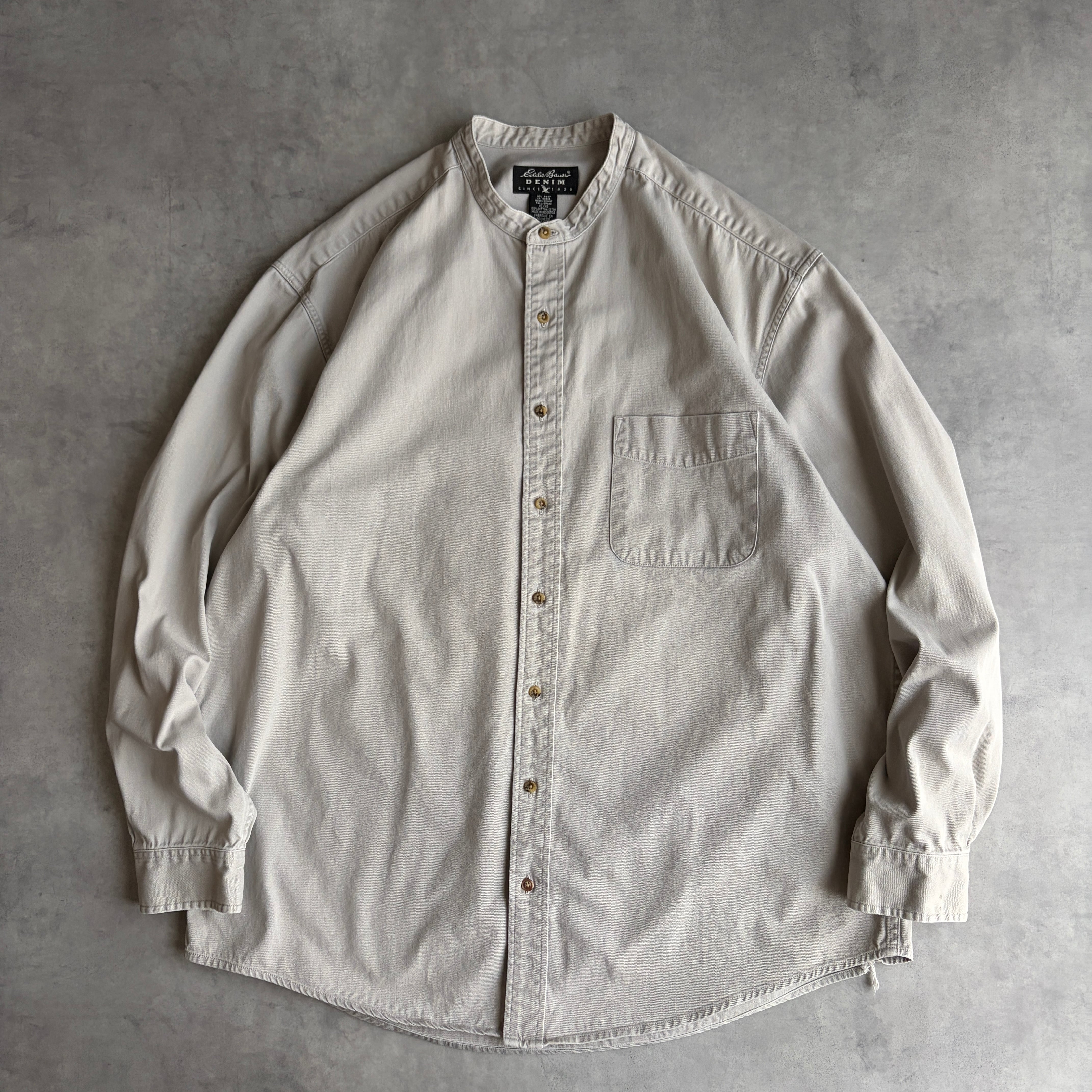 00s/Eddie Bauer/エディーバウアー/長袖シャツ/DENIM/デニム生地/バンドカラー/無地/ツイル/グレーベージュ