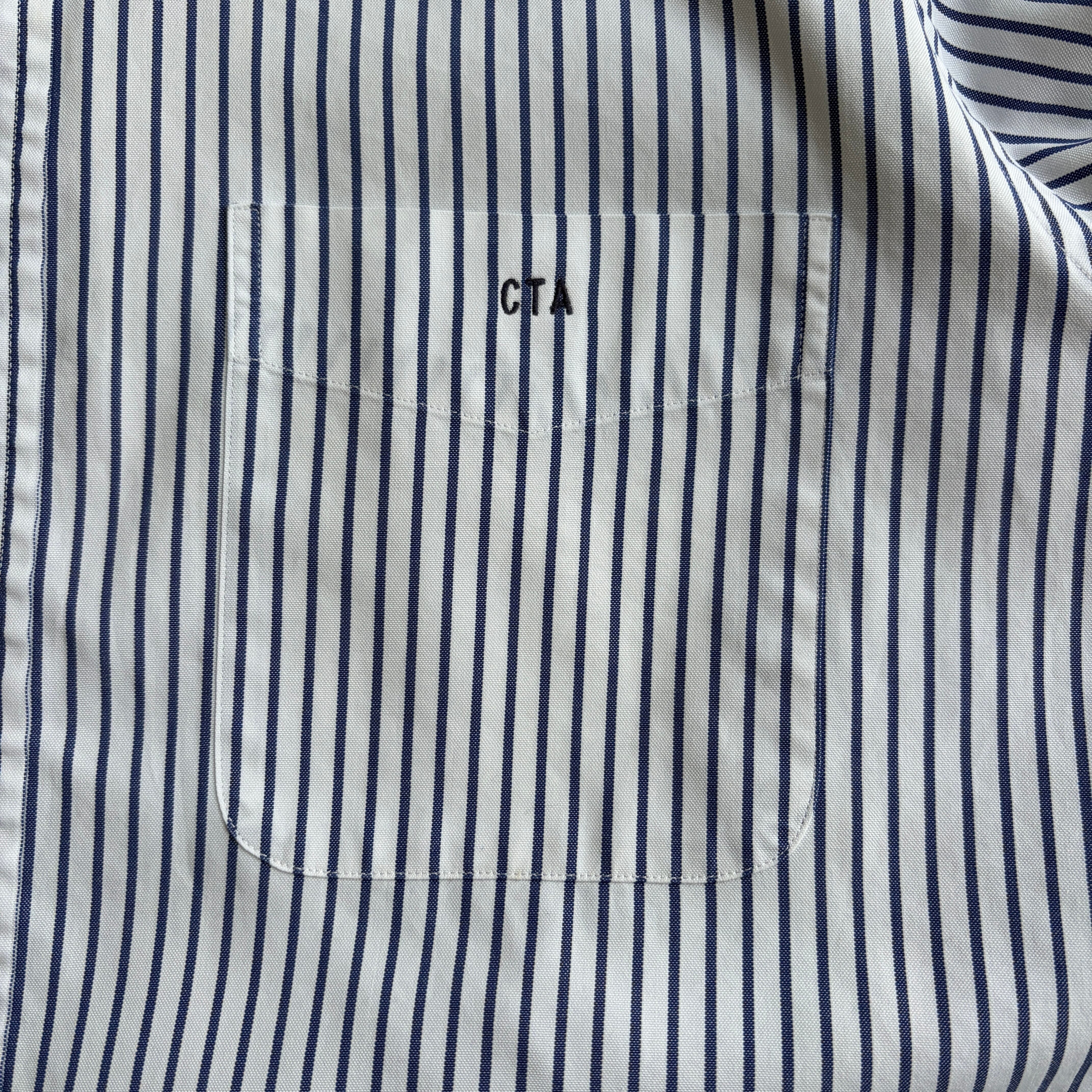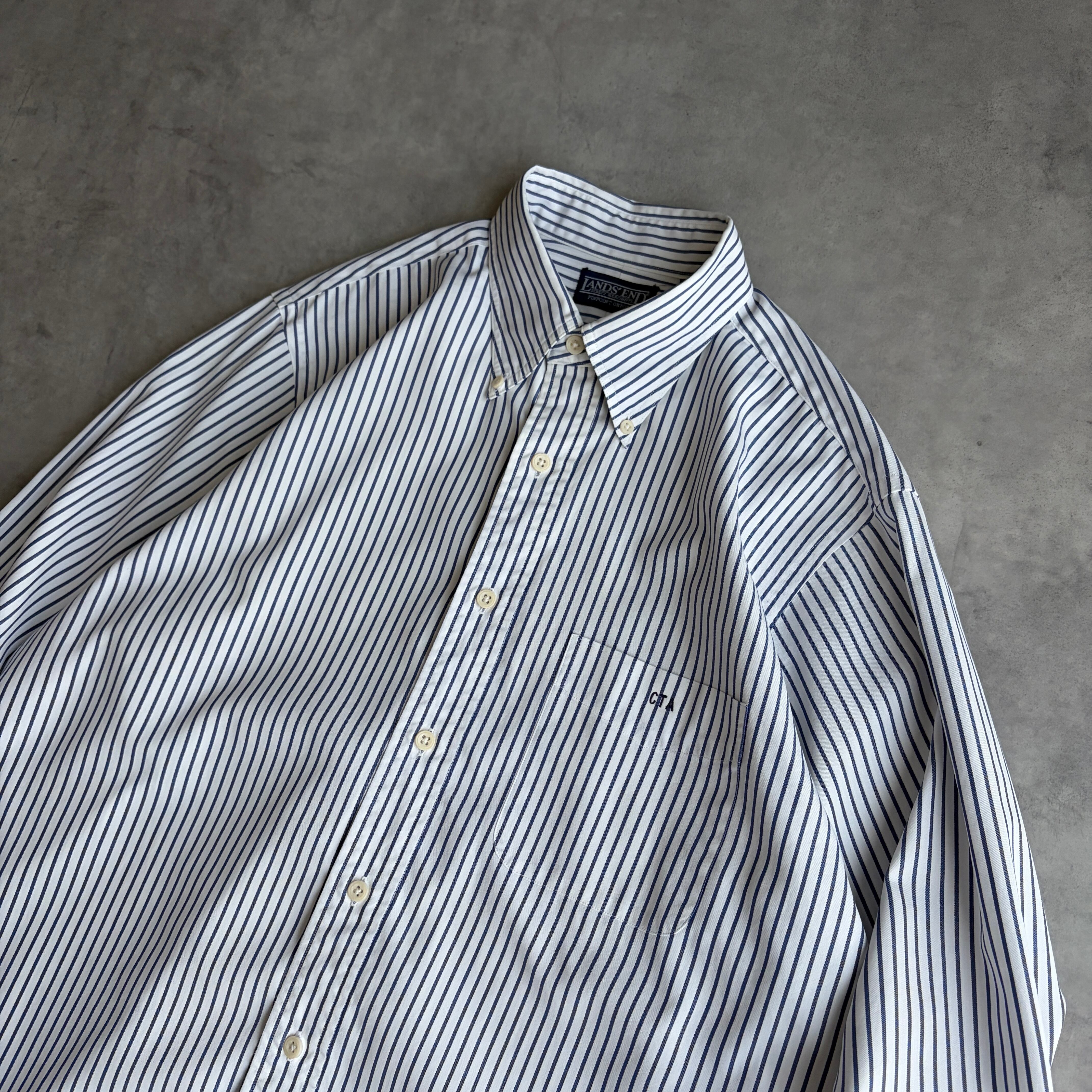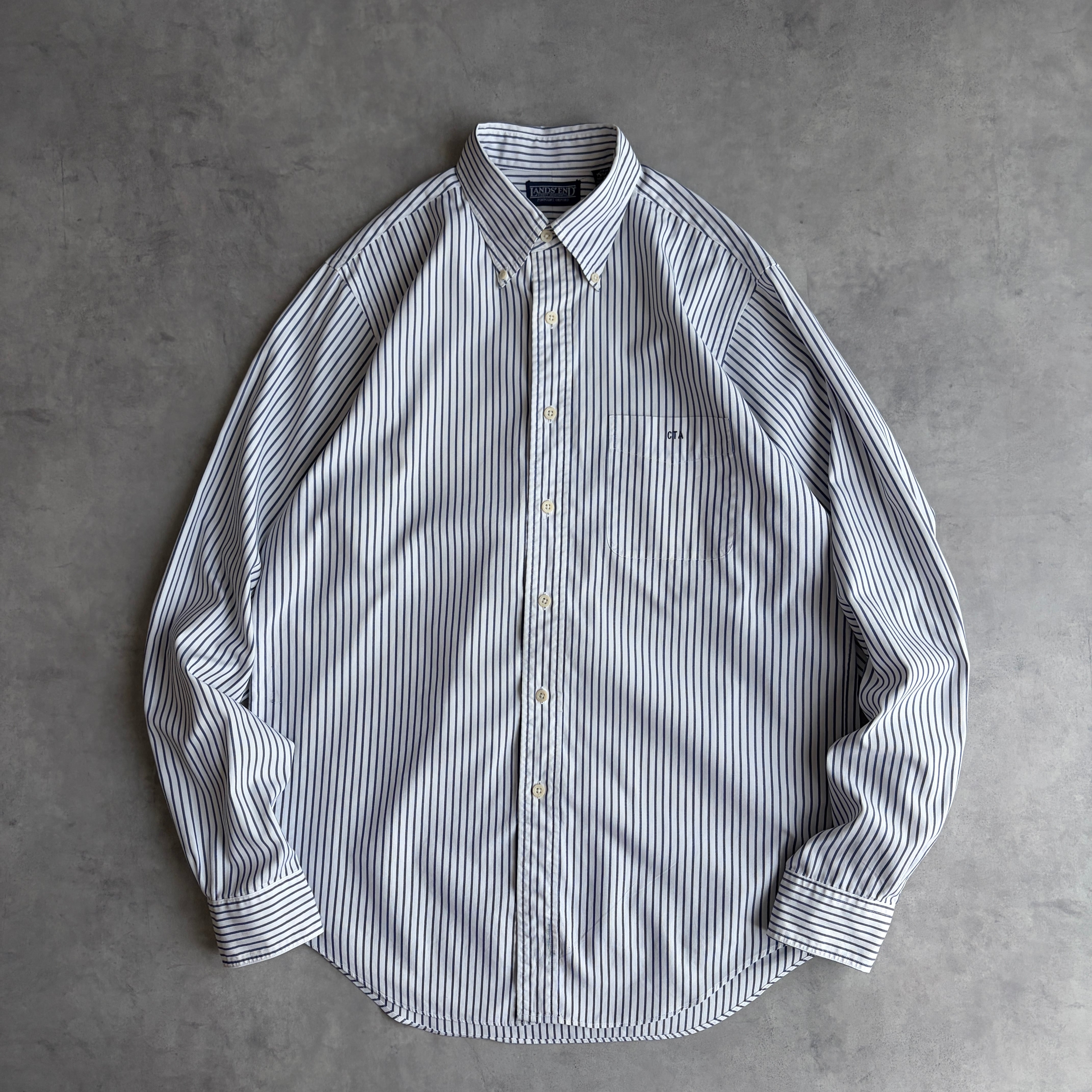 90s/LANDS'END/ランズエンド/PINPOINT OXFORD/ピンポイントオックスフォード/長袖シャツ/ブロード/BD/ボタンダウン/細ストライプ/ホワイト×ネイビー