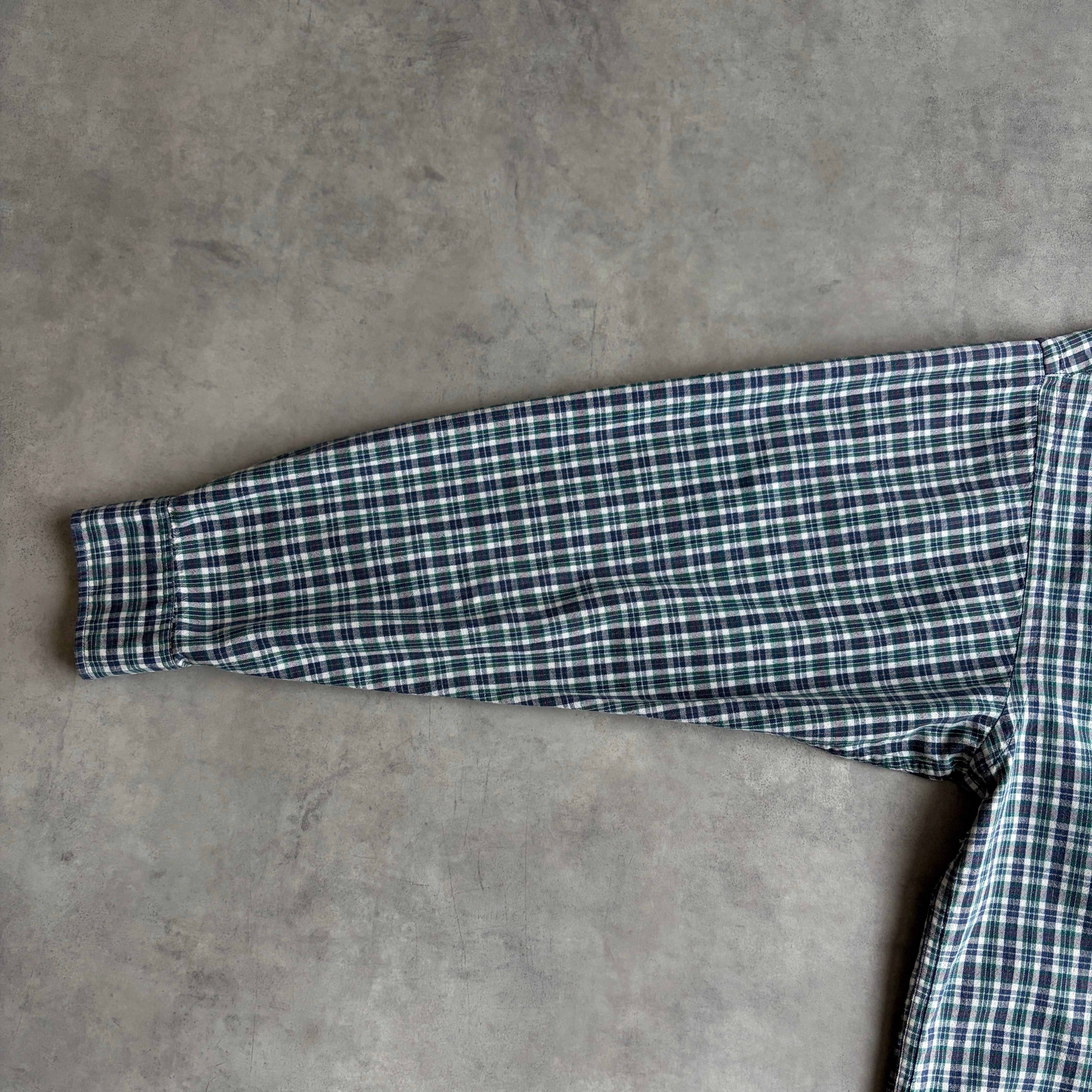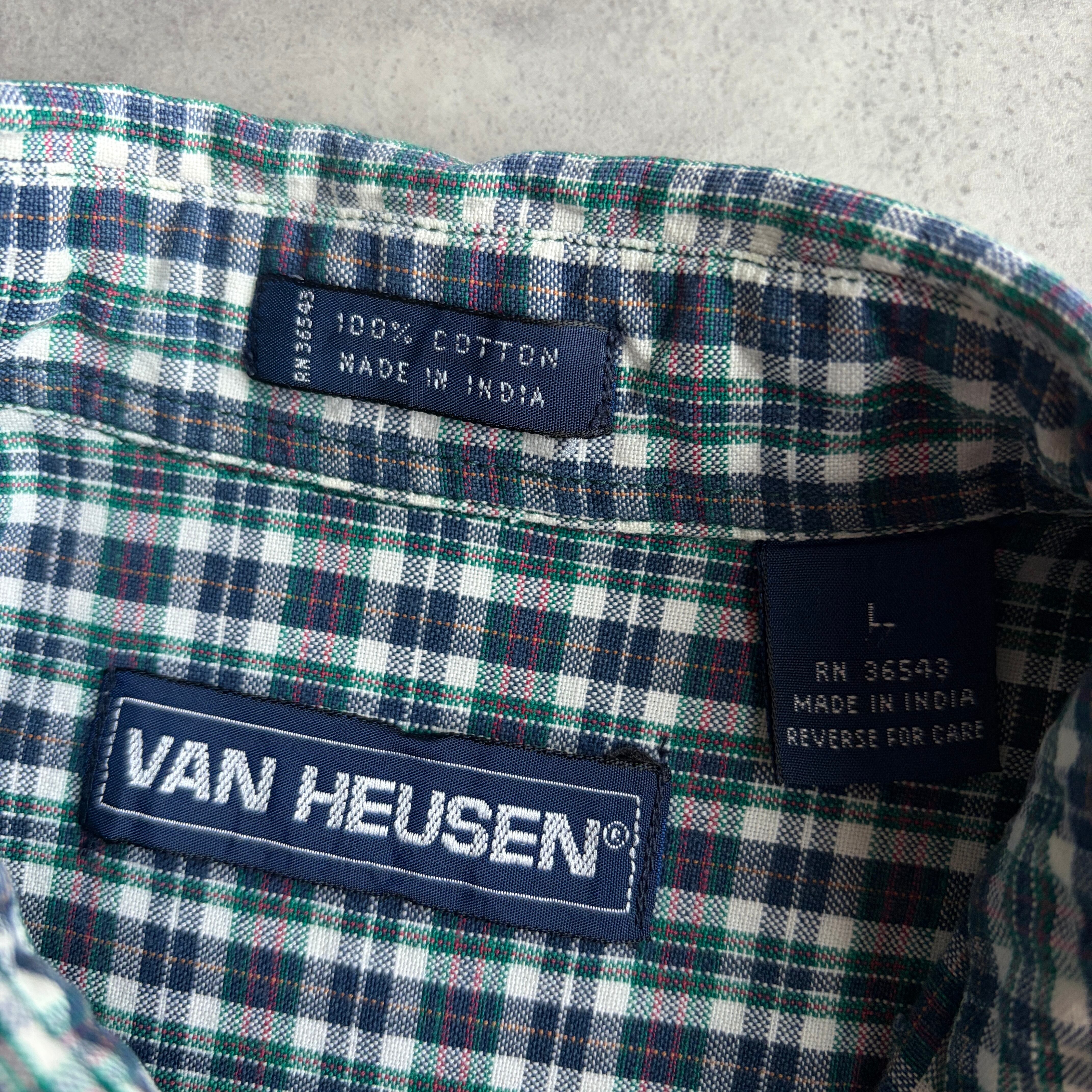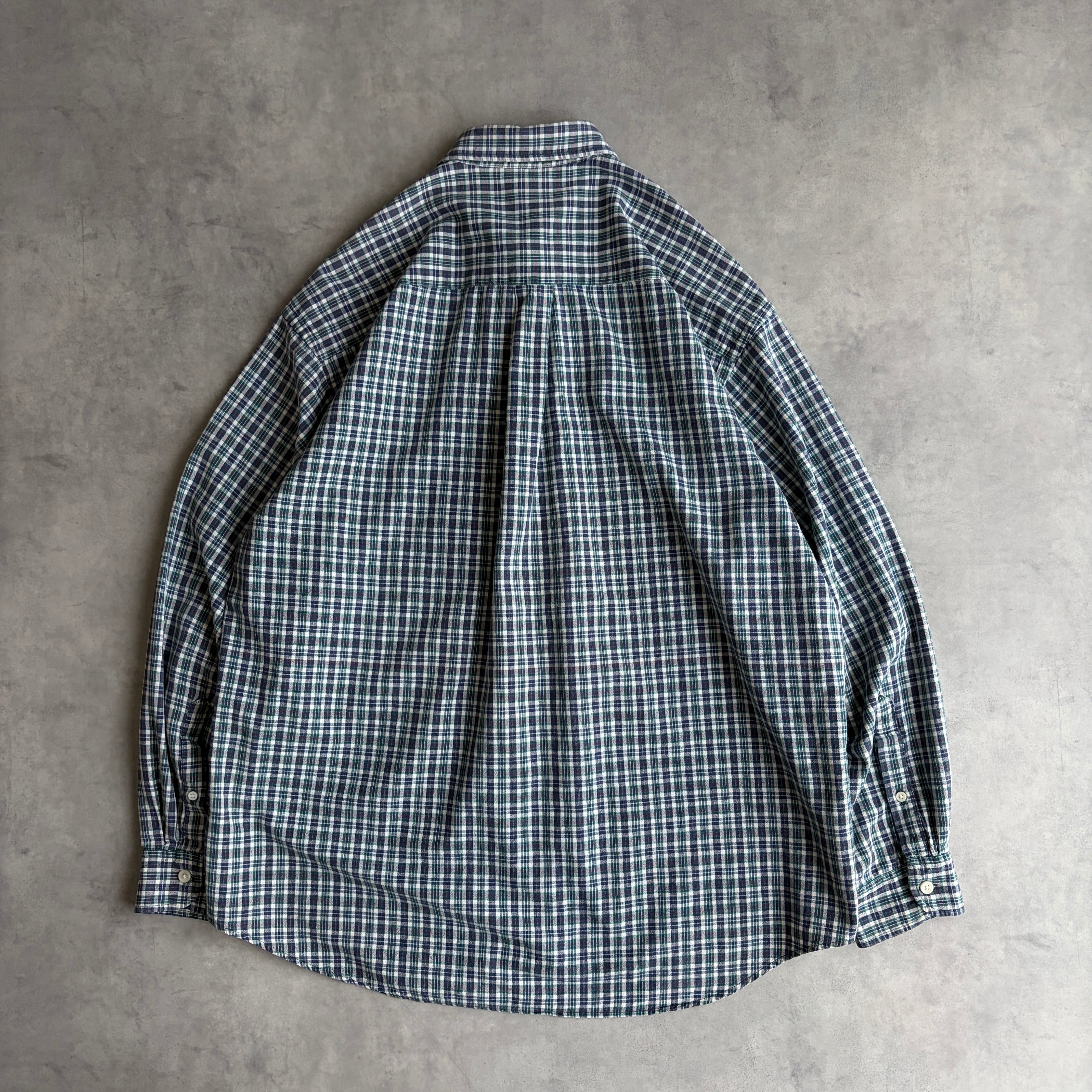 90s/VAN HEUSEN/ヴァンヒューゼン/長袖シャツ/ピンポイントオックスフォード/BD/ボタンダウン/ギンガムチェック/小格子柄/ネイビー/紺