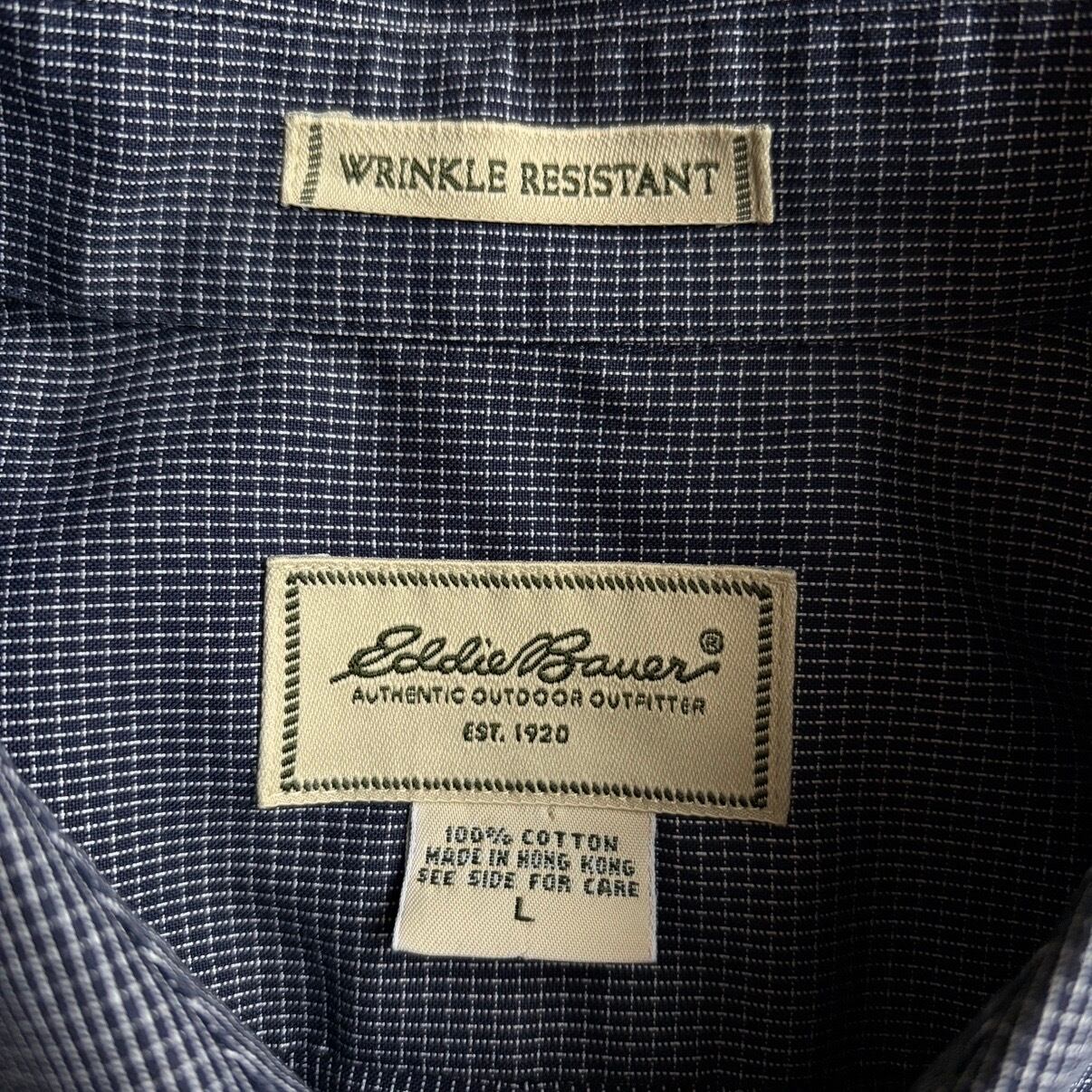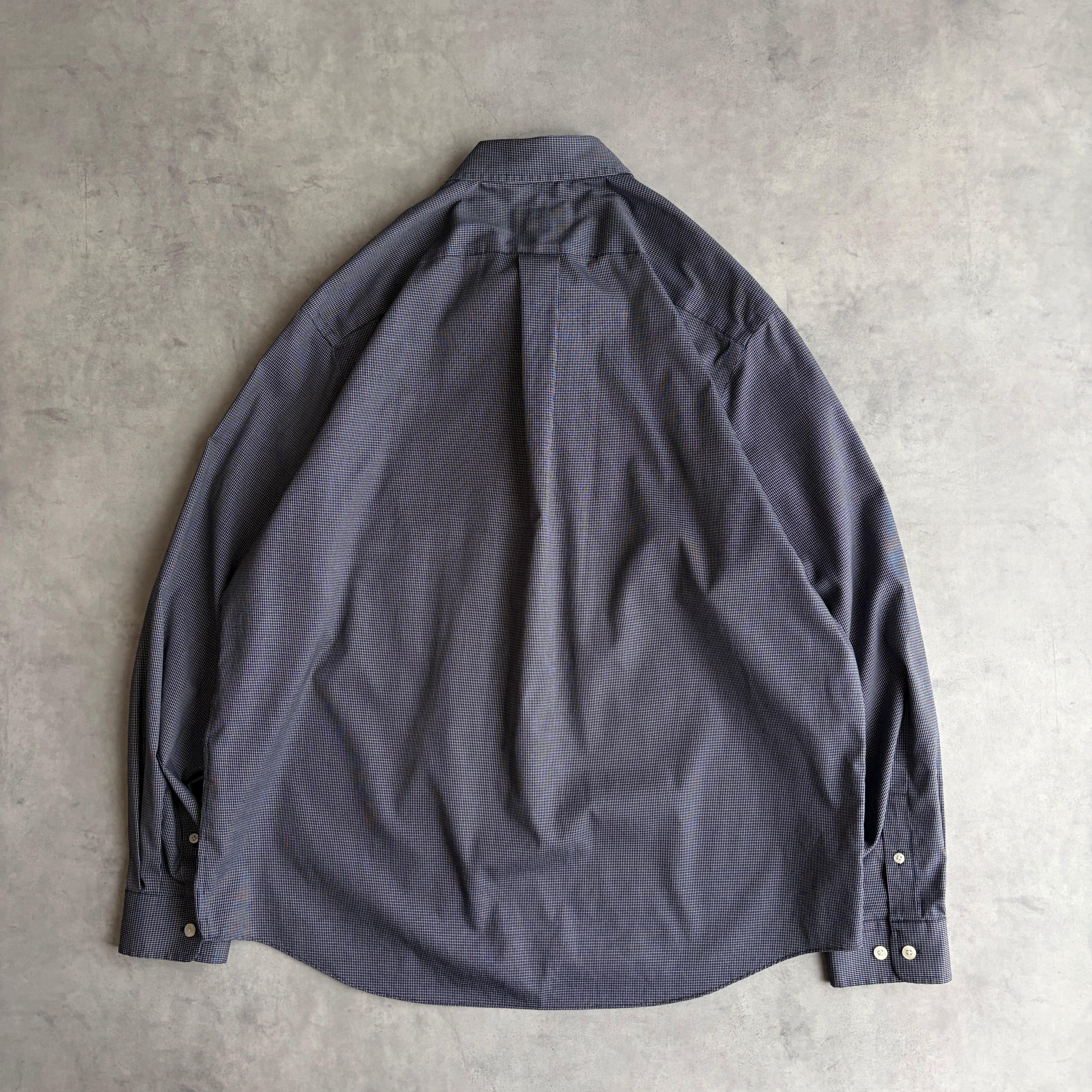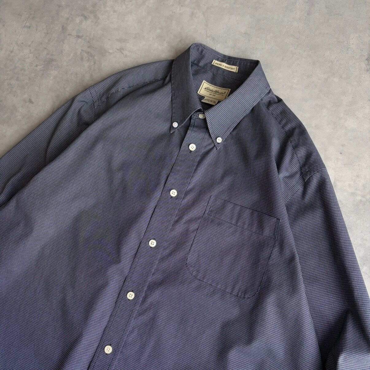 00s/Eddie Bauer/エディーバウアー/長袖シャツ/BD/ボタンダウン/ブロード生地/ギンガムチェック/小格子柄/ネイビー/紺