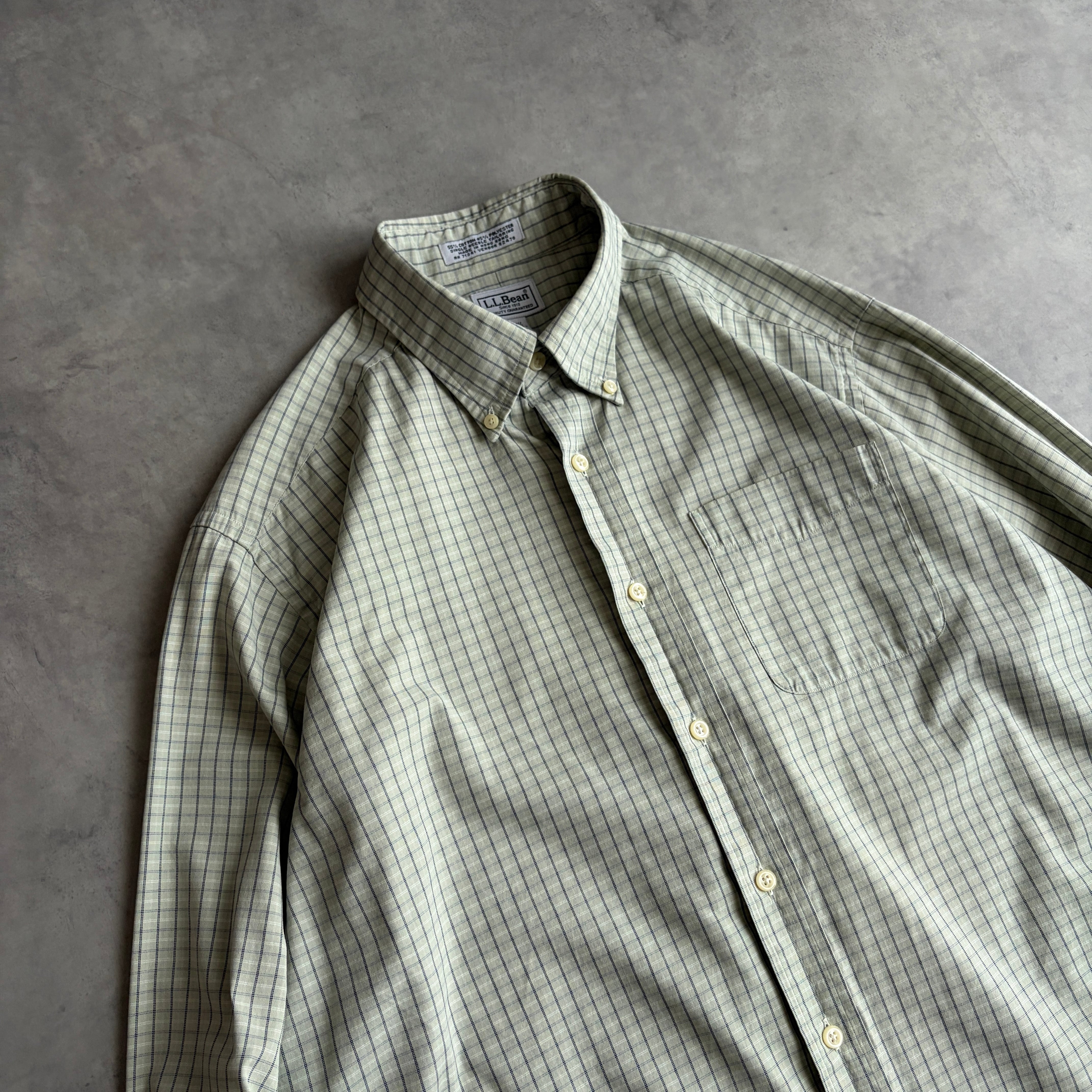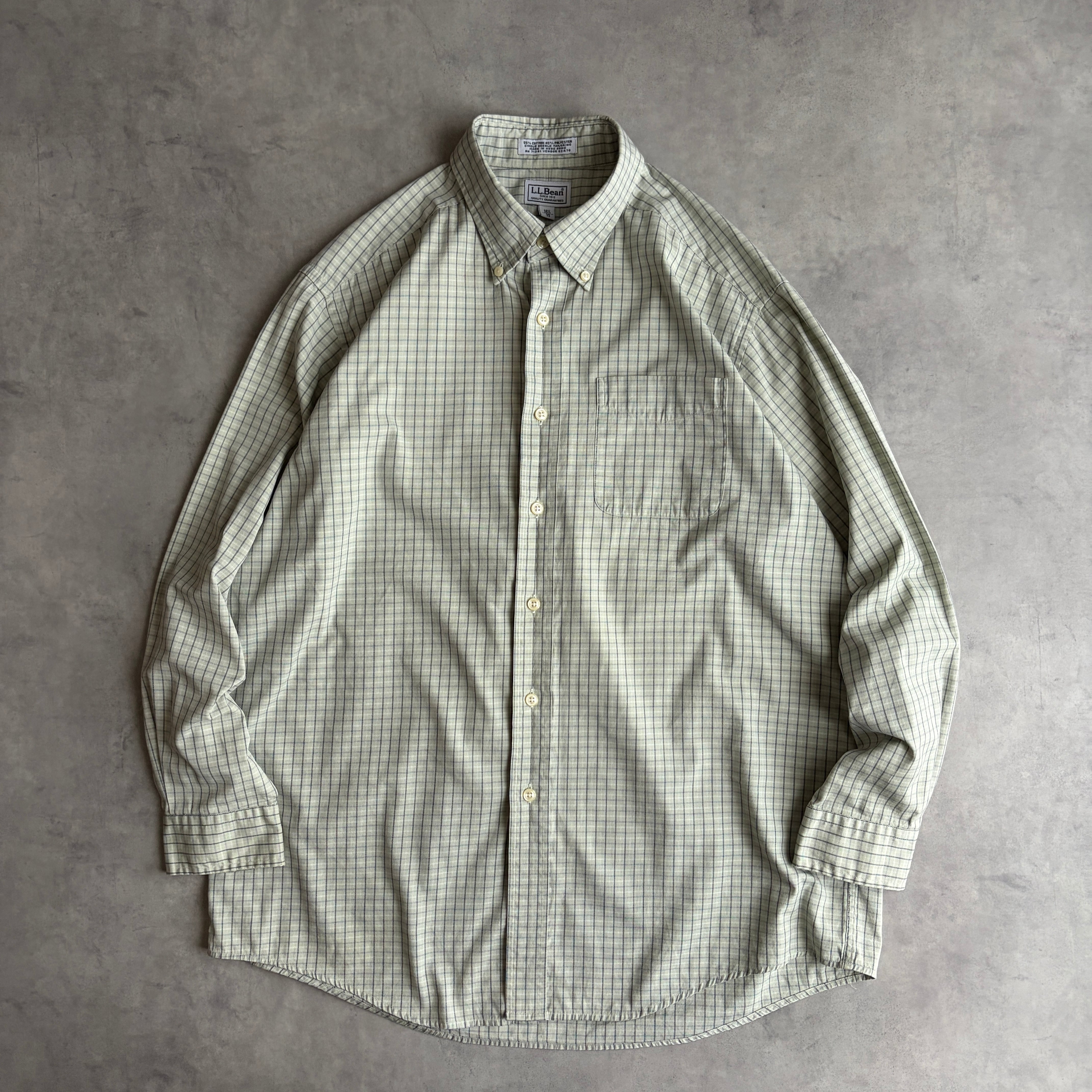 L.L.Bean/エルエルビーン/長袖シャツ/BD/ボタンダウン/ブロード生地/ギンガムチェック/小格子柄/ライトグリーン
