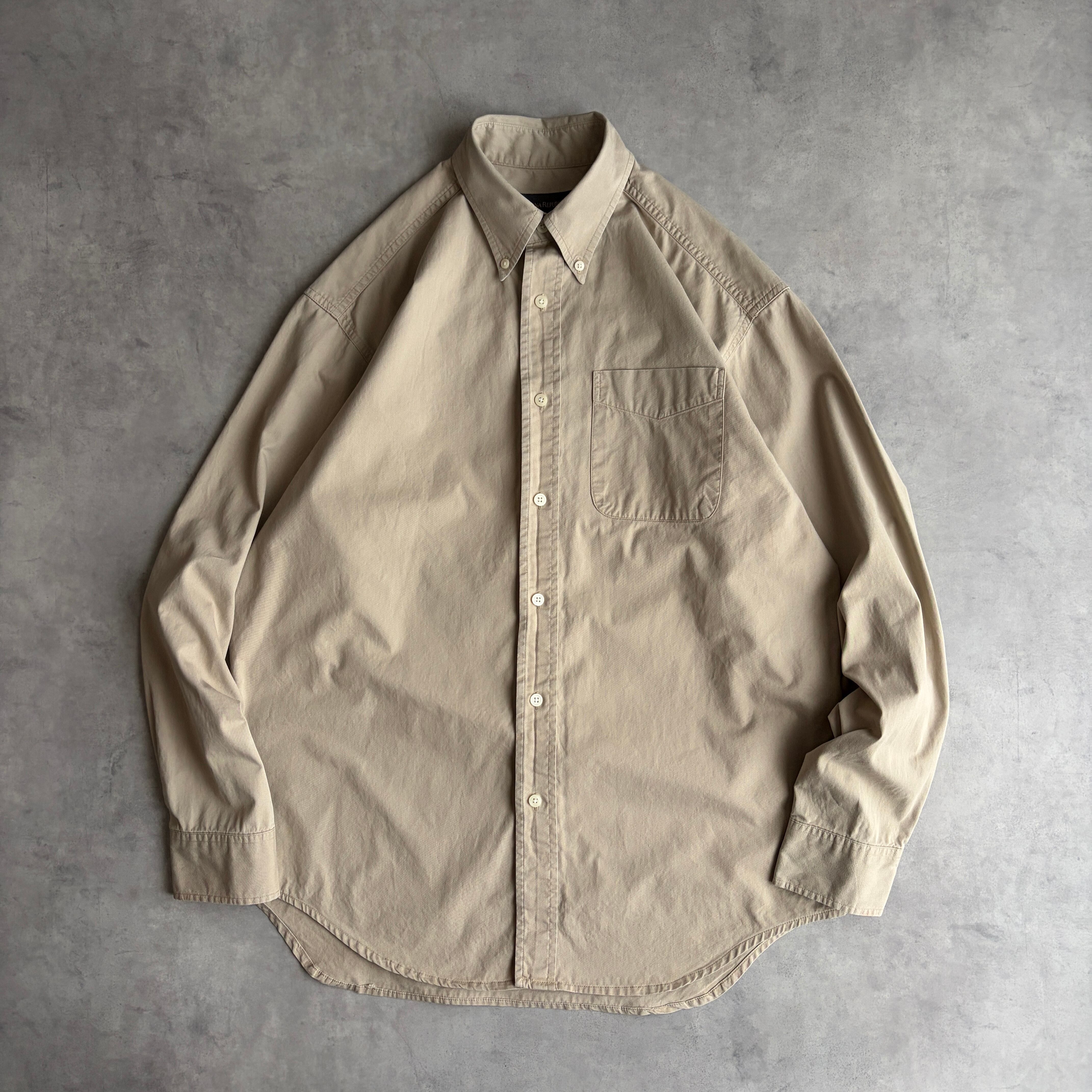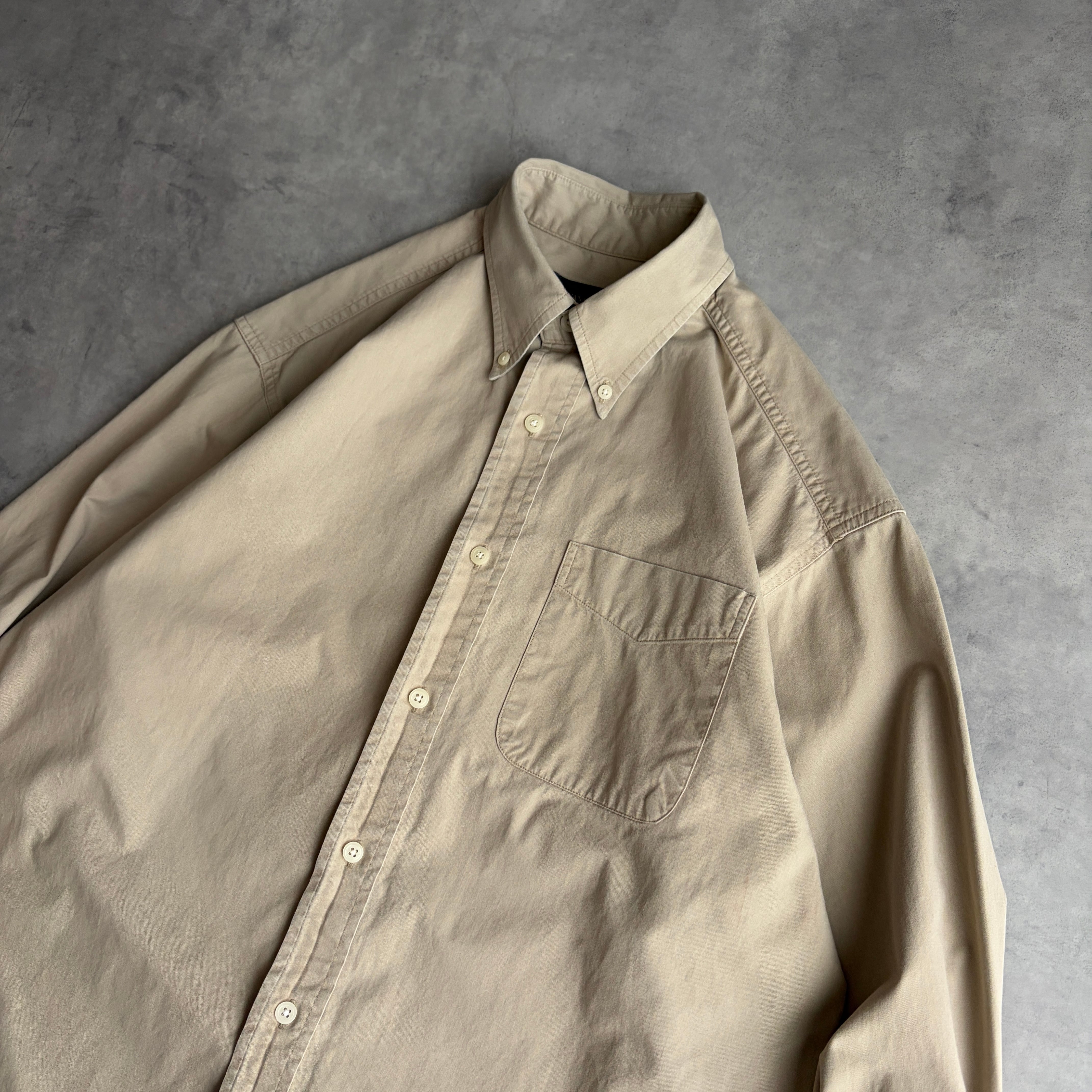 00s/BANANA REPUBLIC/バナナリパブリック/バナリパ/長袖シャツ/BD/ボタンダウン/ツイル生地/無地/ソリッド/ノームコア/ベージュ