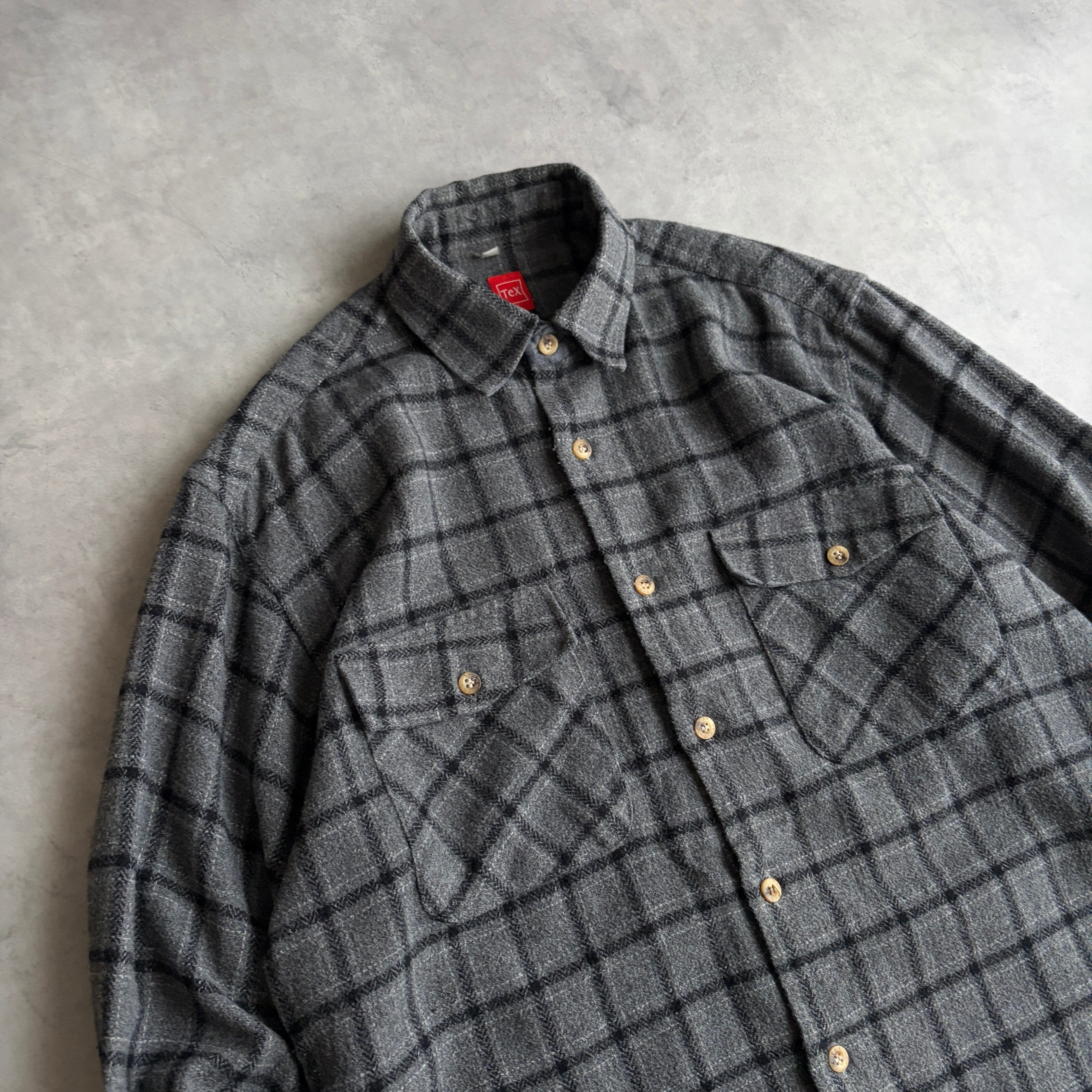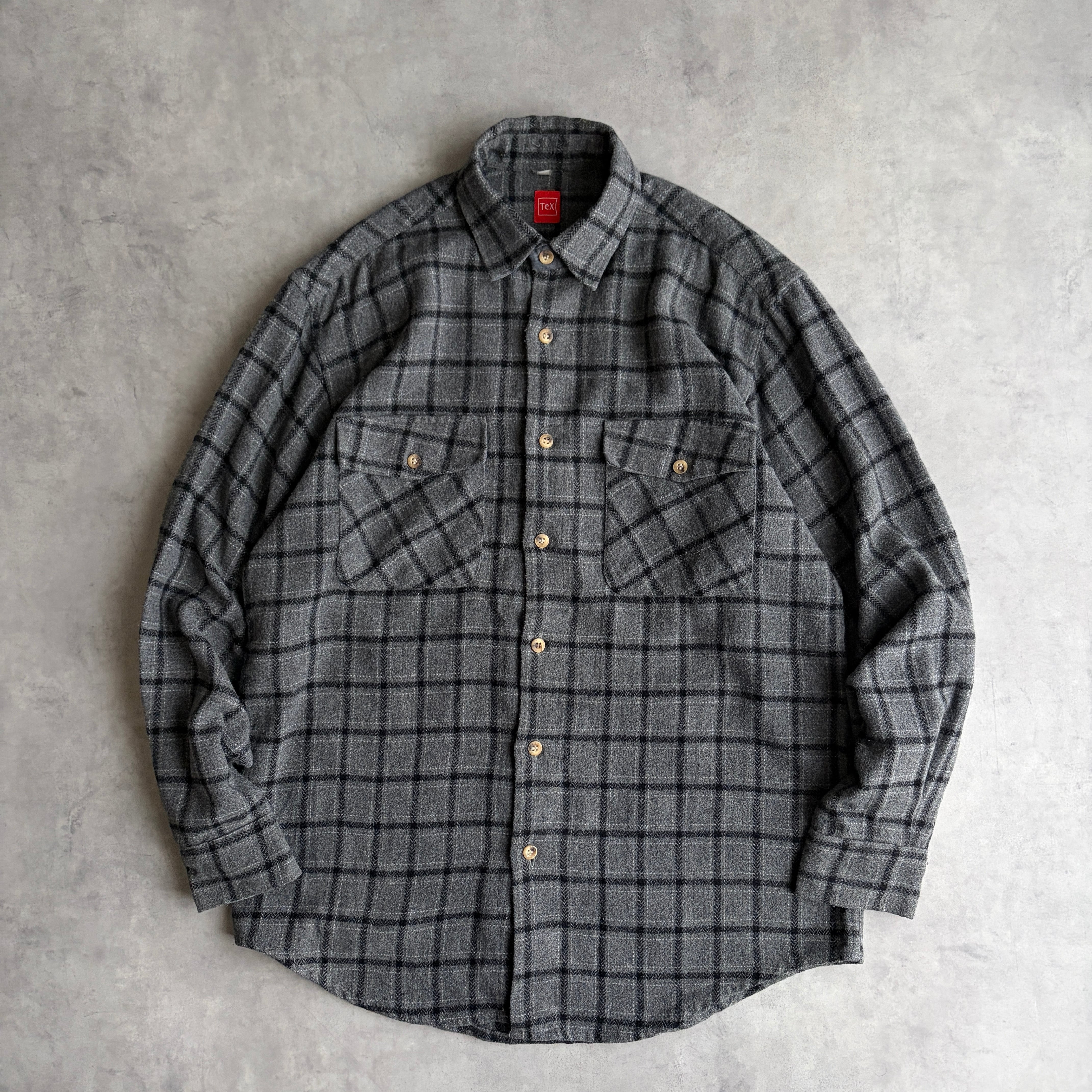 00s〜/TeX/長袖シャツ/フリース生地/フラップポケット/ウィンドウペンチェック/格子柄/チャコールグレー
