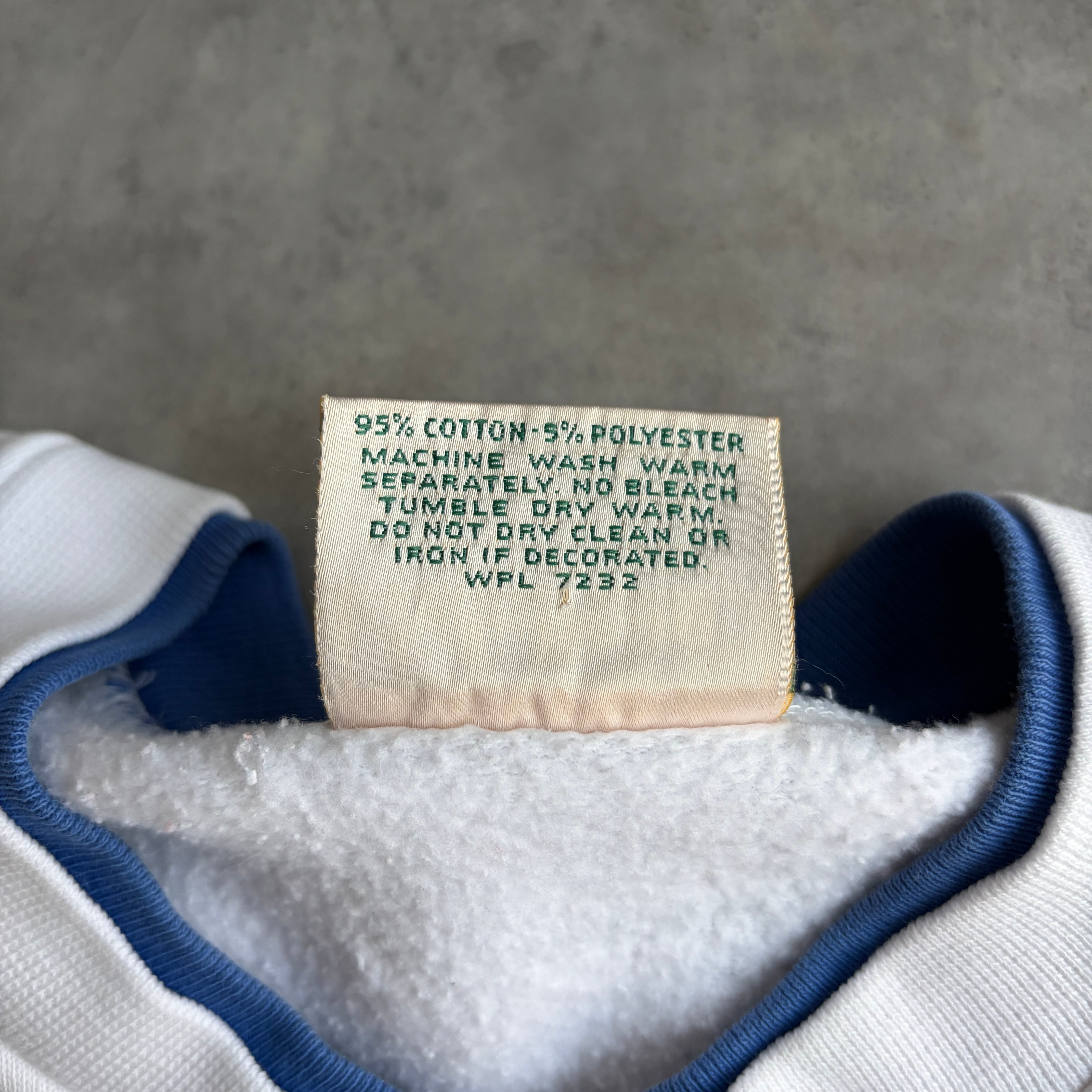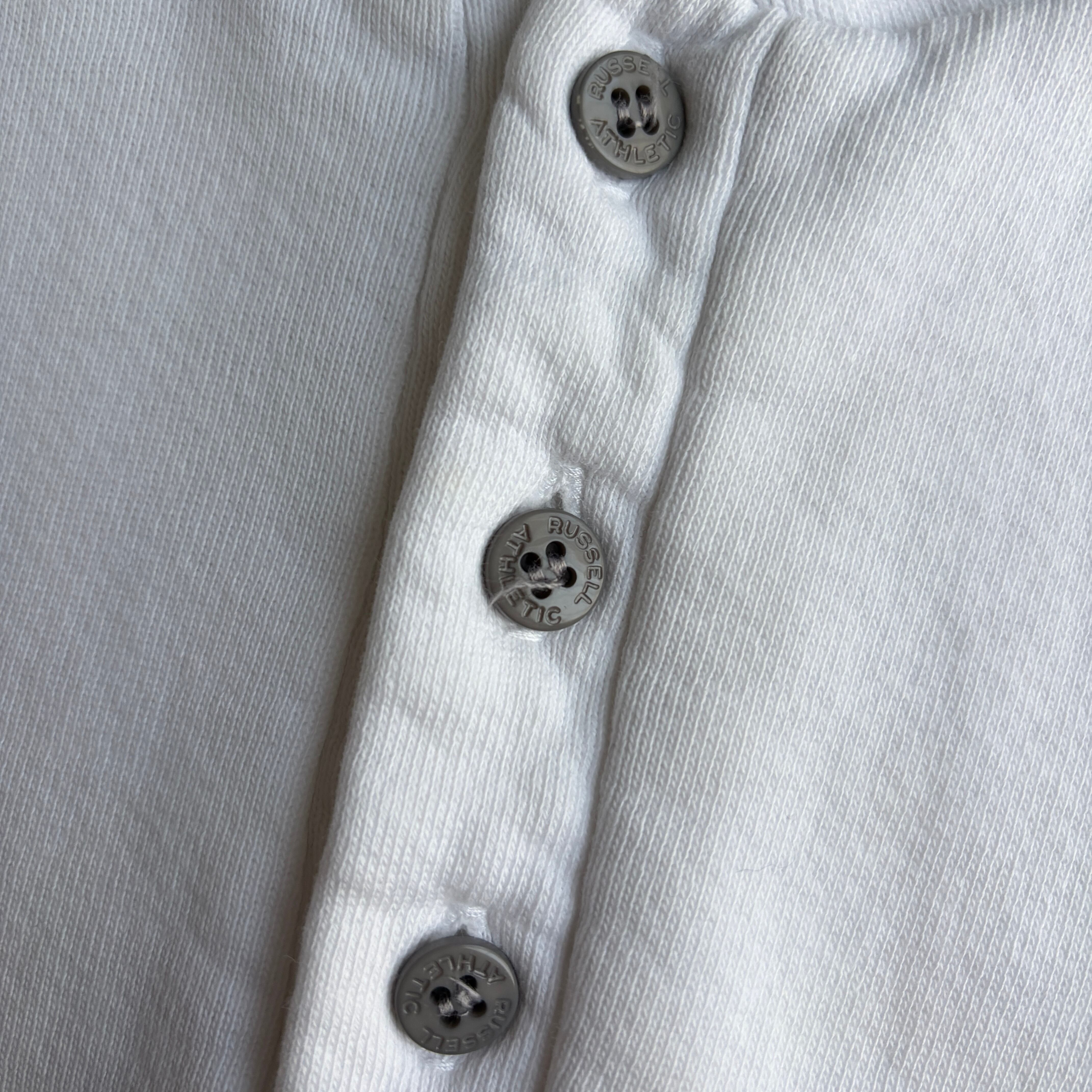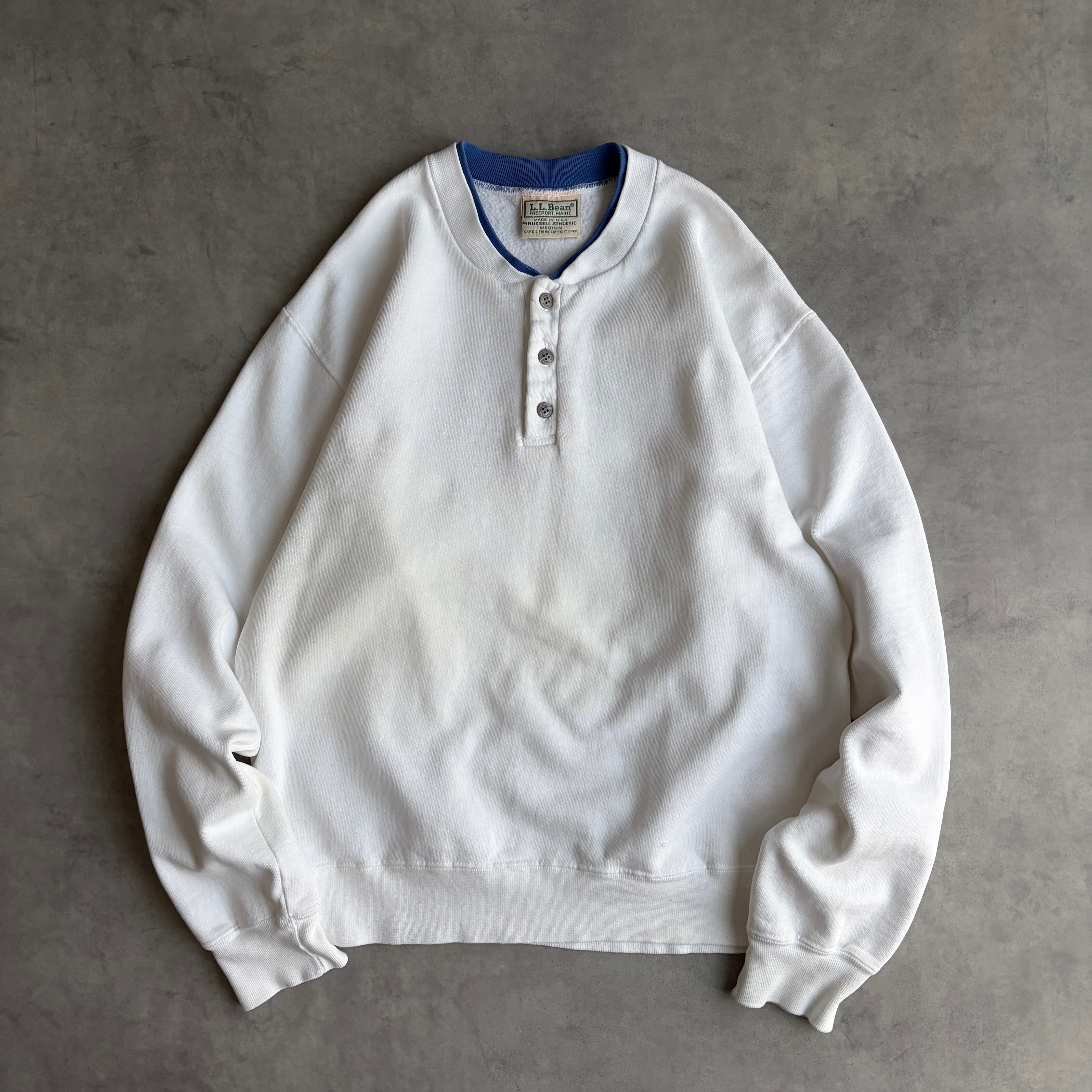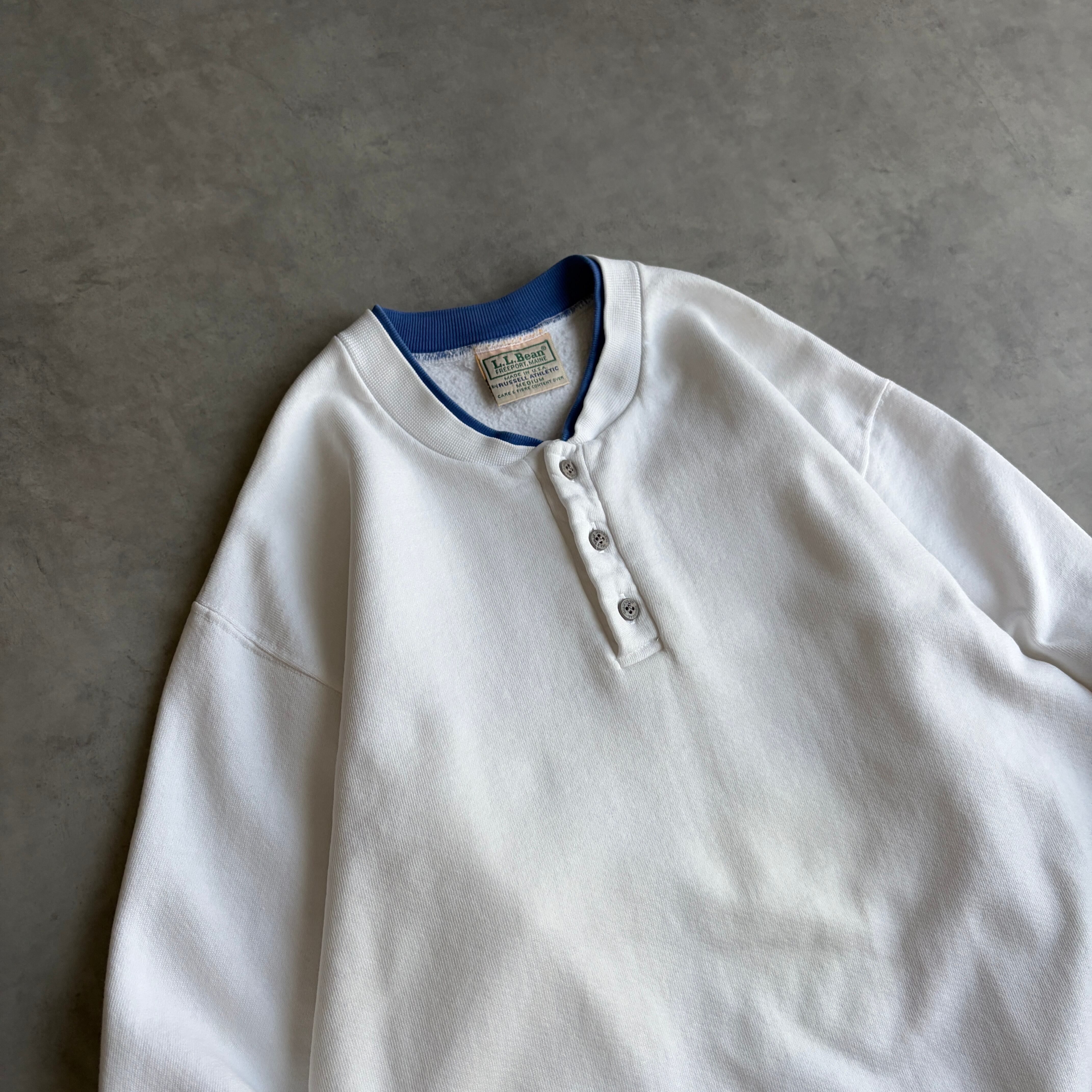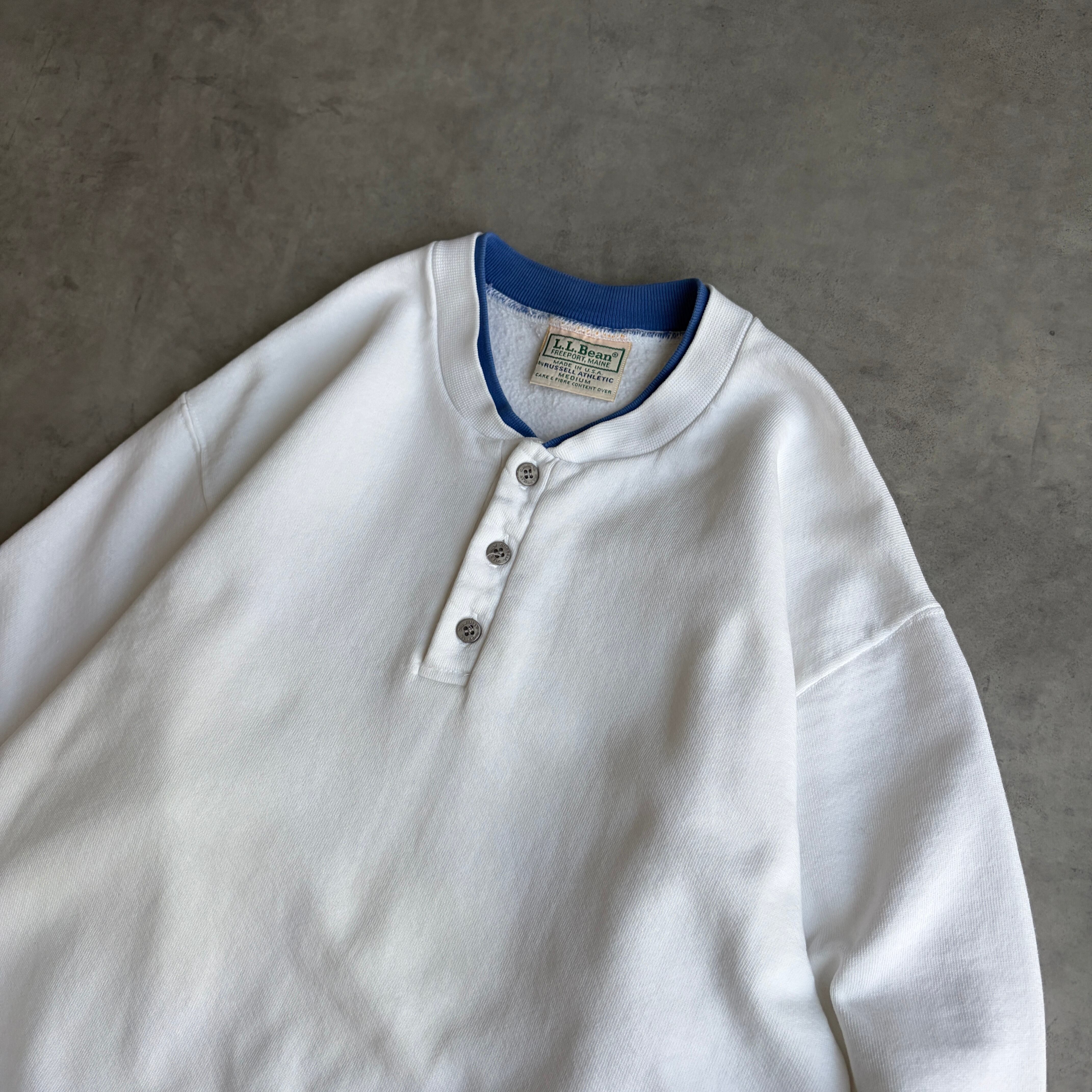 90s/L.L.Bean×RUSSELL ATHLETIC/エルエルビーン×ラッセルアスレチック/無地スウェット/ヘンリーネック/ハーフボタン/脇ガゼット/USA製/アメリカ製/ホワイト×ブルー