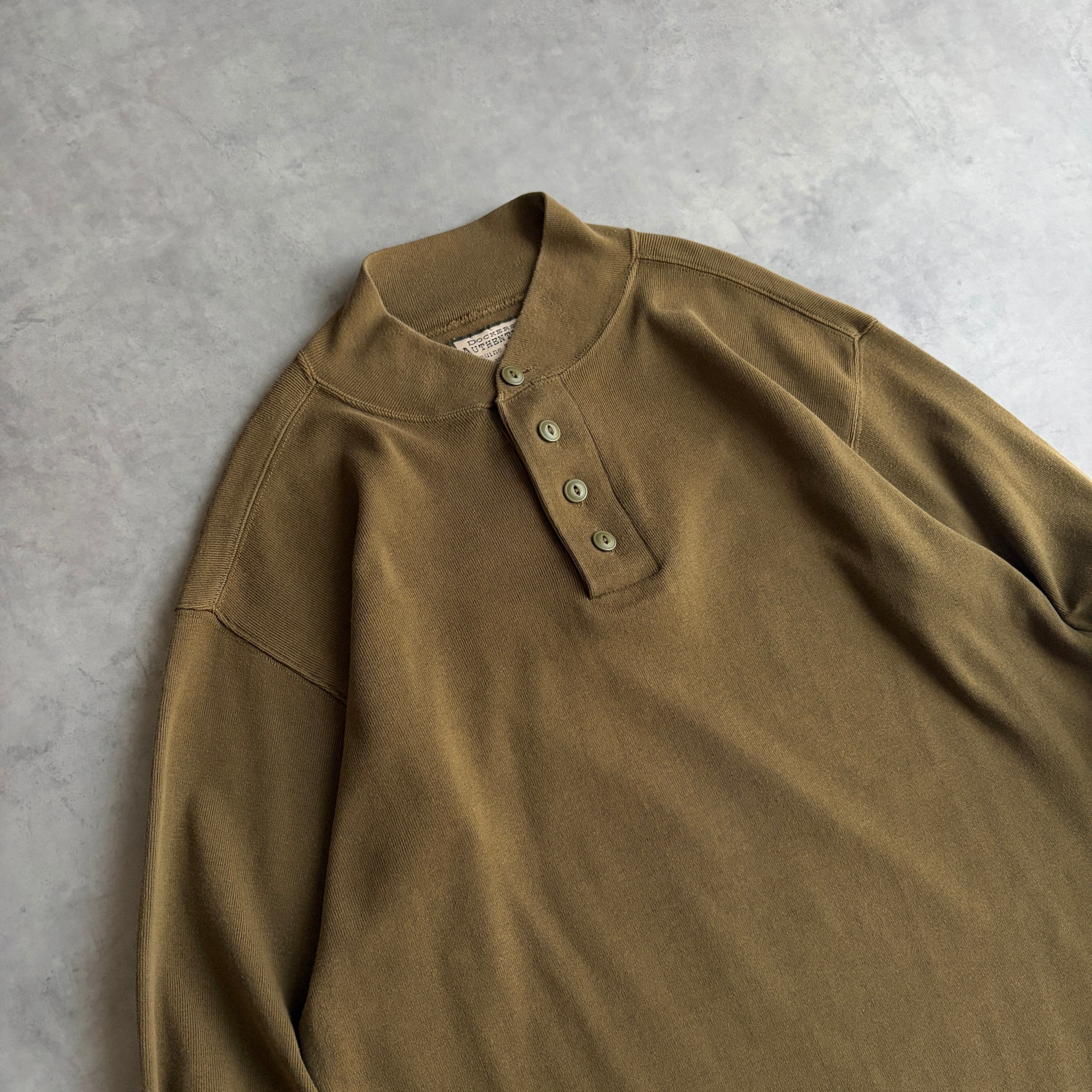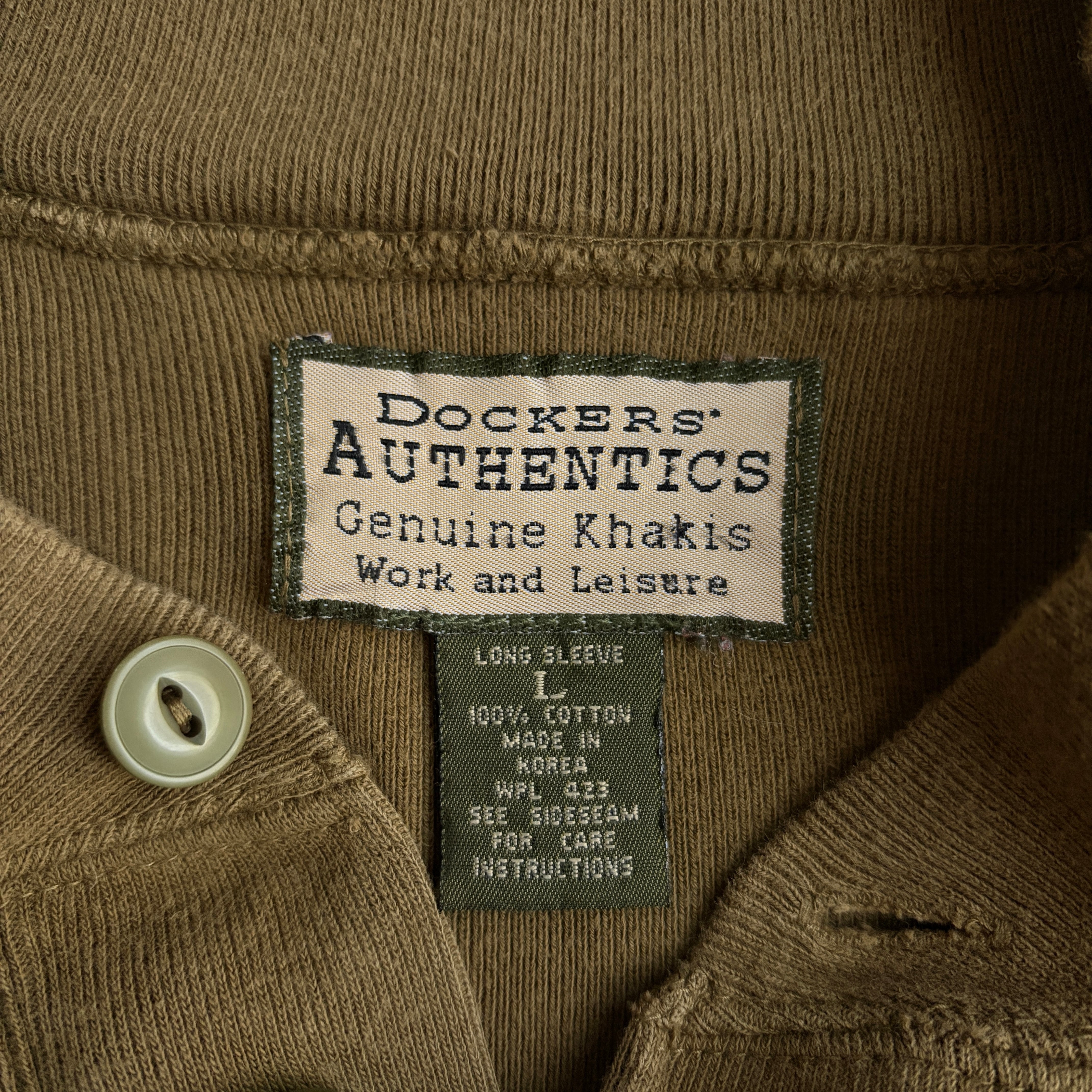 90s/DOCKERS/ヘビーウエイトカットソー/ヘンリーネック/ロンT/猫目ボタン/ネコ目/カーキグリーン