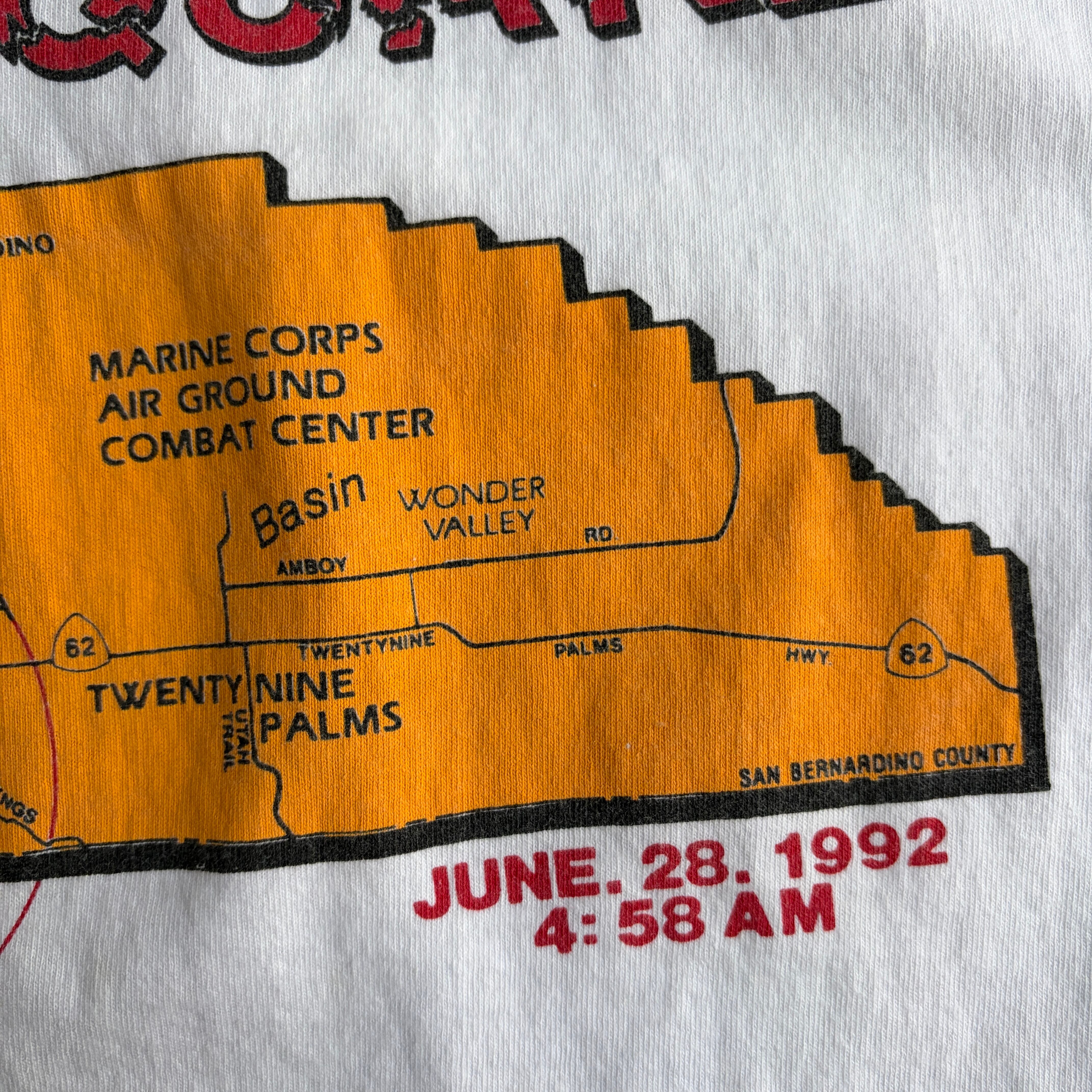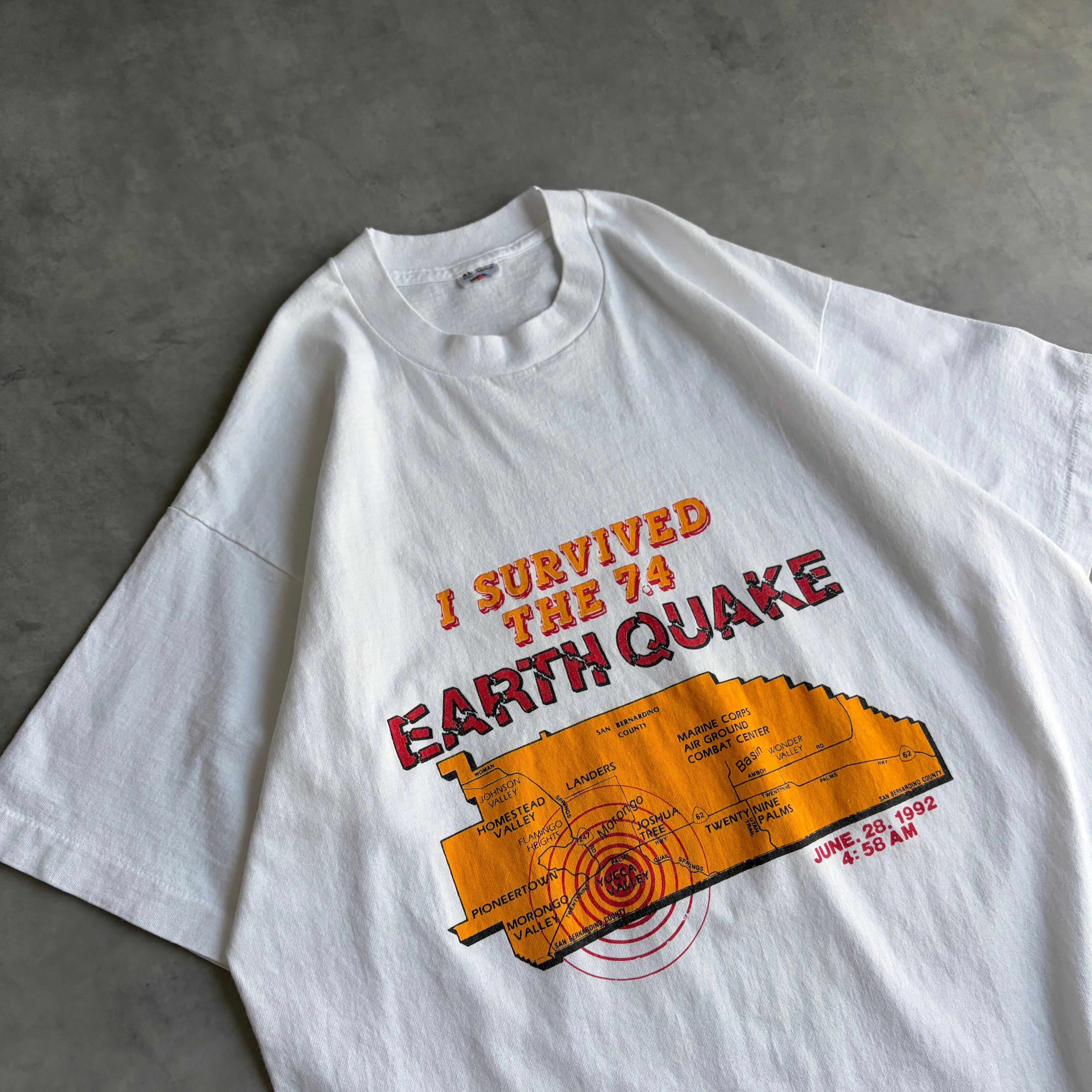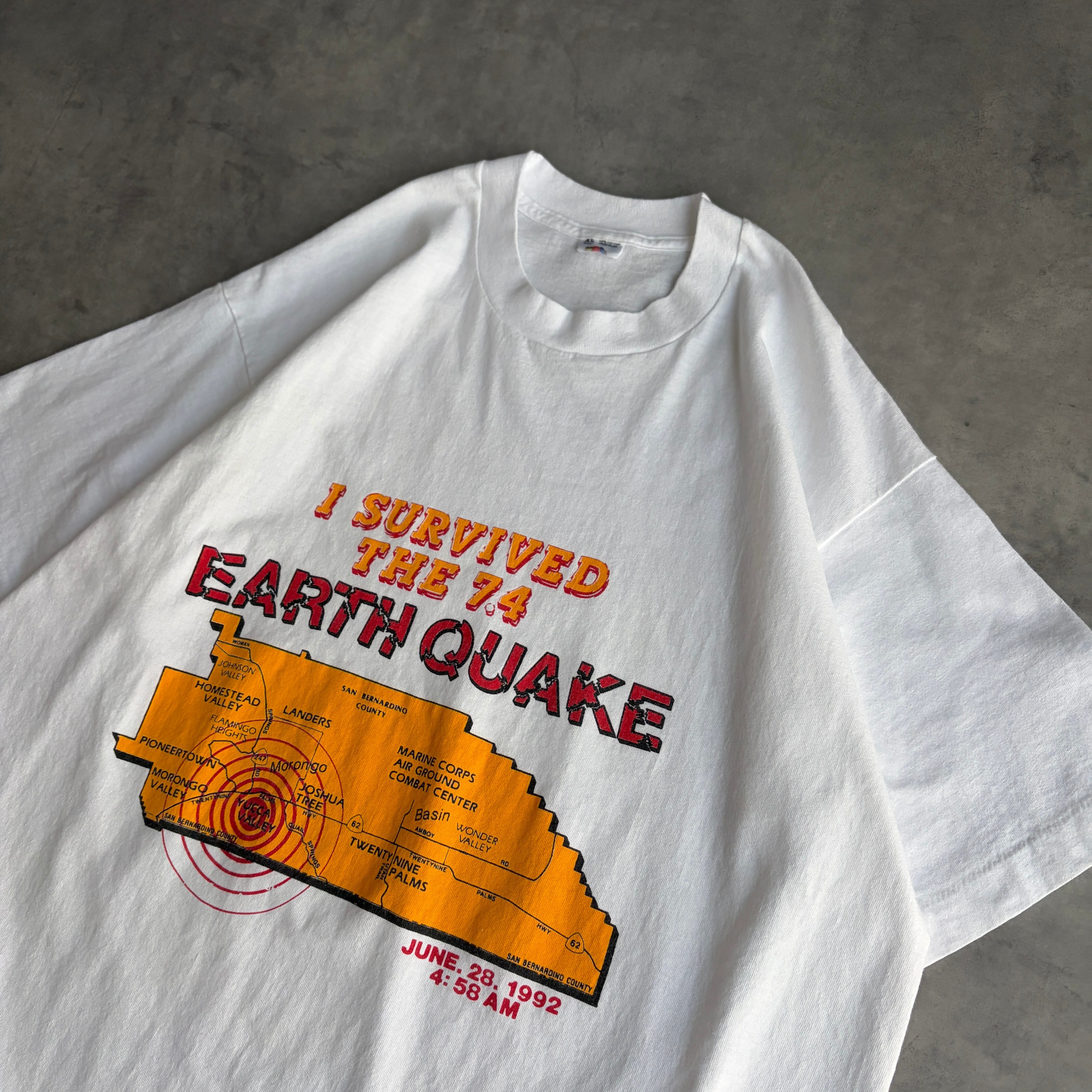 90s/FRUIT OF THE LOOM/フルーツオブザルーム/半袖Tシャツ/USA製/シングルステッチ/スーベニア/サバイバー/災害/地震/地図プリント/ホワイト/白/jmaple