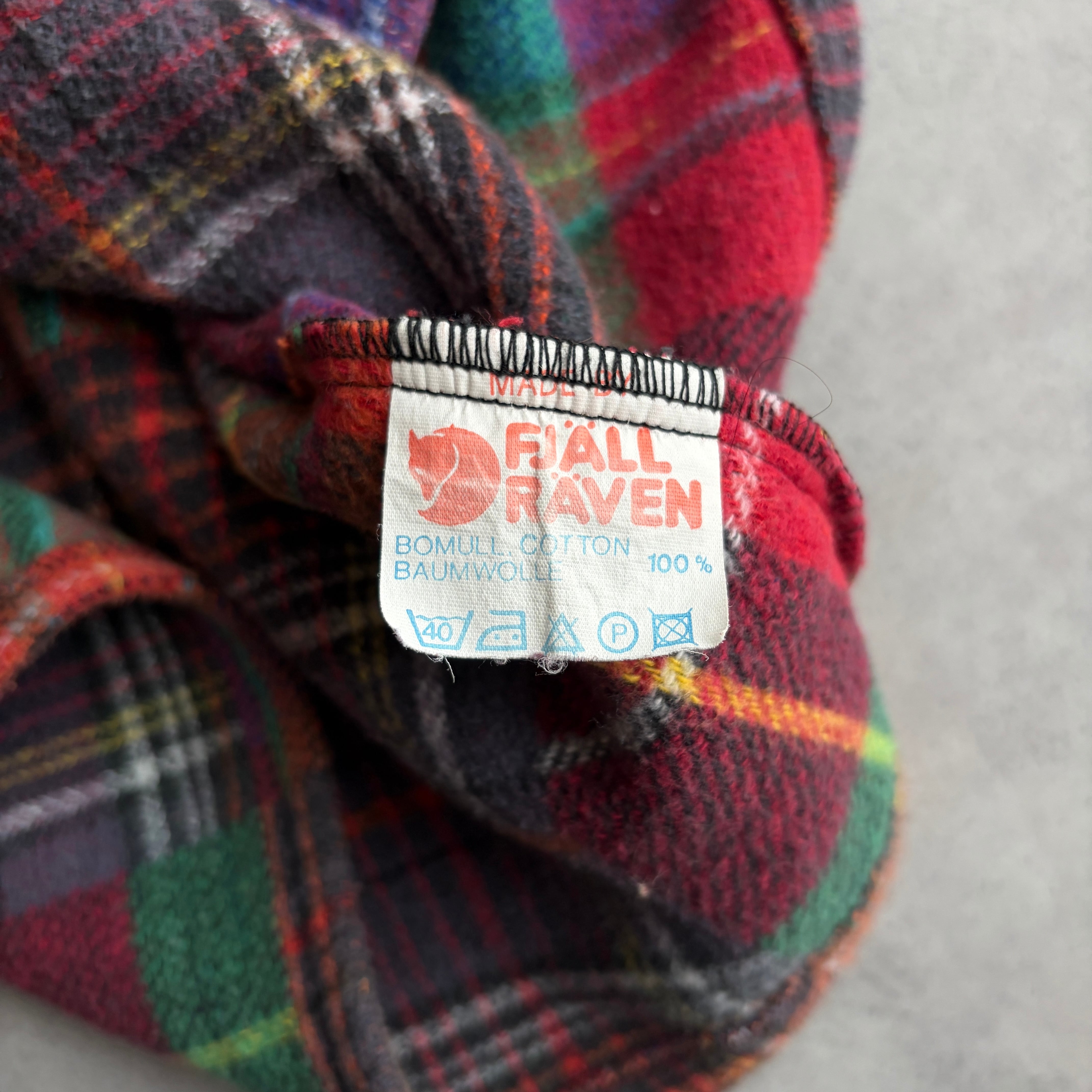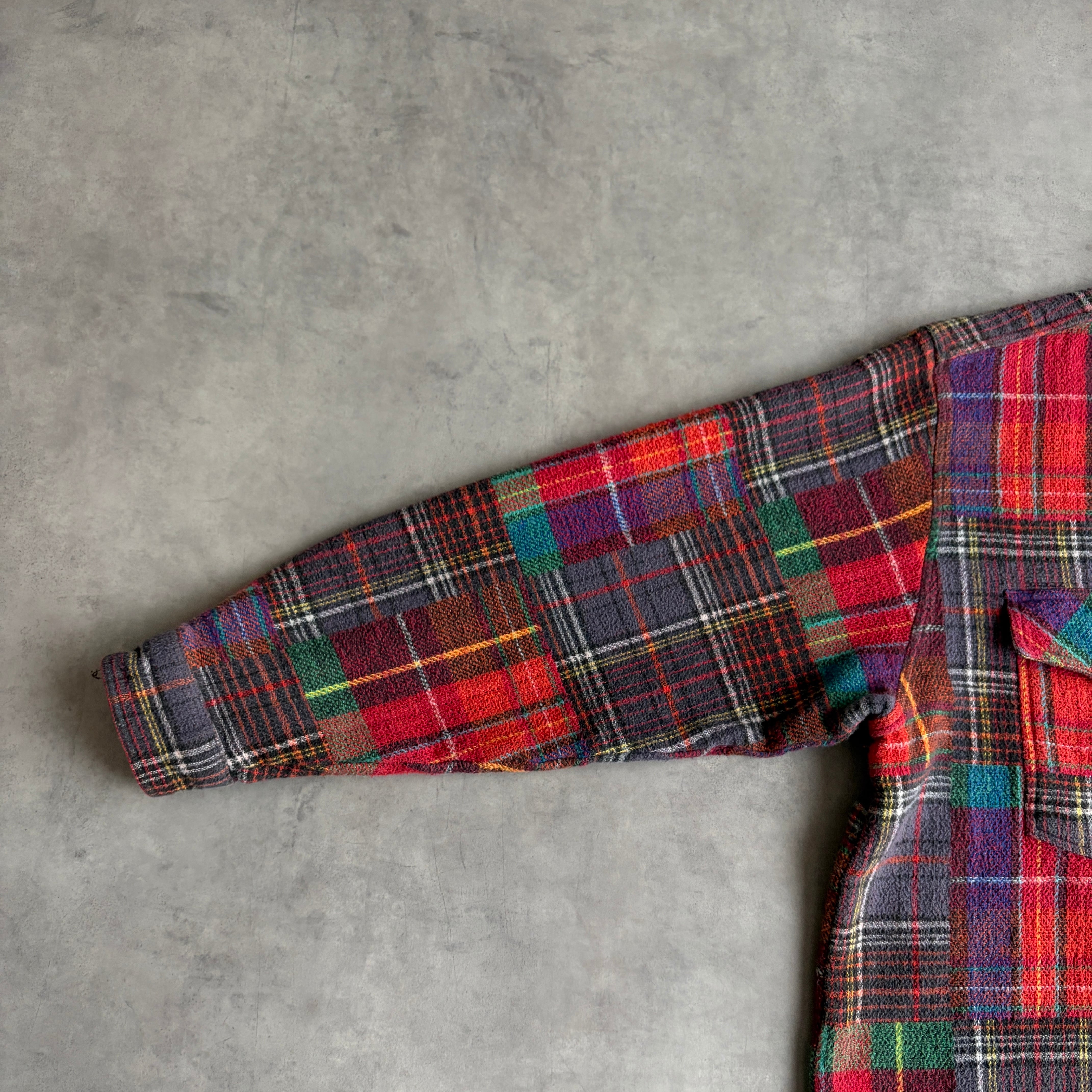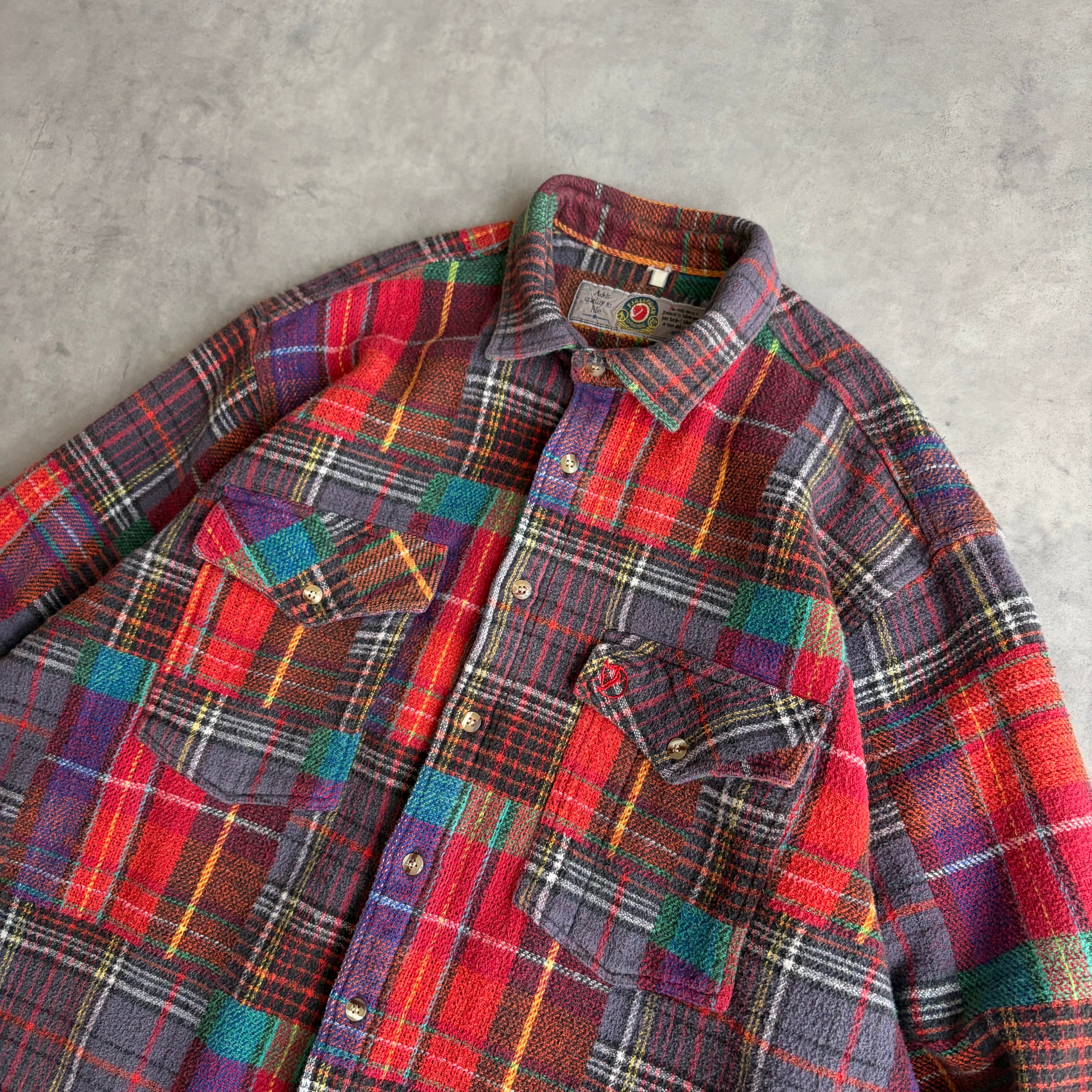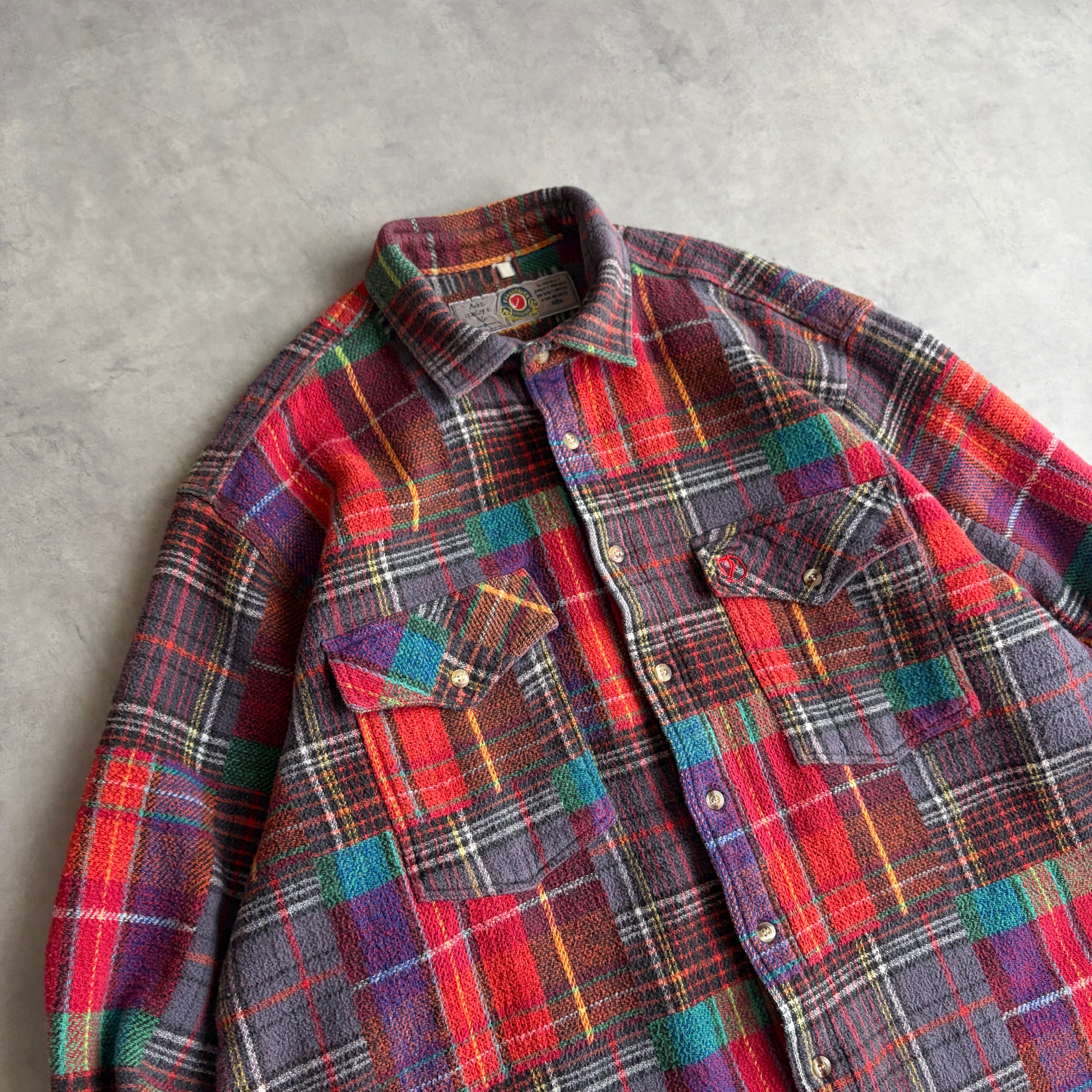 80s/FJALLRAVEN/ファールラーベン/長袖シャツ/ヘビーフランネル/マドラスチェック/パッチワーク風/フラップポケット/ボックスタイプ/肉厚/マルチカラー/jmaple