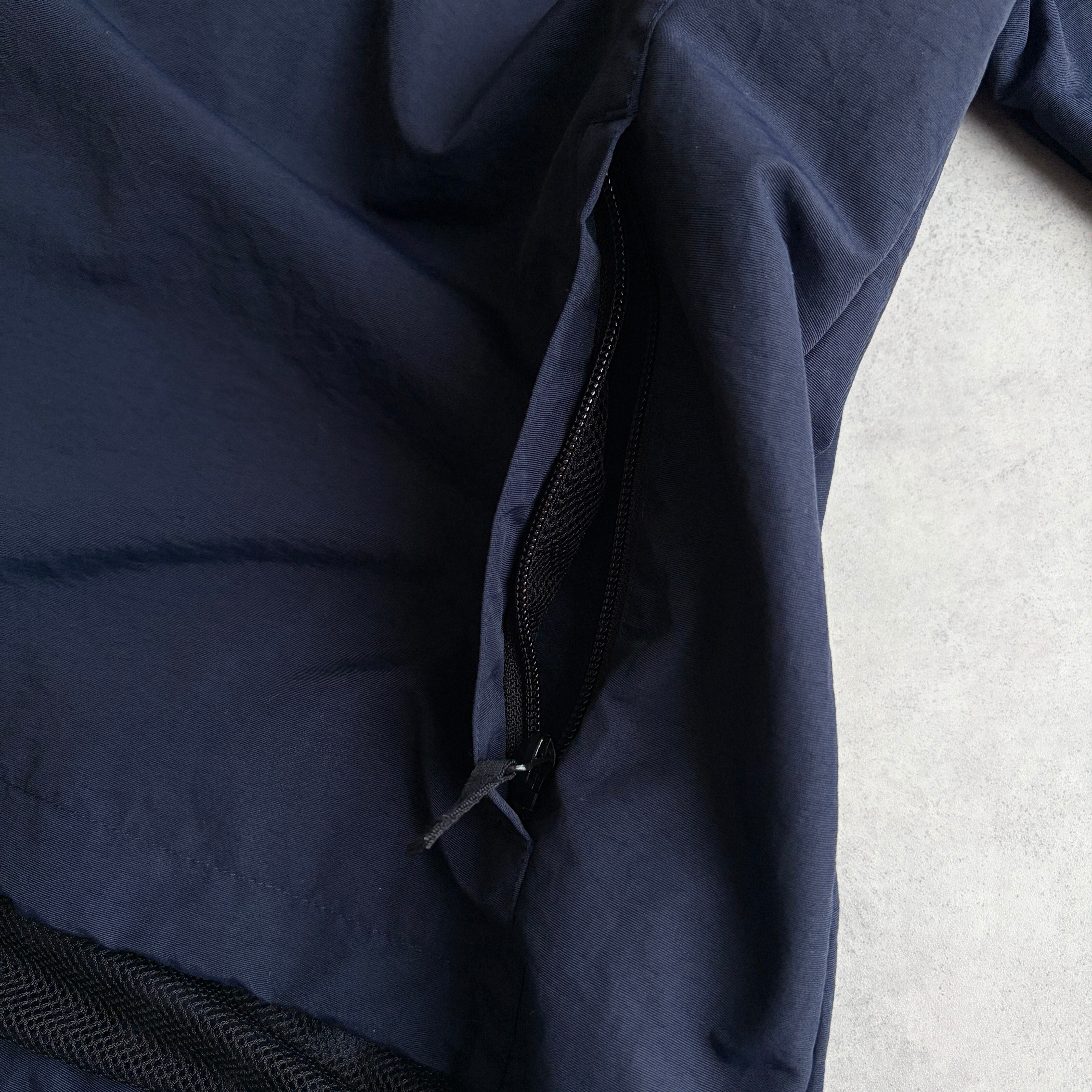 裏メッシュ仕様や袖口はベルクロ、裾ドローコードに内ポケットはハーフジップから使えます。