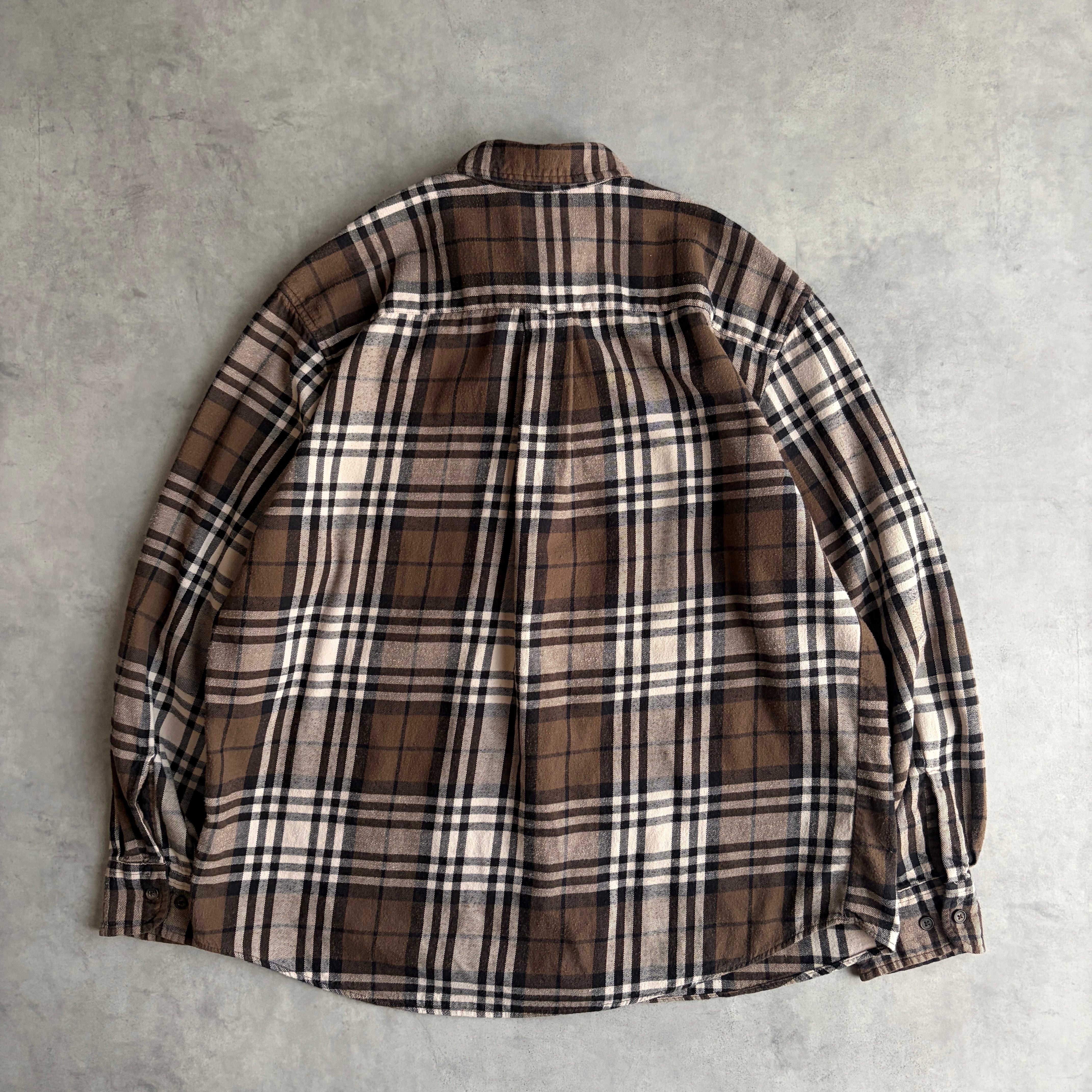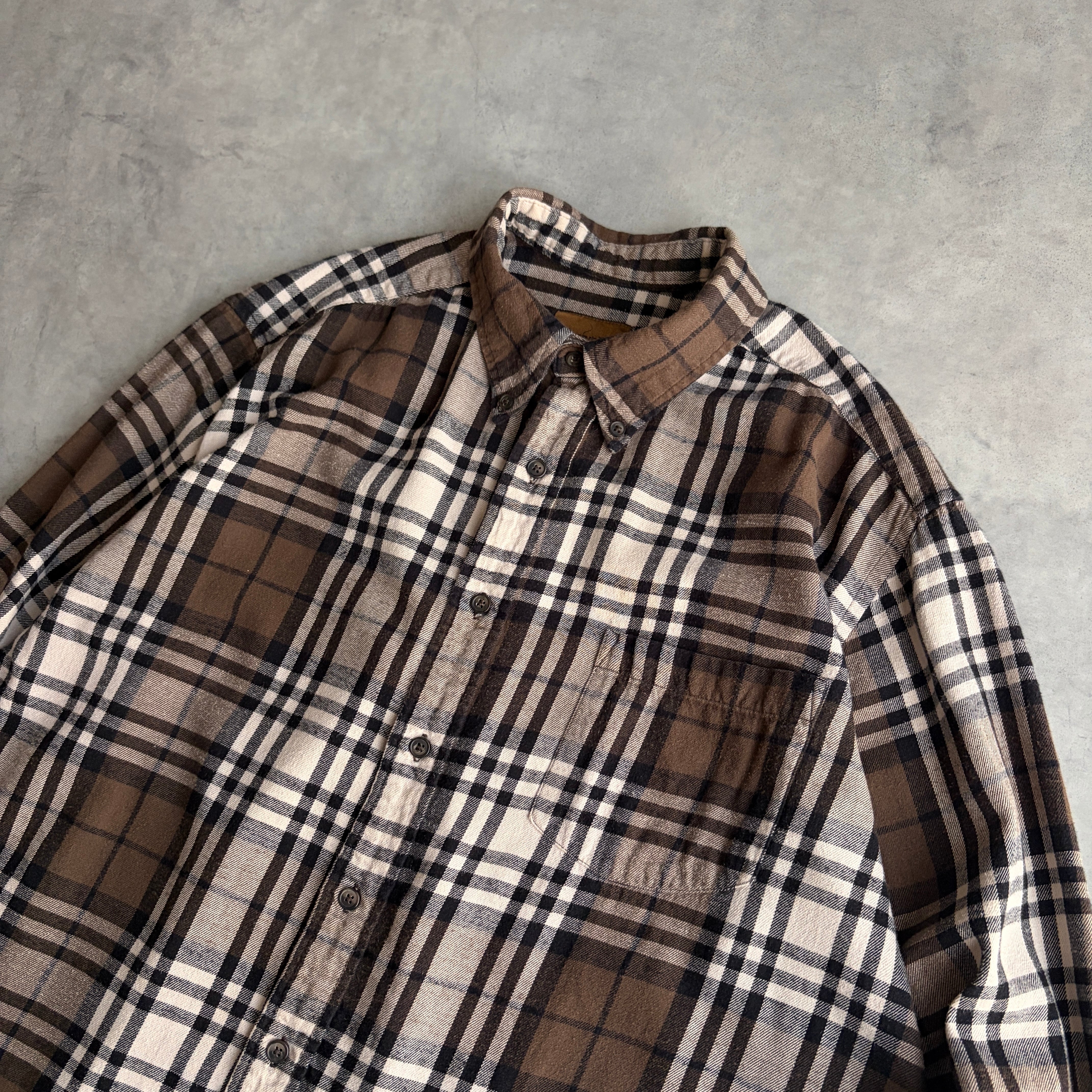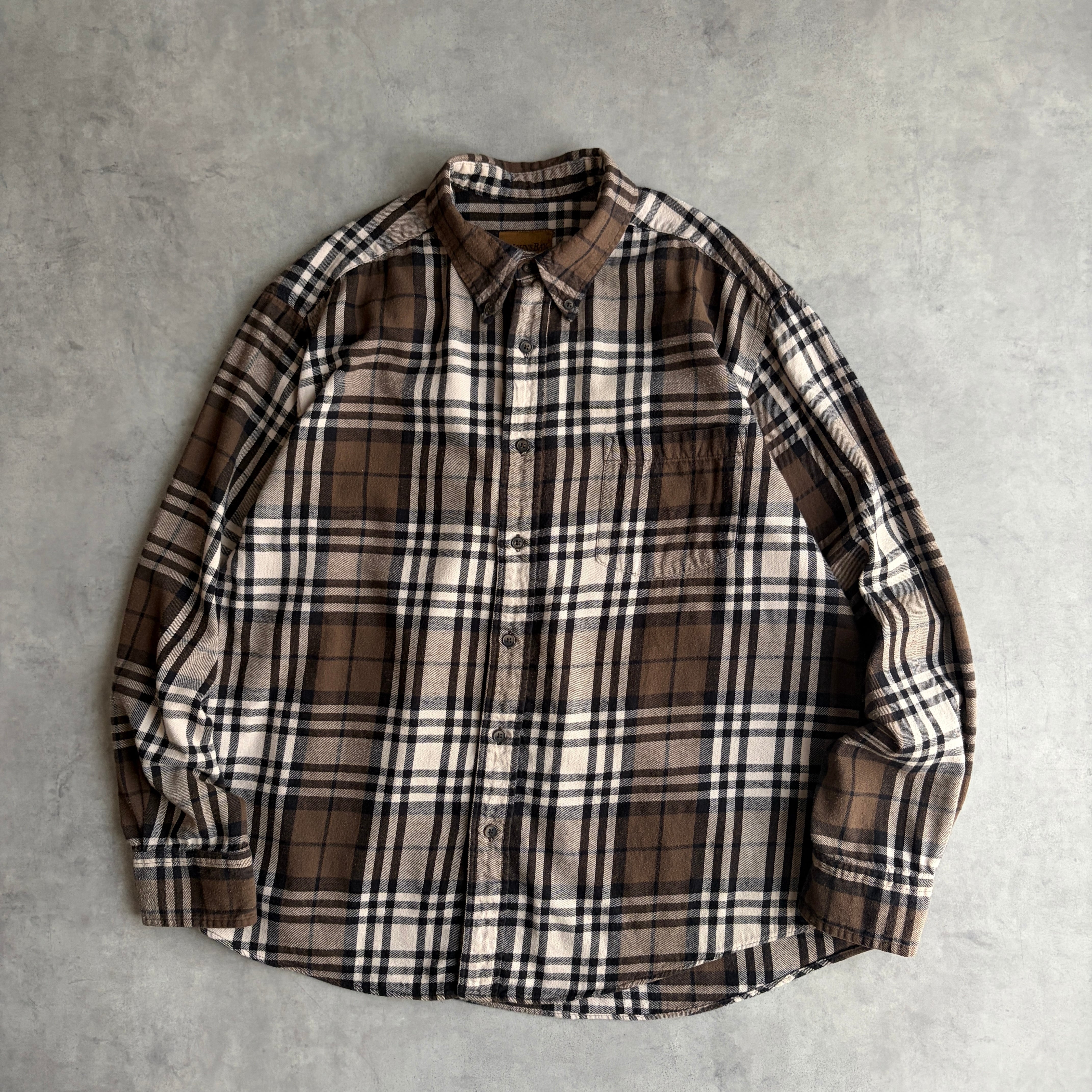 90s〜00s/ST JOHN'S BAY/セントジョンズベイ/フランネルシャツ/BD/ボタンダウン/チェック柄/アースカラー/ブラウン/jmaple