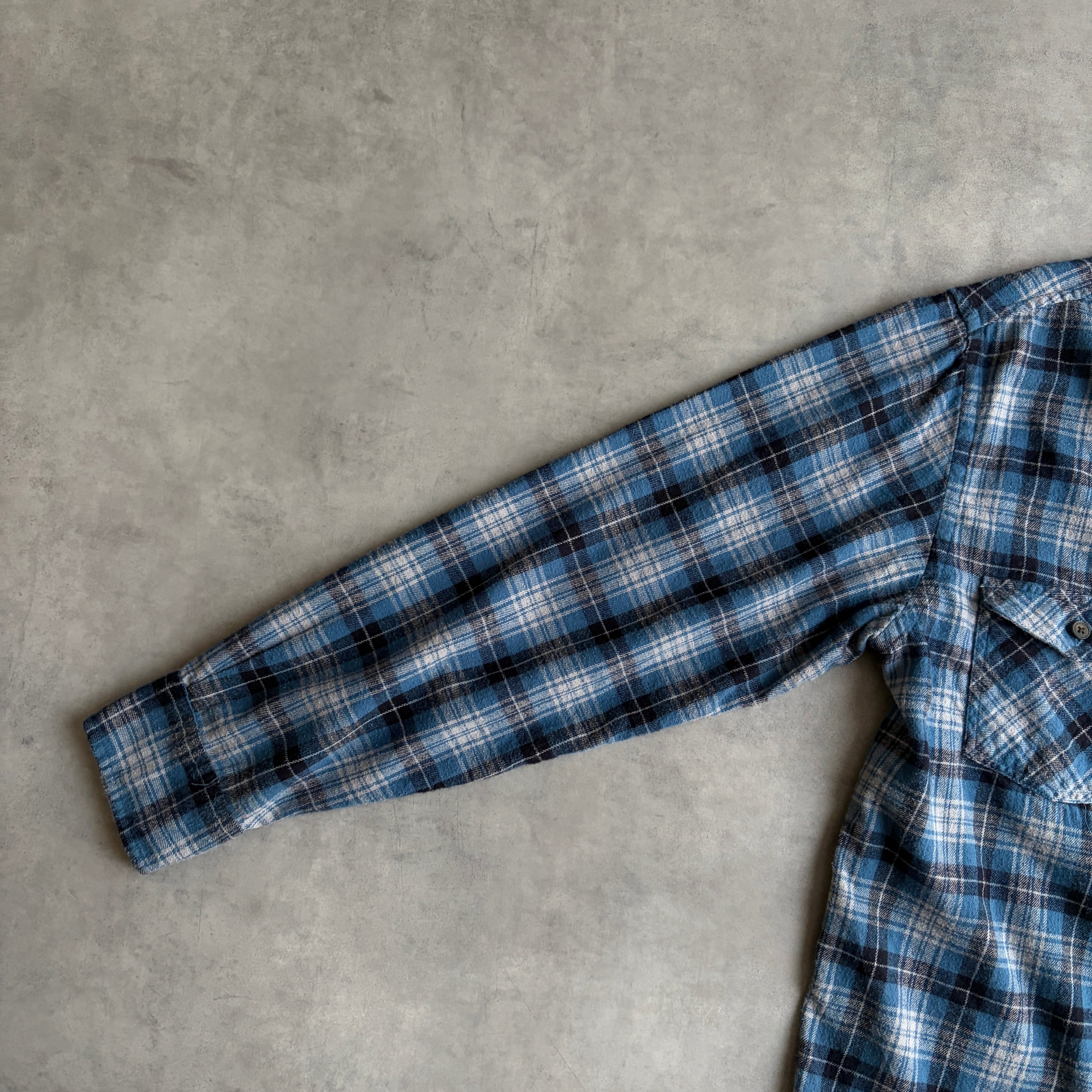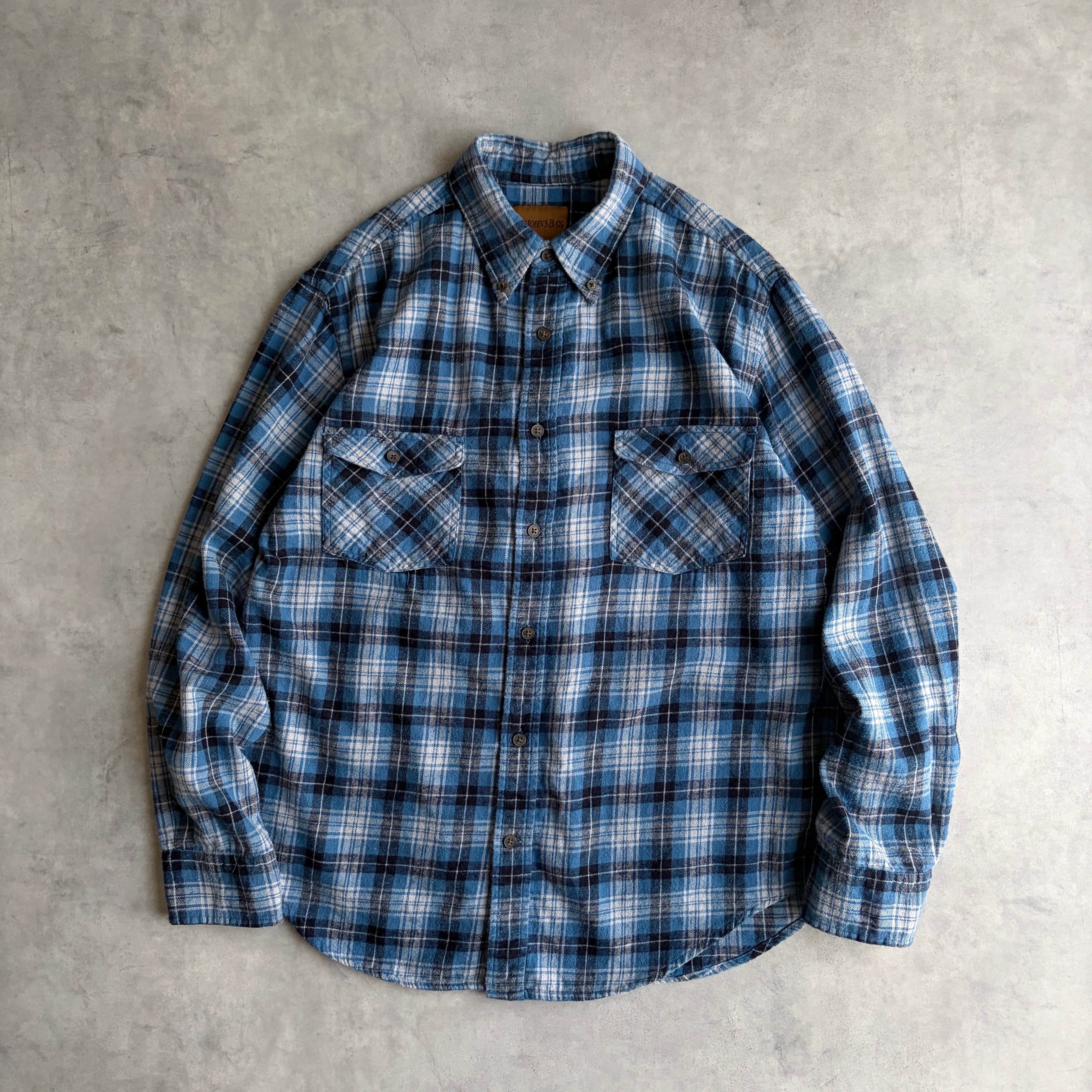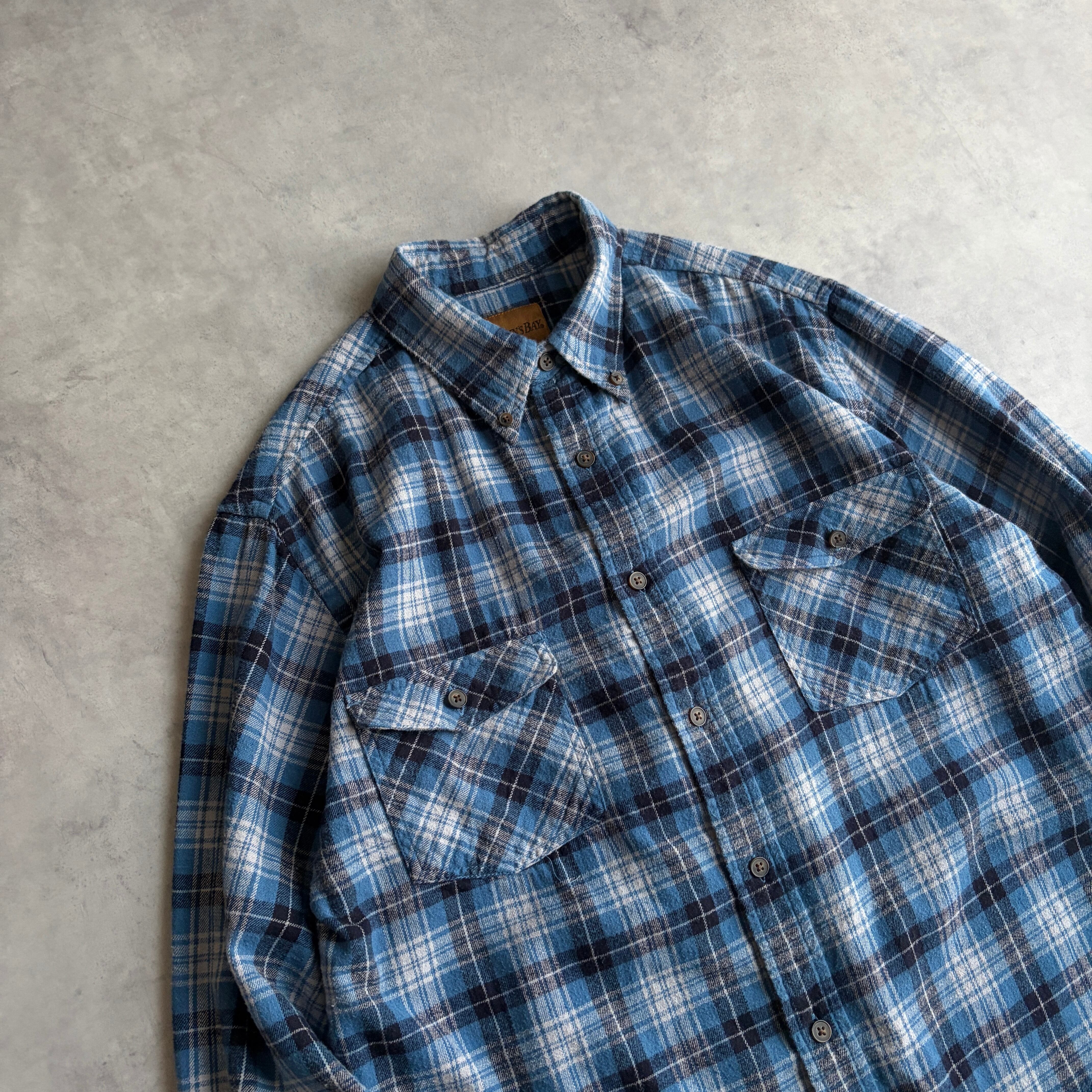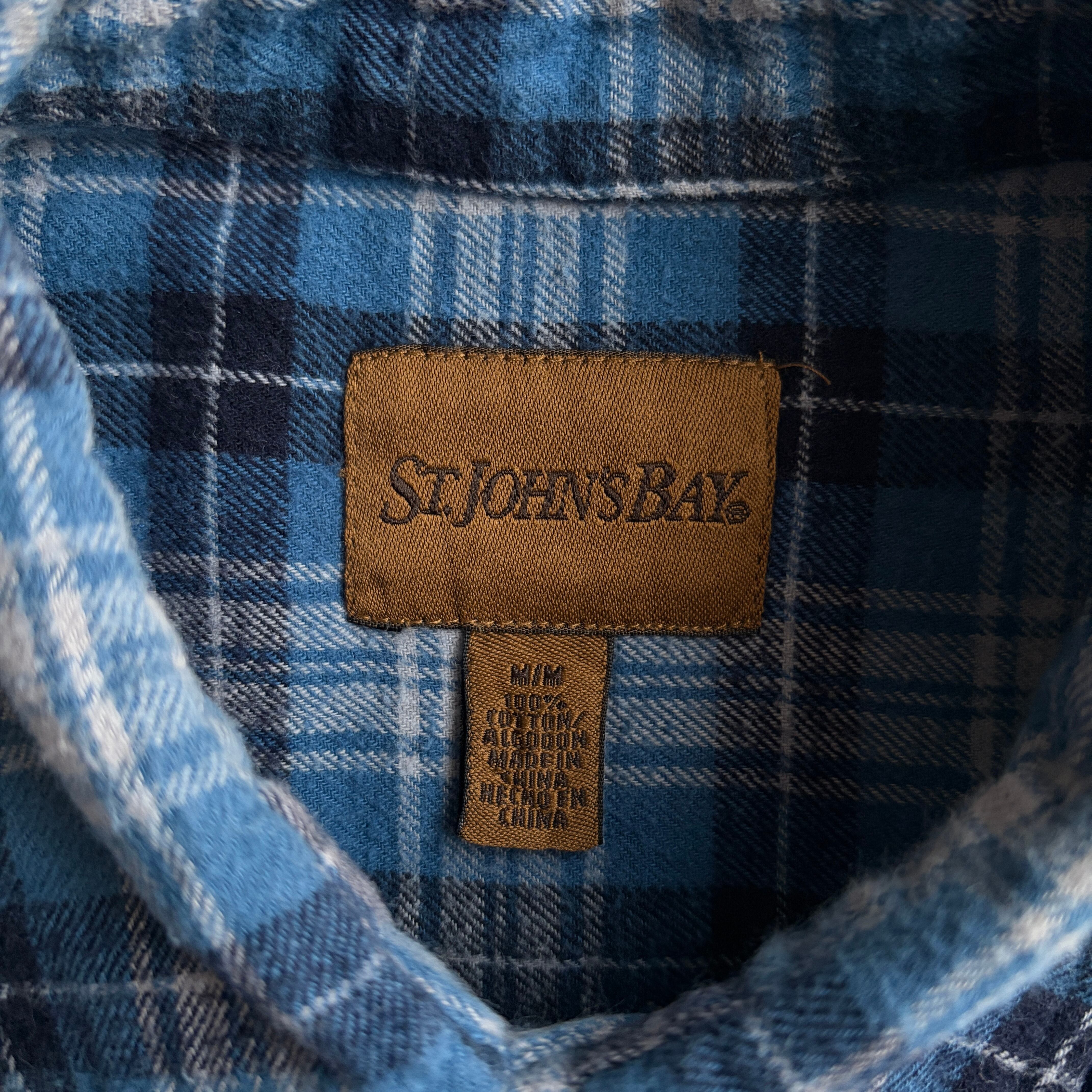 90s〜00s/ST JOHN'S BAY/セントジョンズベイ/BDシャツ/ボタンダウン/フランネル生地/チェック/格子柄/ブルー/青/紺/jmaple