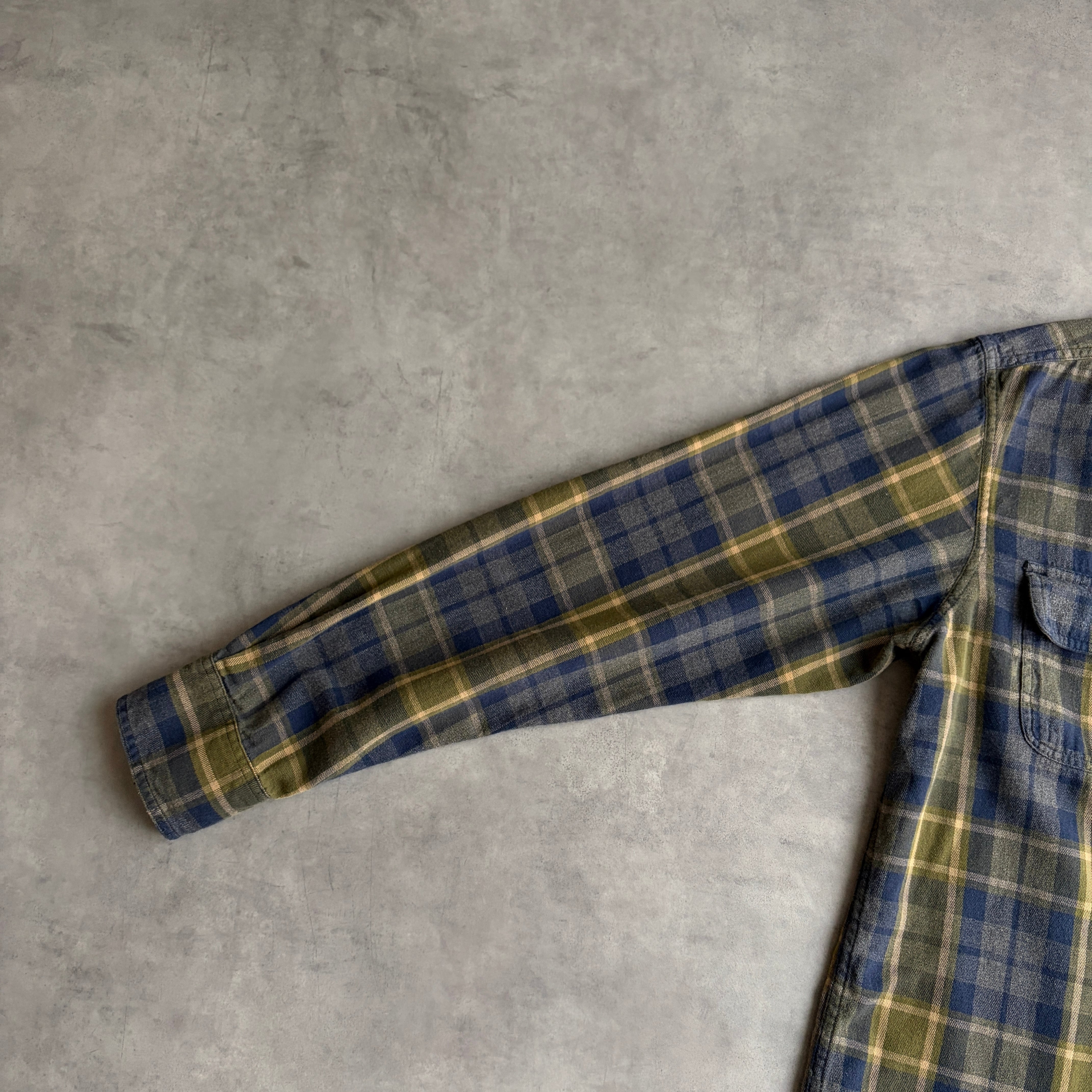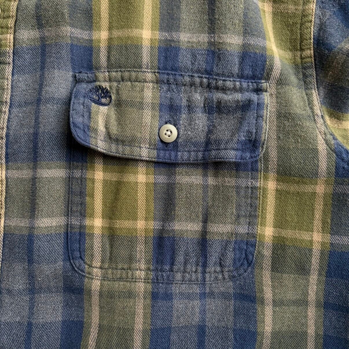 Timberland/ティンバーランド/長袖シャツ/フランネル生地/チェック/格子柄/フラップポケット/ロゴ刺繍/ネイビー×グリーン/紺×緑/jmaple
