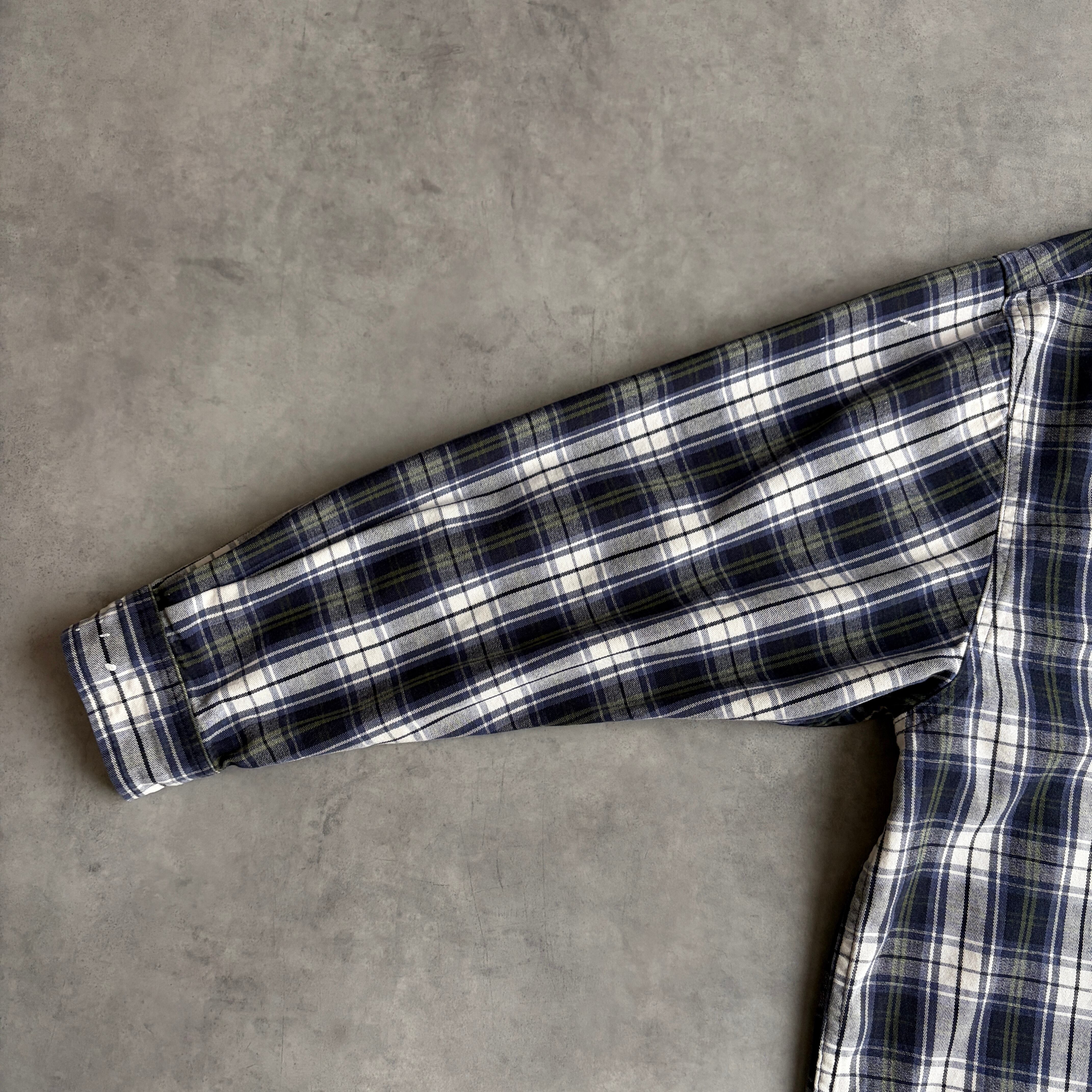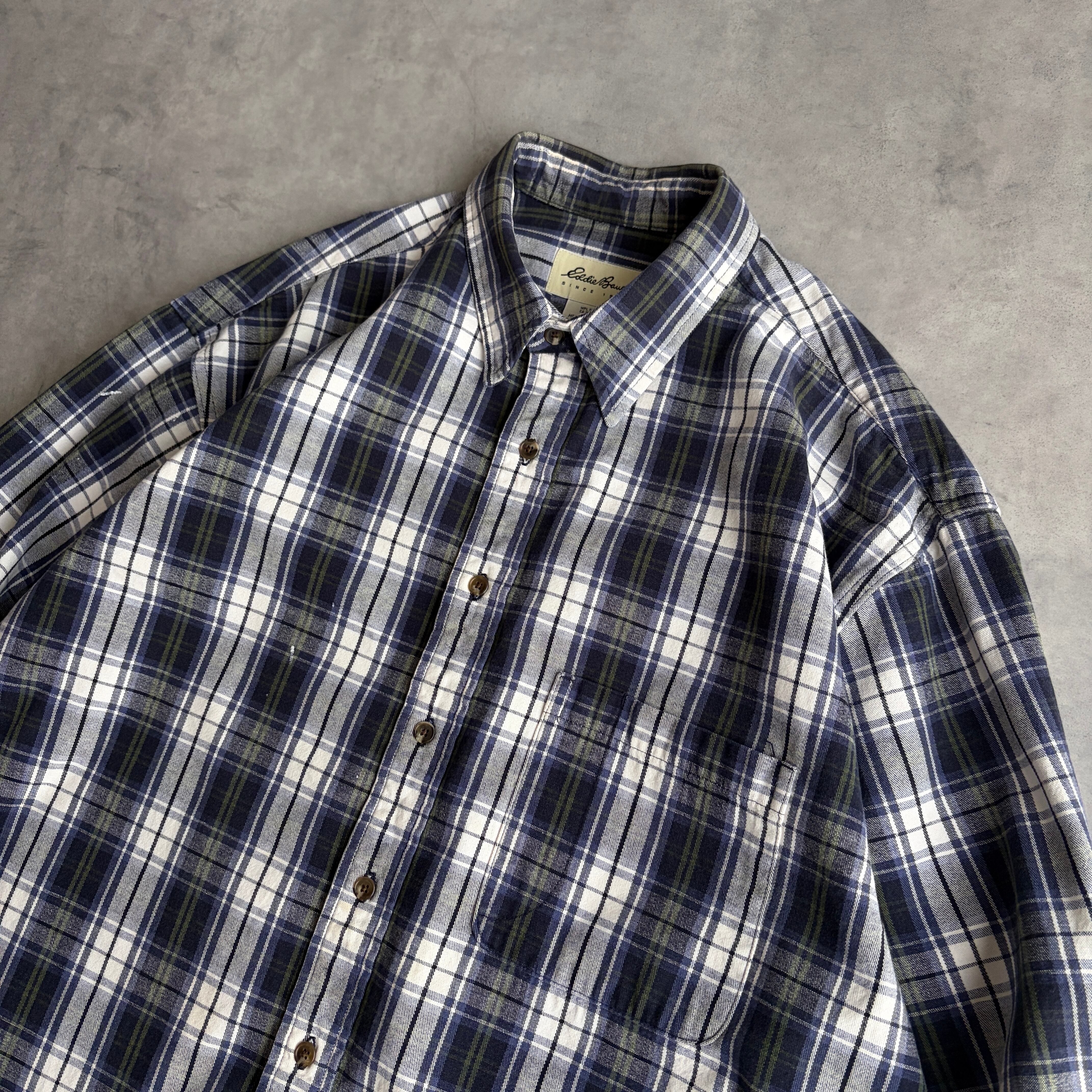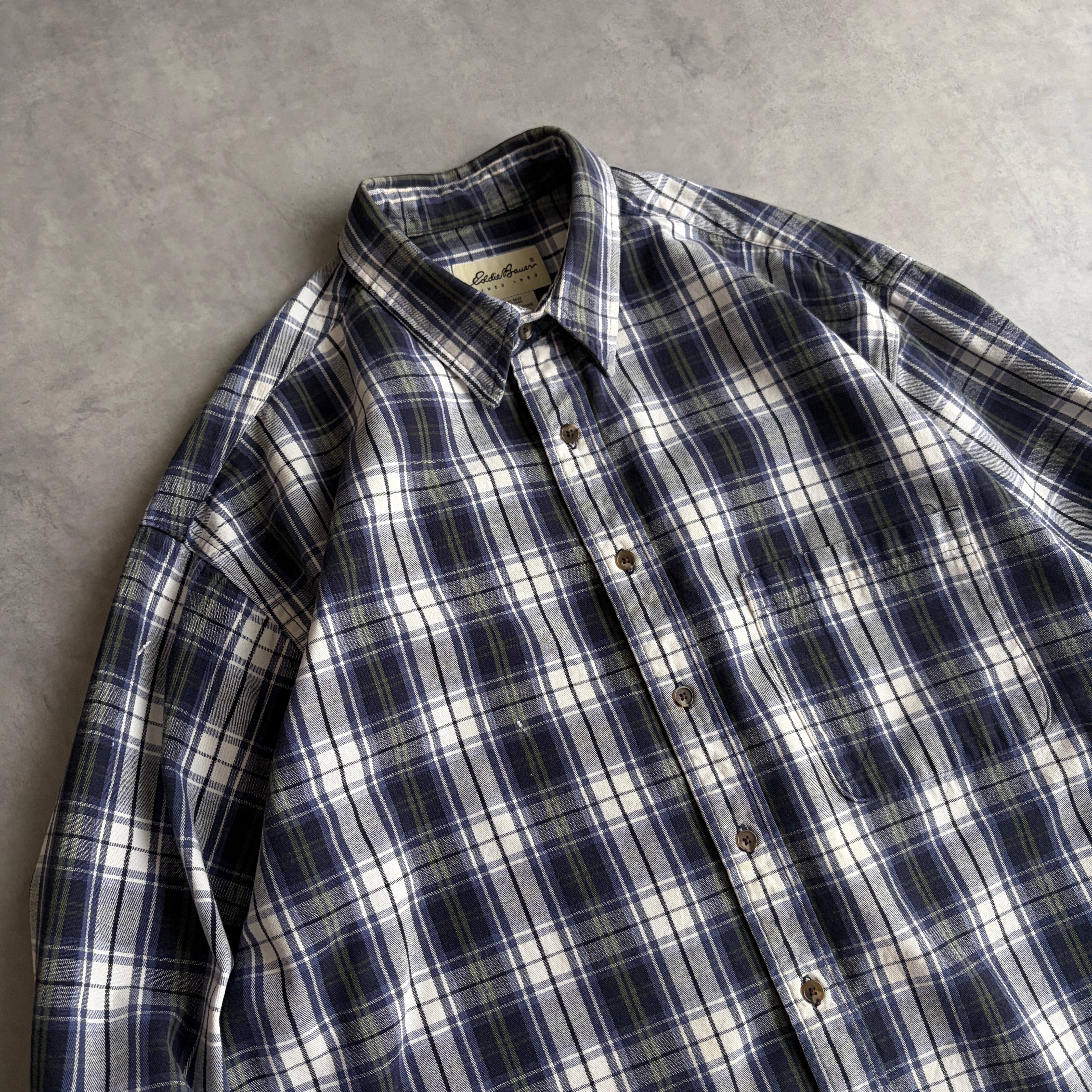 90s/Eddie Bauer/エディーバウアー/長袖シャツ/オックスフォード生地/レギュラーカラー/チェック/格子柄/ネイビー/紺/jmaple