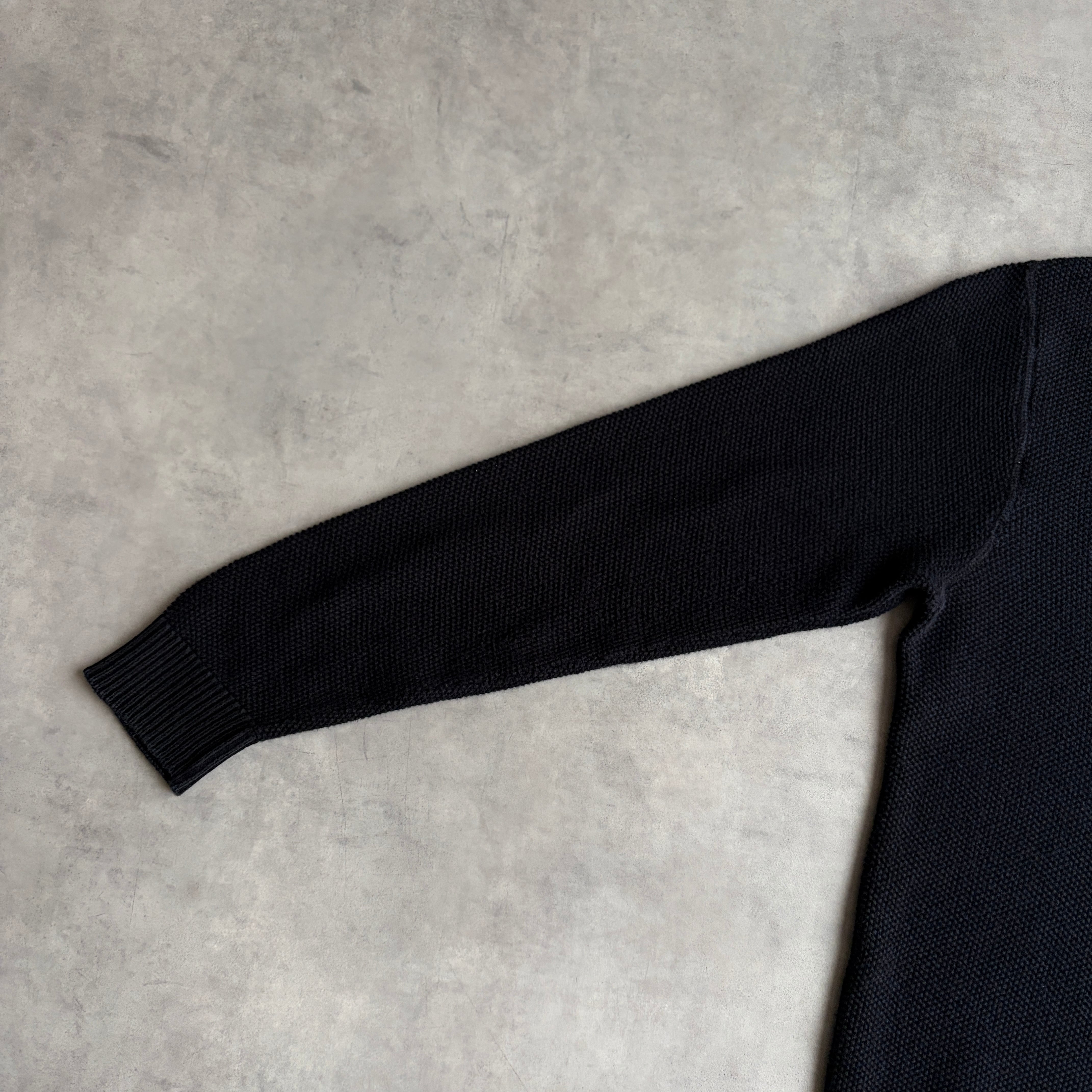 シンプルなブラックカラーですが、立体感のある鹿の子編みでこだわりのあるアイテム。